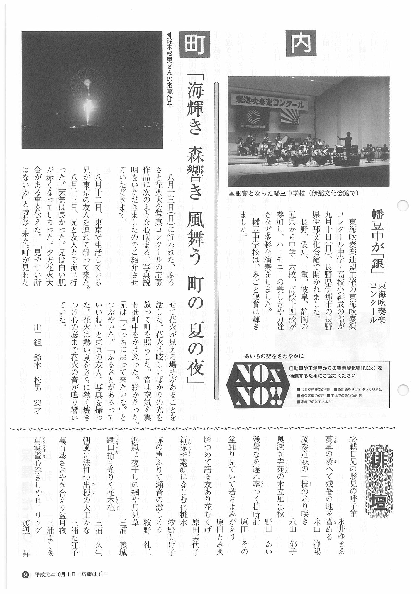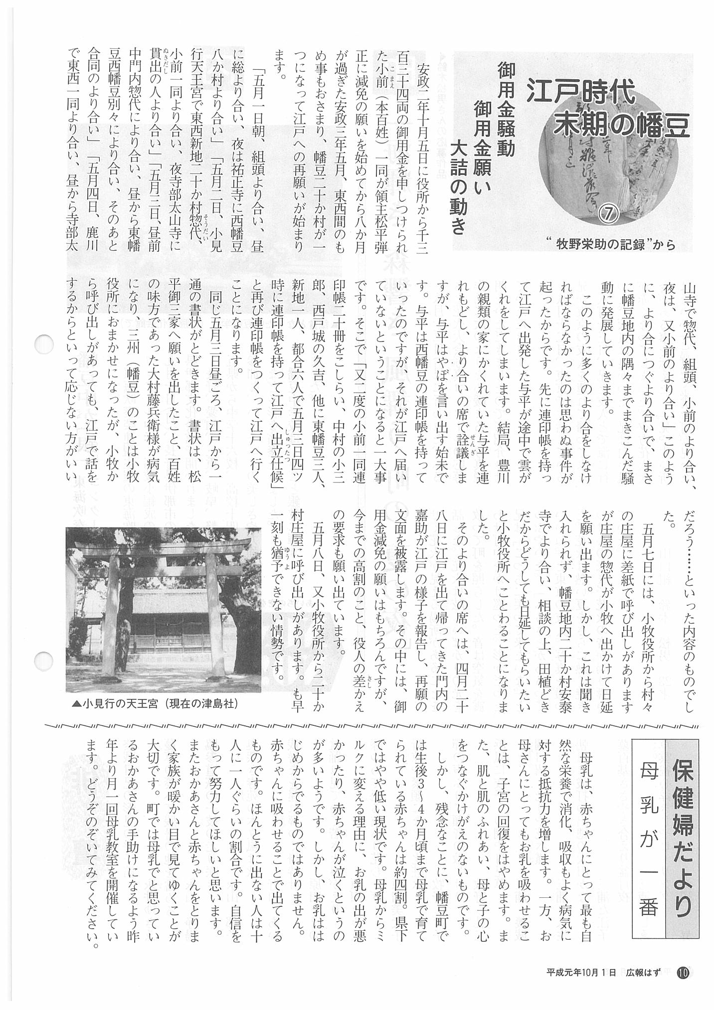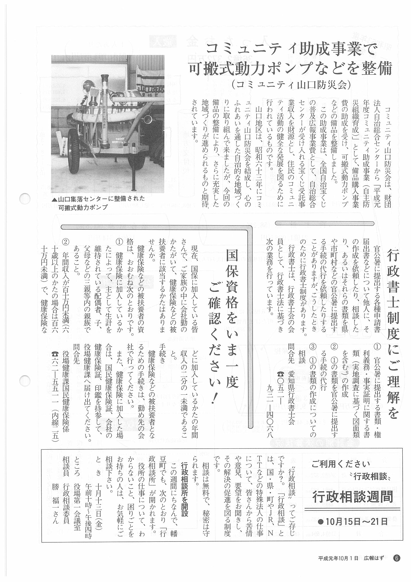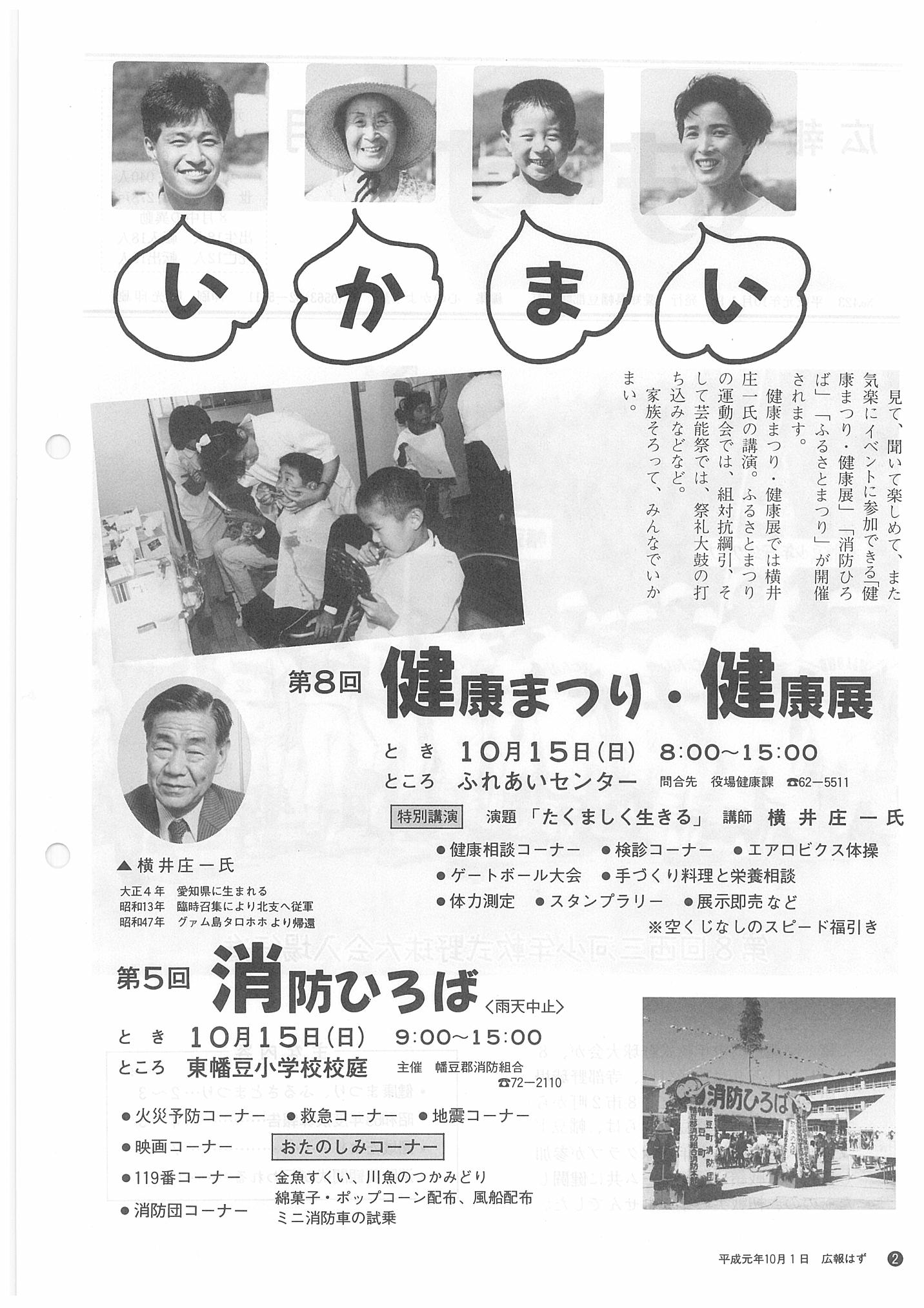 「広報はず」 1989年(平成元年) 10月号 目次