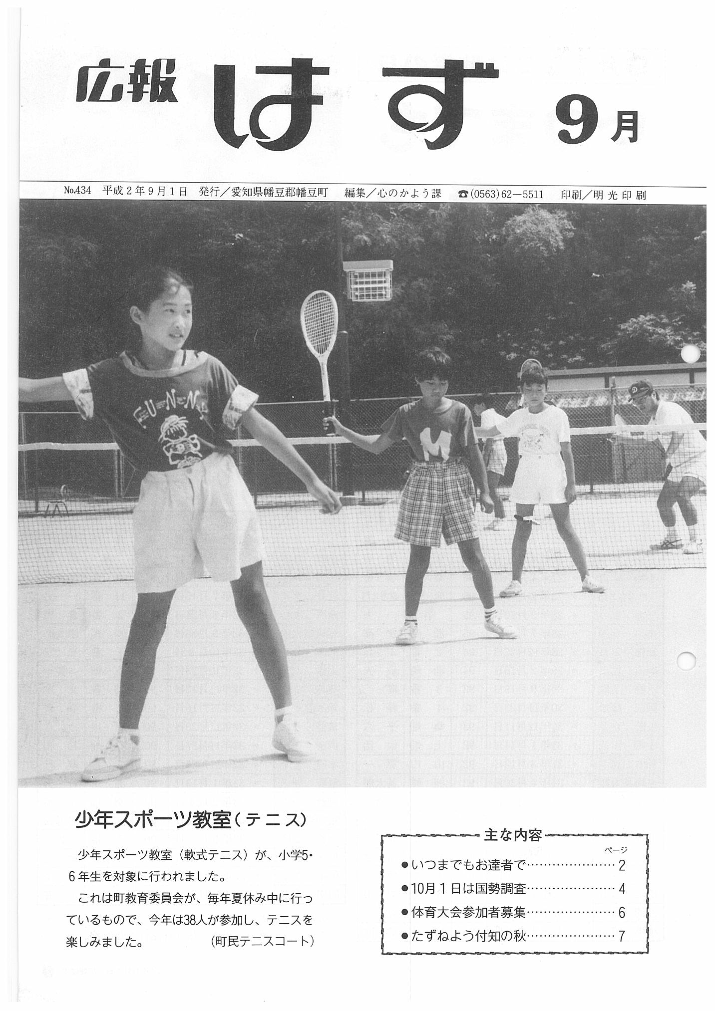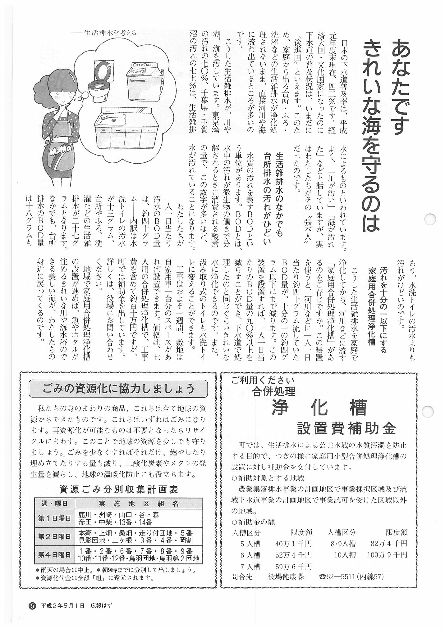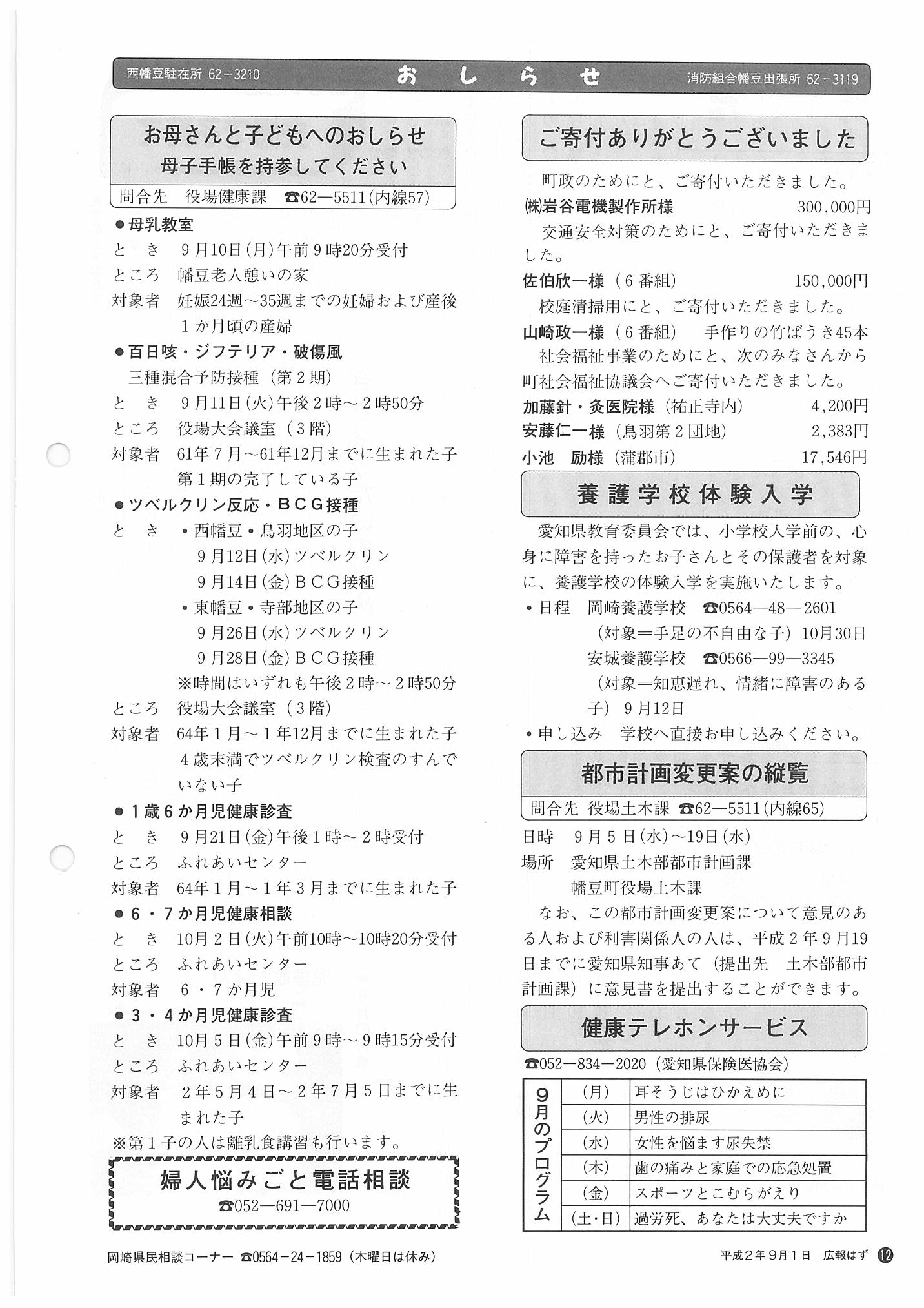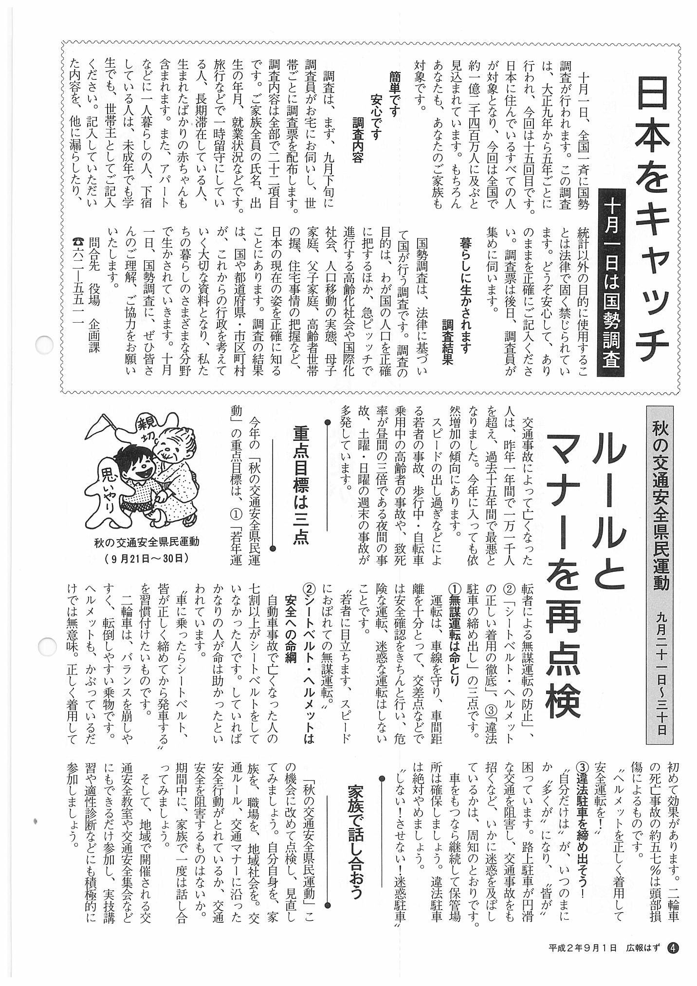 「広報はず」 1990年(平成2年) 9月号 目次