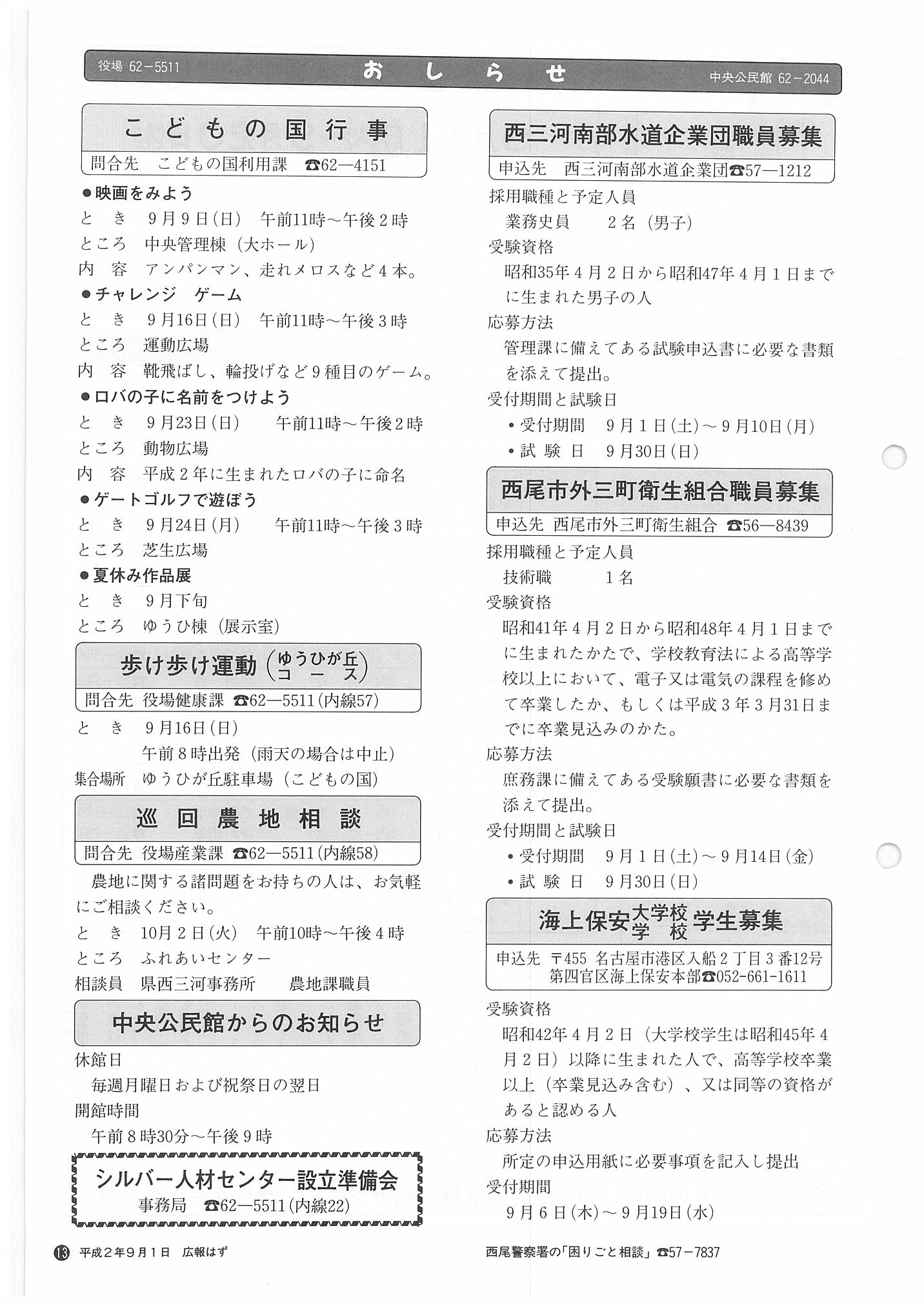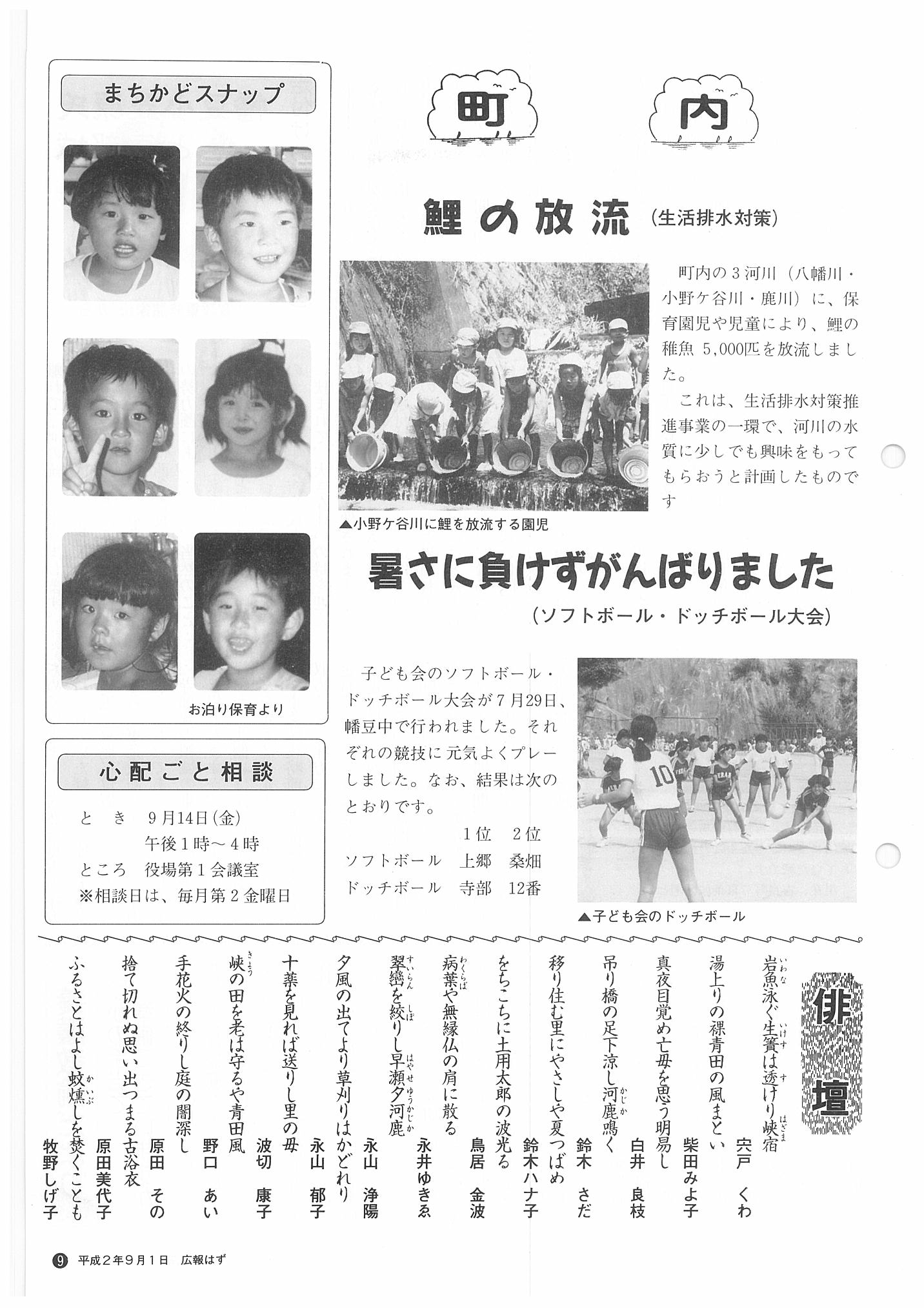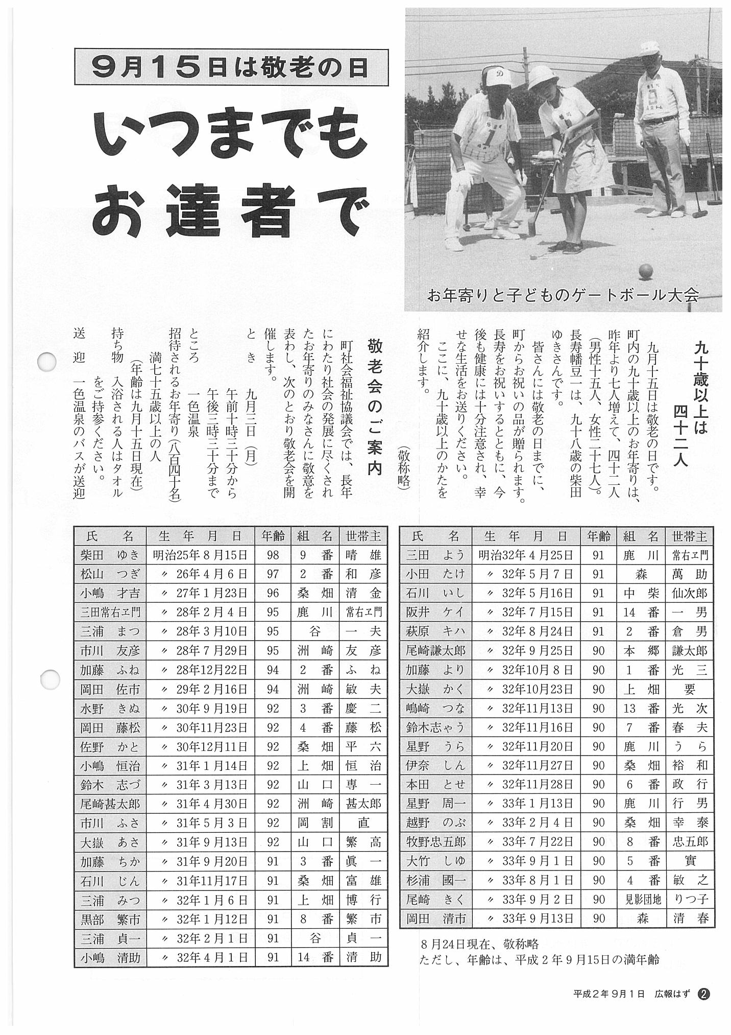 「広報はず」 1990年(平成2年) 9月号 目次