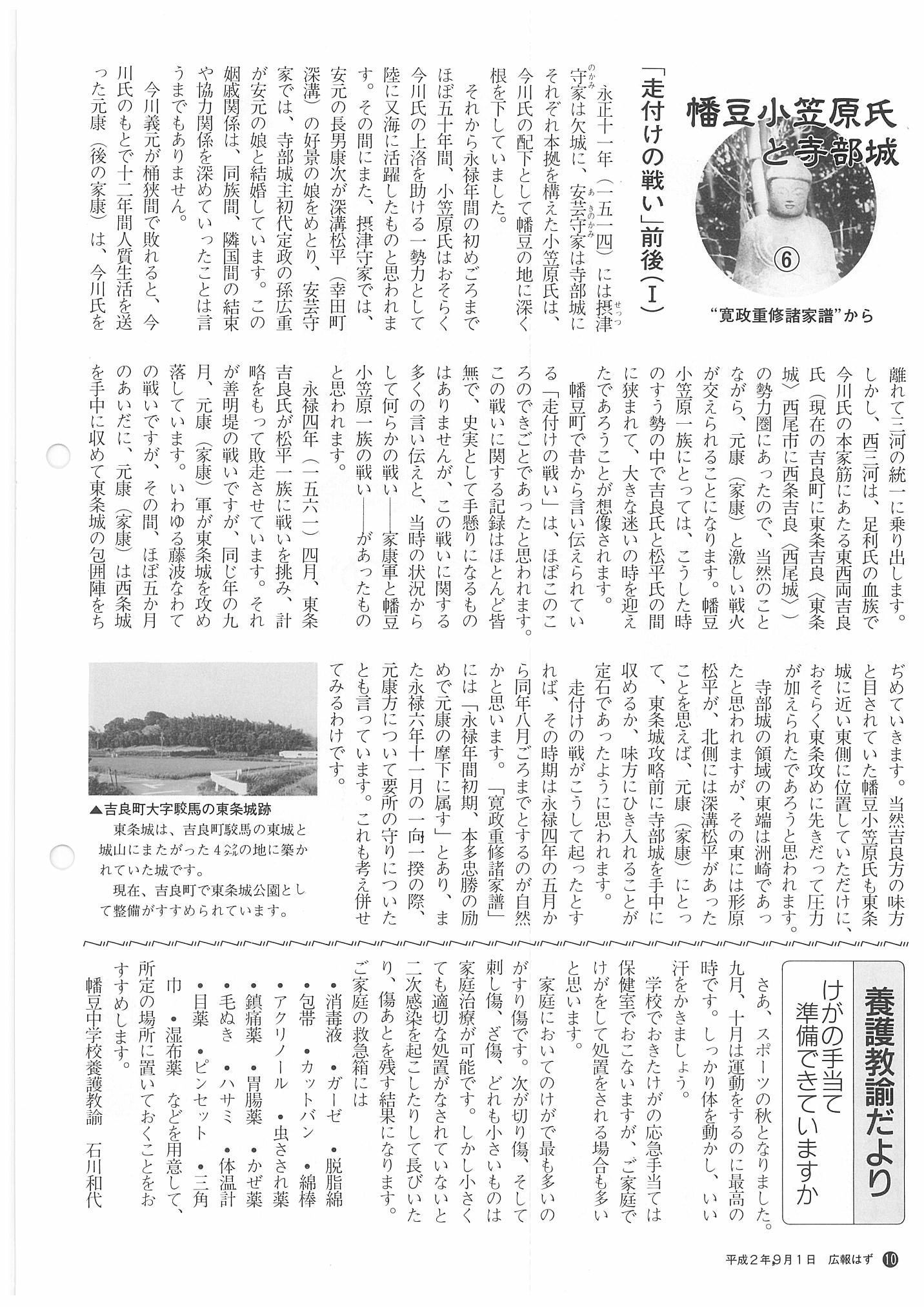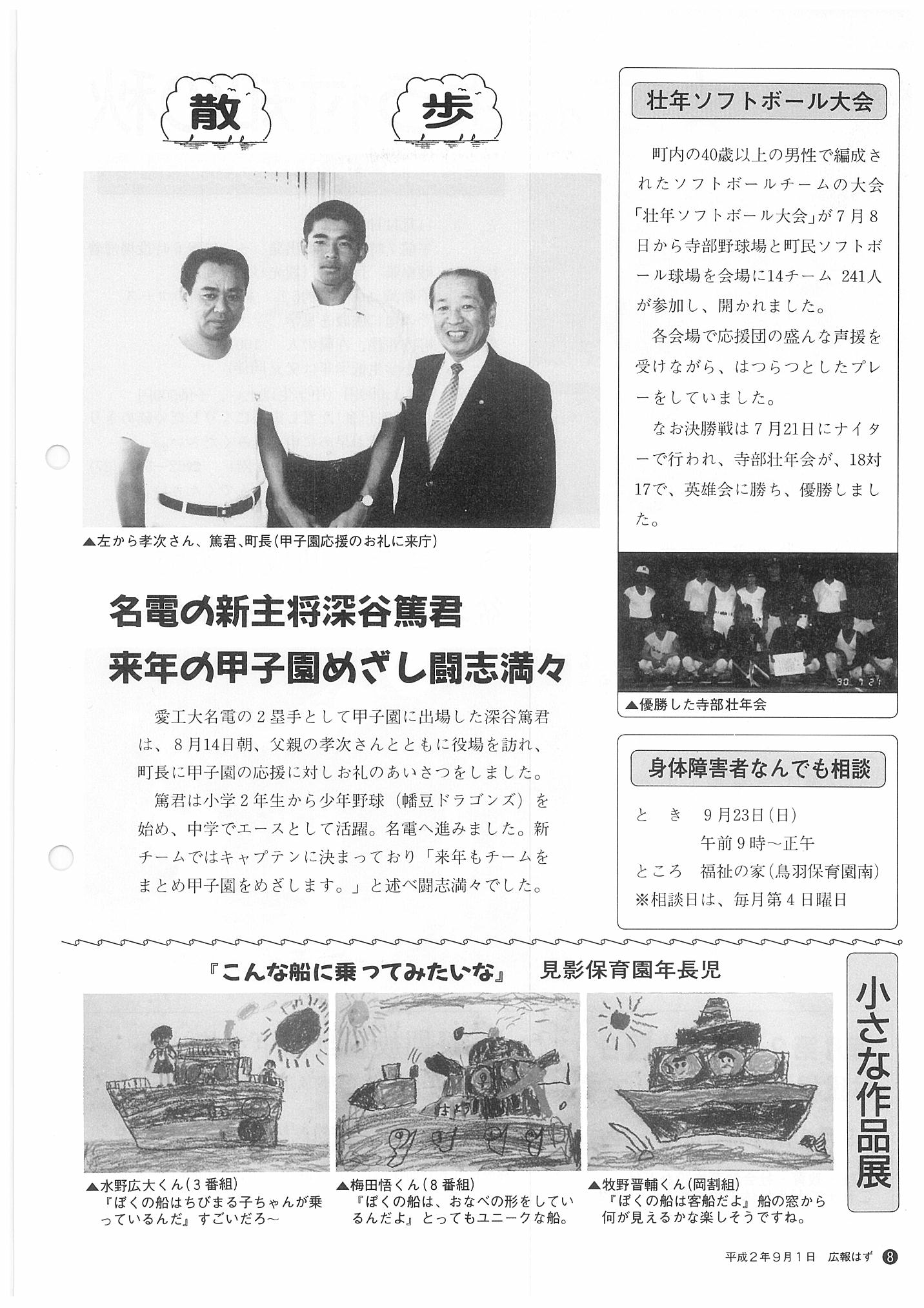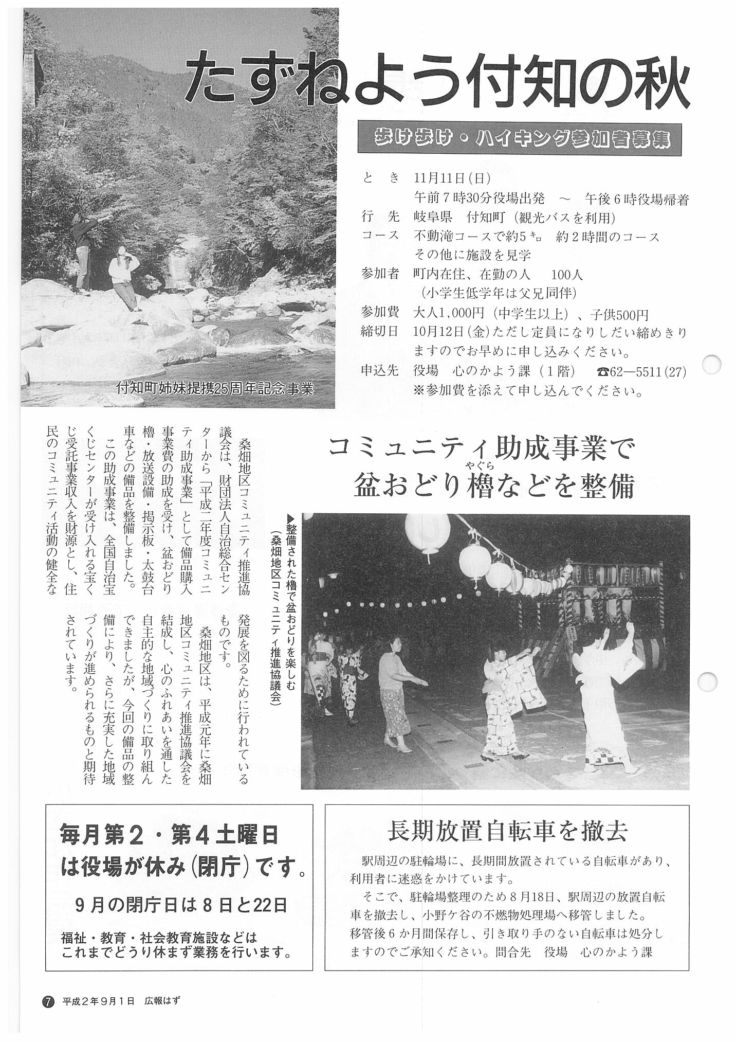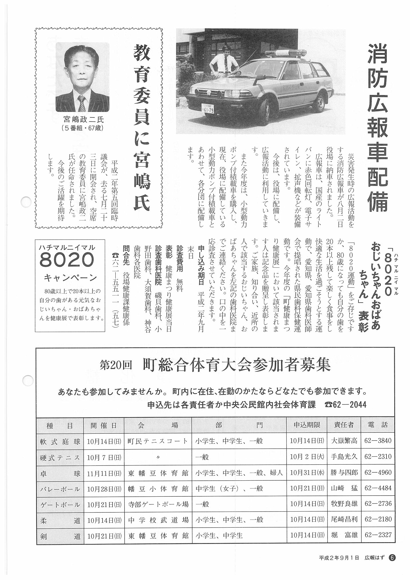 「広報はず」 1990年(平成2年) 9月号 目次