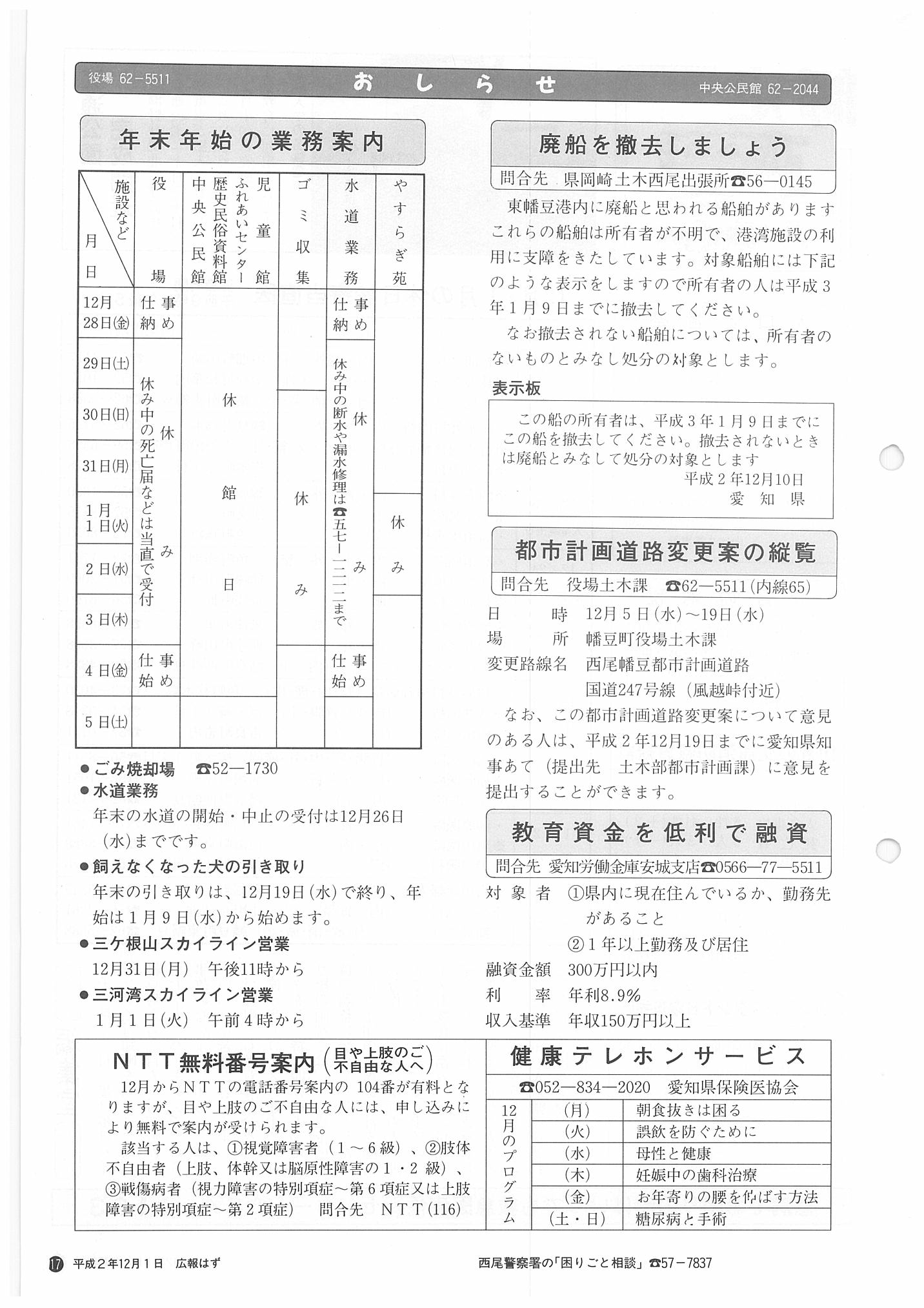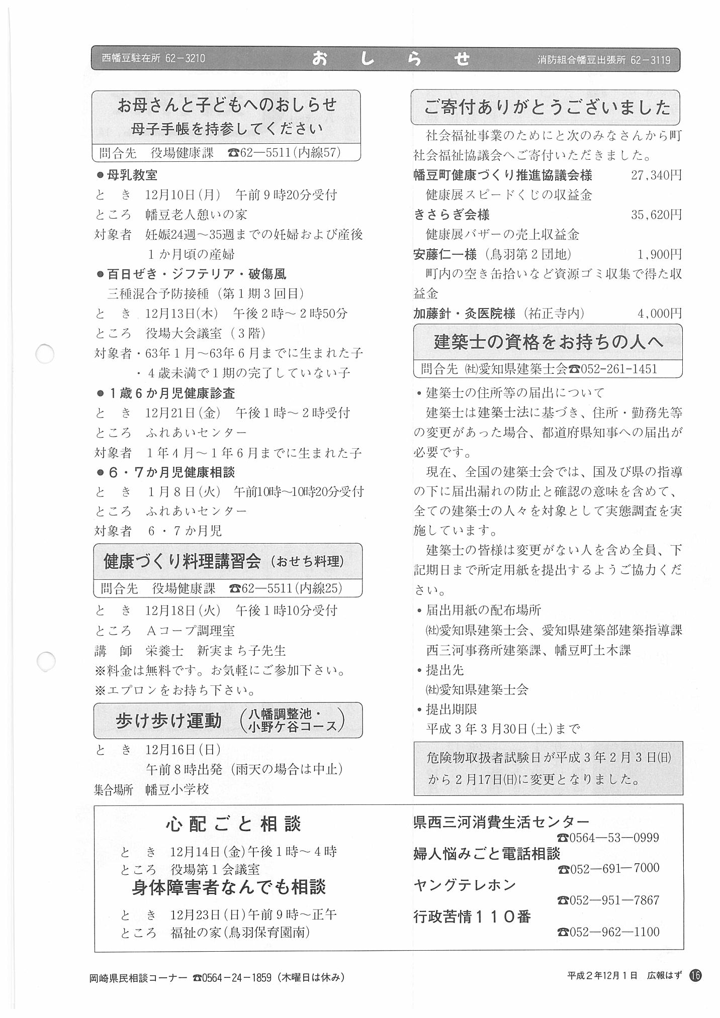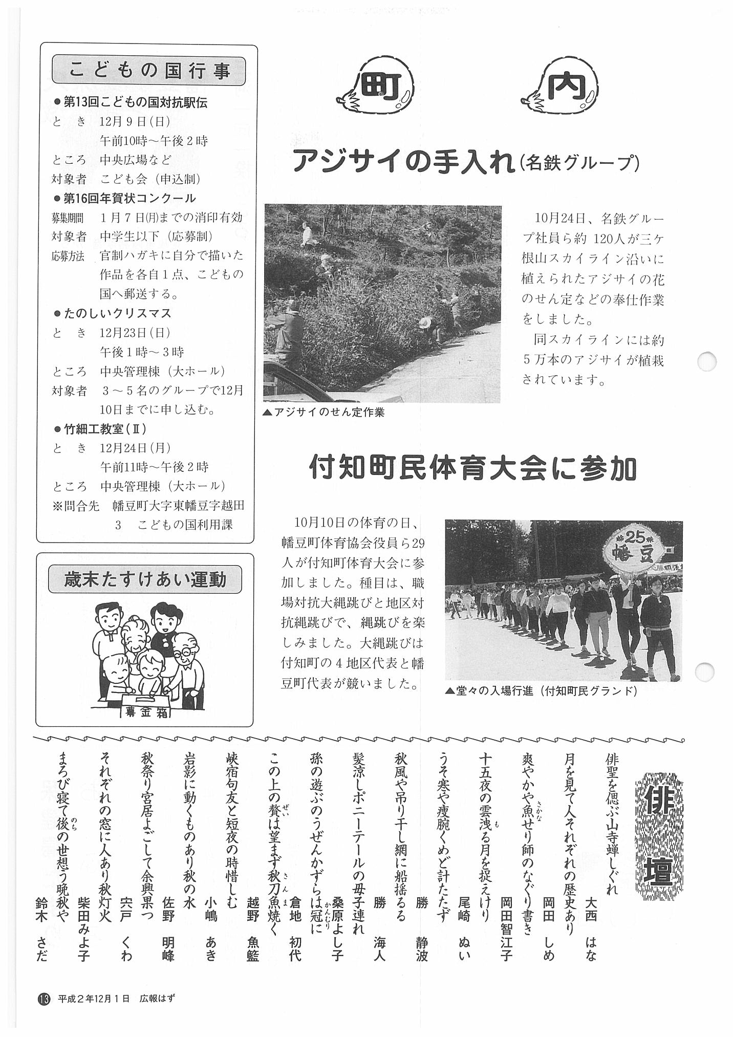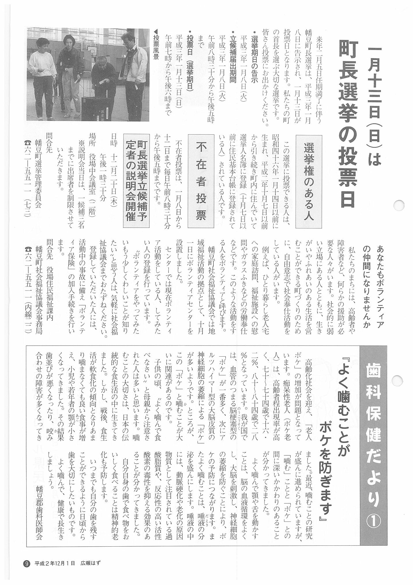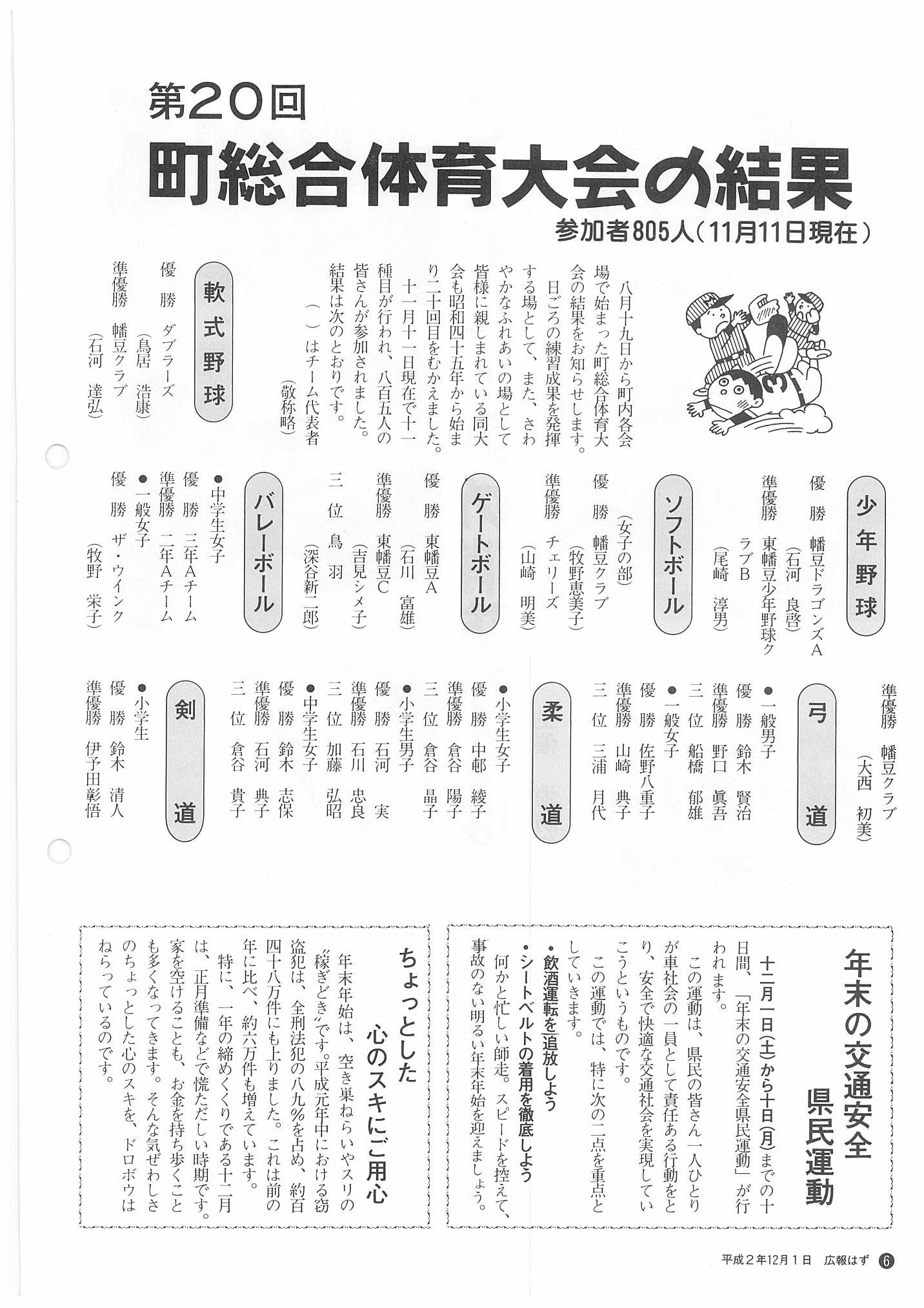 「広報はず」 1990年(平成2年) 12月号 目次