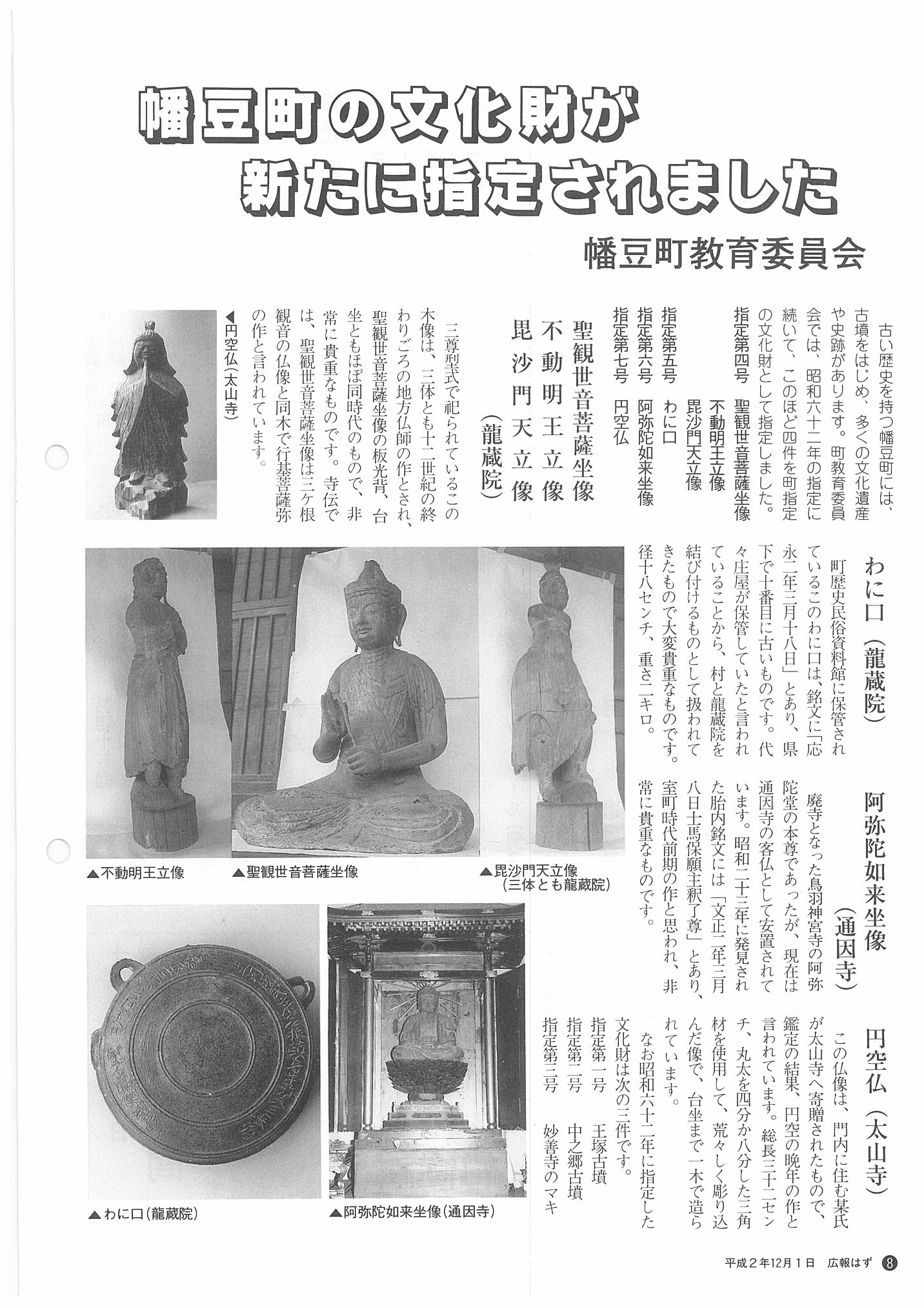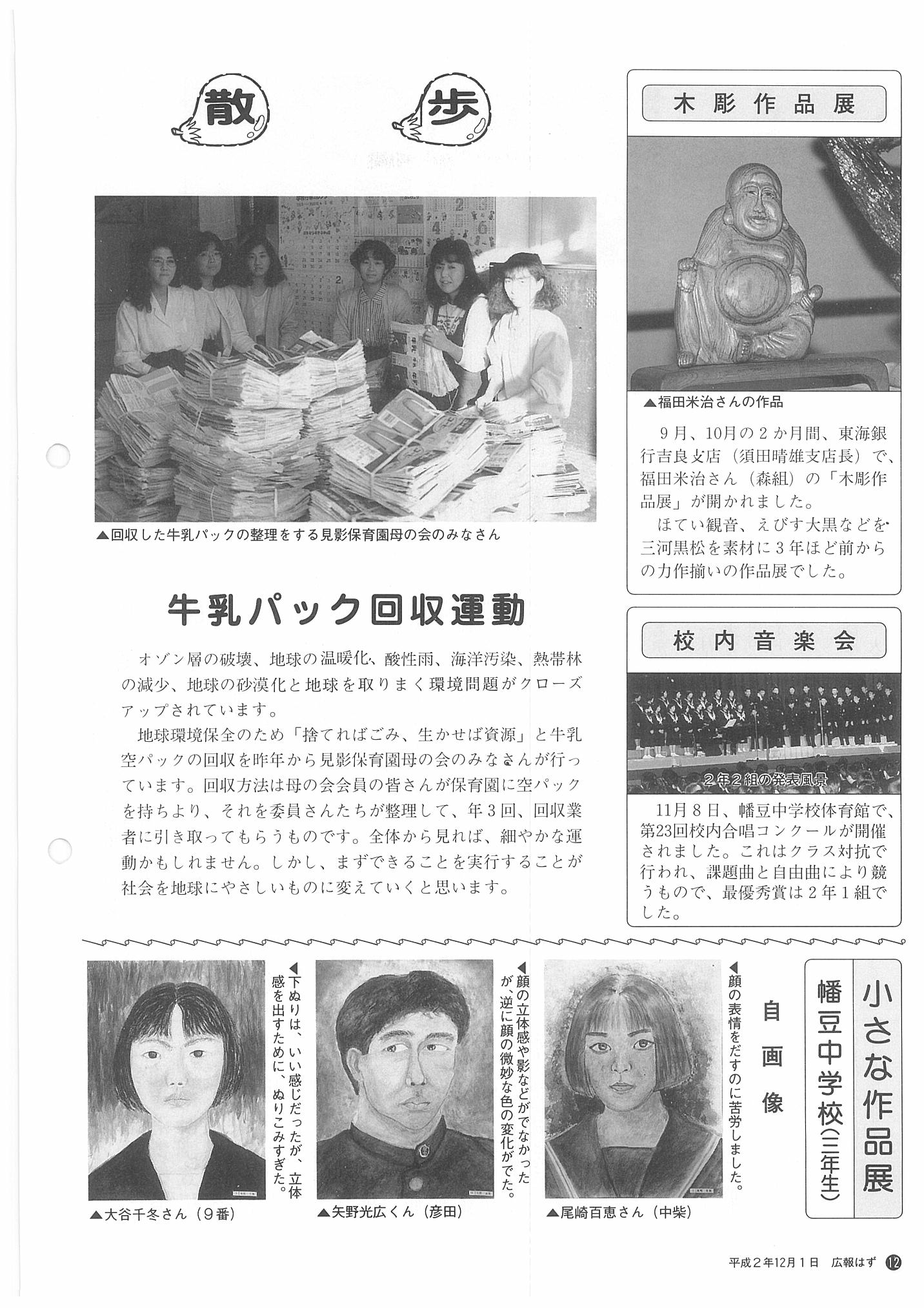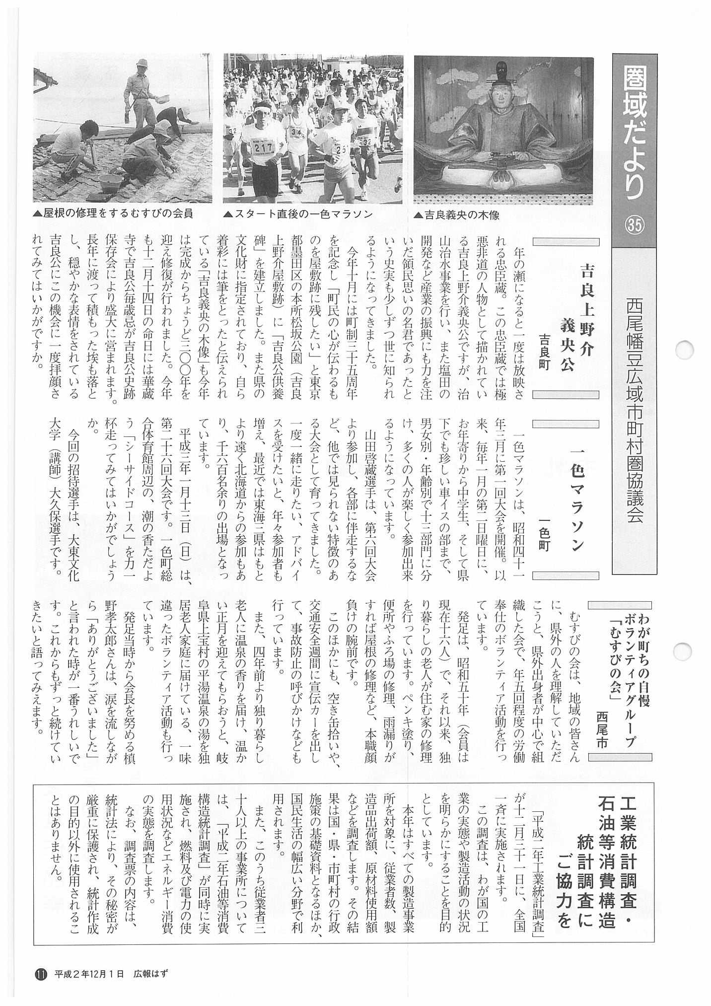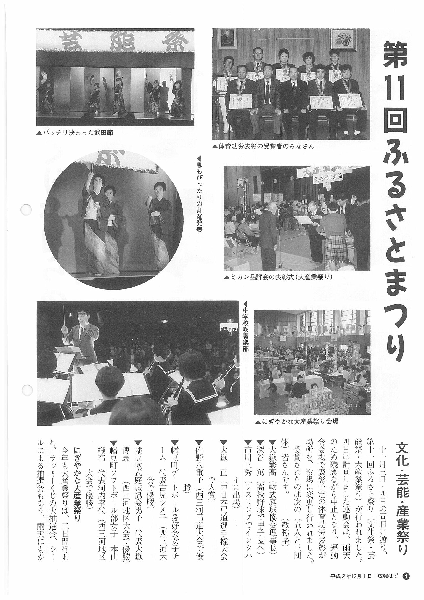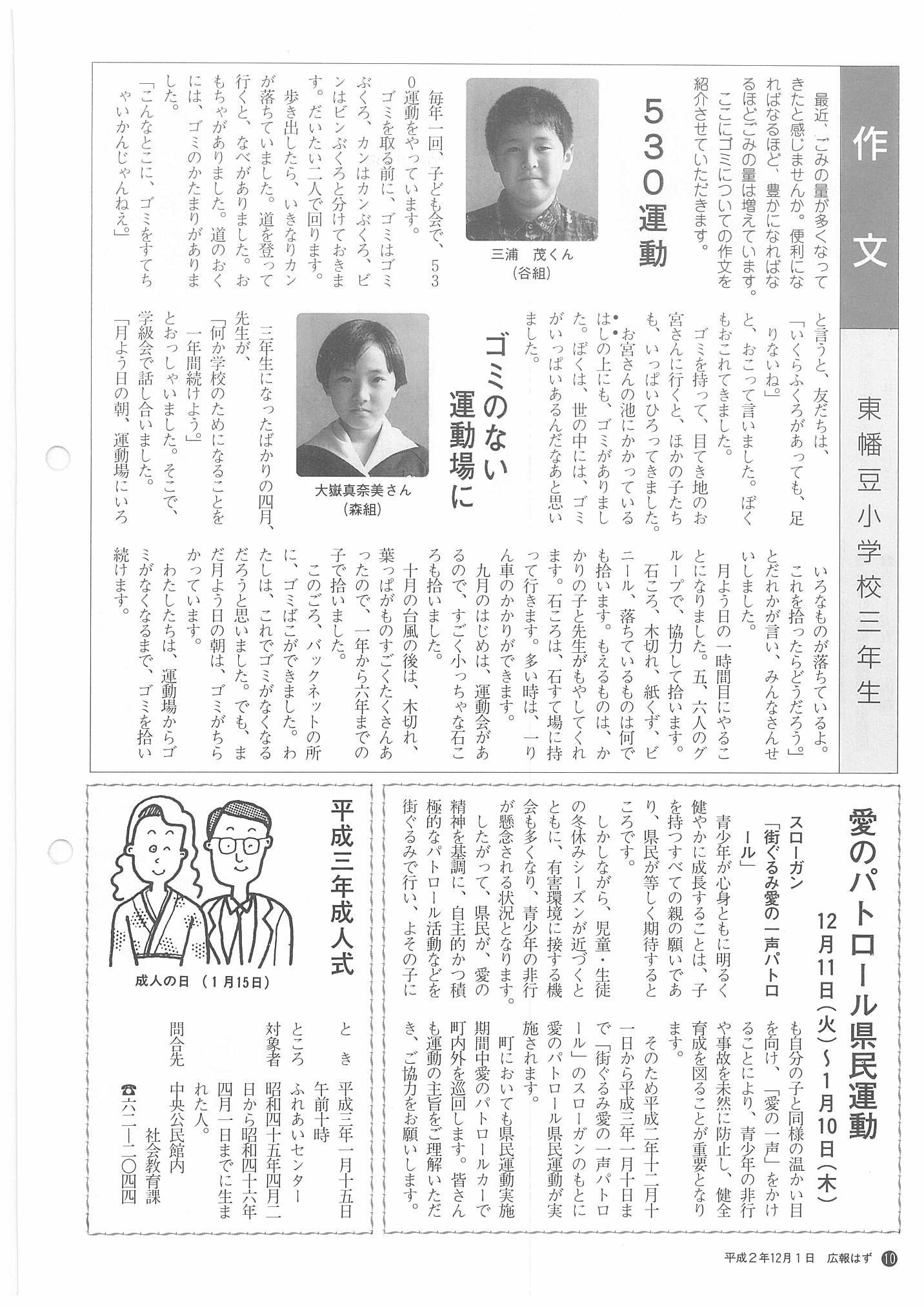 「広報はず」 1990年(平成2年) 12月号 目次