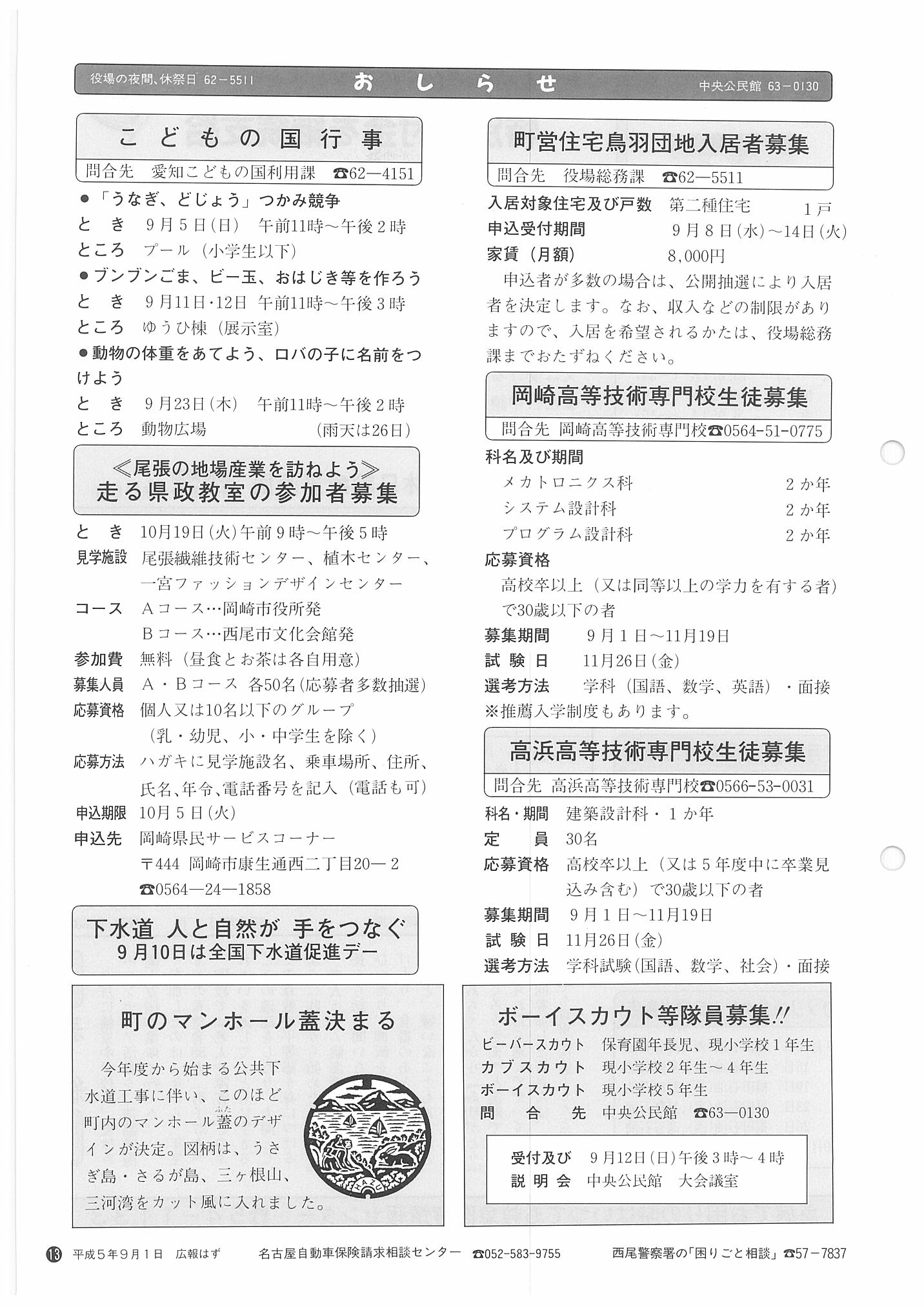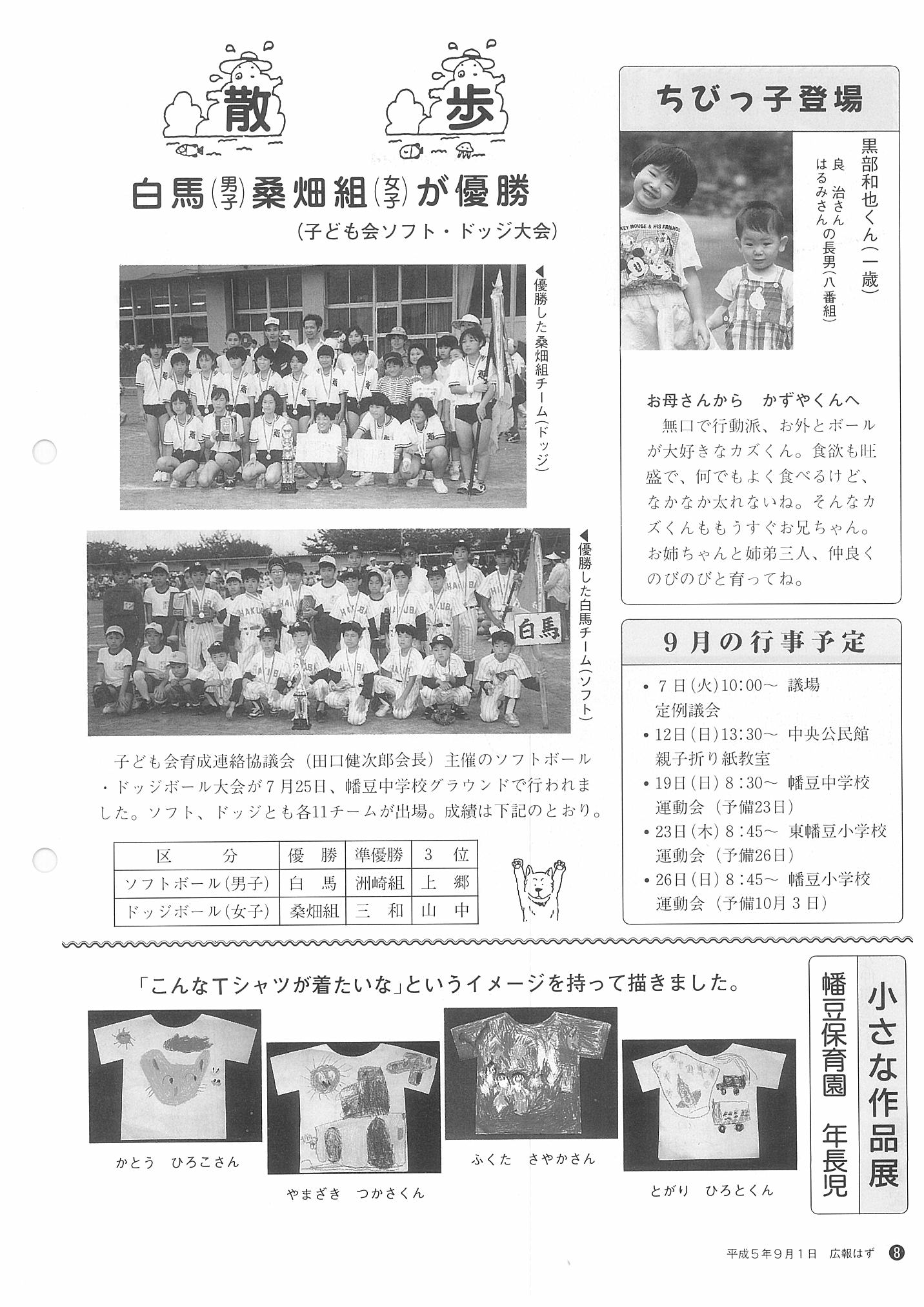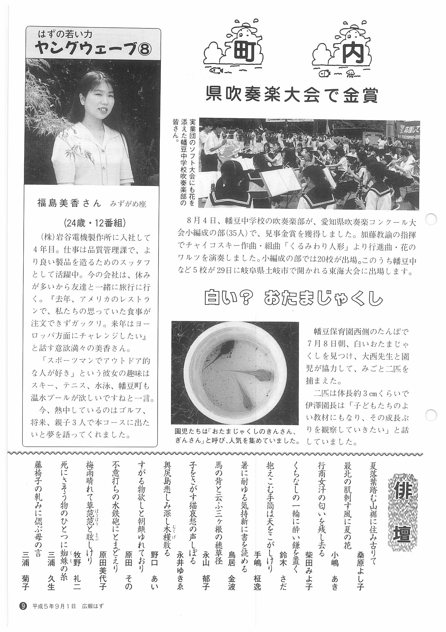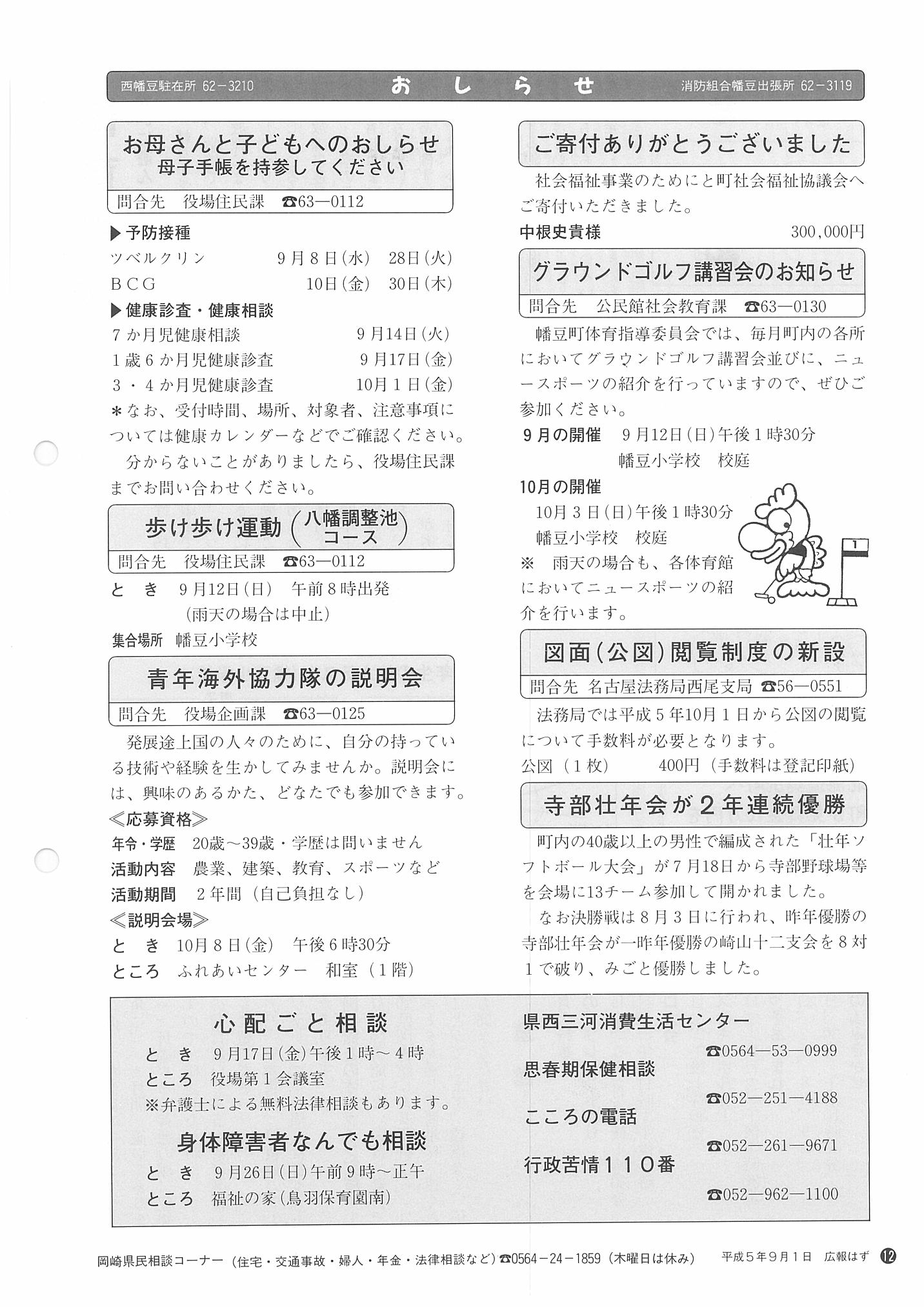 「広報はず」 1993年(平成5年) 9月号 目次