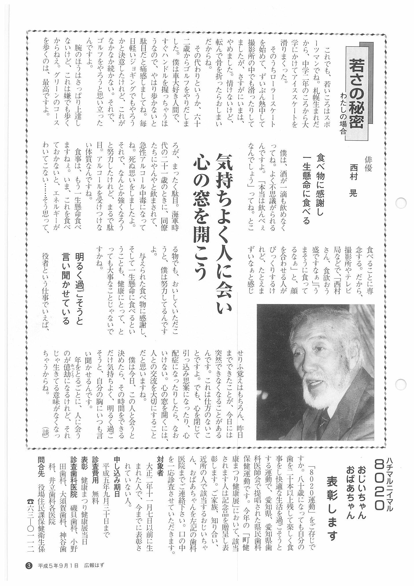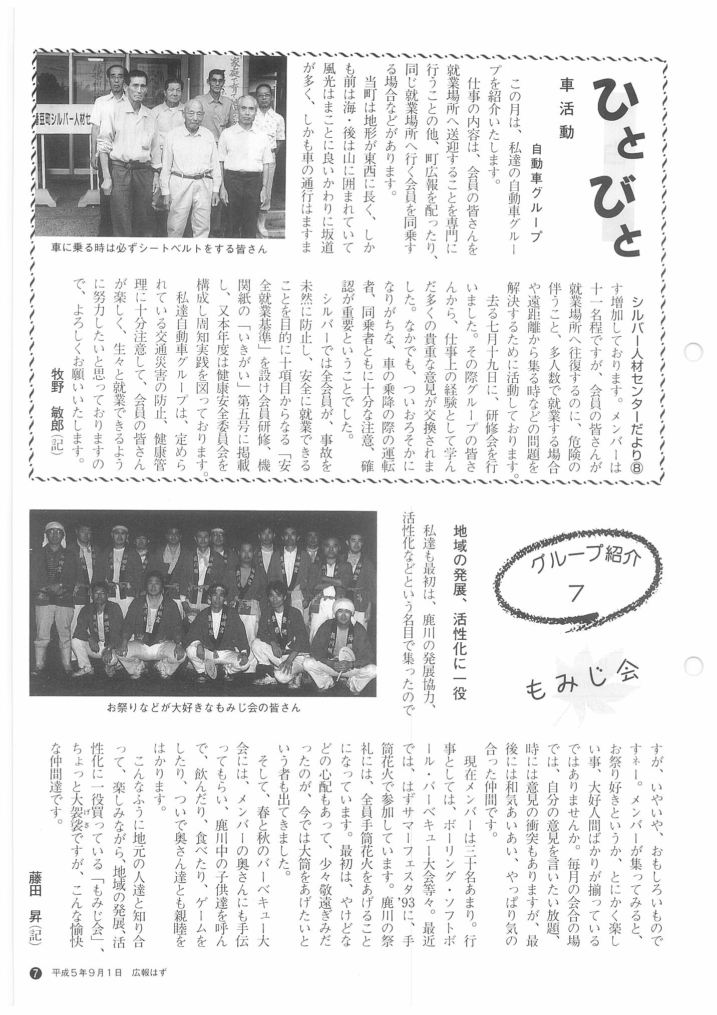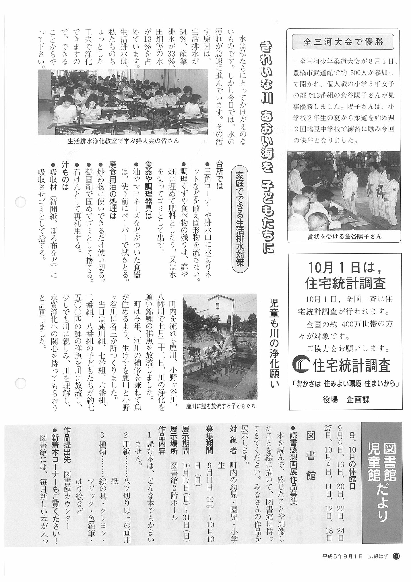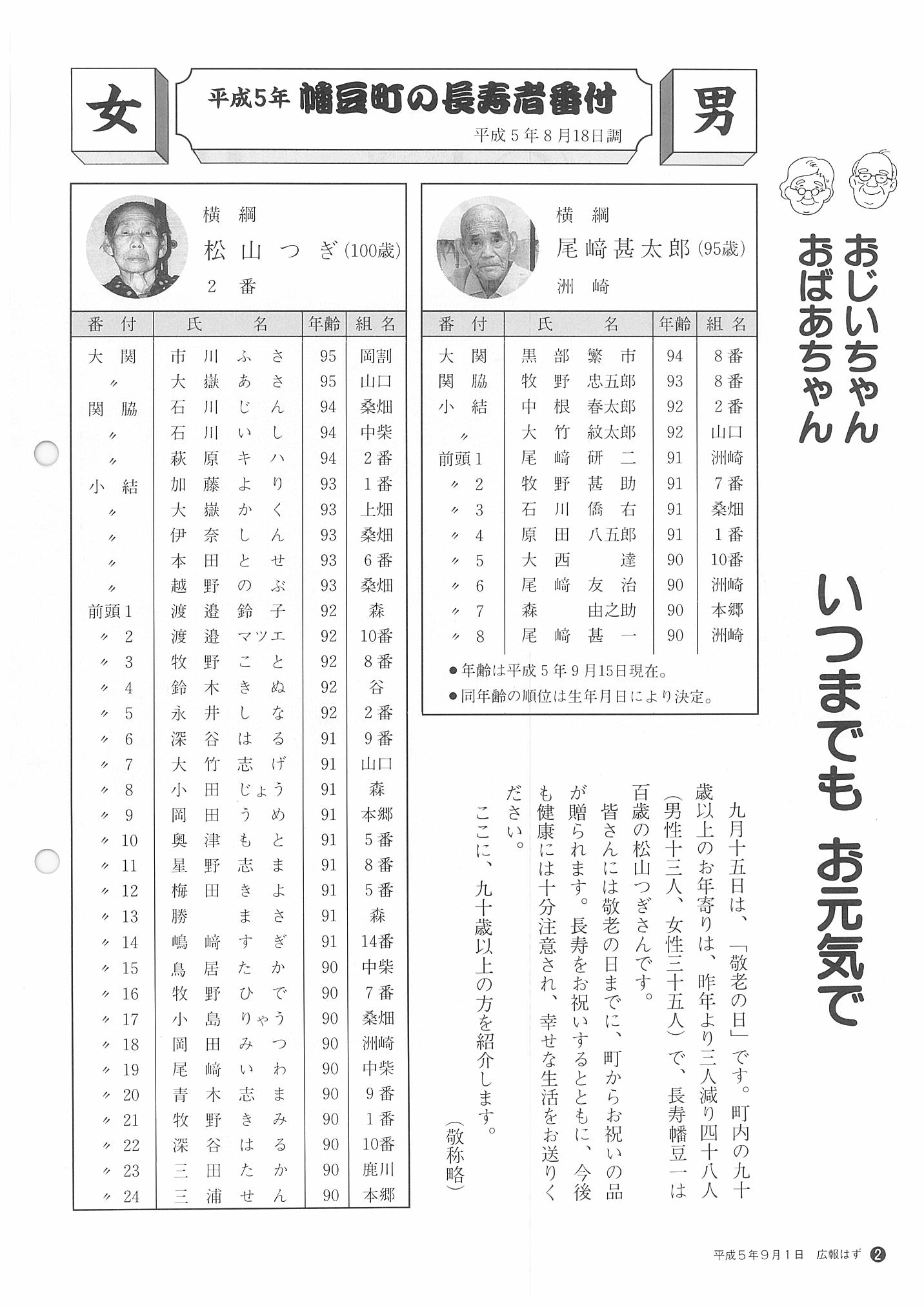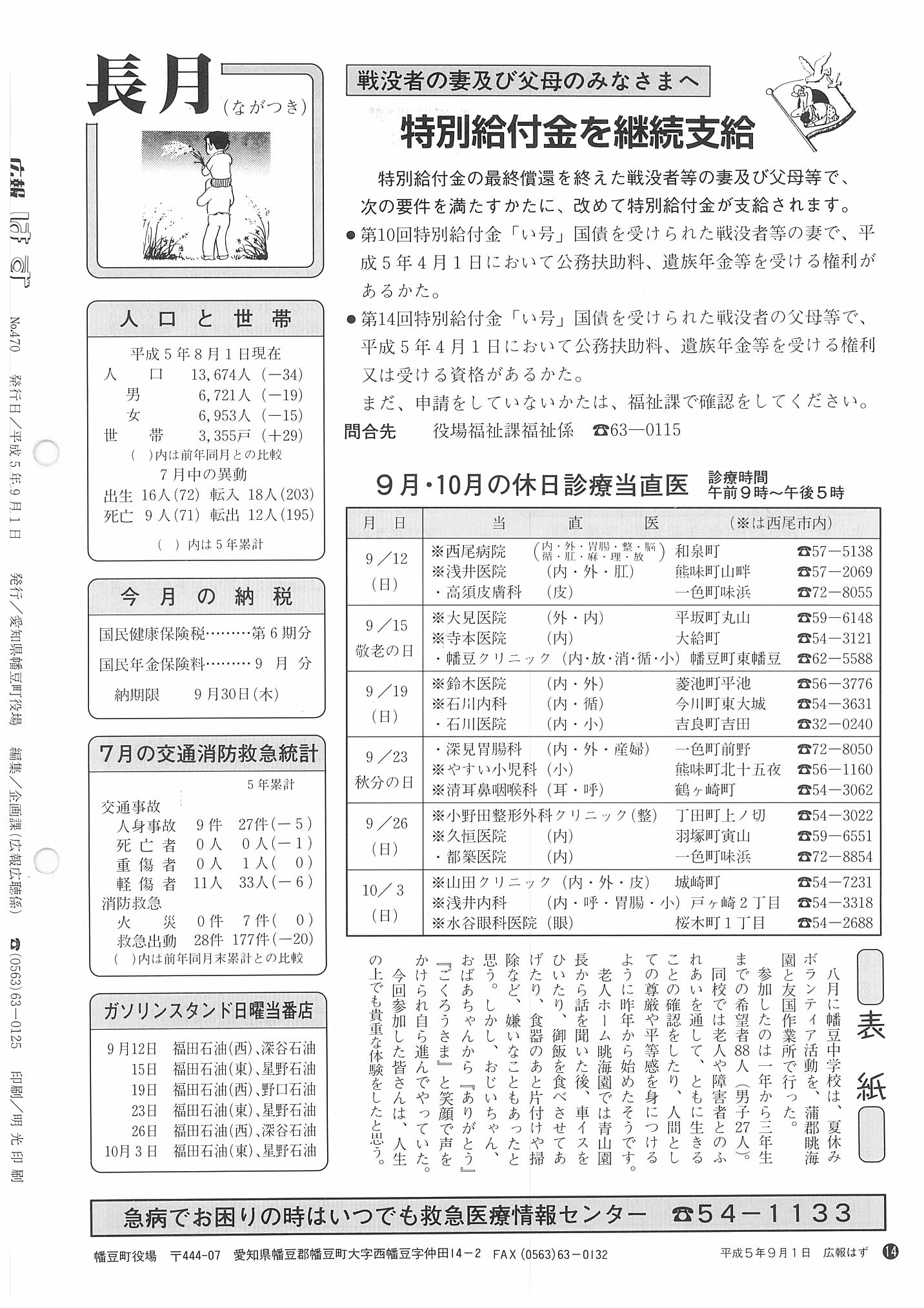 「広報はず」 1993年(平成5年) 9月号 目次