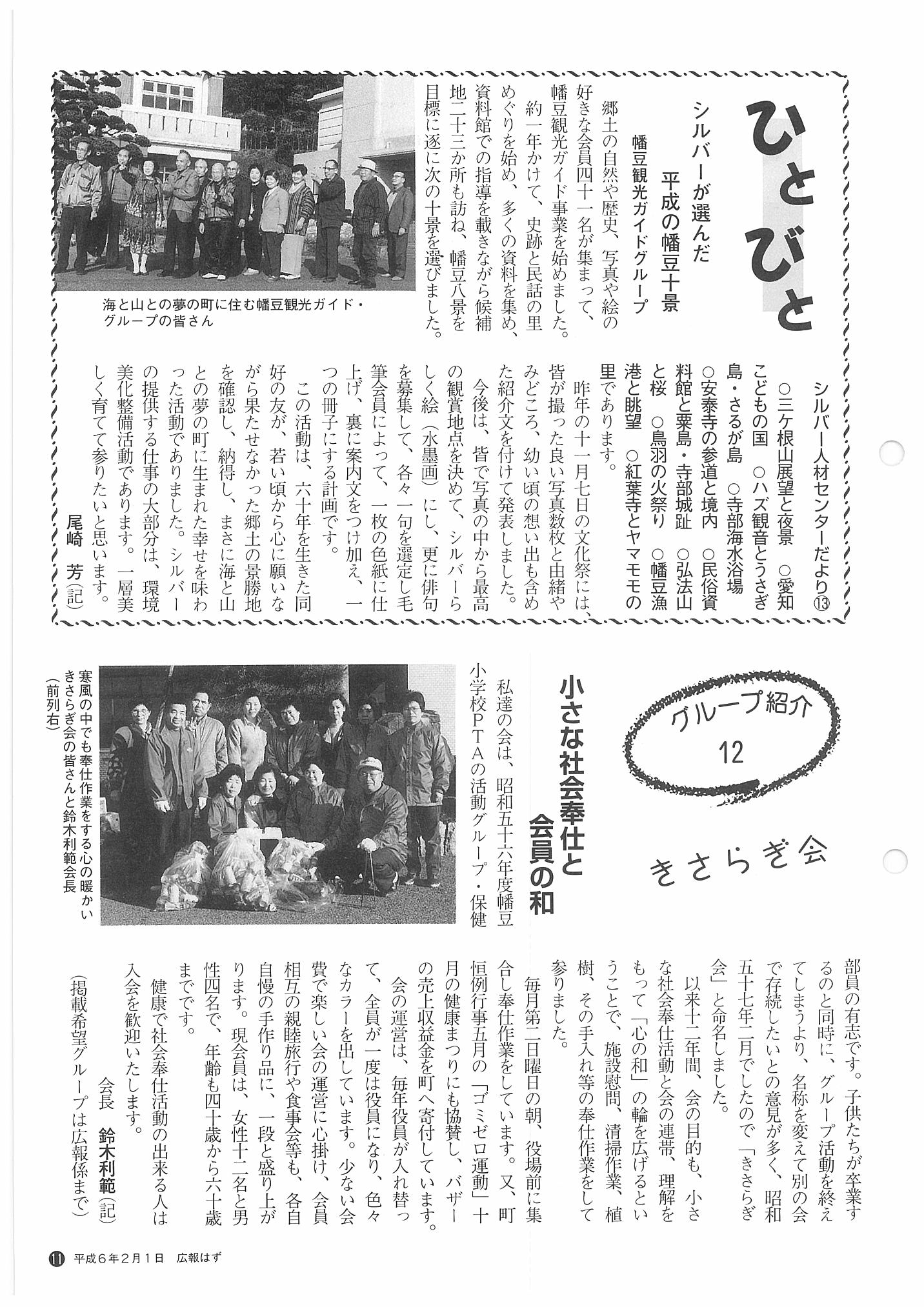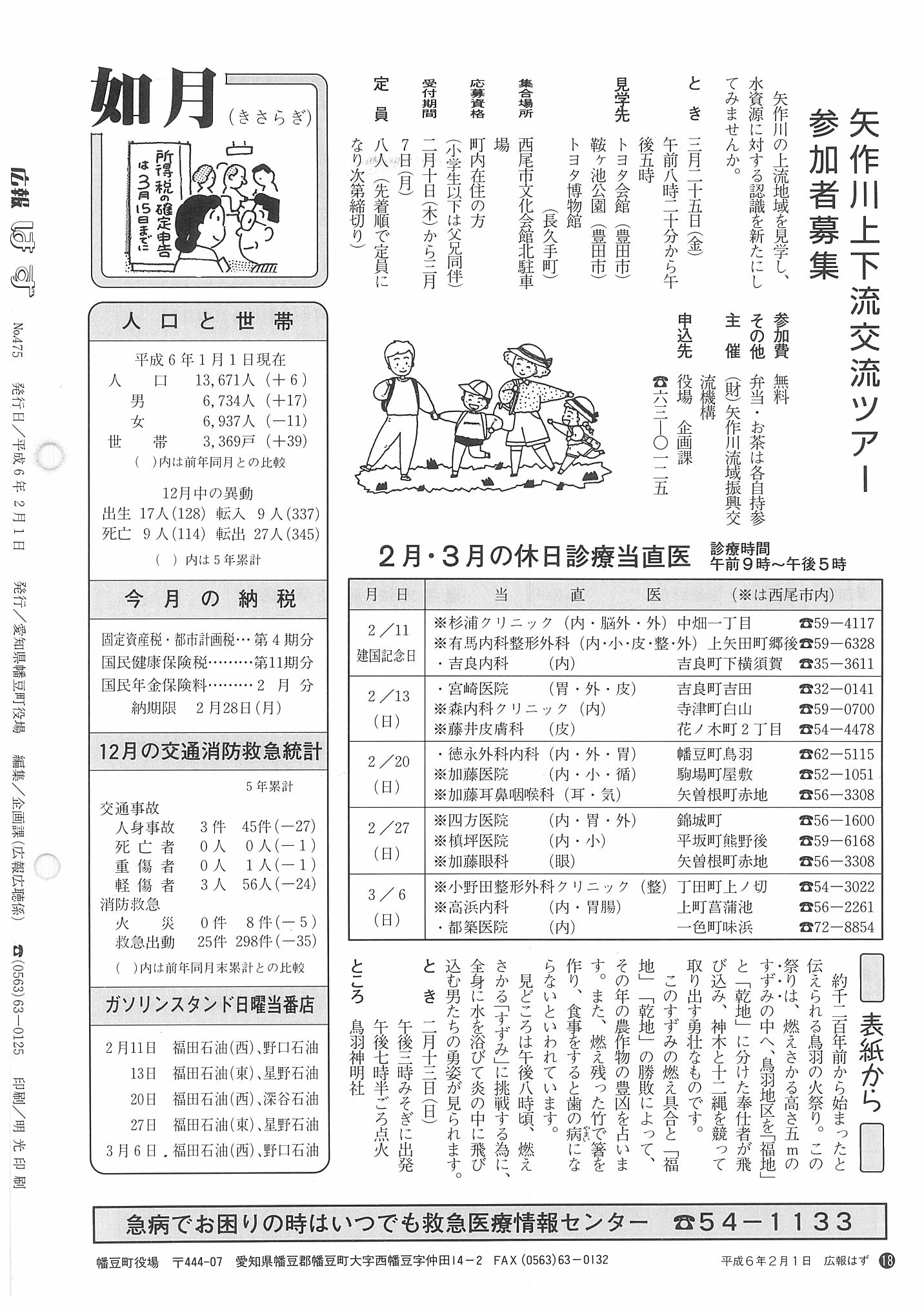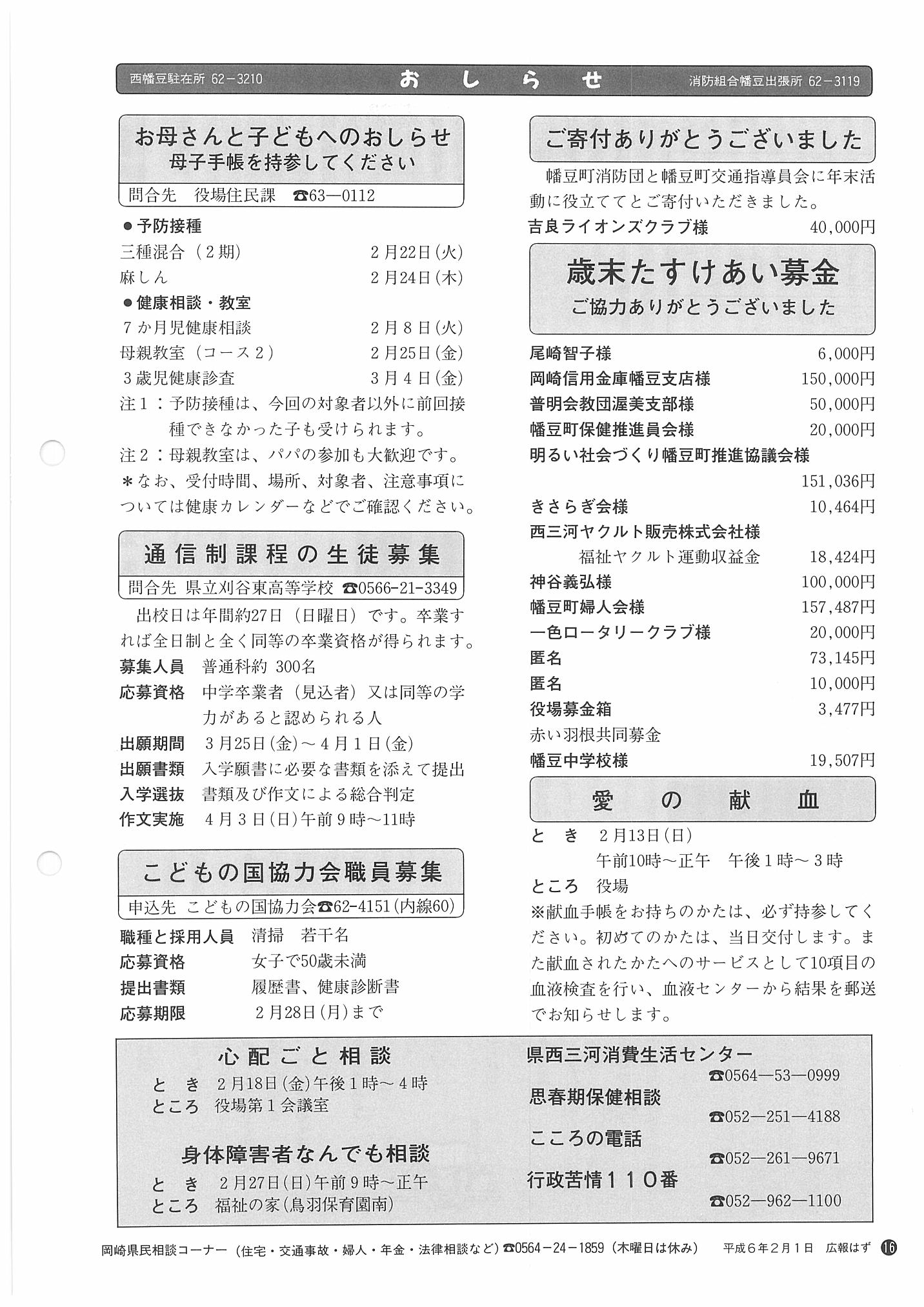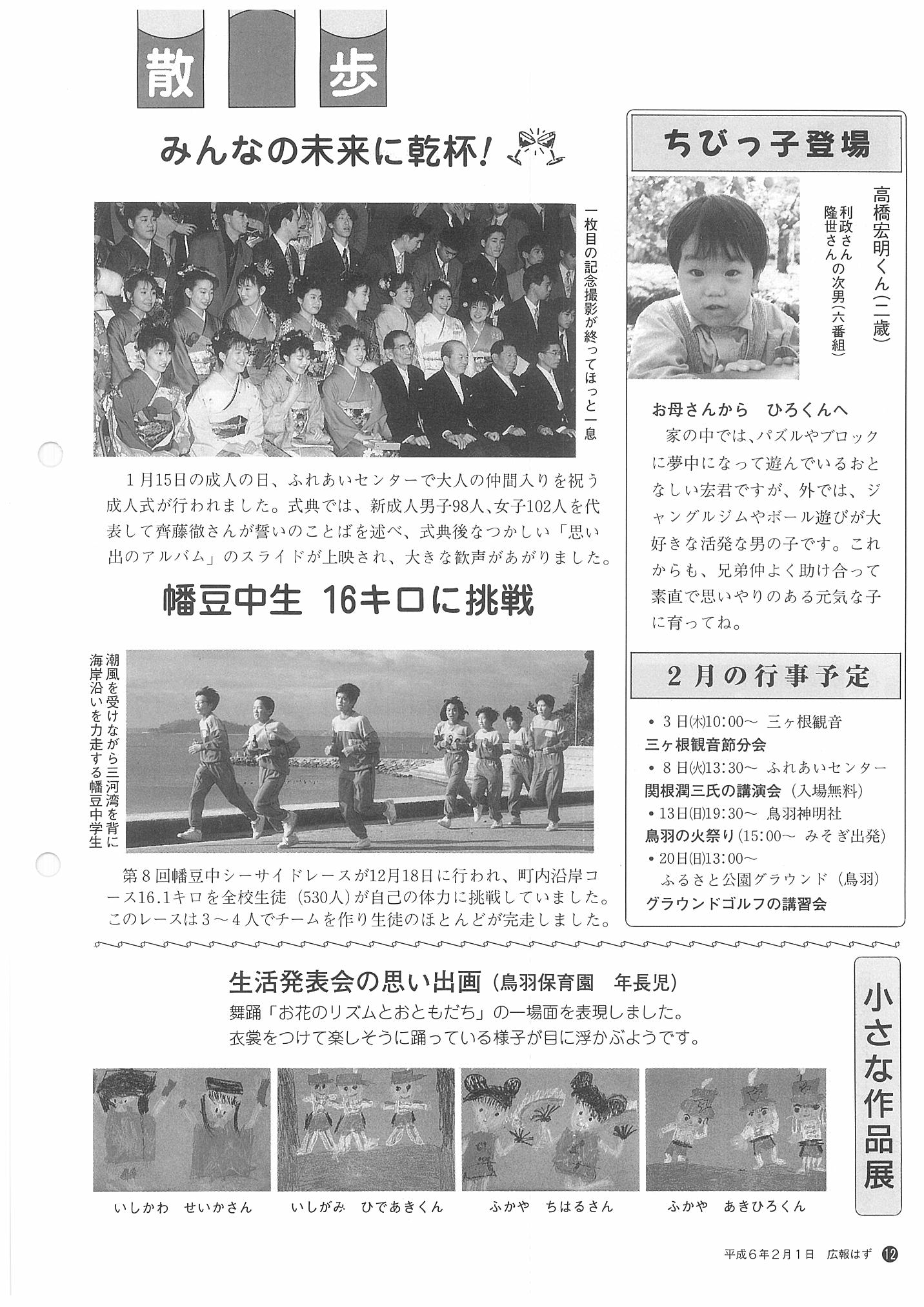 「広報はず」 1994年(平成6年) 2月号 目次