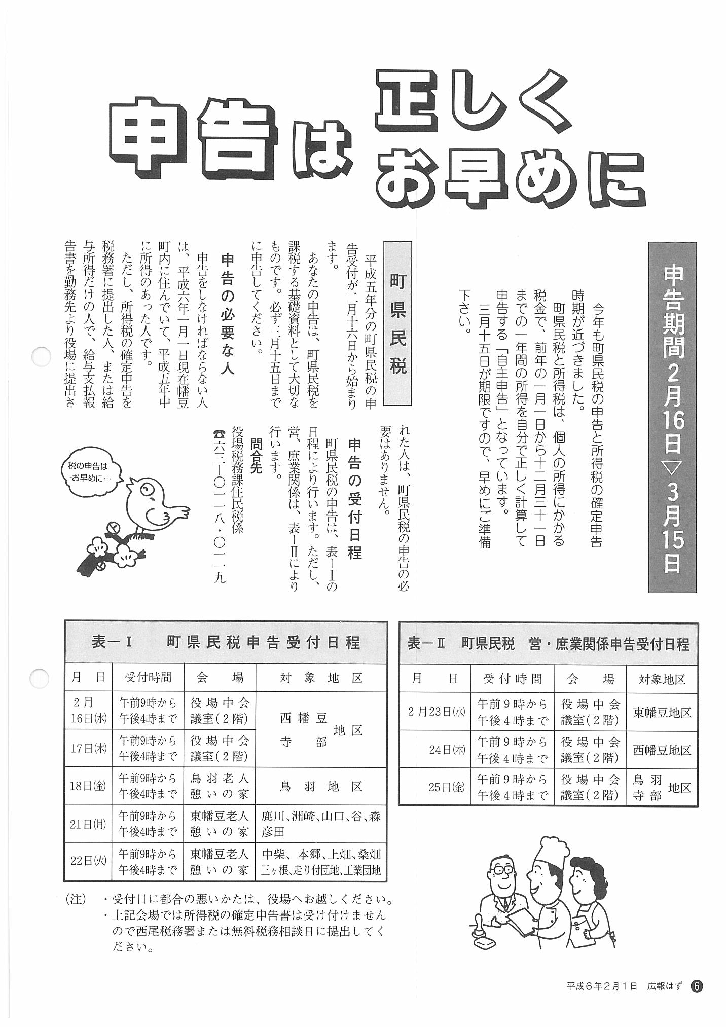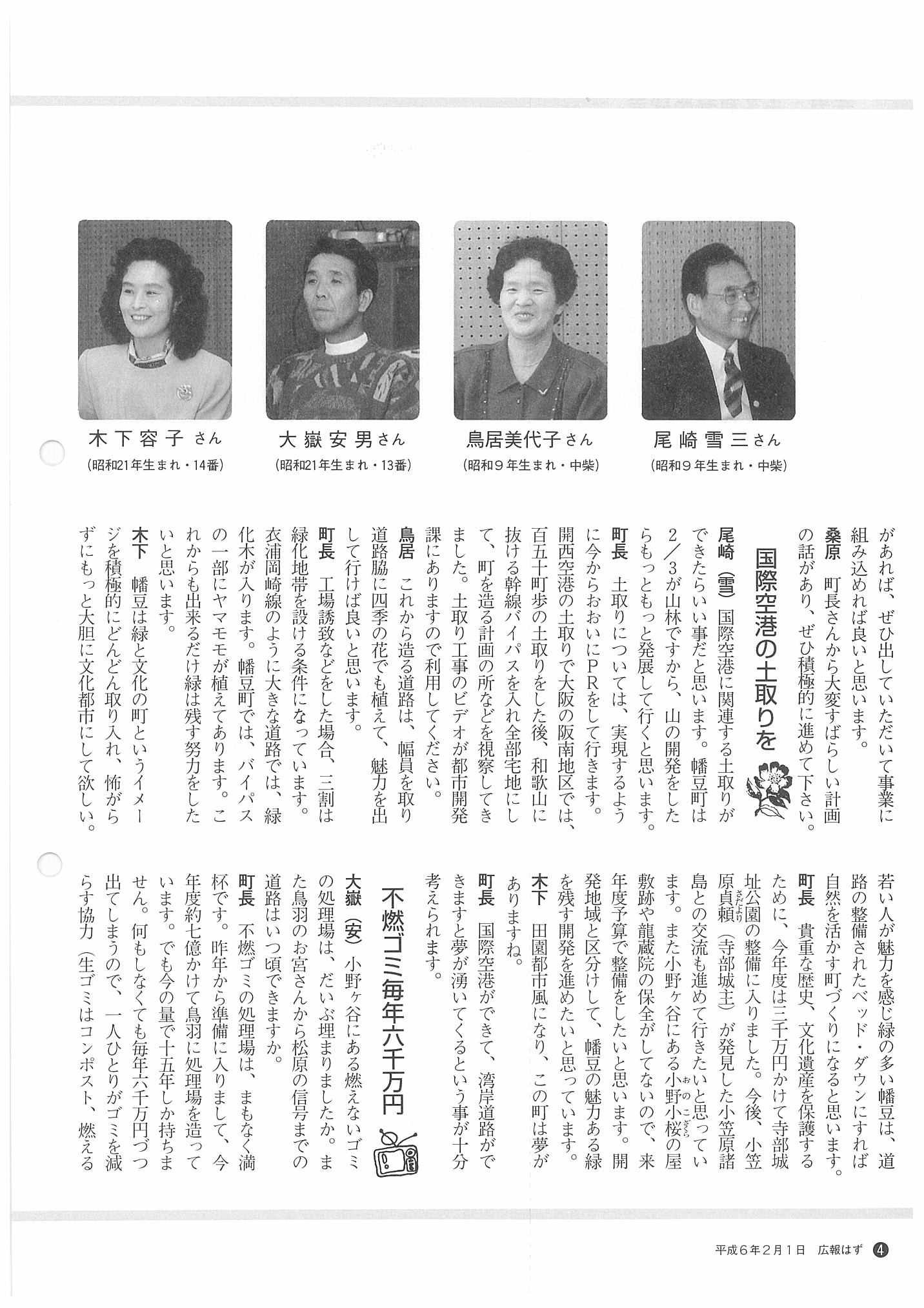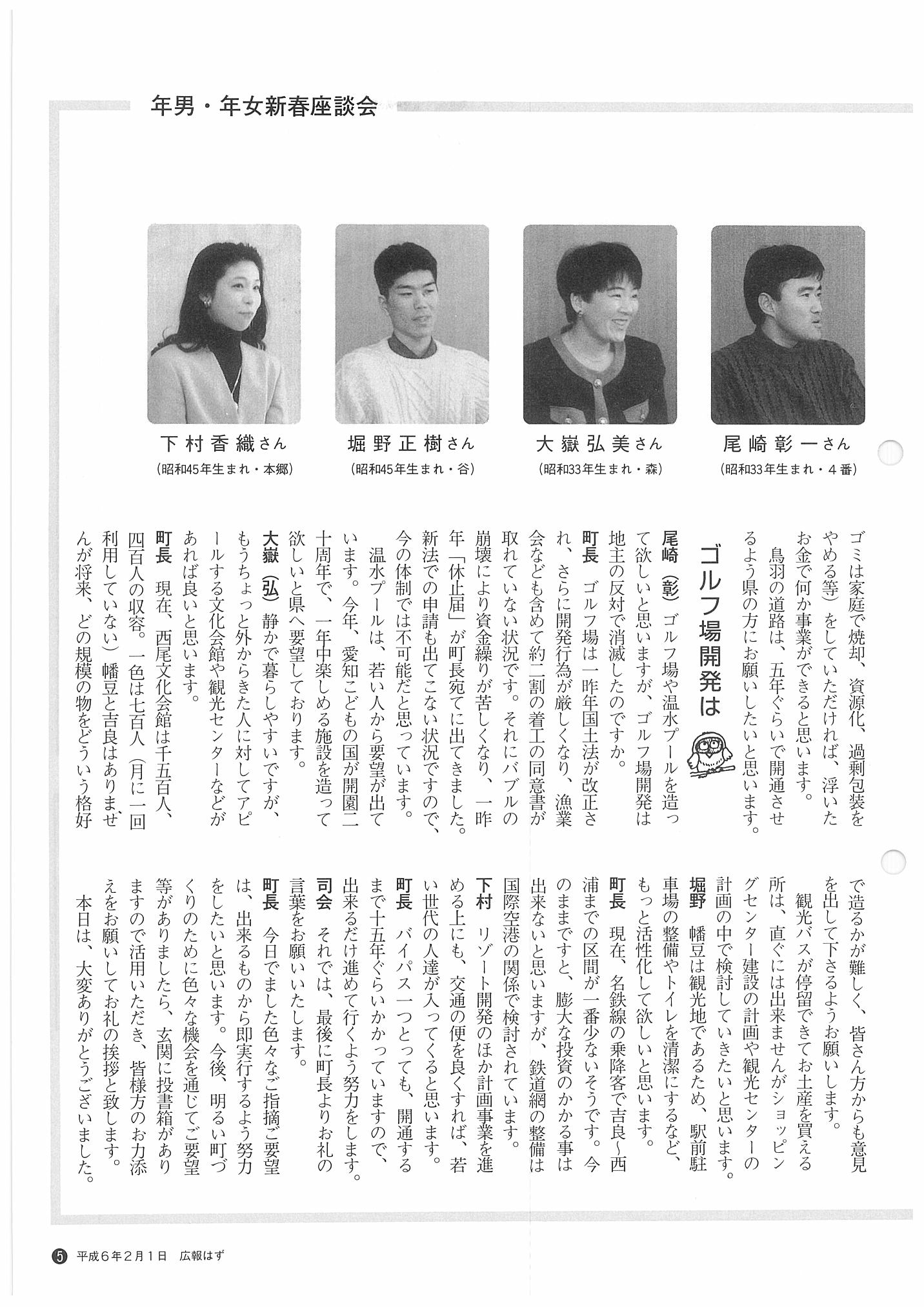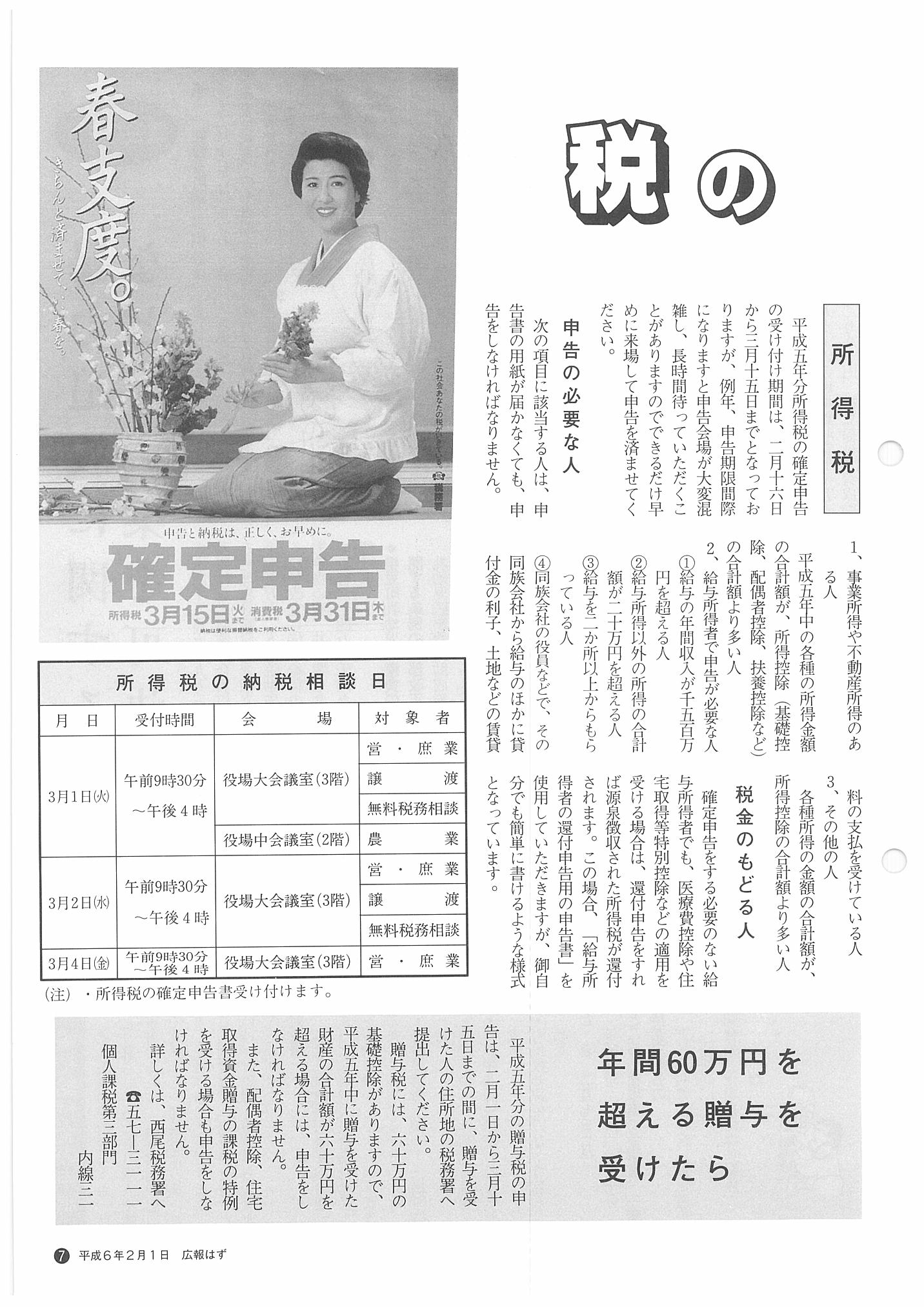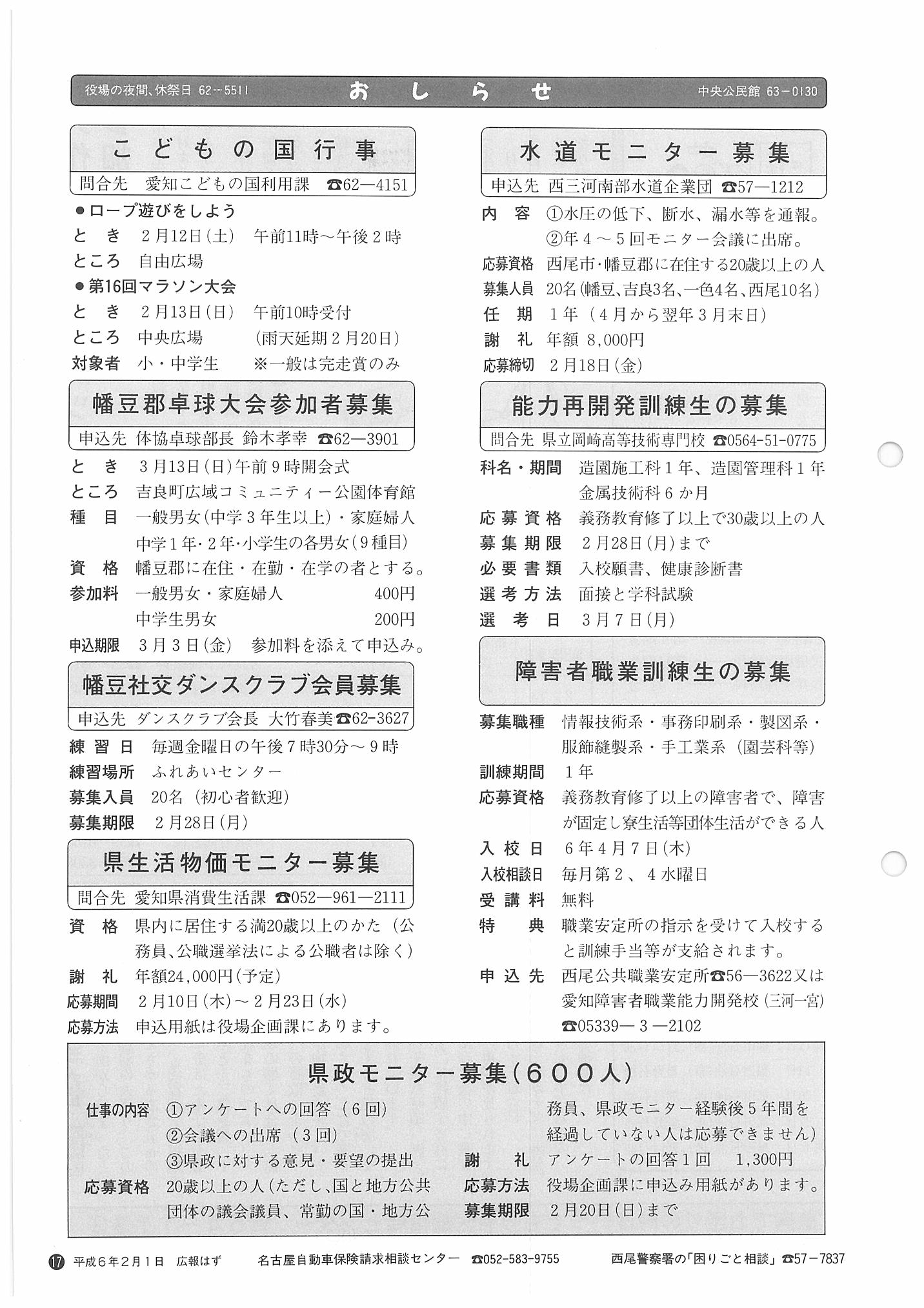 「広報はず」 1994年(平成6年) 2月号 目次