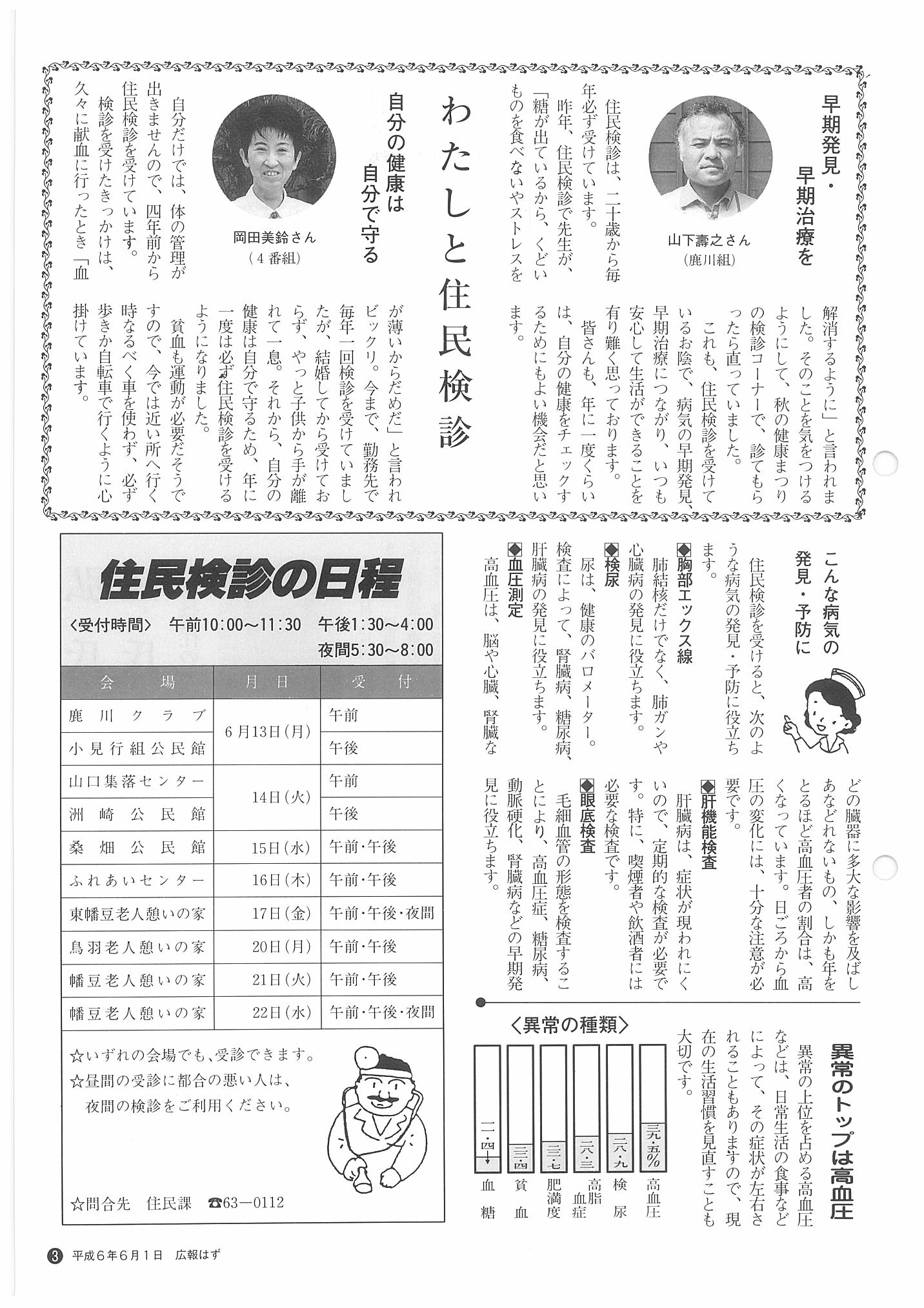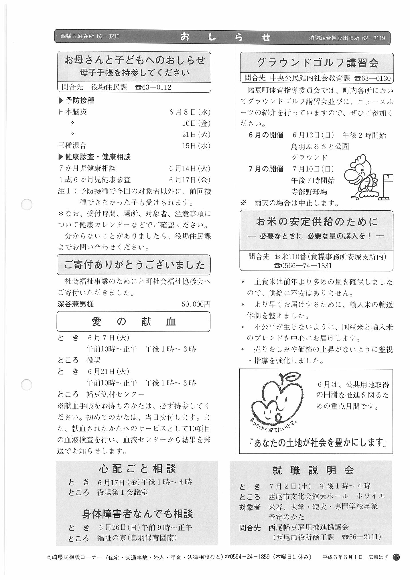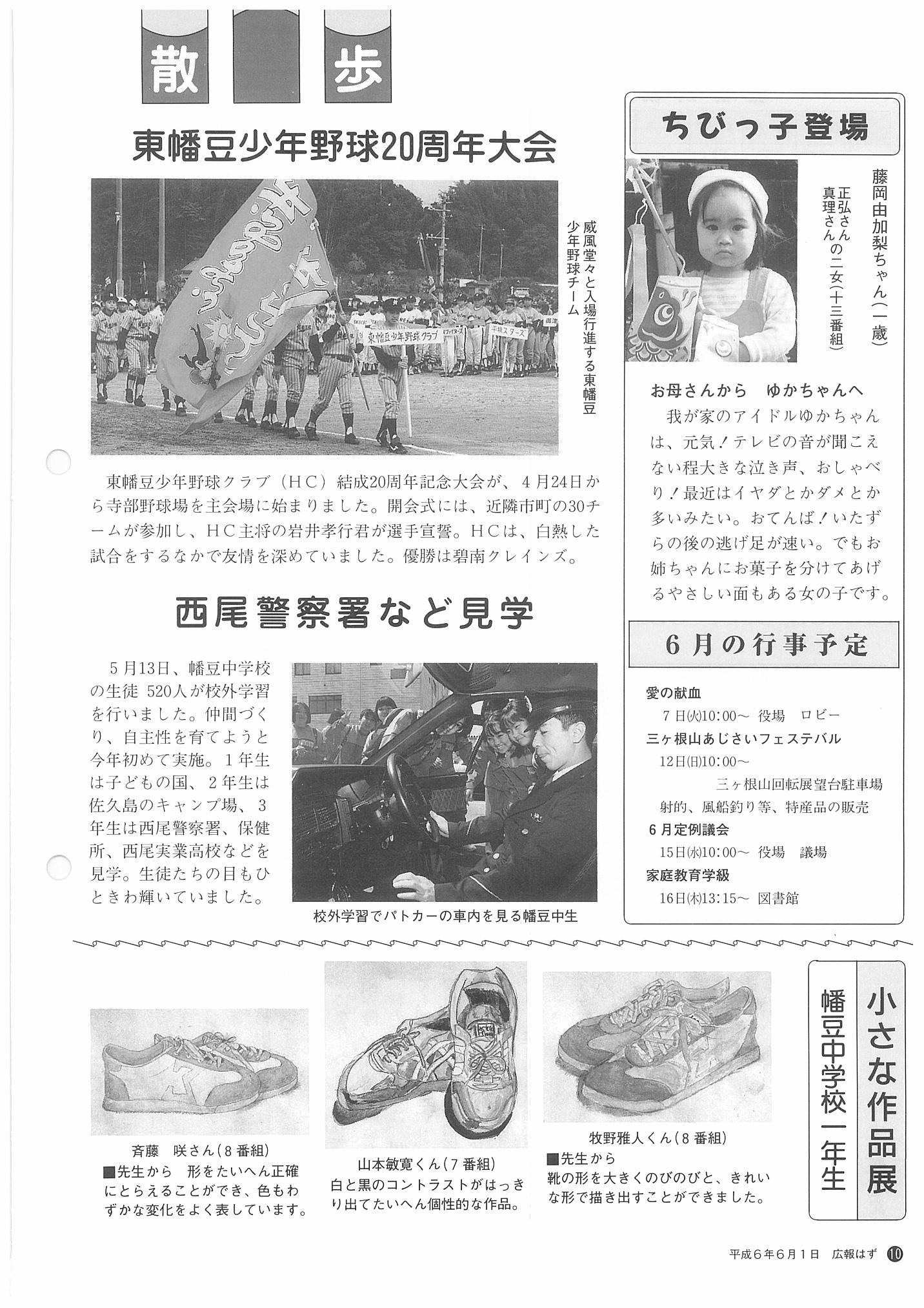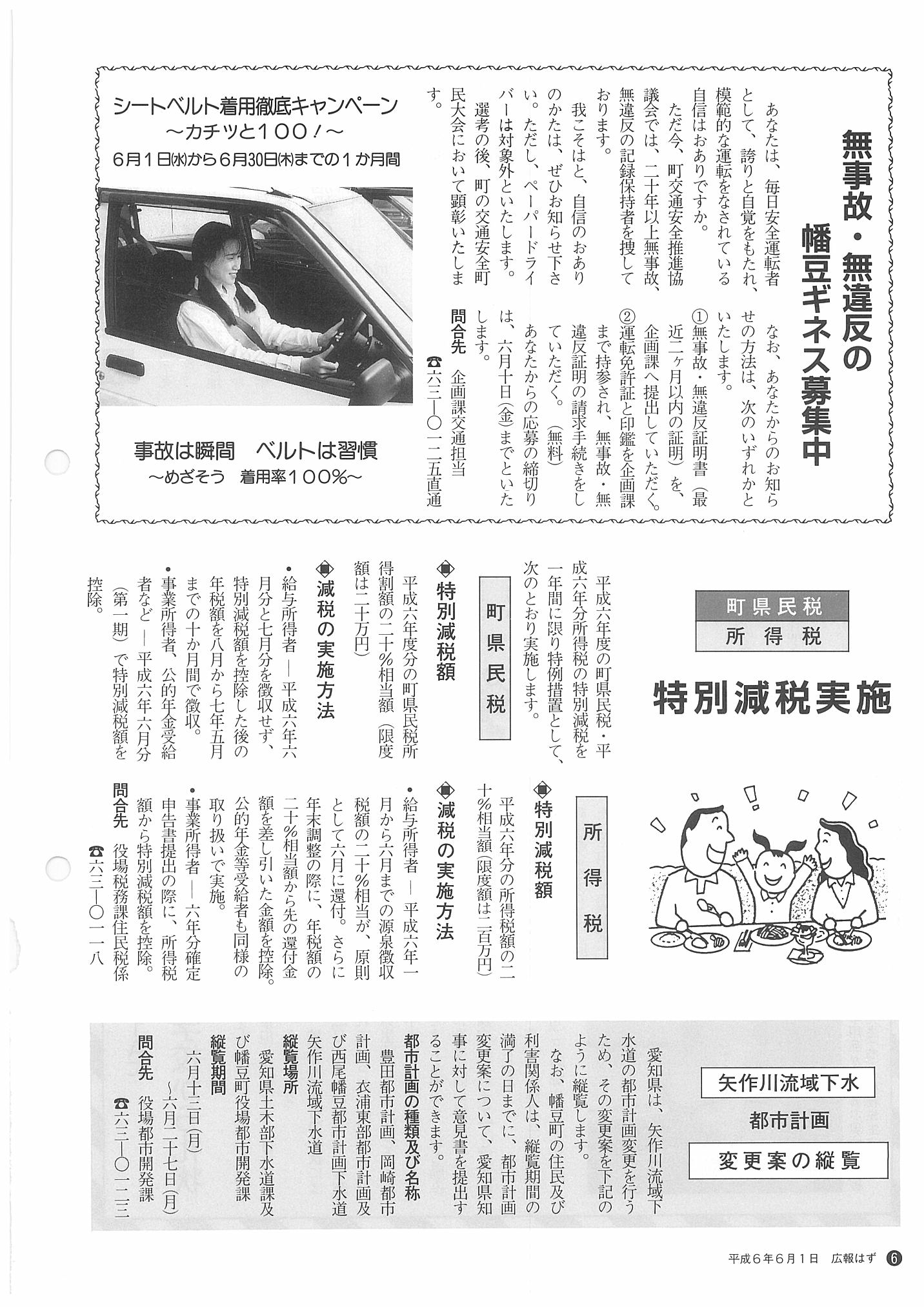 「広報はず」 1994年(平成6年) 6月号 目次