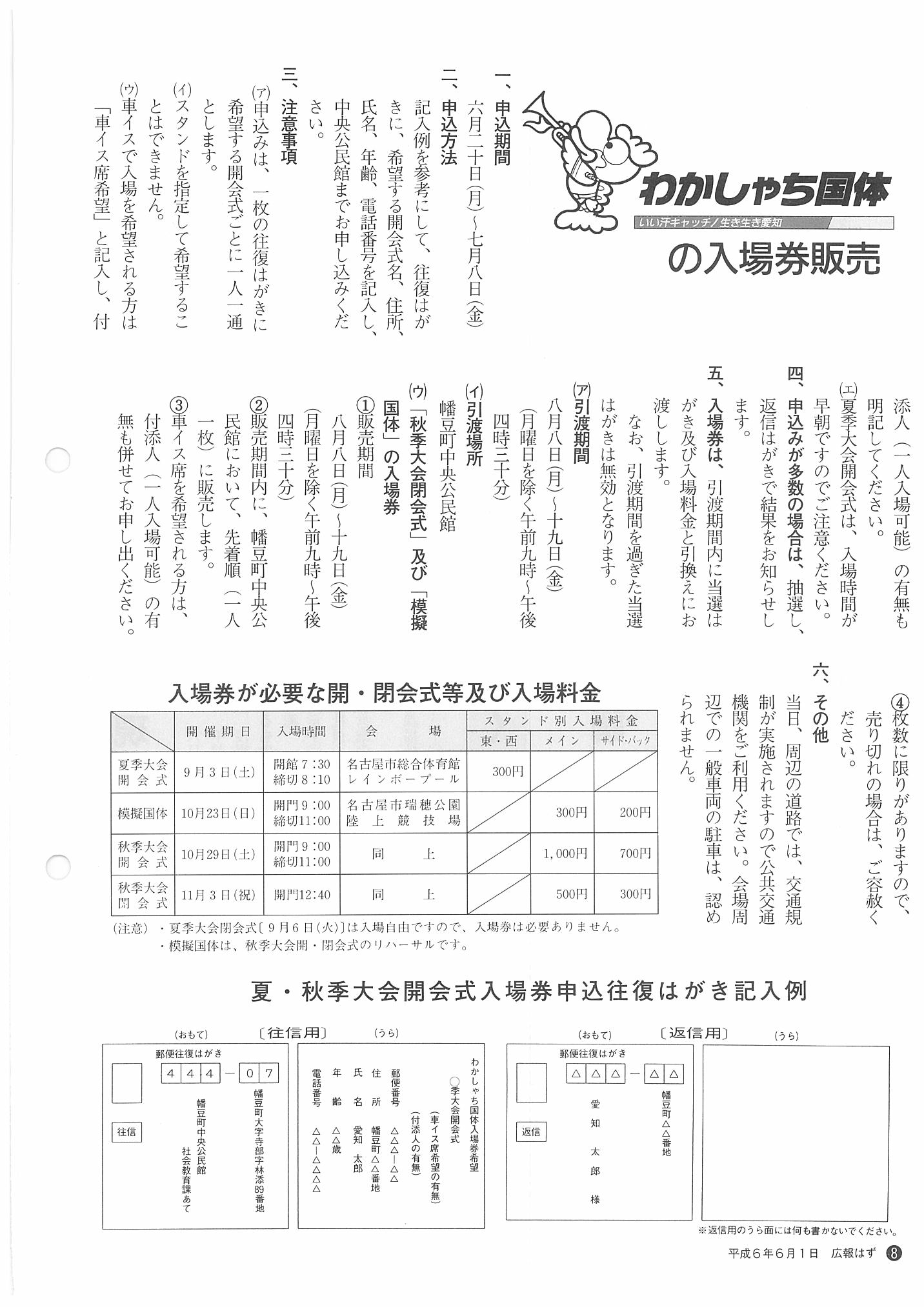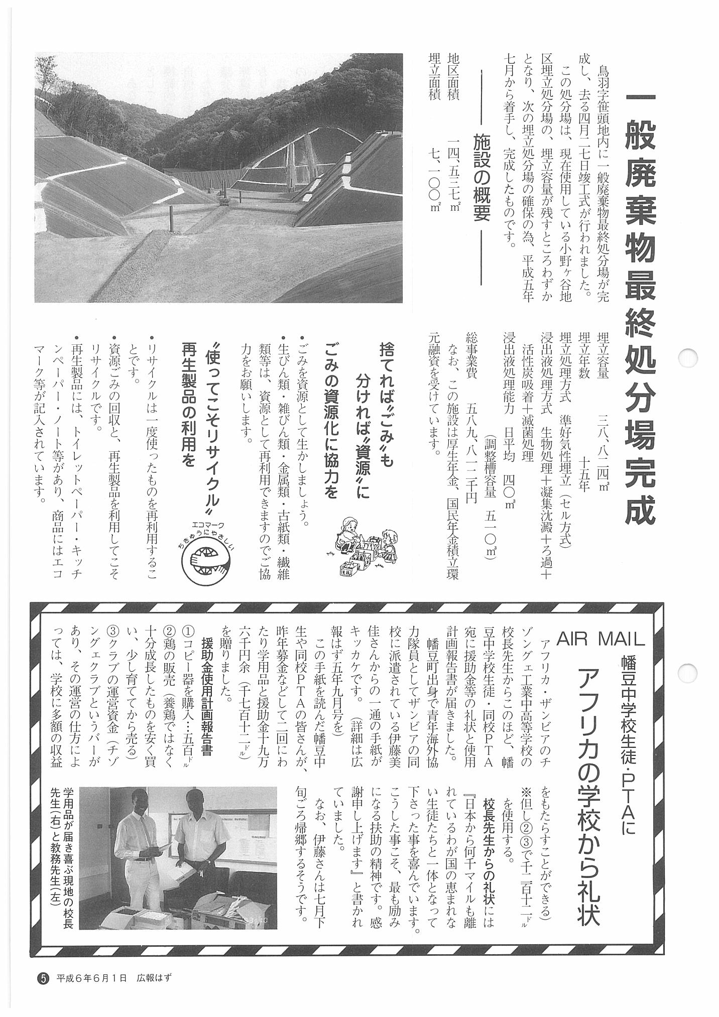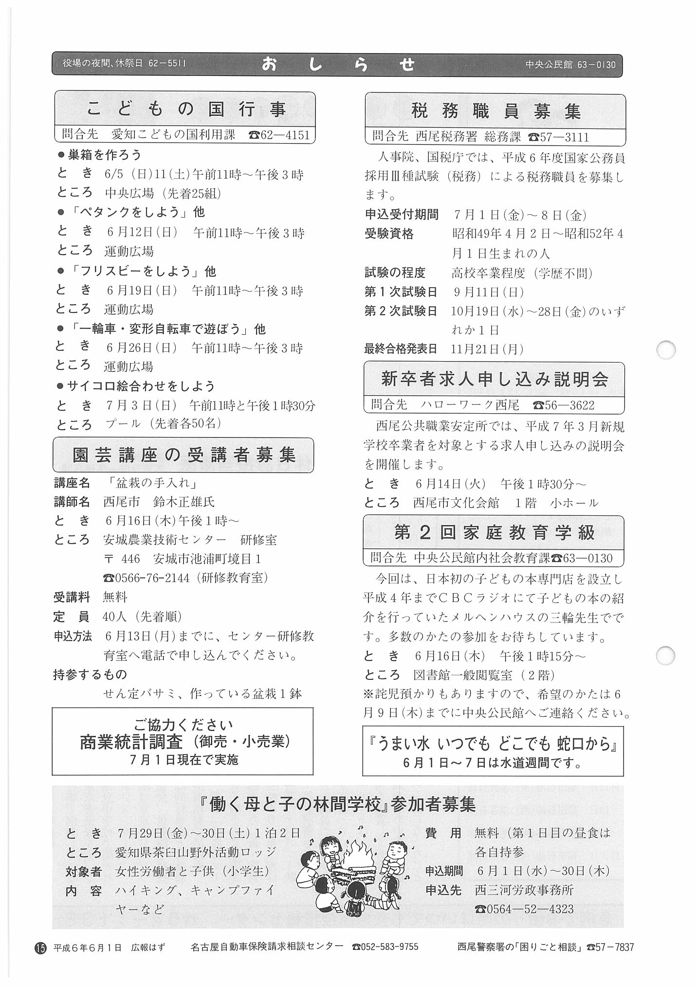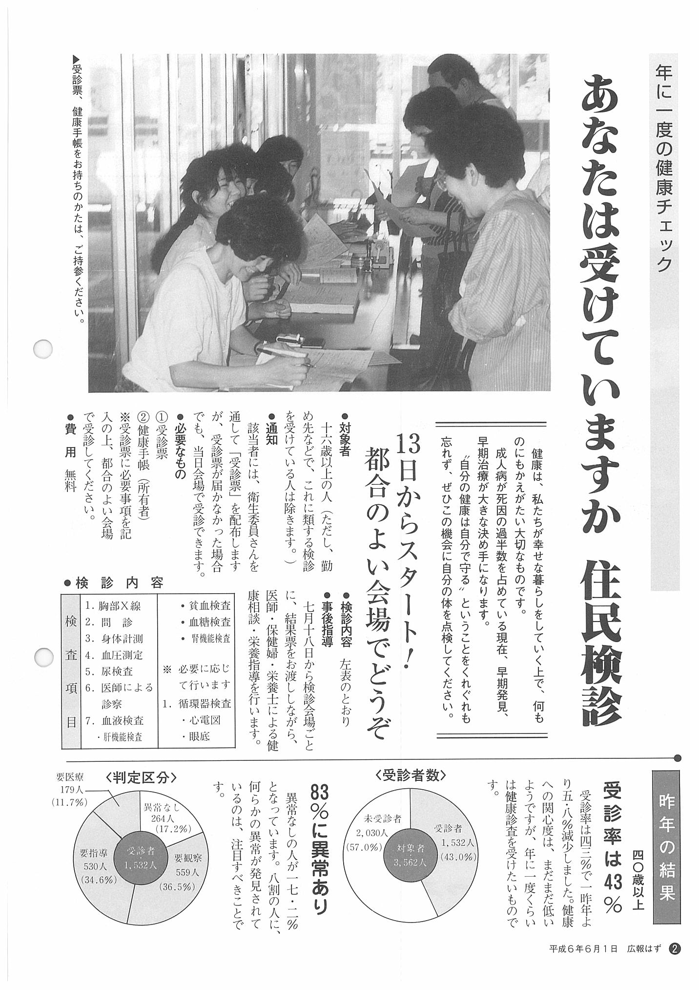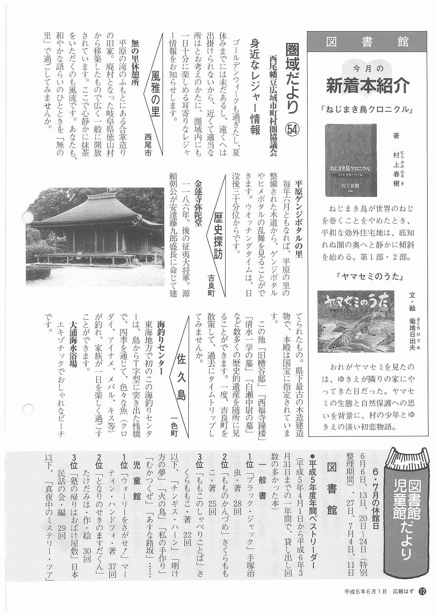 「広報はず」 1994年(平成6年) 6月号 目次