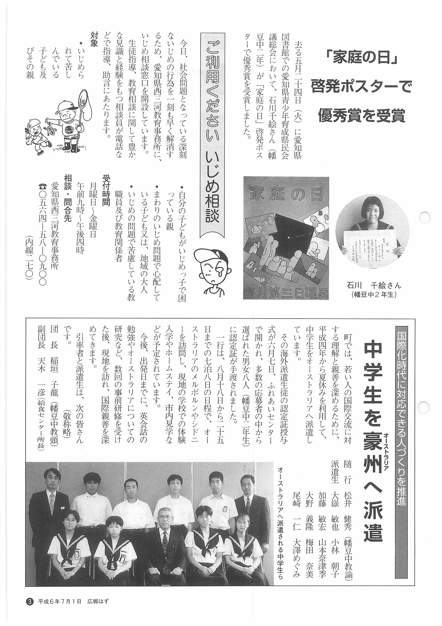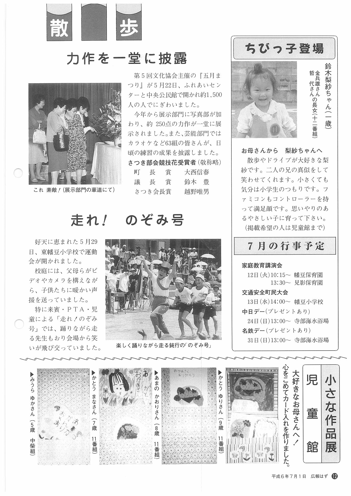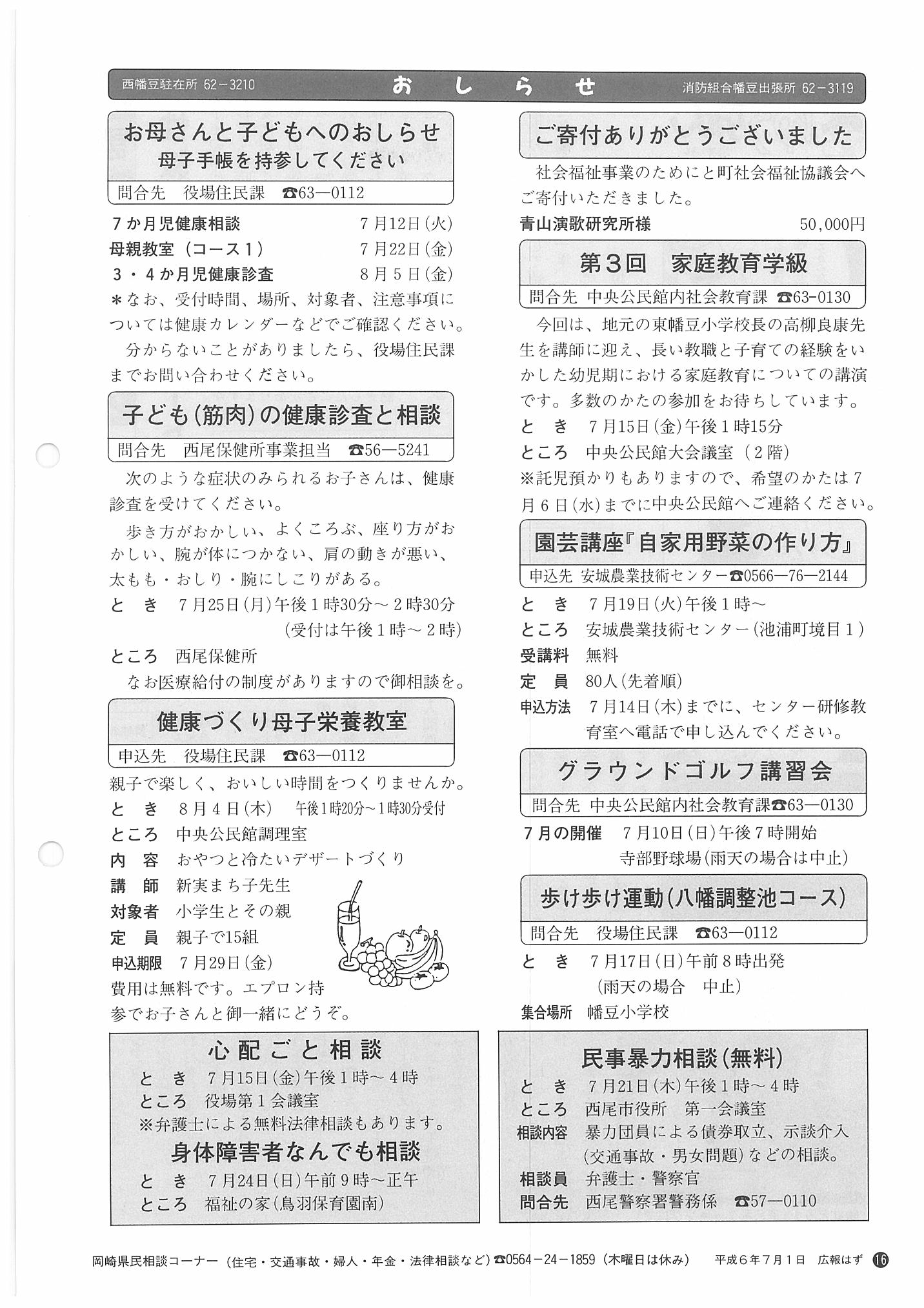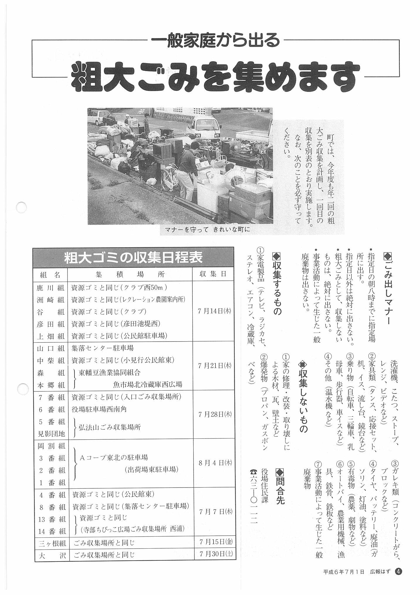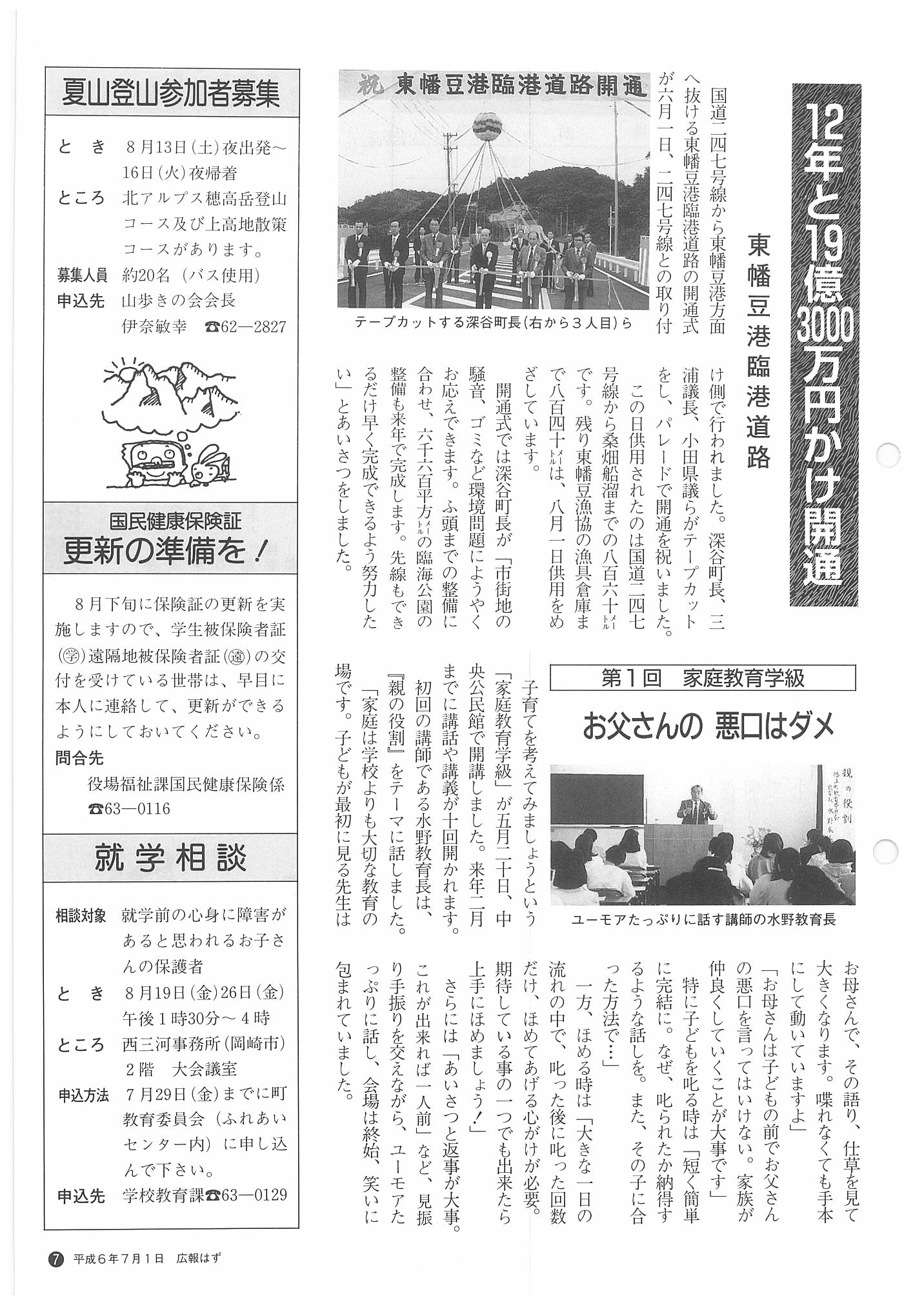 「広報はず」 1994年(平成6年) 7月号 目次