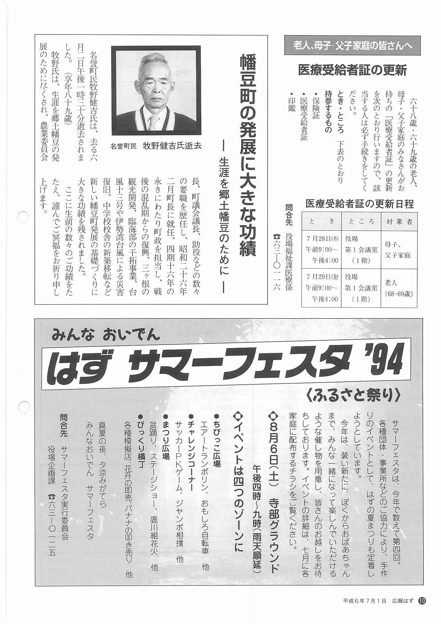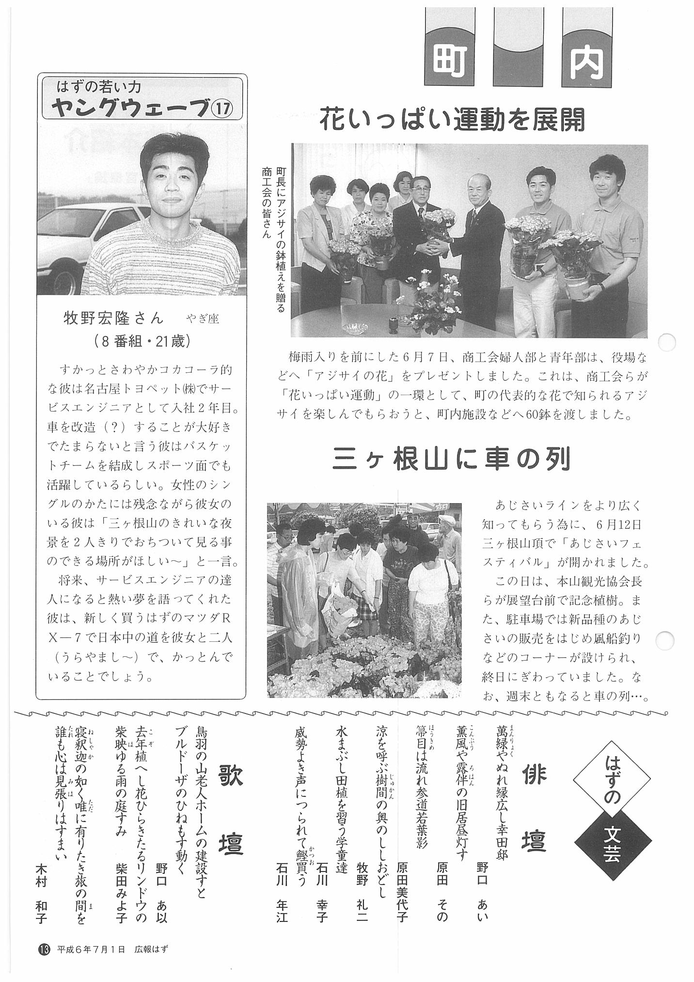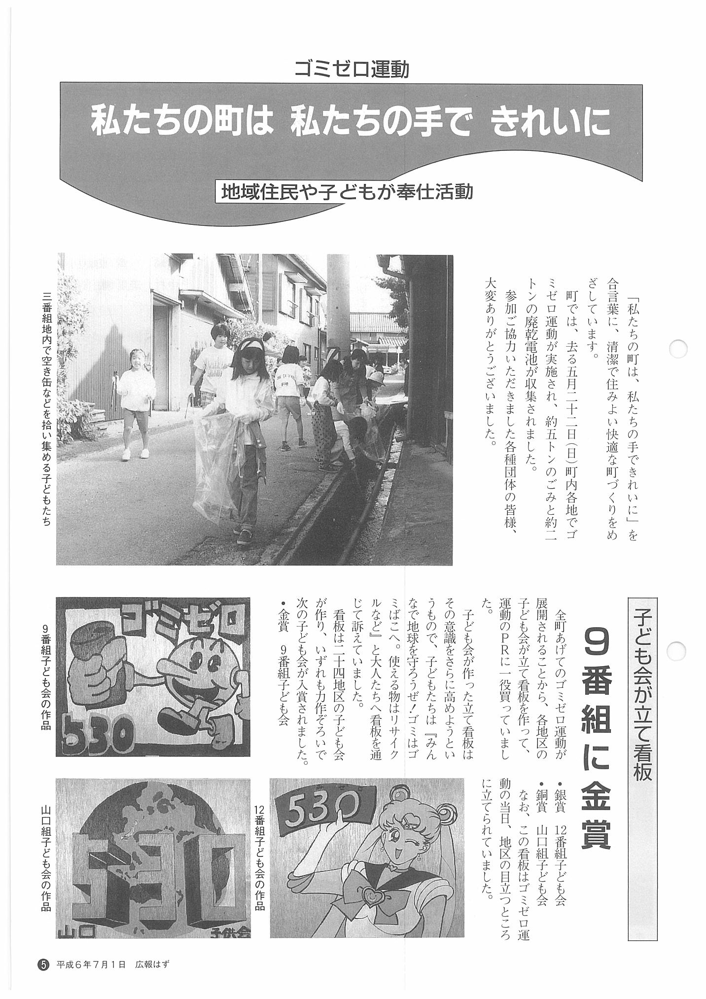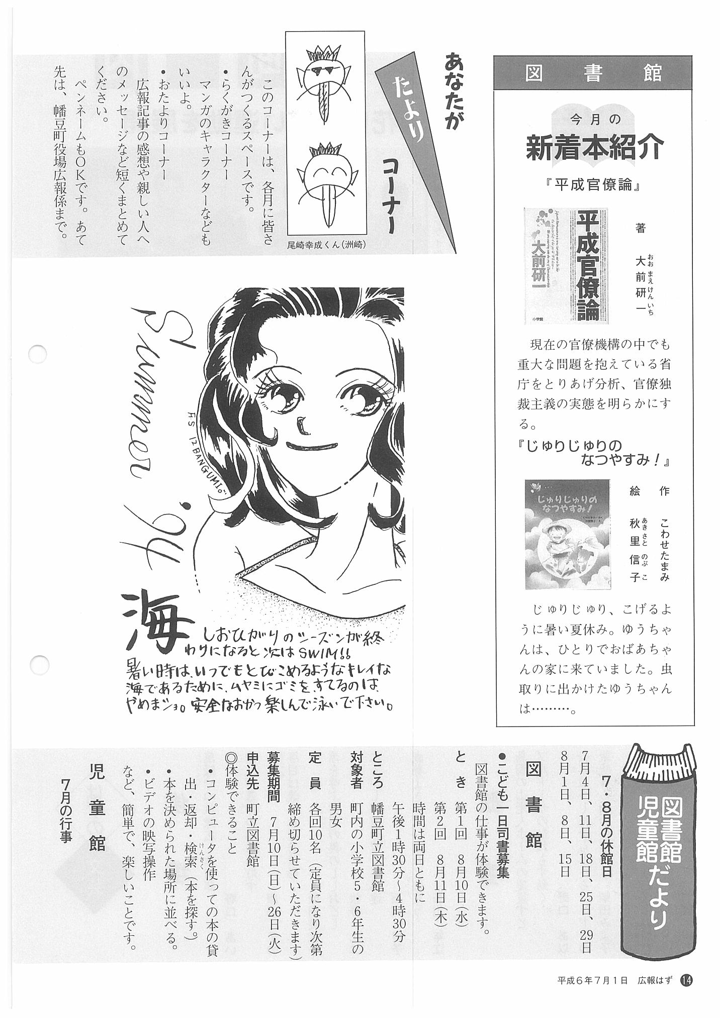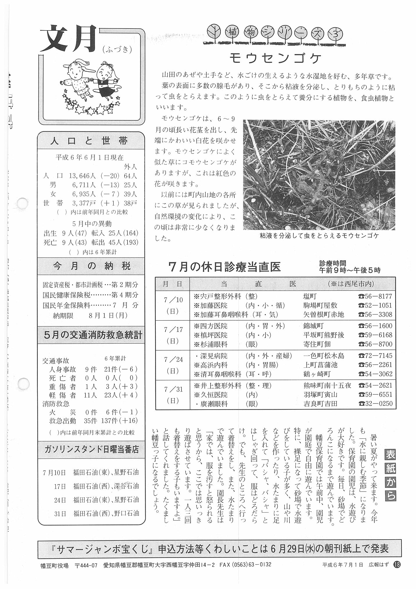 「広報はず」 1994年(平成6年) 7月号 目次