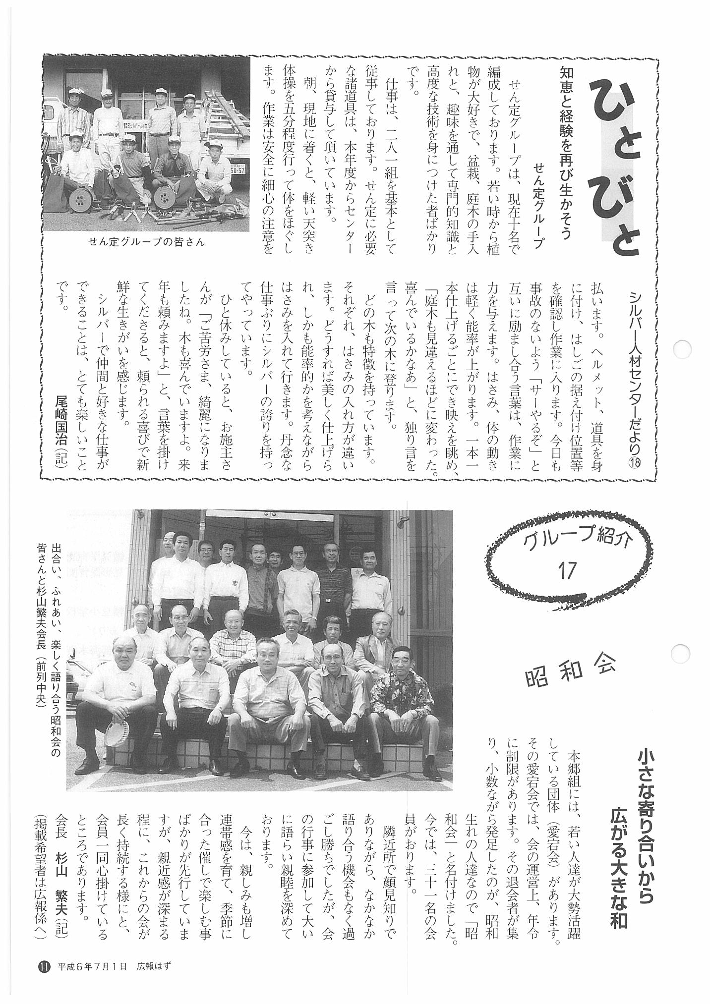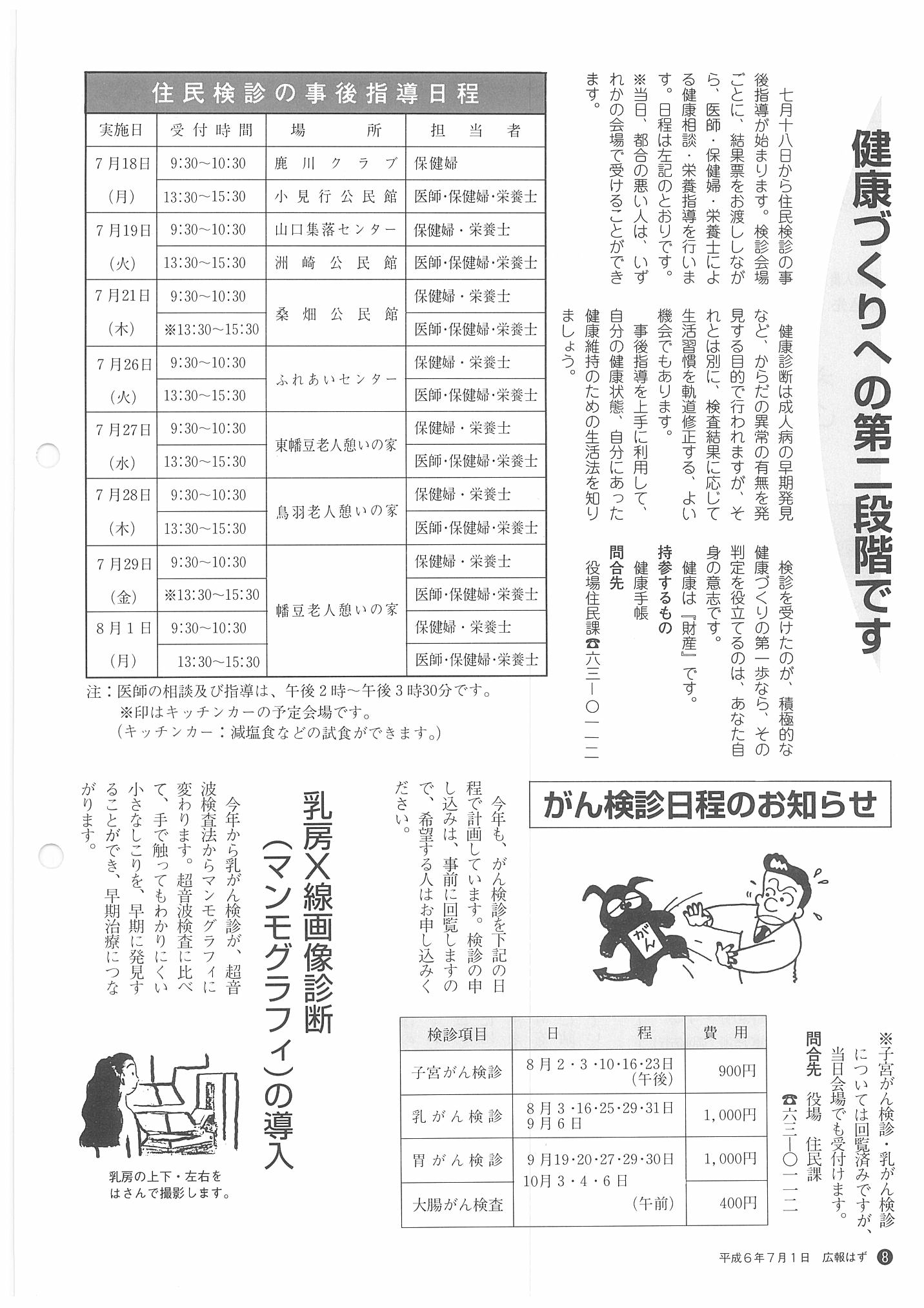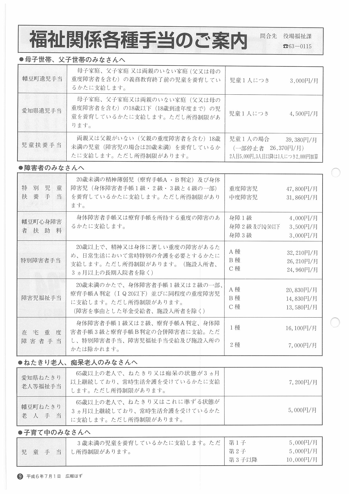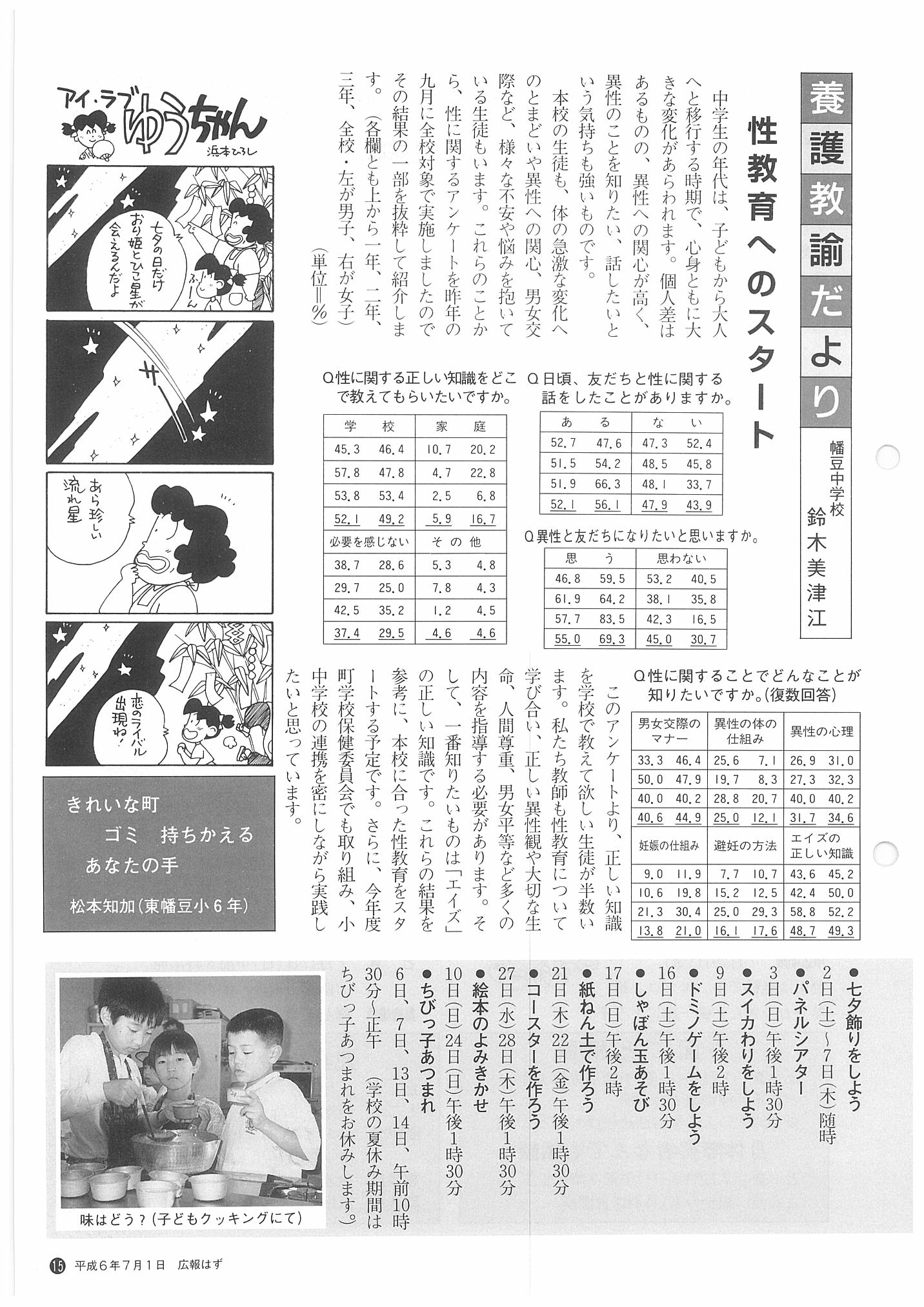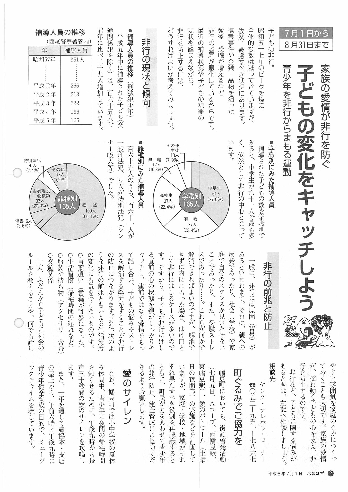 「広報はず」 1994年(平成6年) 7月号 目次