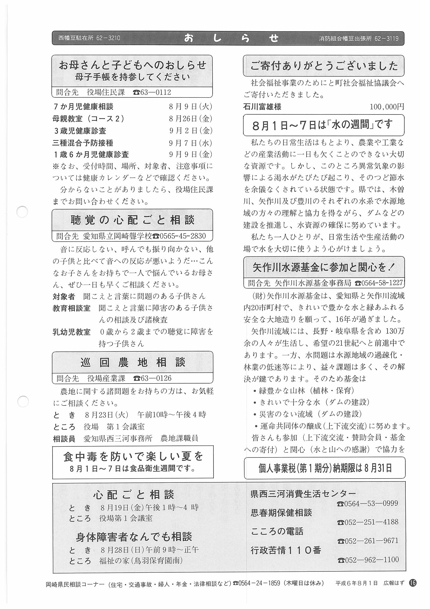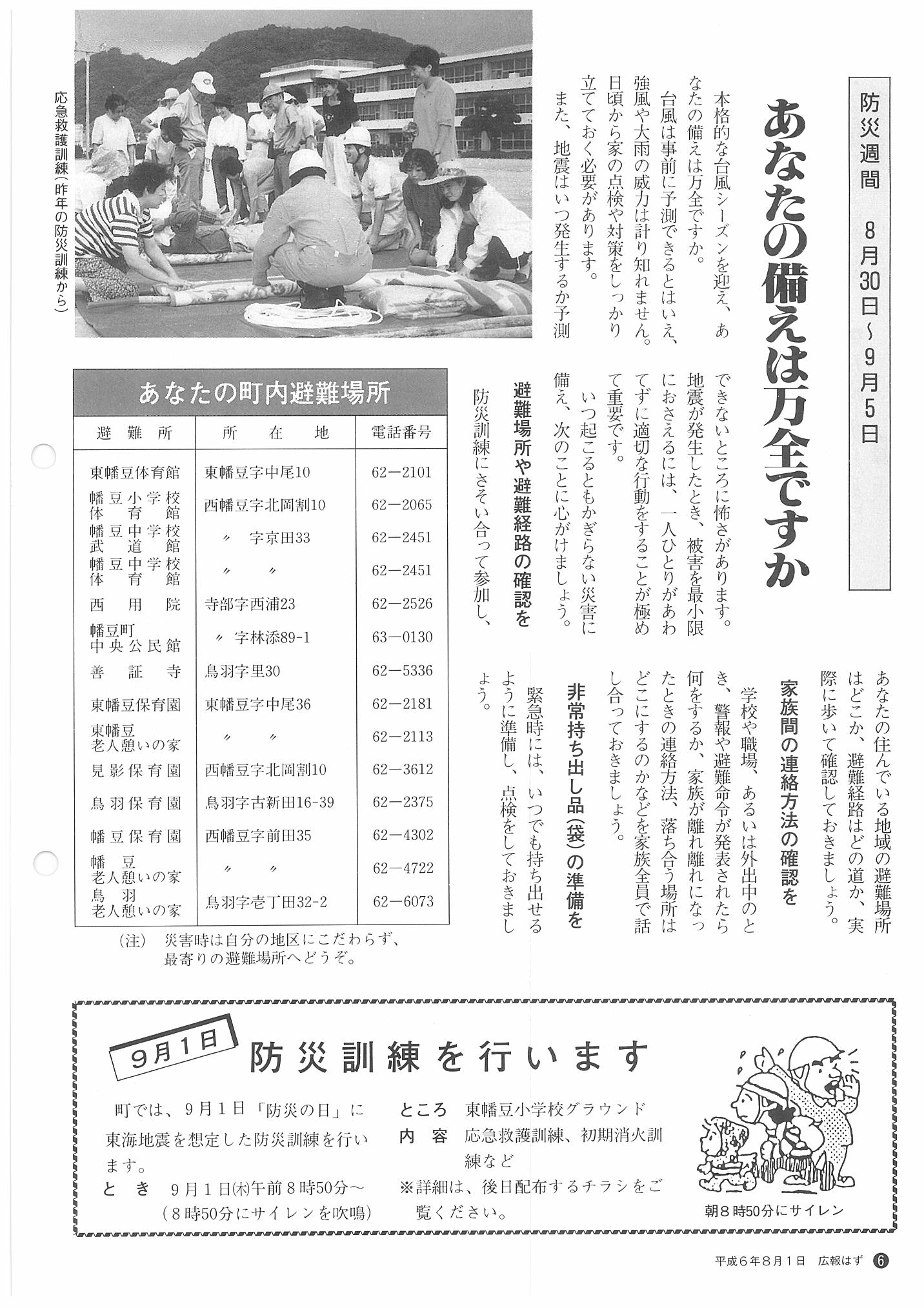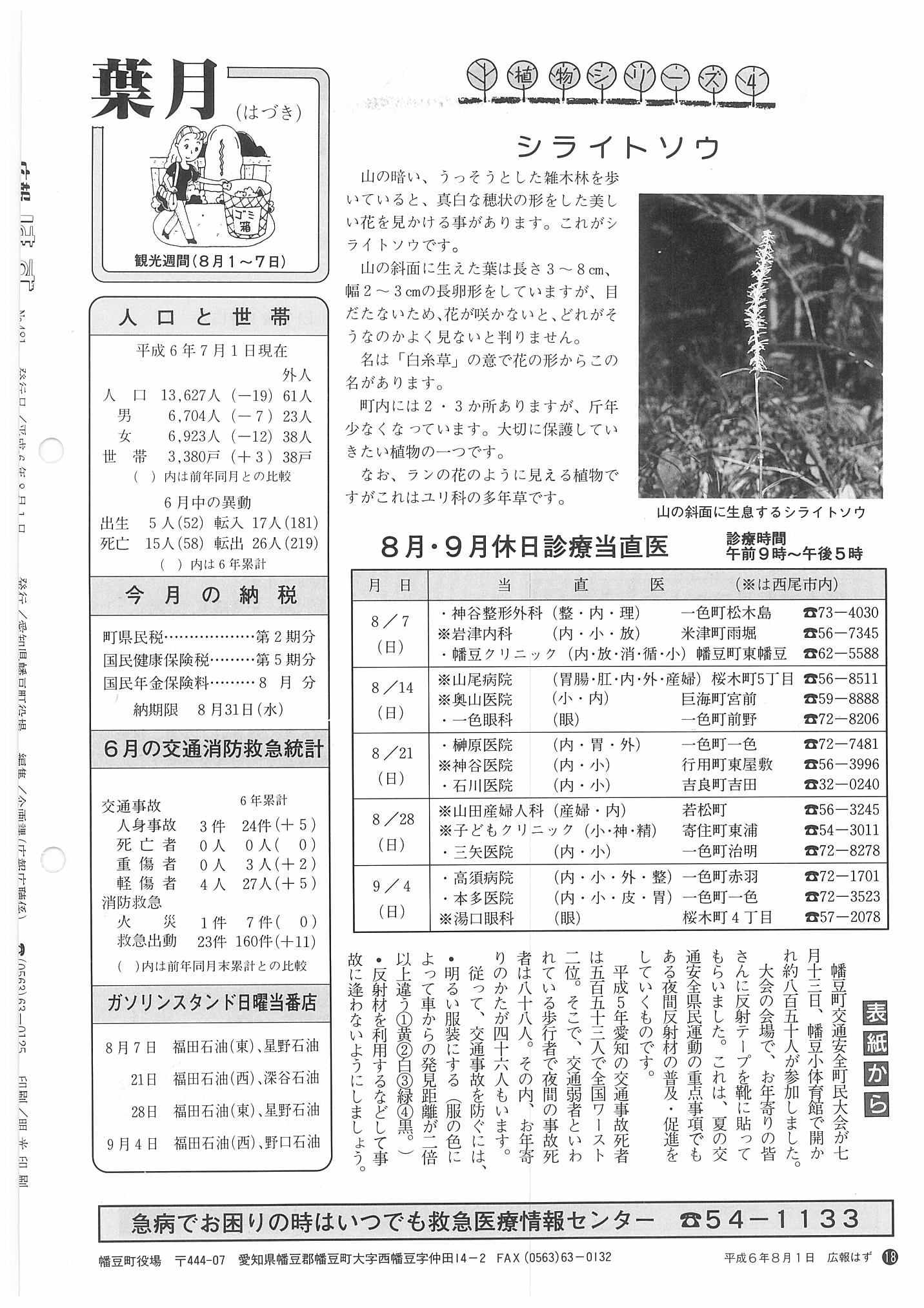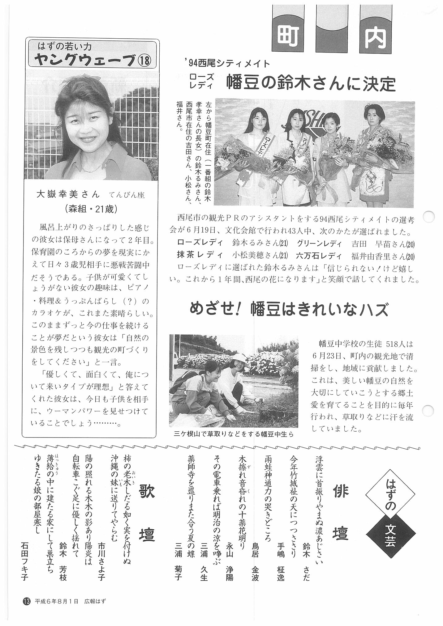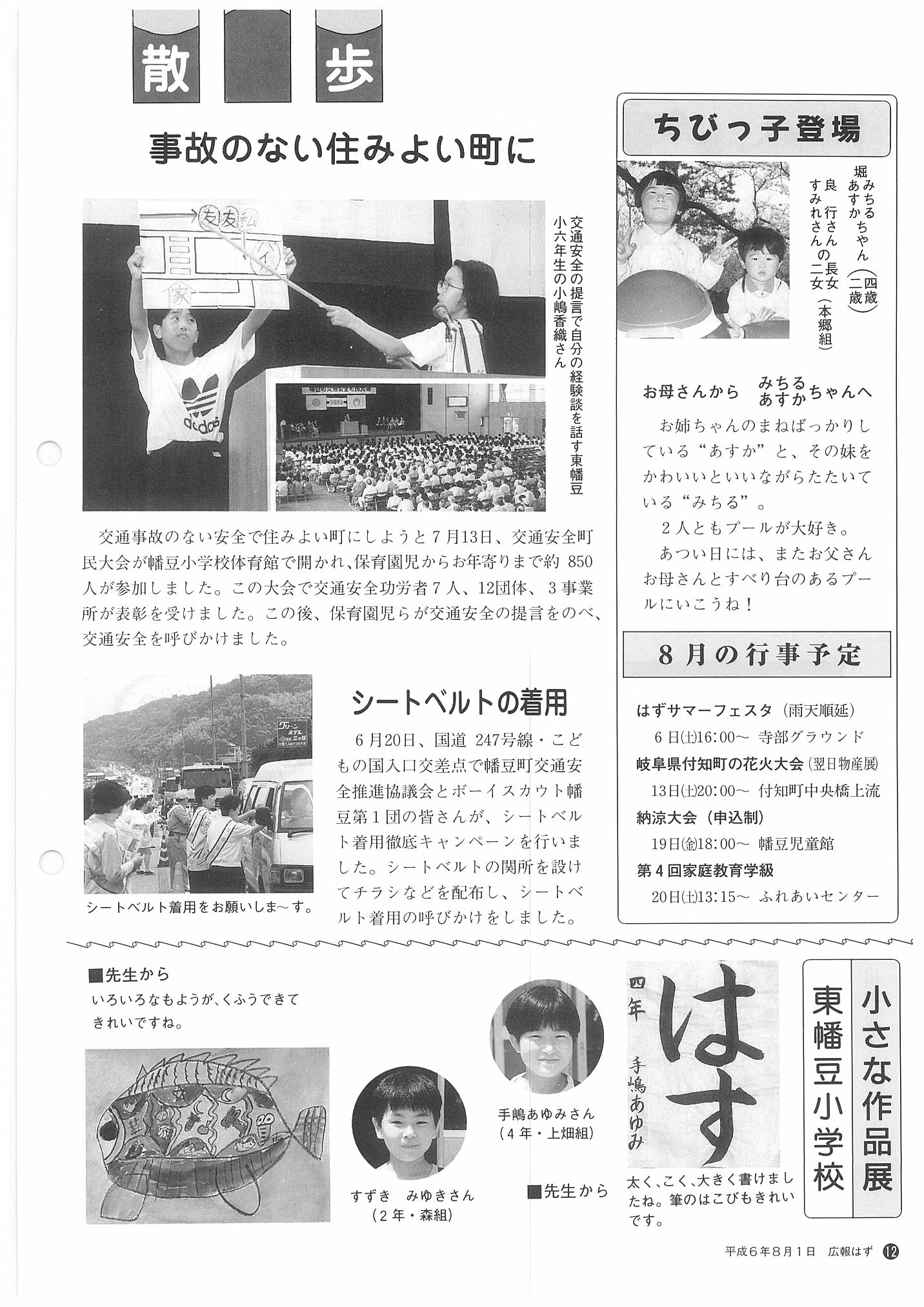 「広報はず」 1994年(平成6年) 8月号 目次
