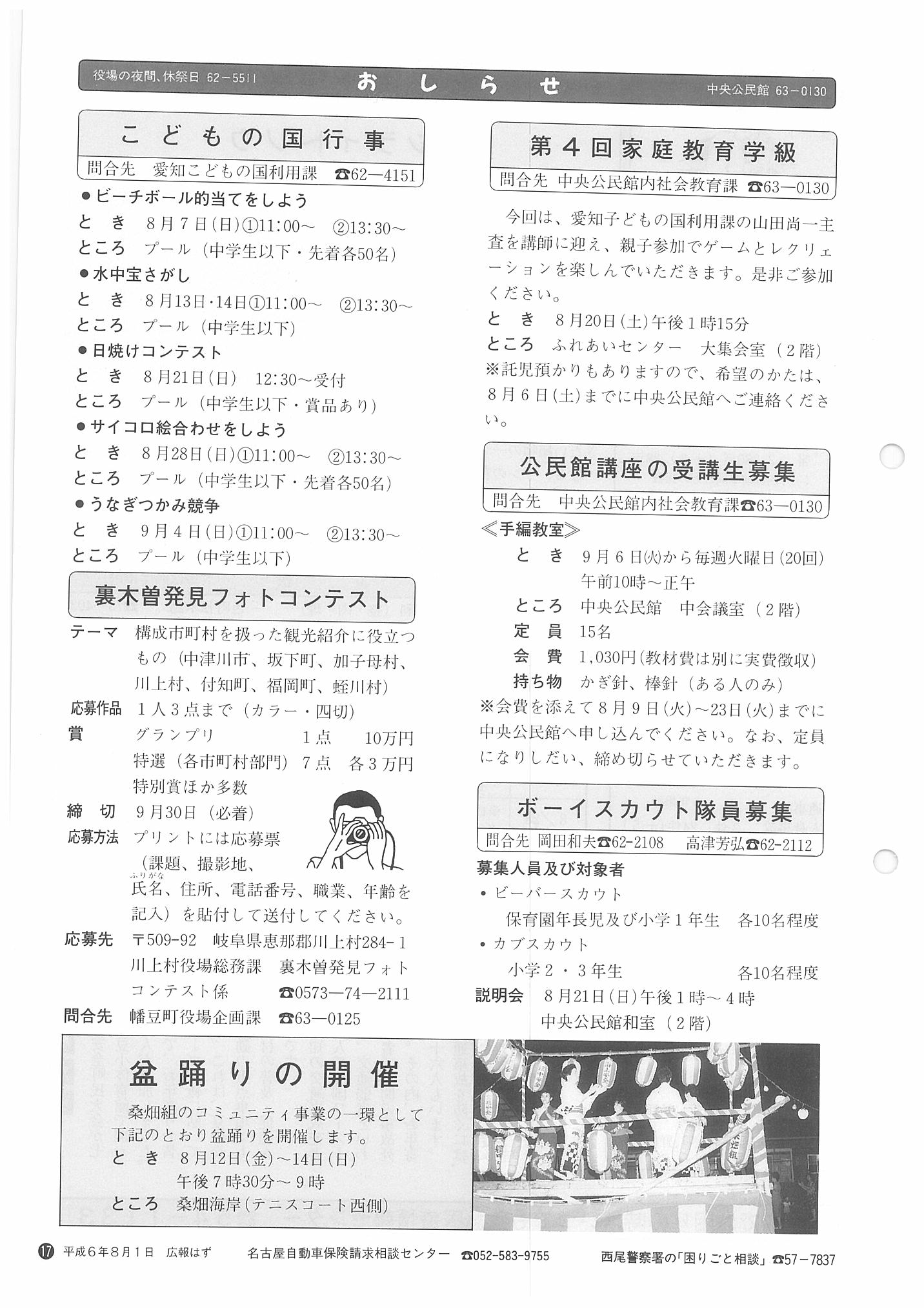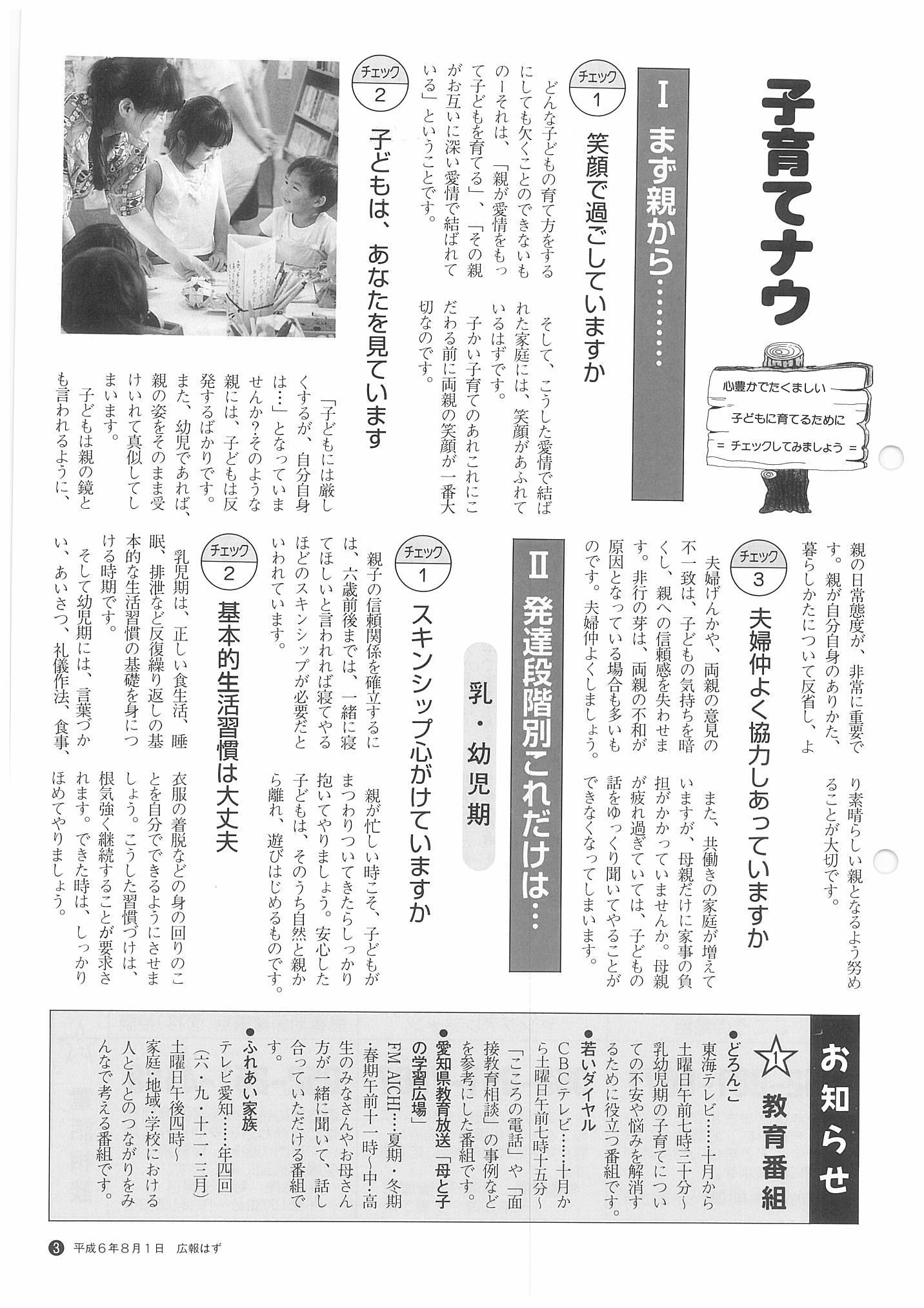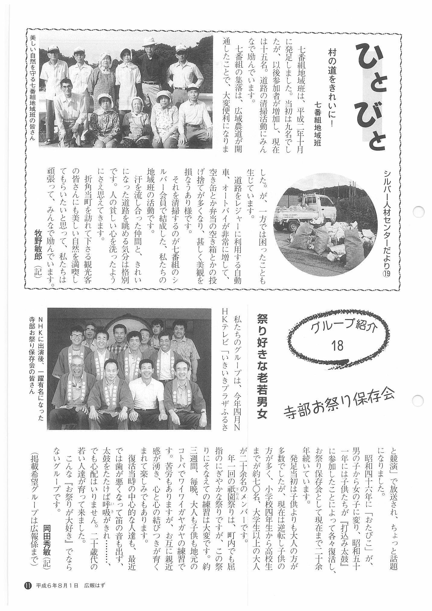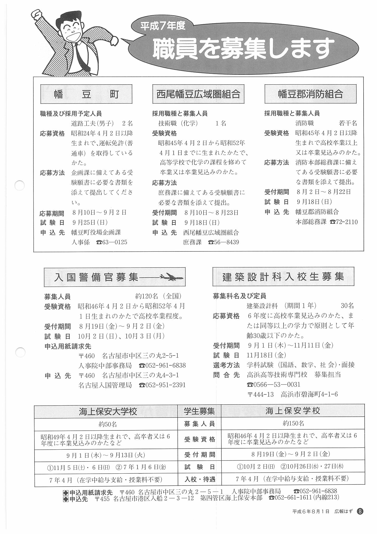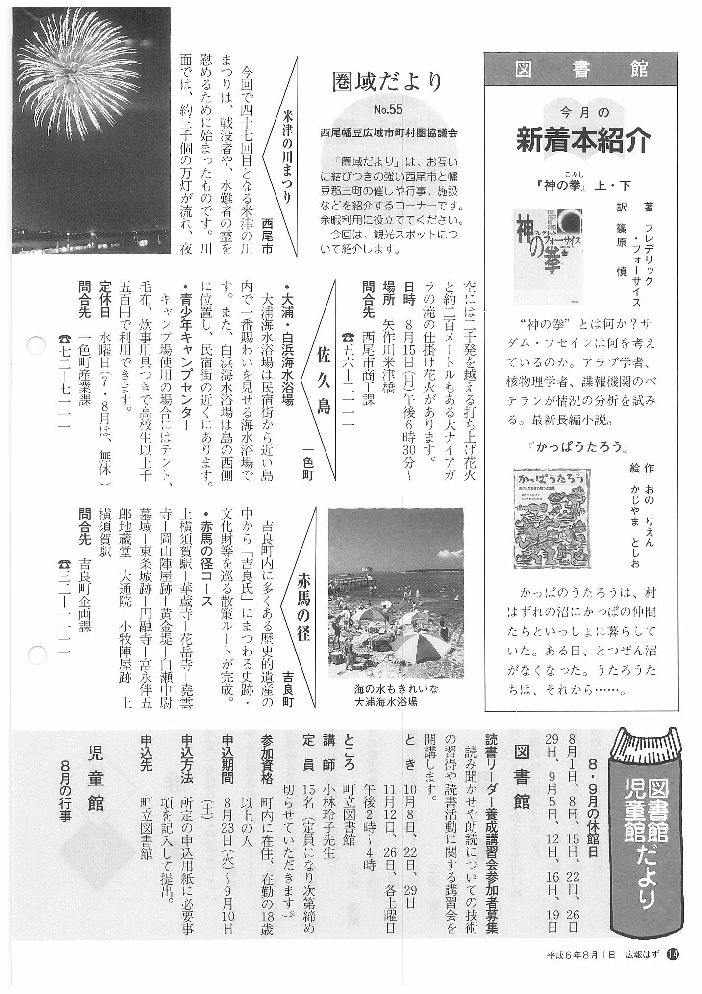 「広報はず」 1994年(平成6年) 8月号 目次