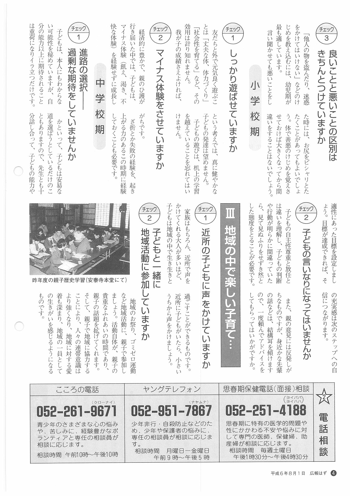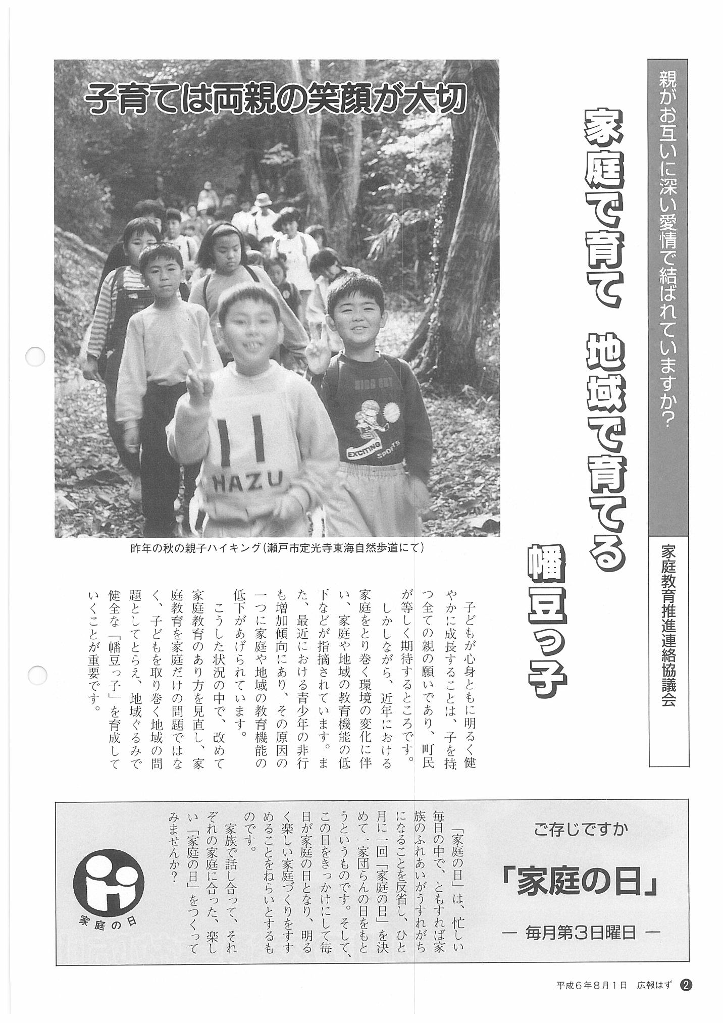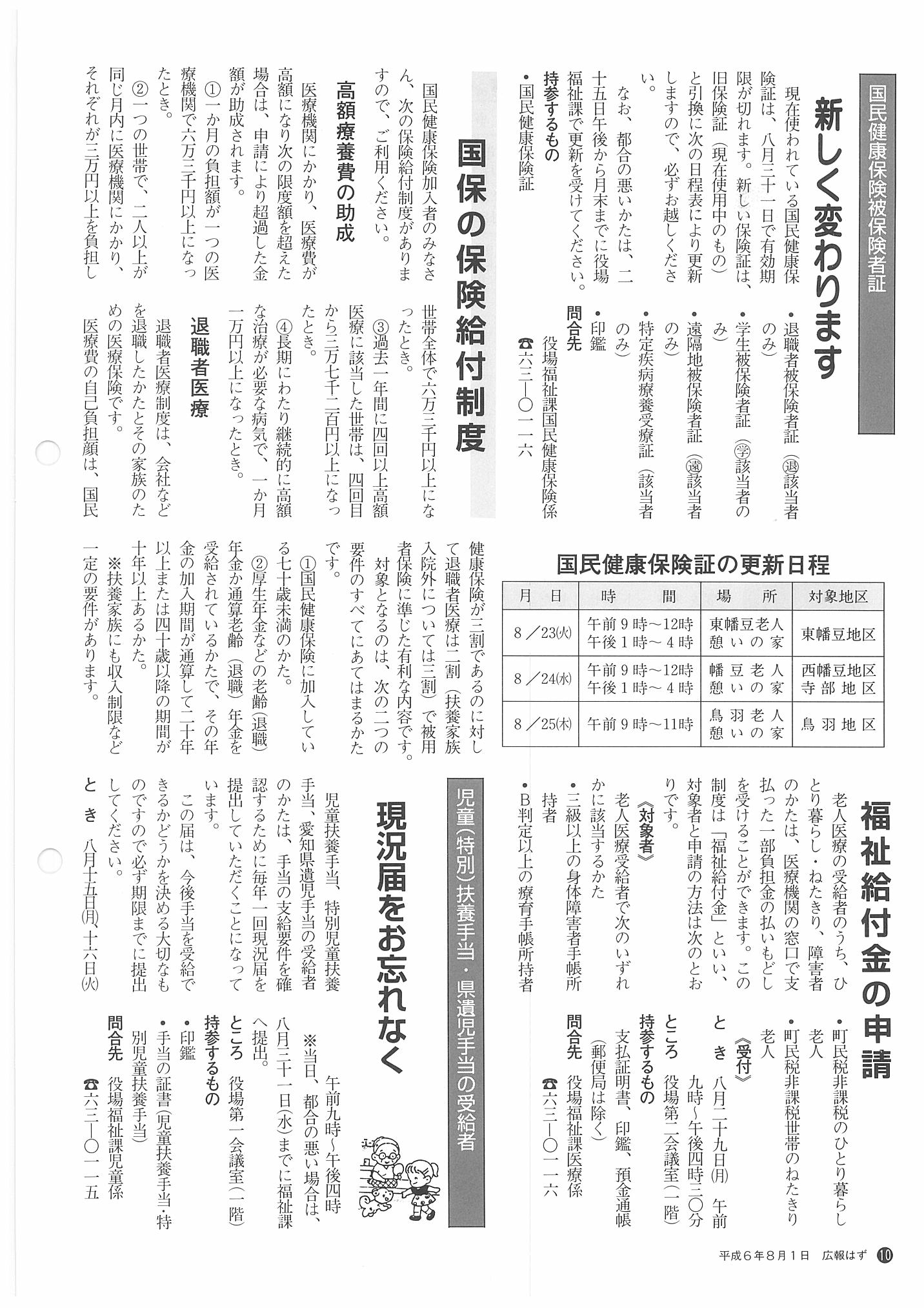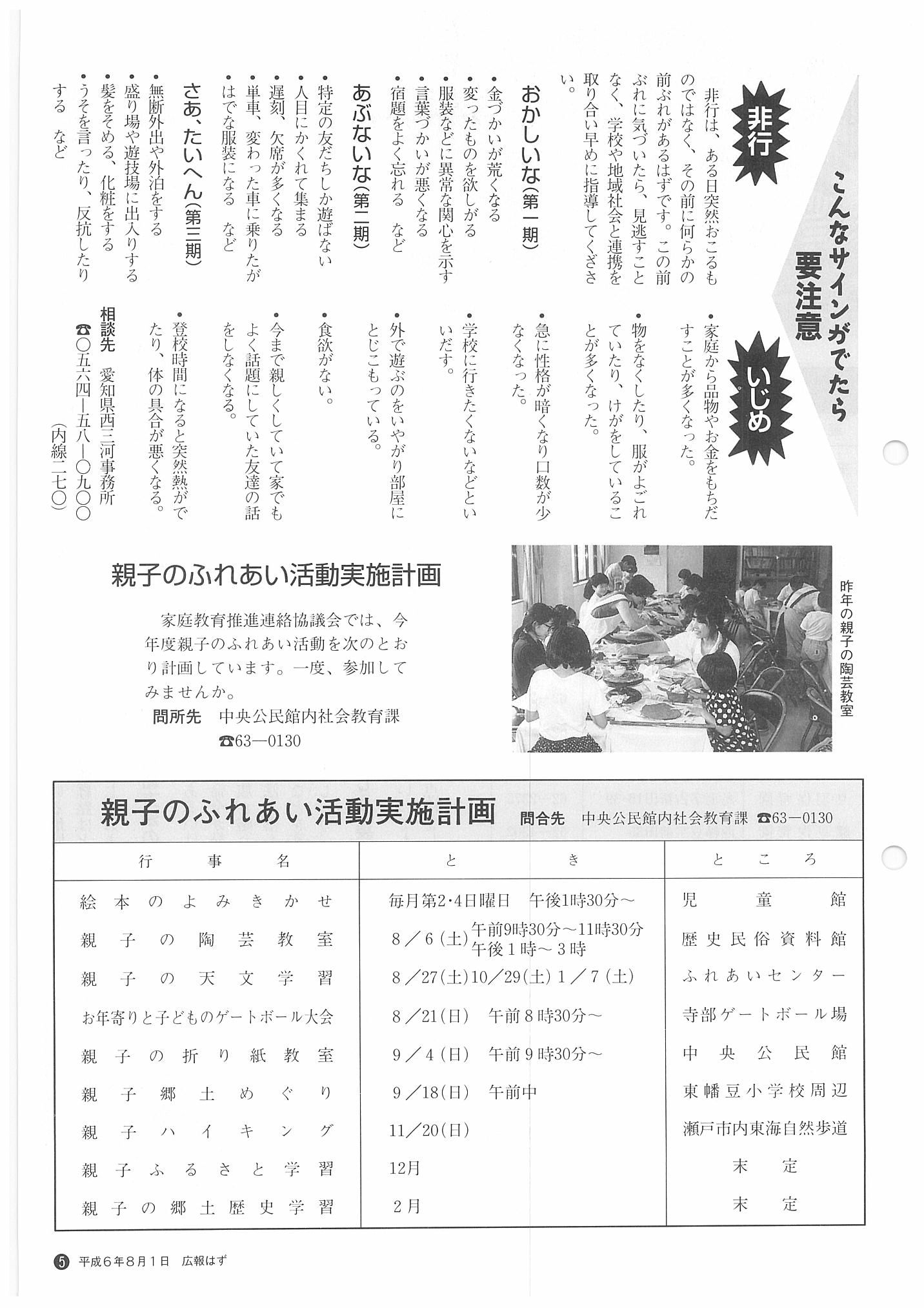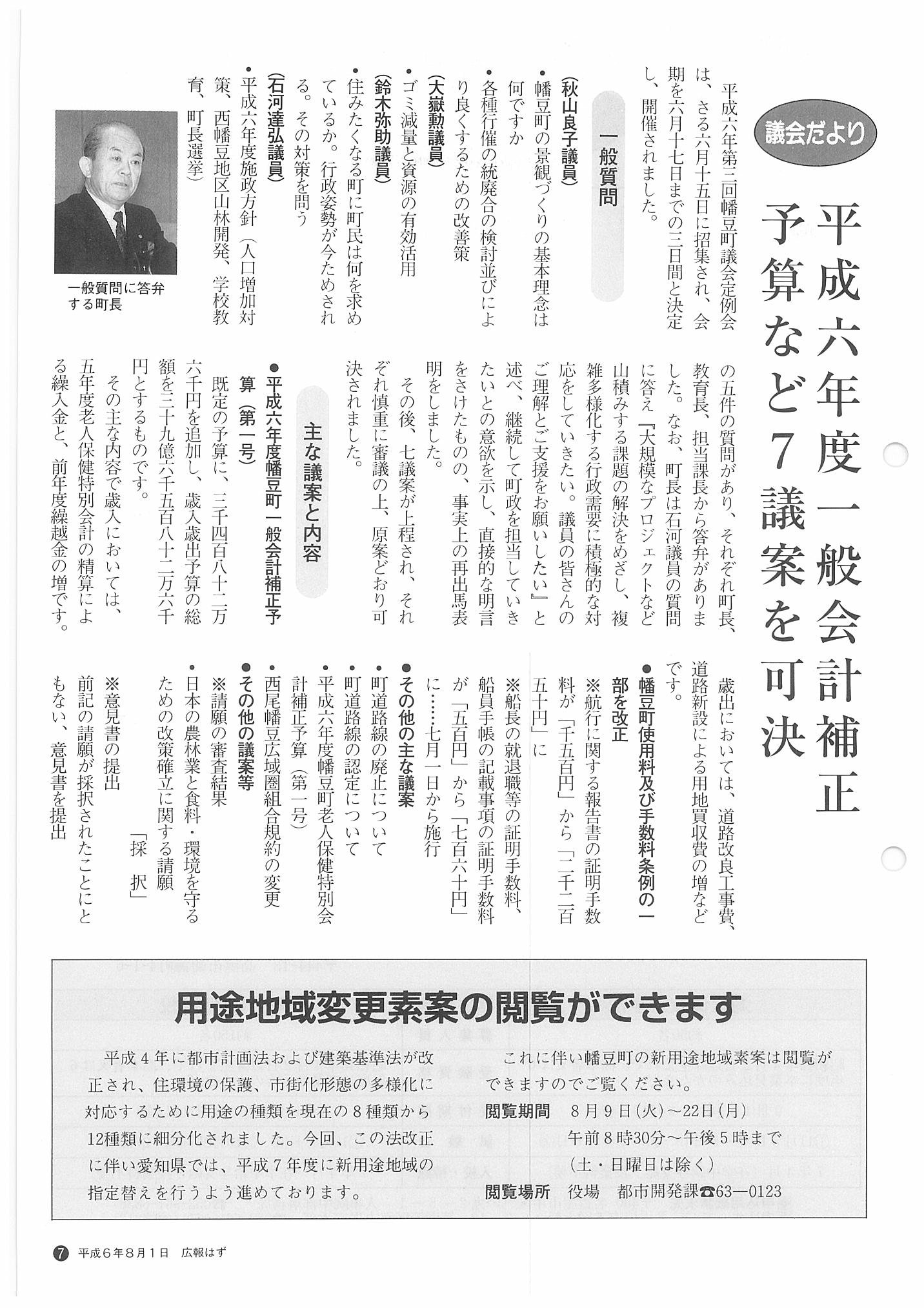 「広報はず」 1994年(平成6年) 8月号 目次