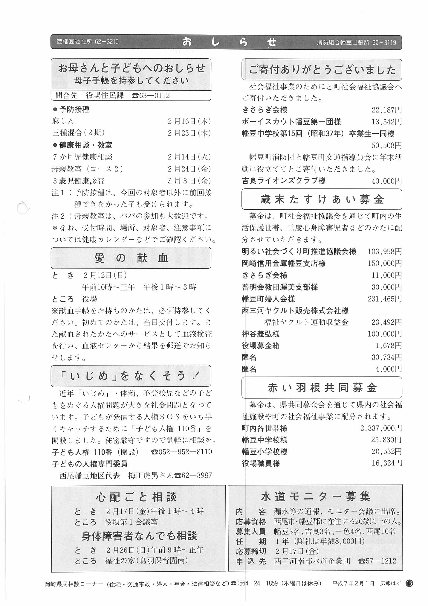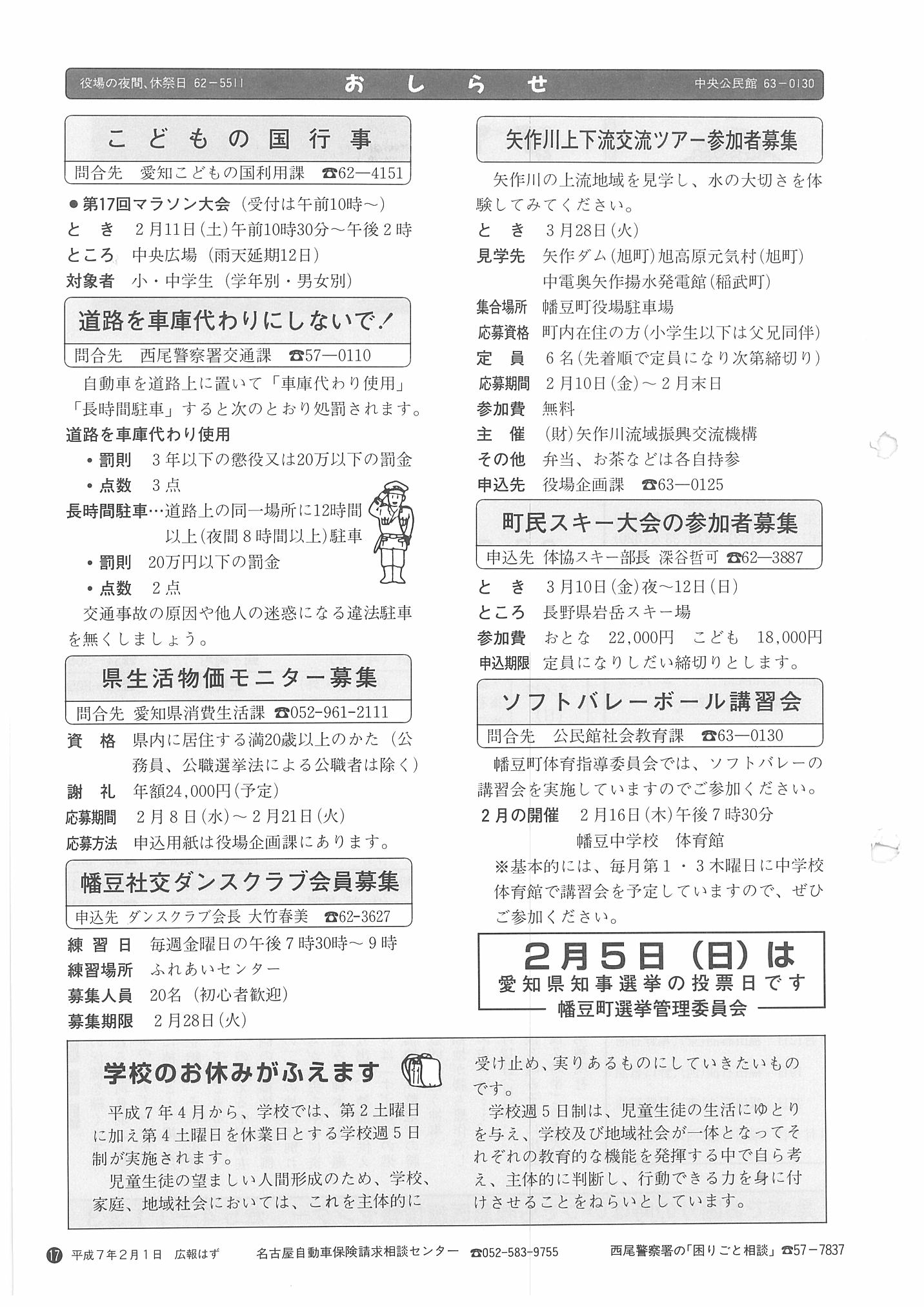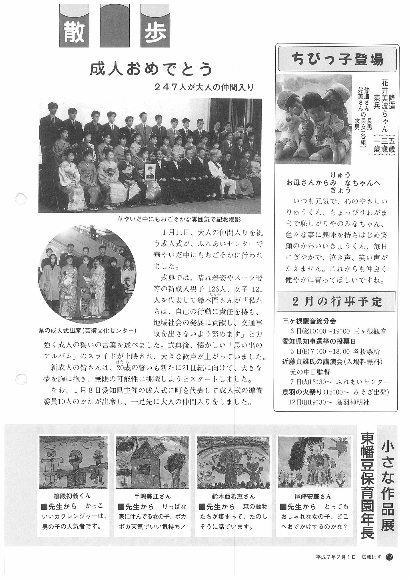 「広報はず」 1995年(平成7年) 2月号 目次