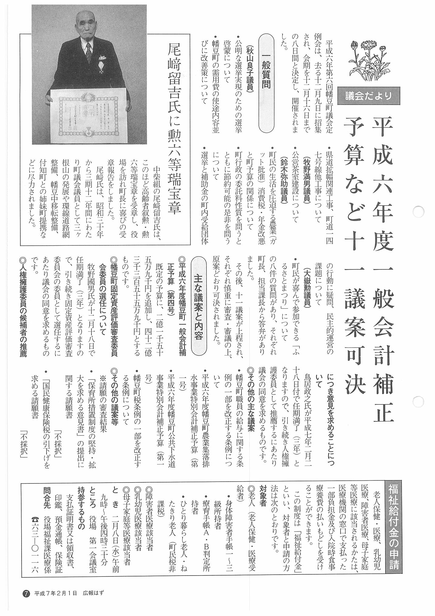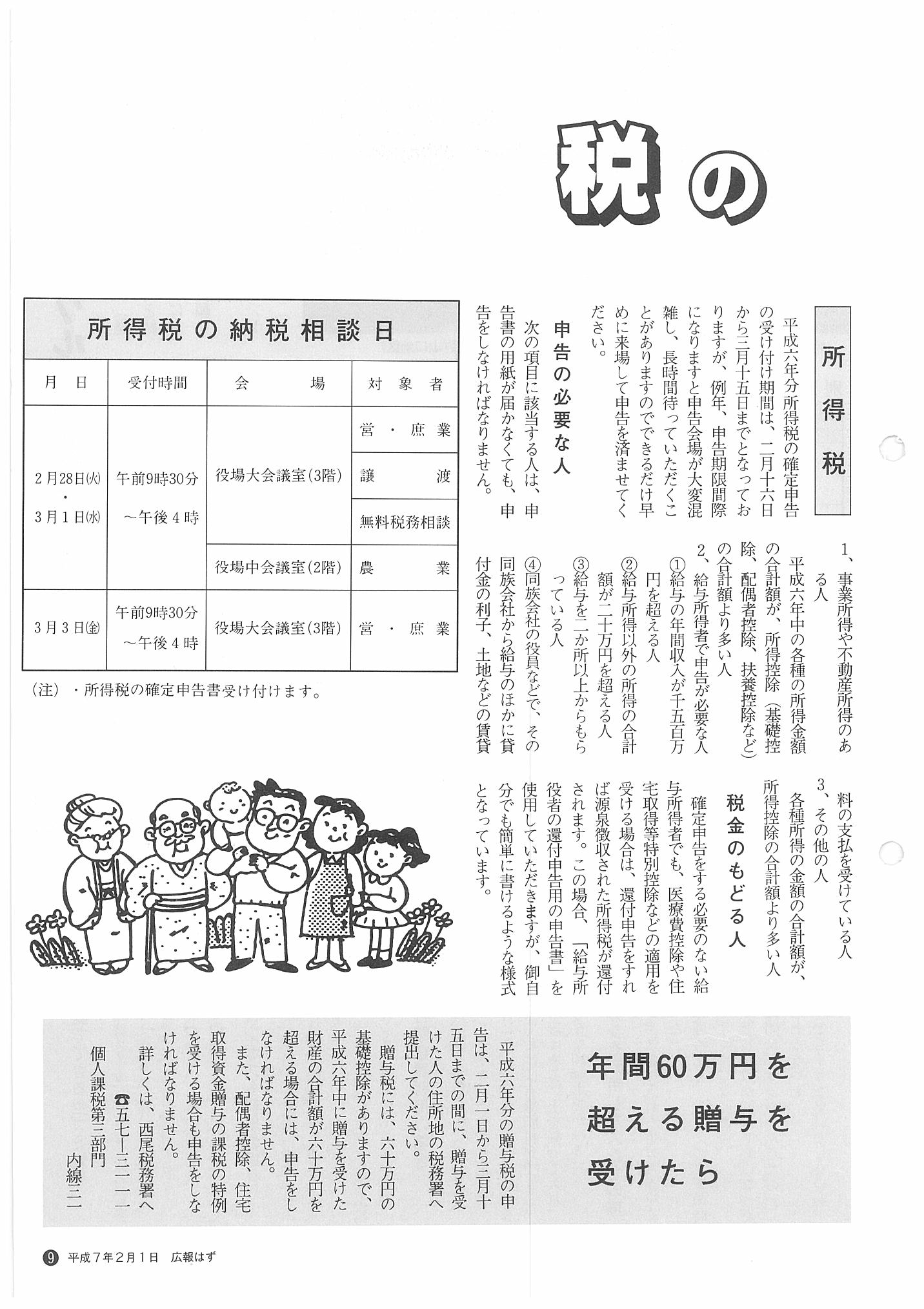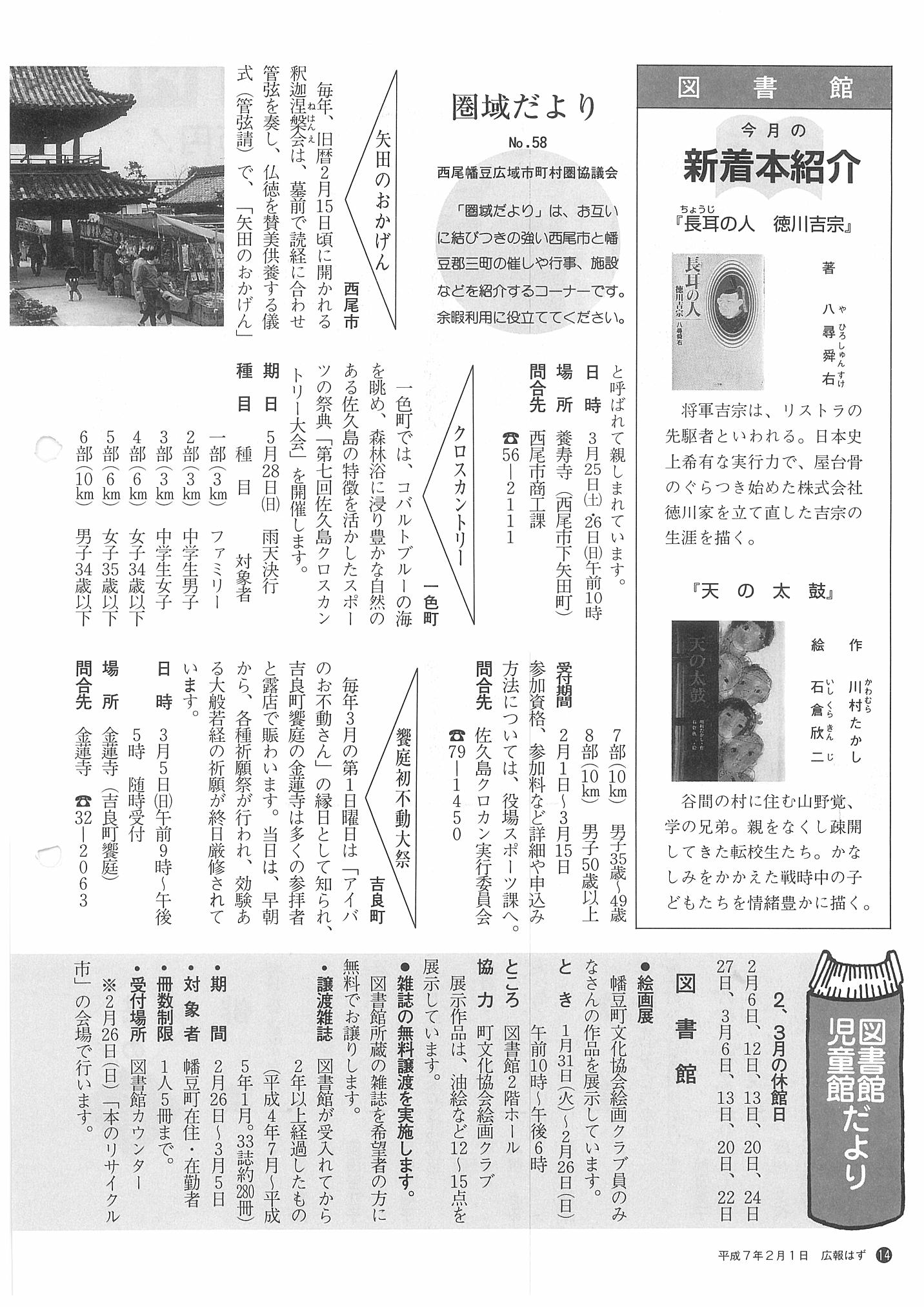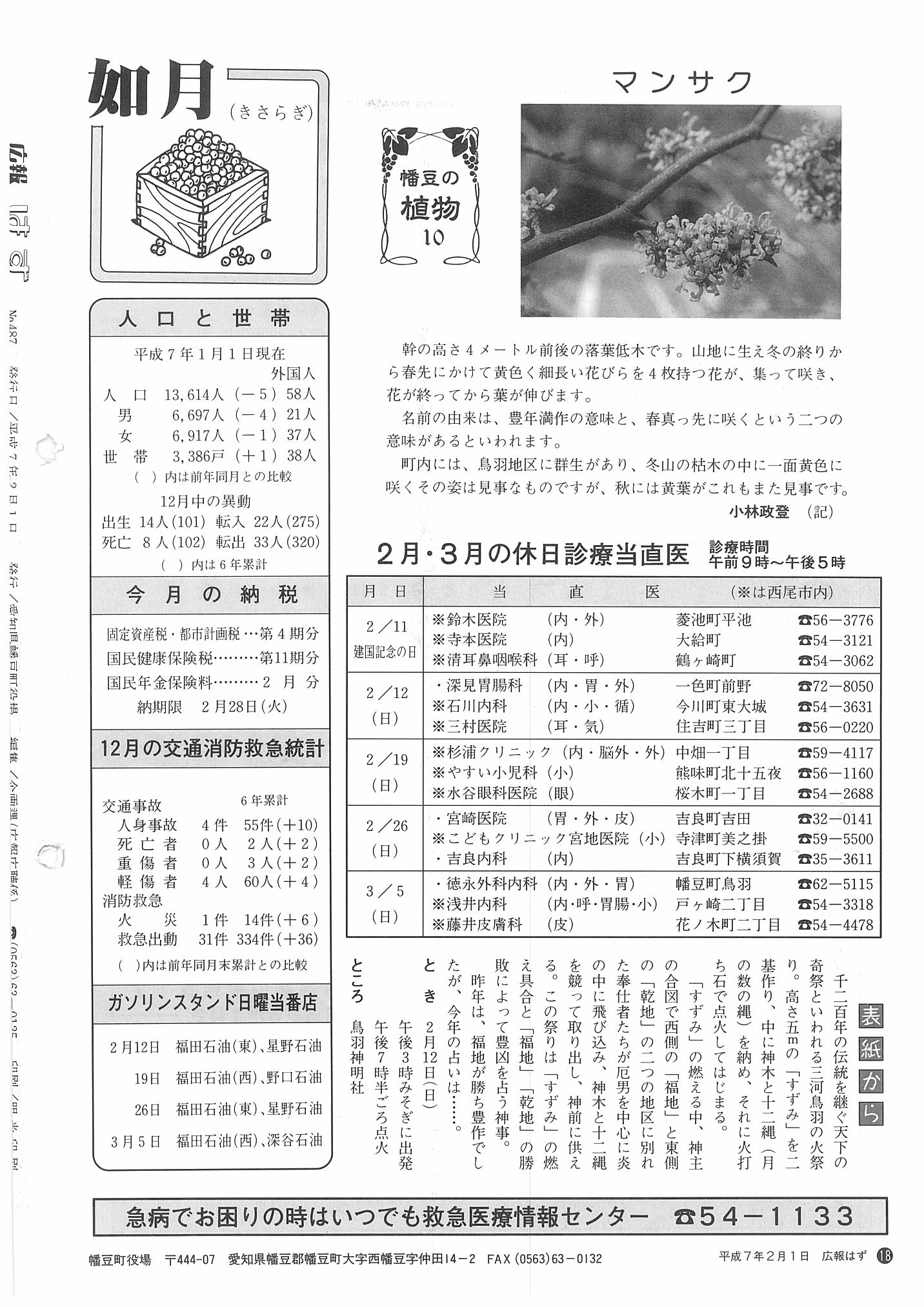 「広報はず」 1995年(平成7年) 2月号 目次