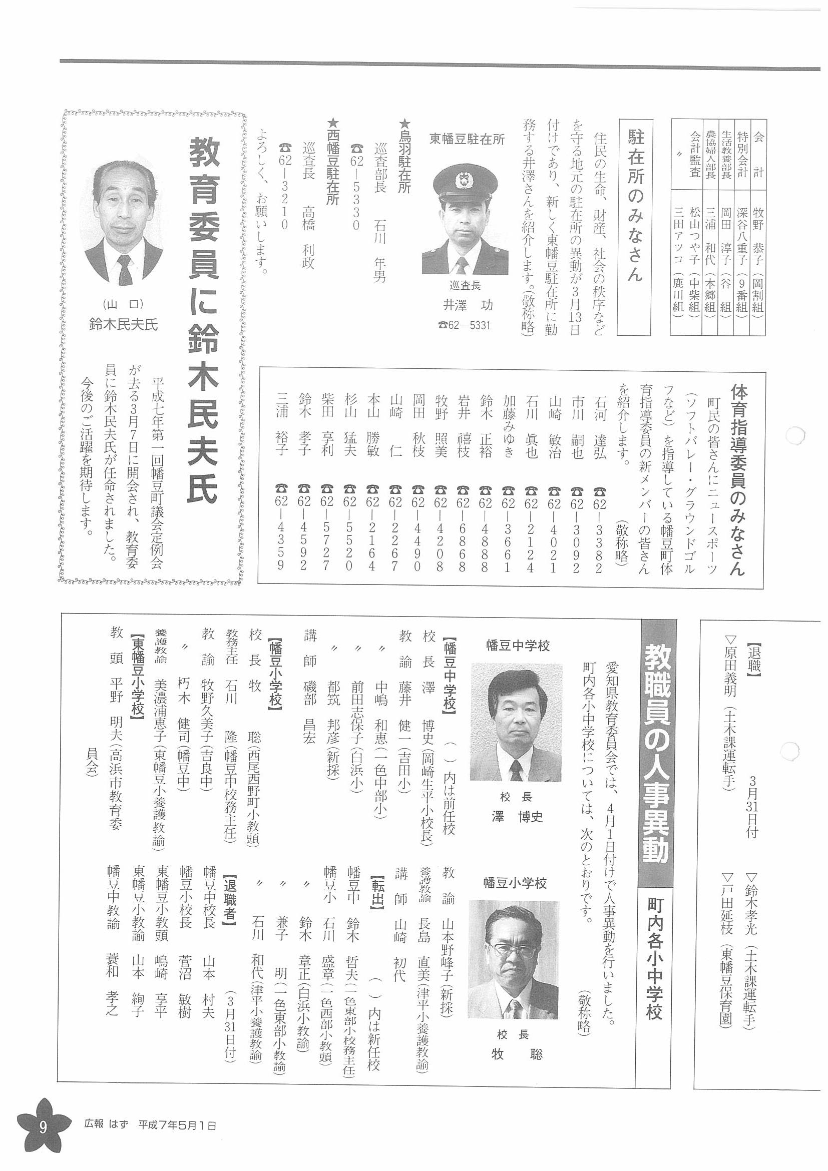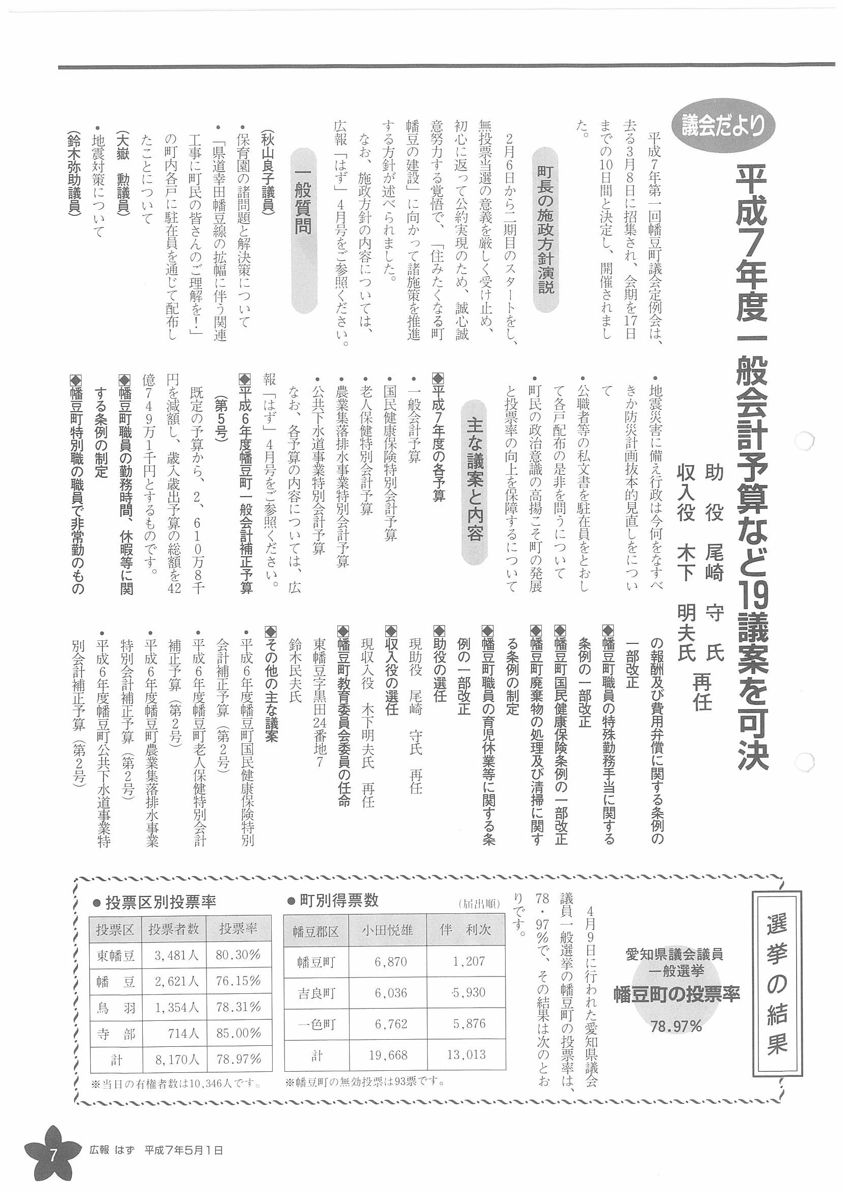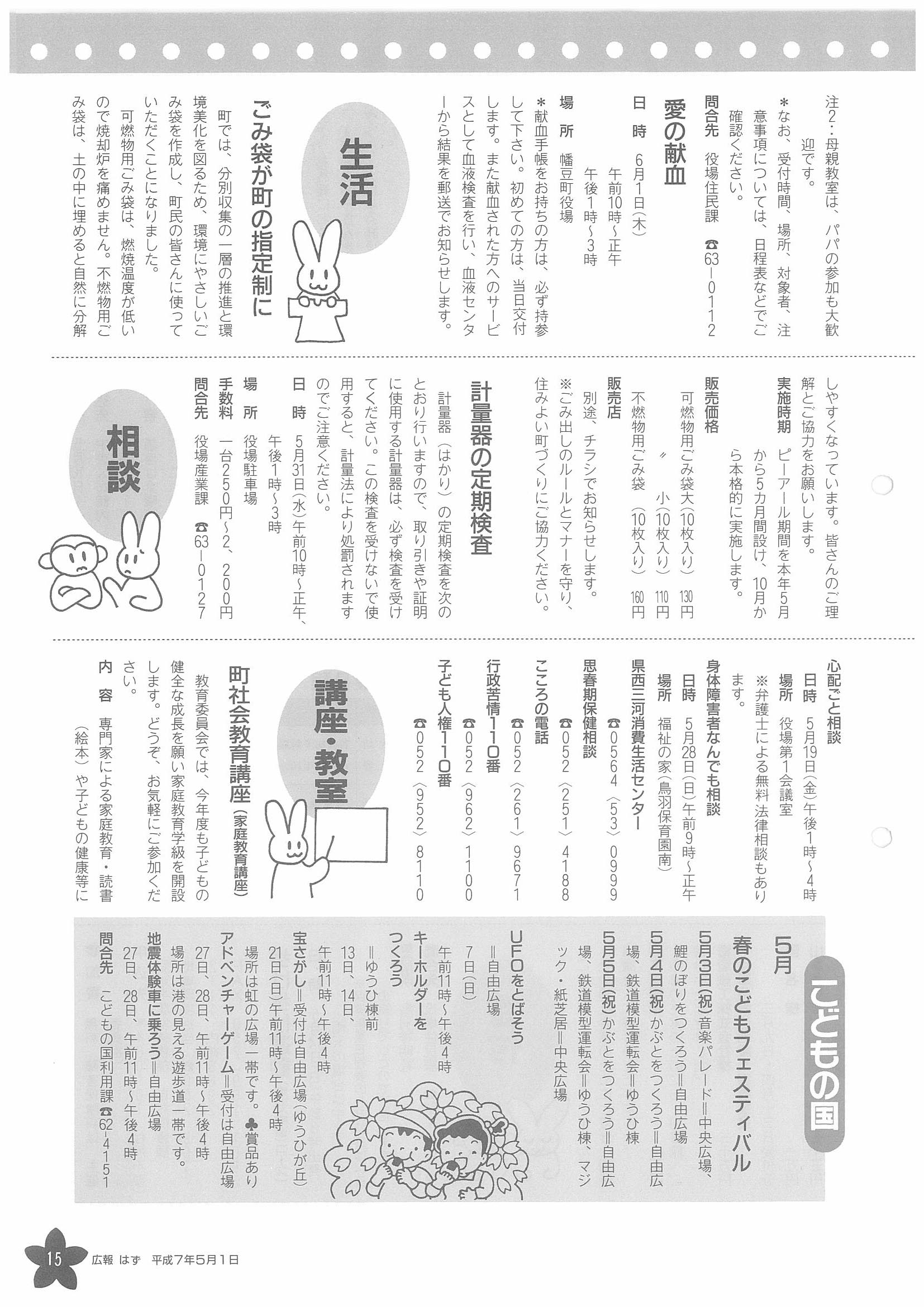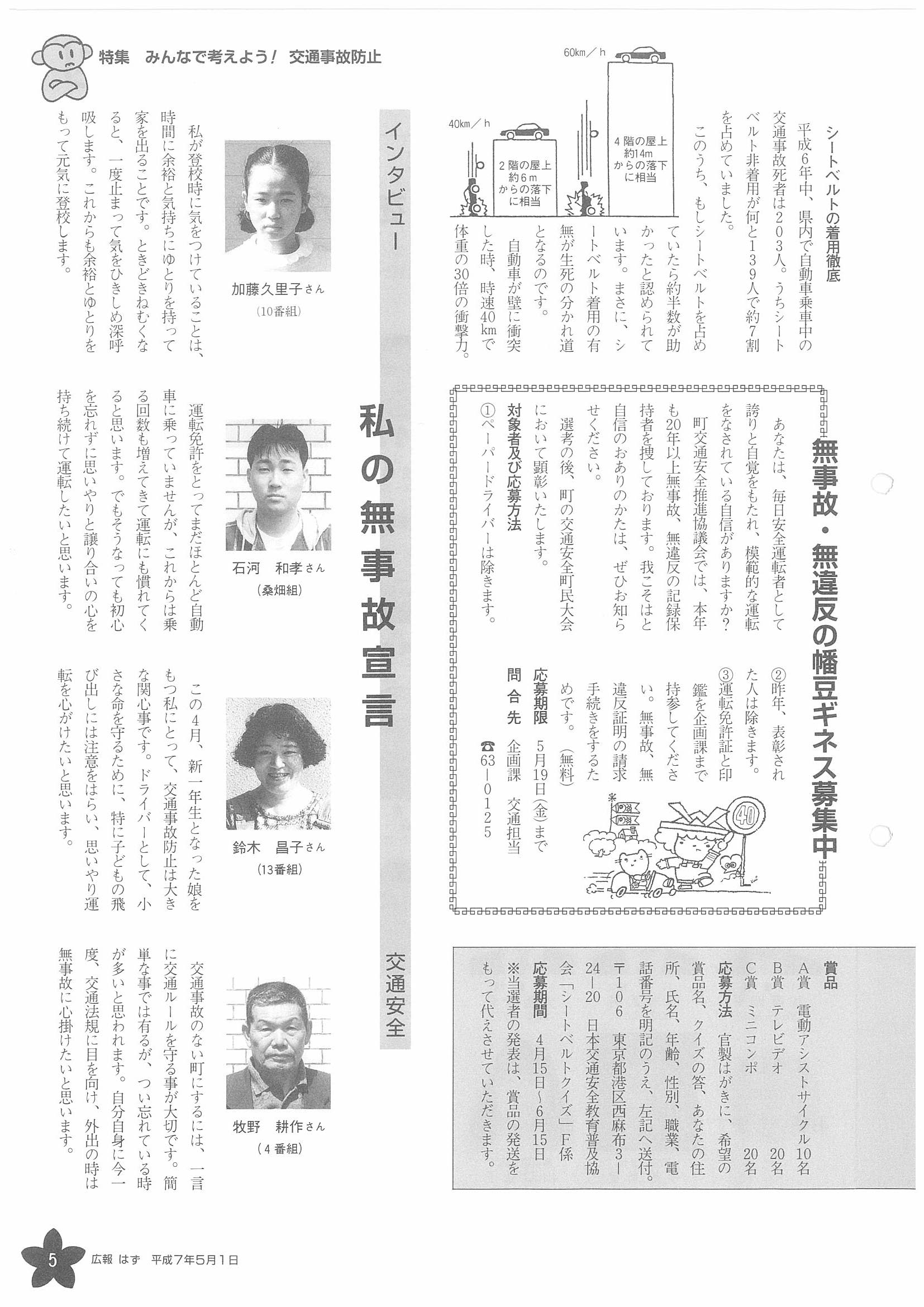 「広報はず」 1995年(平成7年) 5月号 目次
