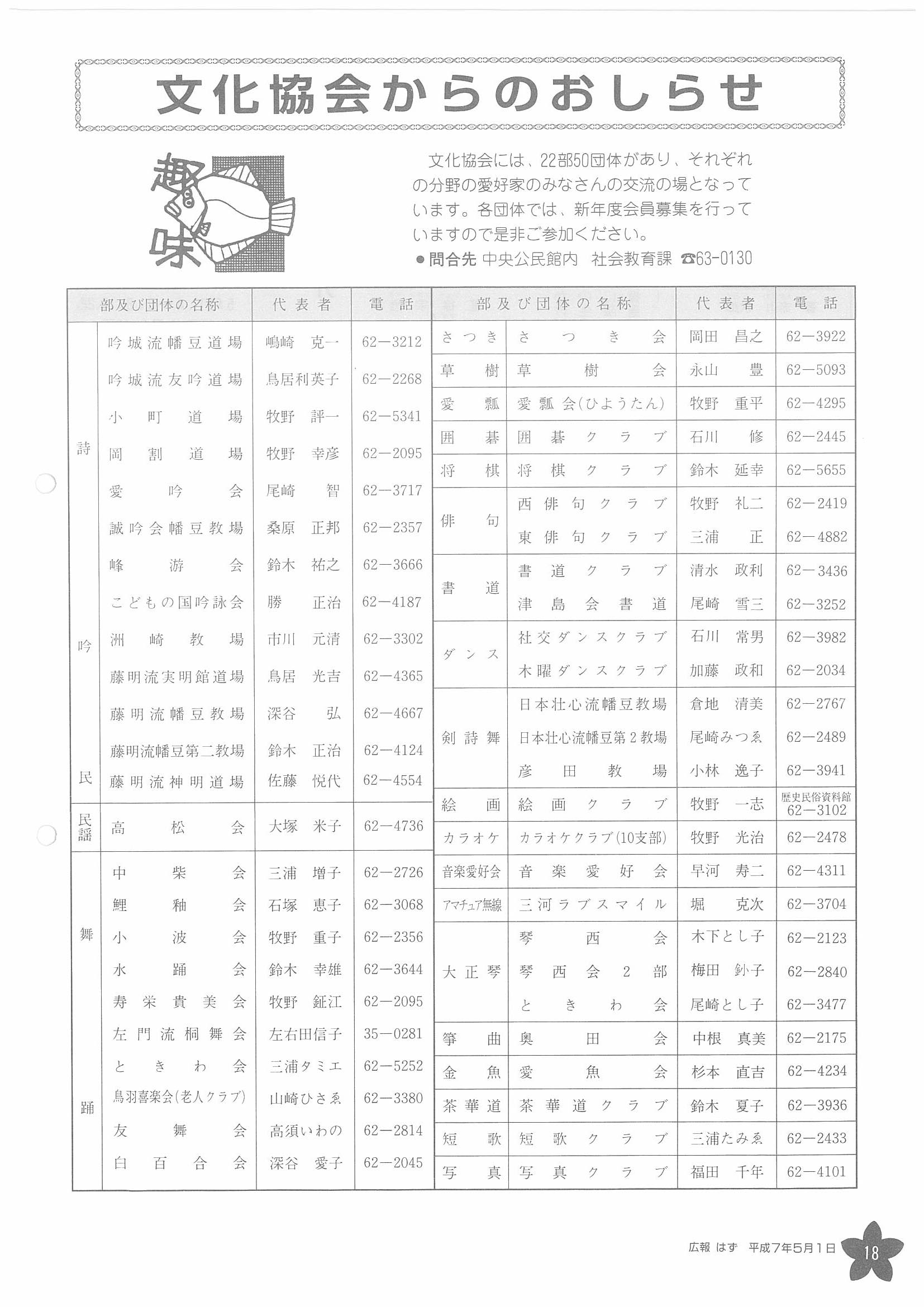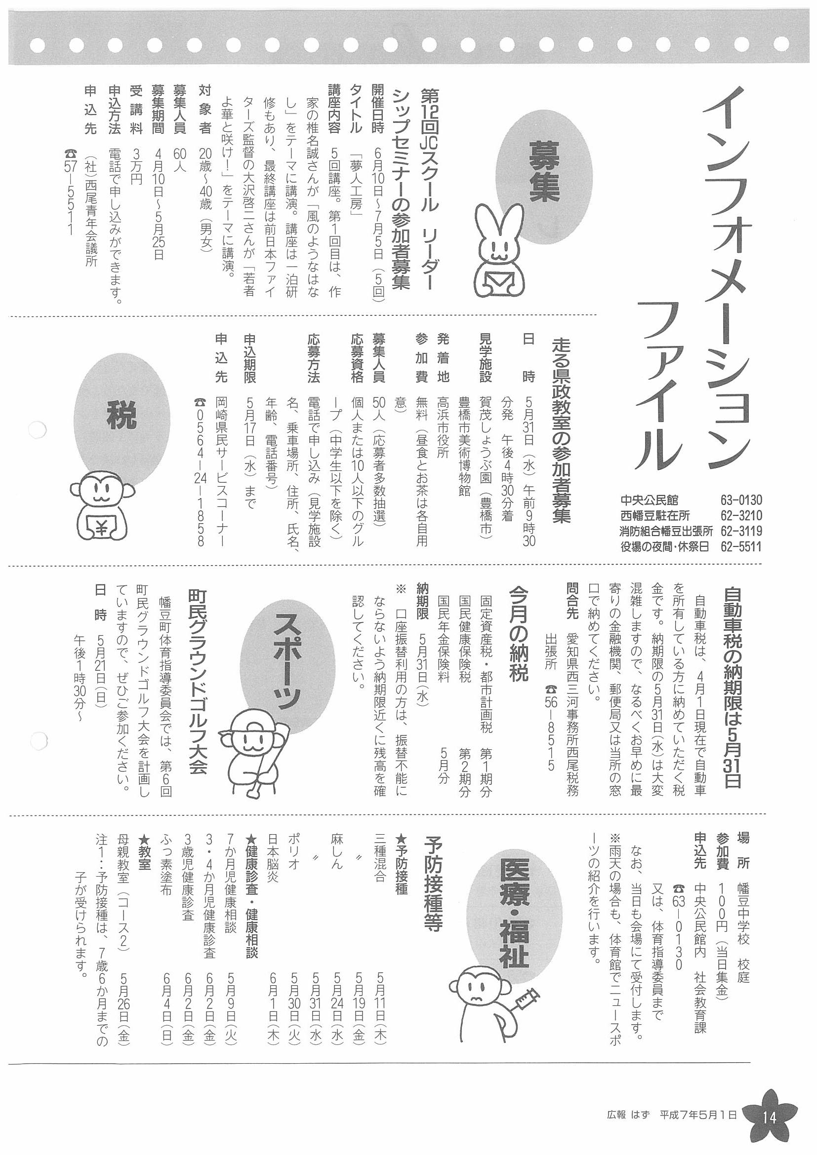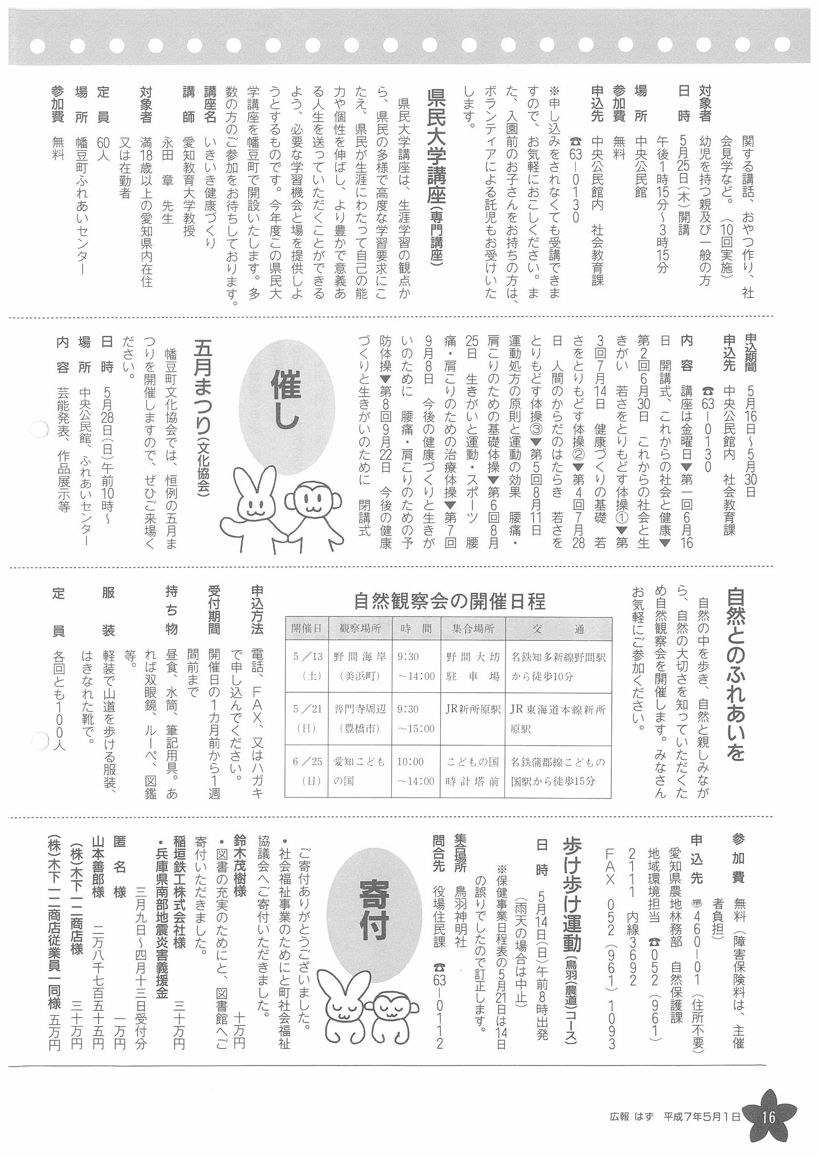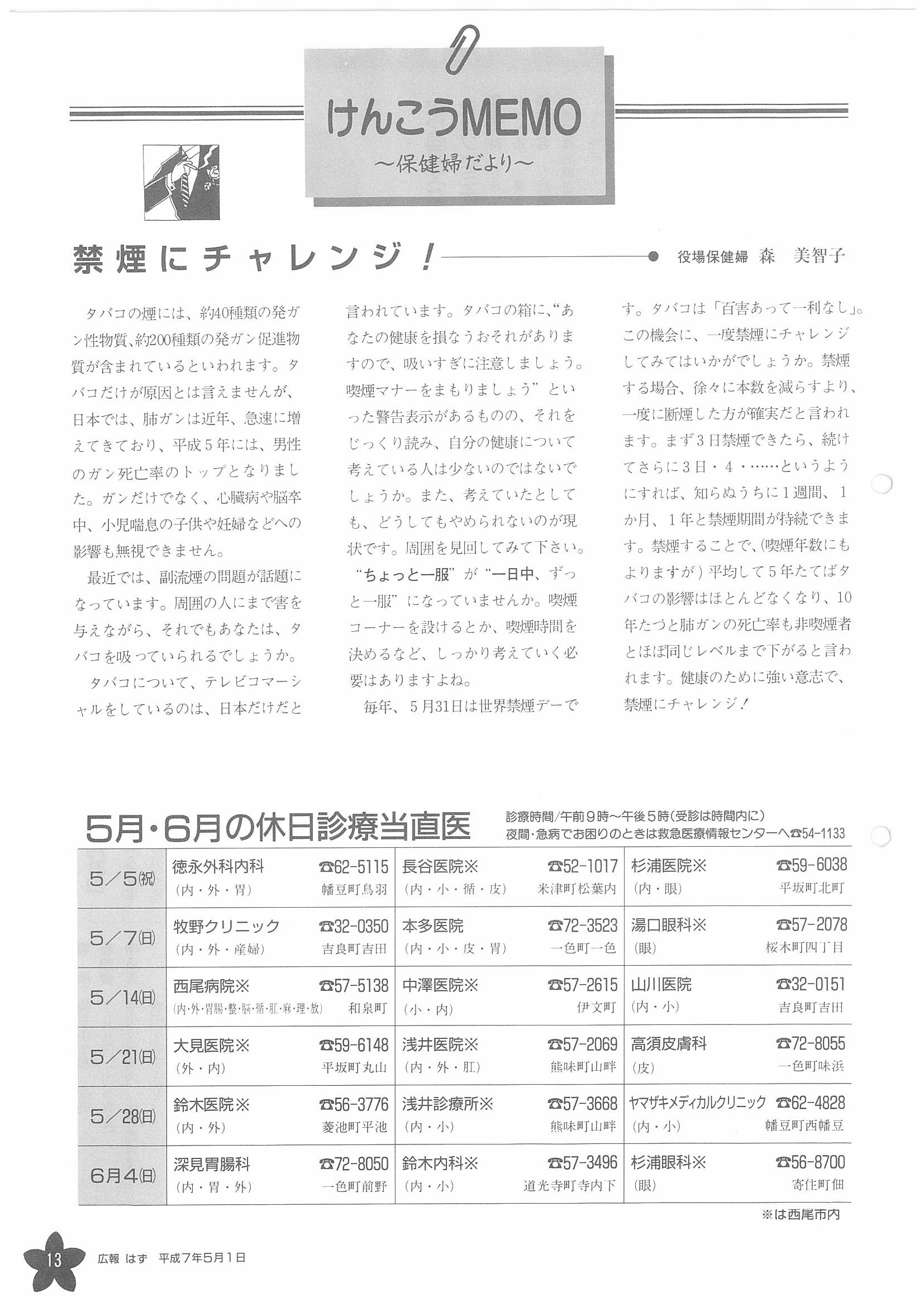 「広報はず」 1995年(平成7年) 5月号 目次
