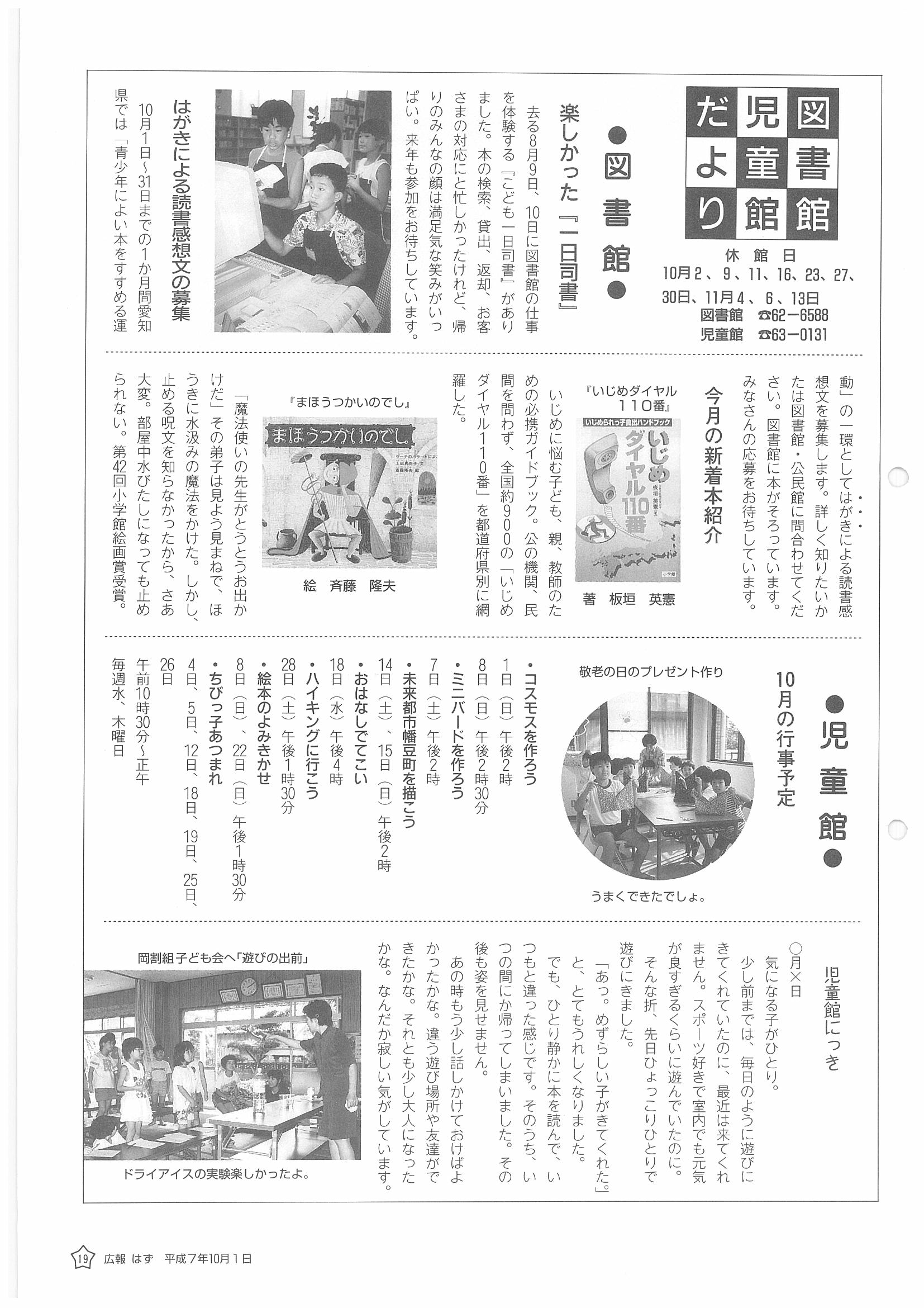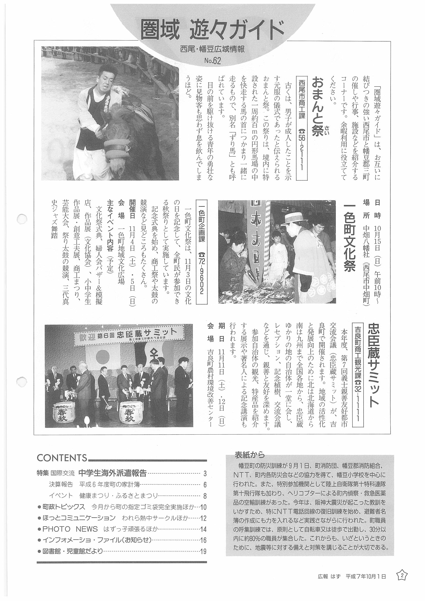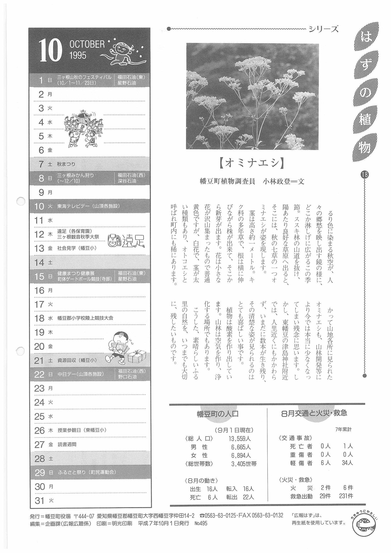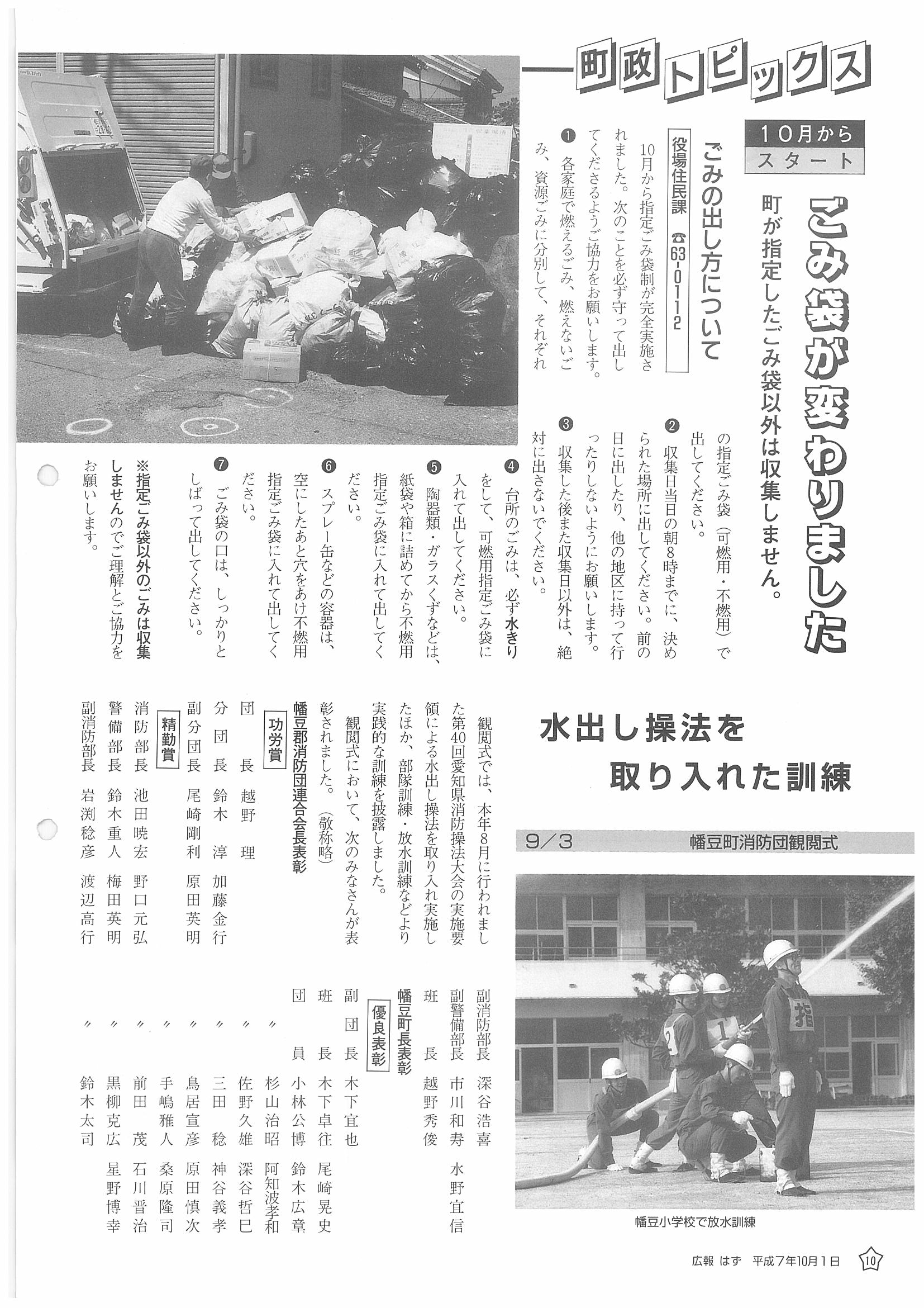 「広報はず」 1995年(平成7年) 10月号 目次