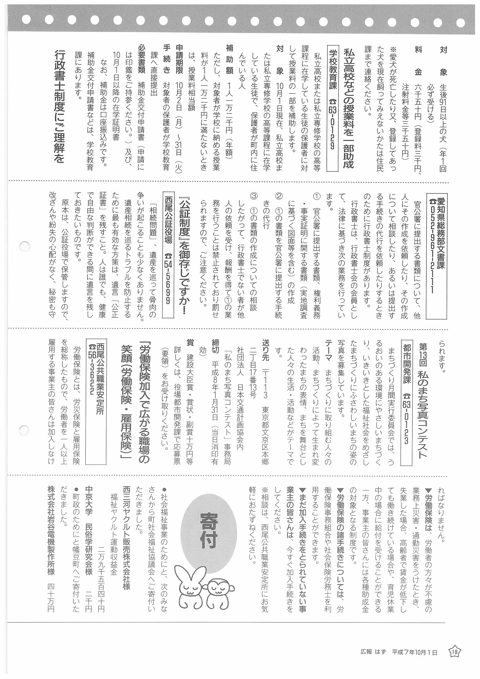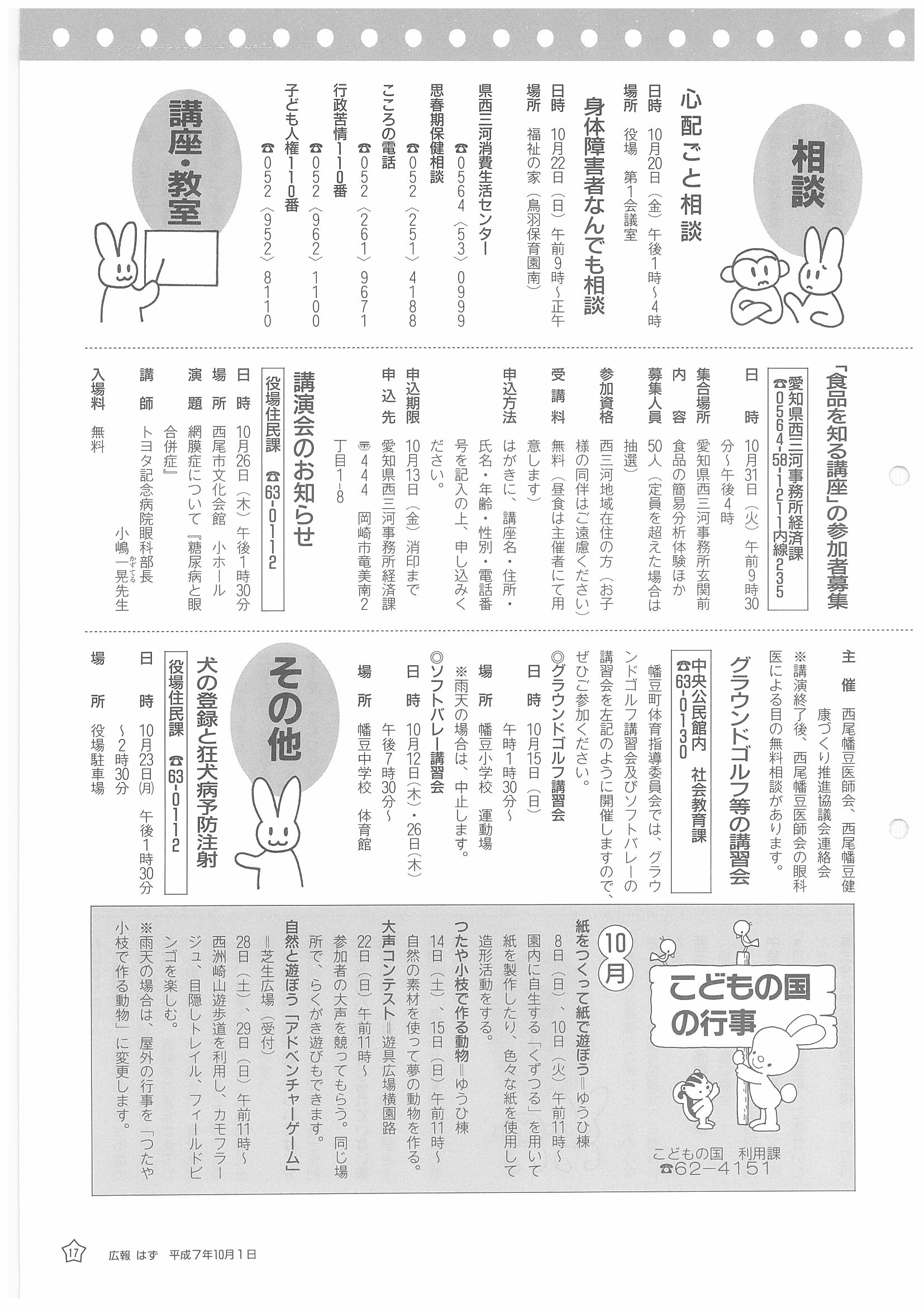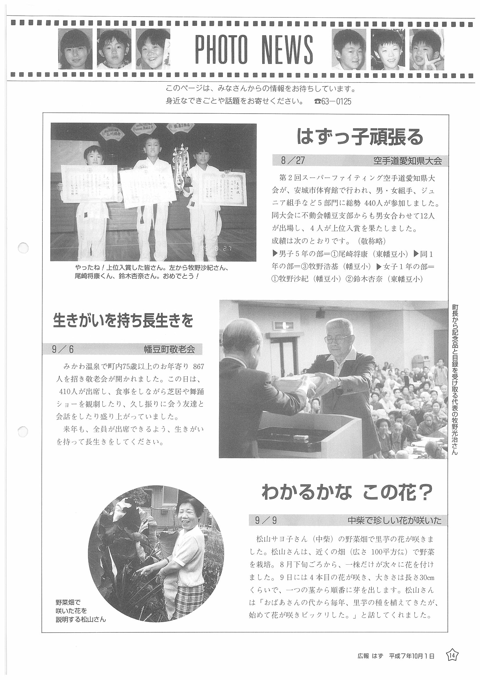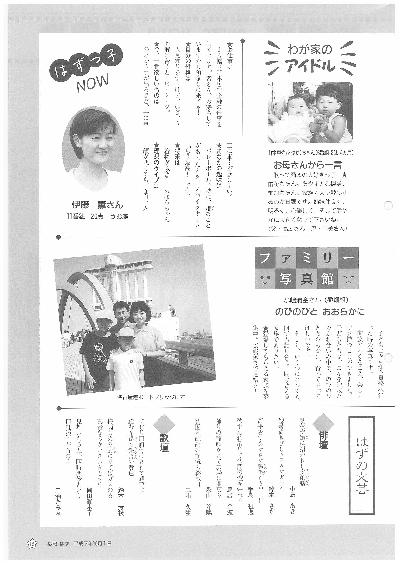 「広報はず」 1995年(平成7年) 10月号 目次