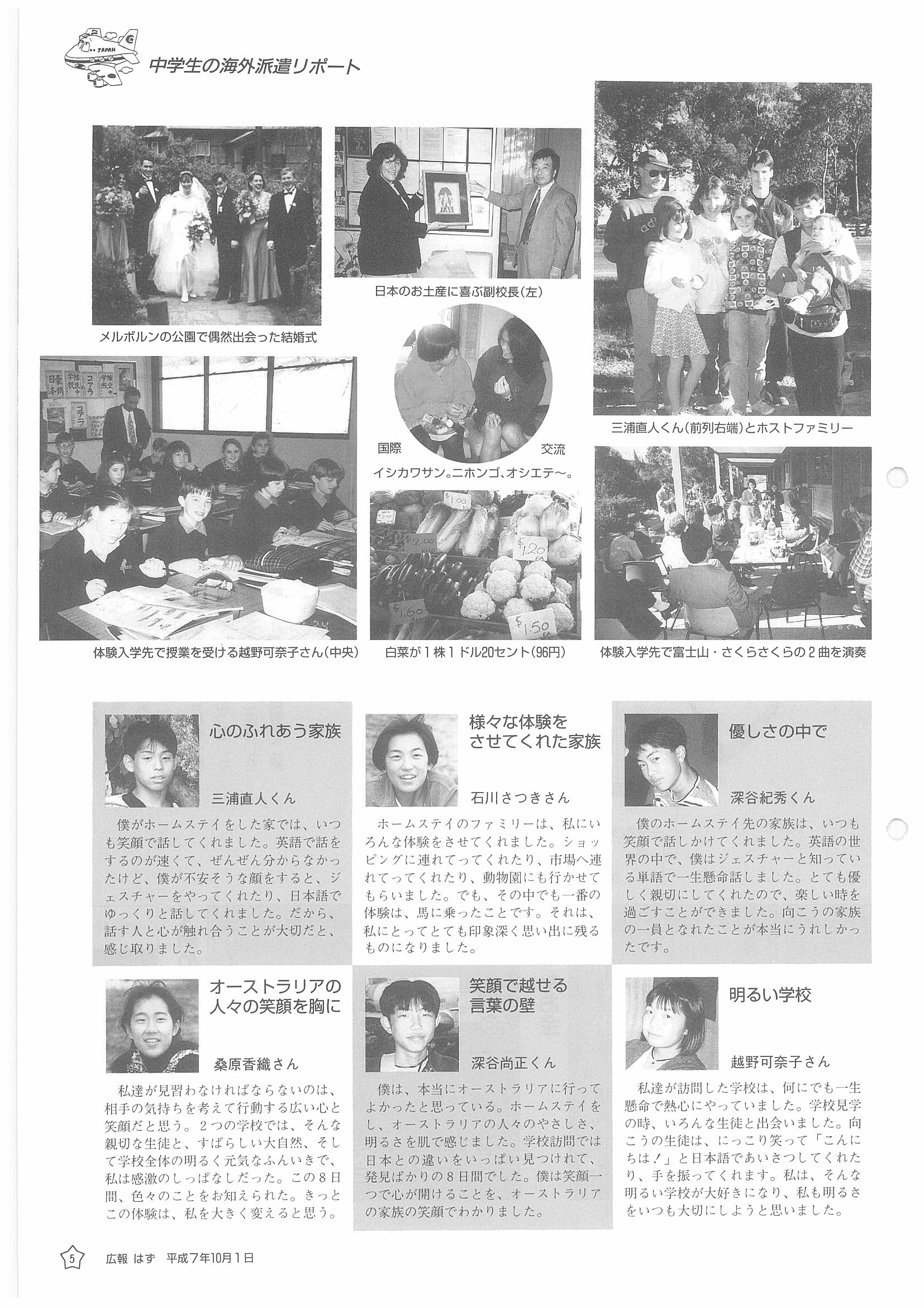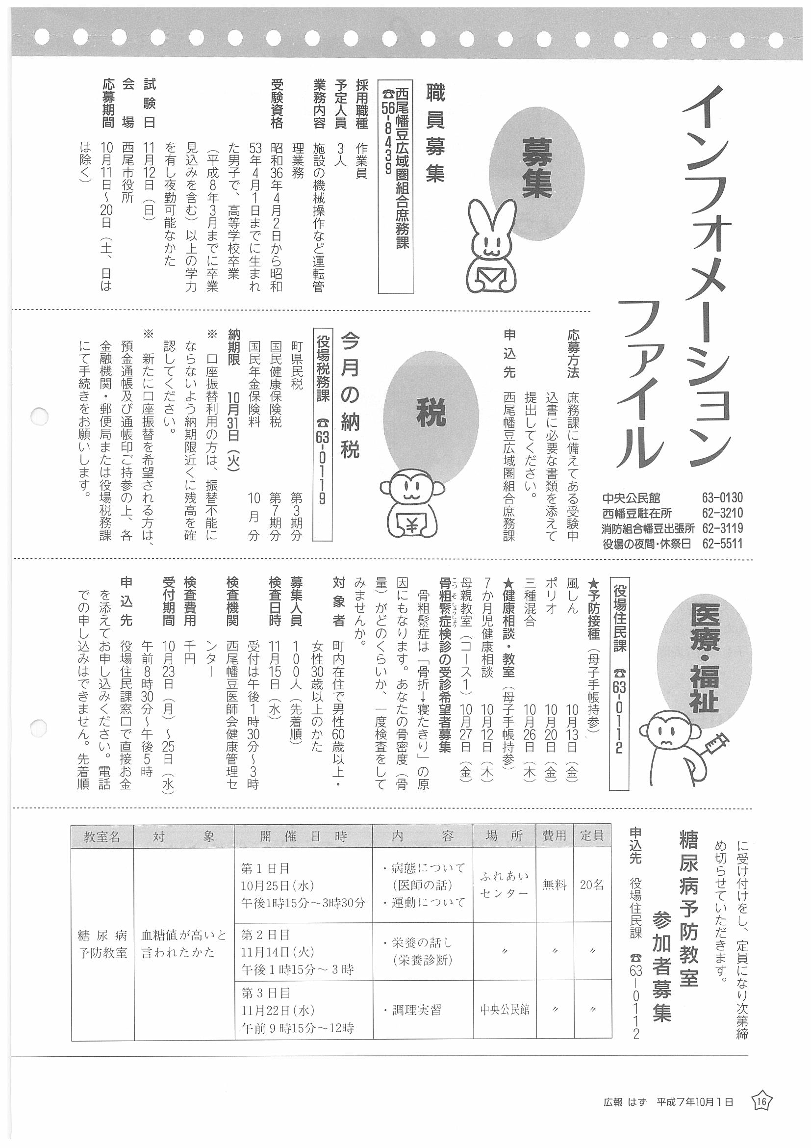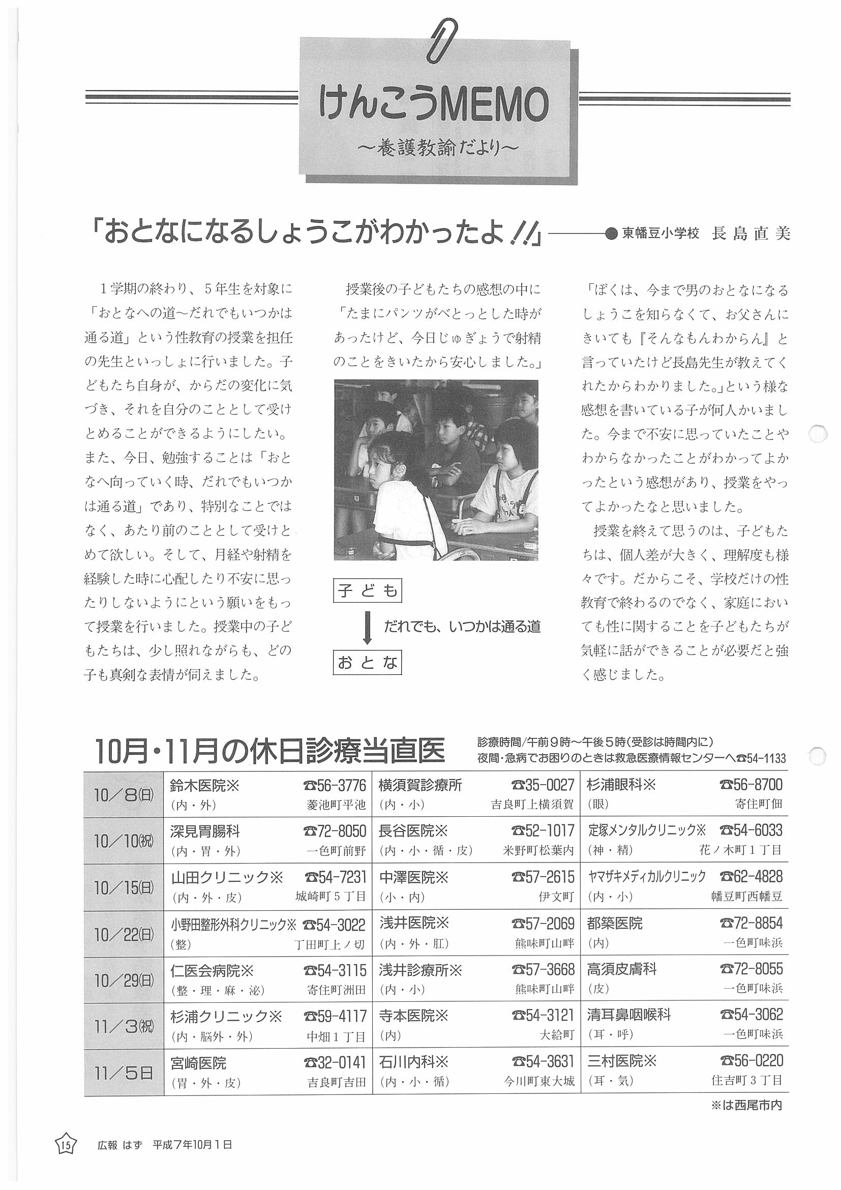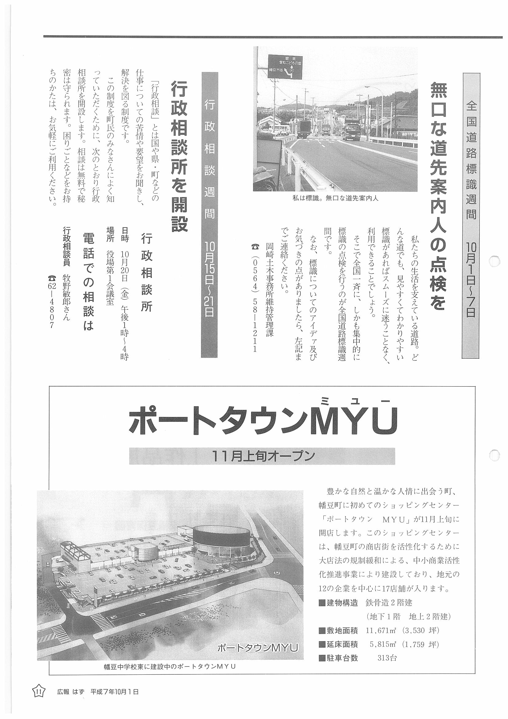 「広報はず」 1995年(平成7年) 10月号 目次