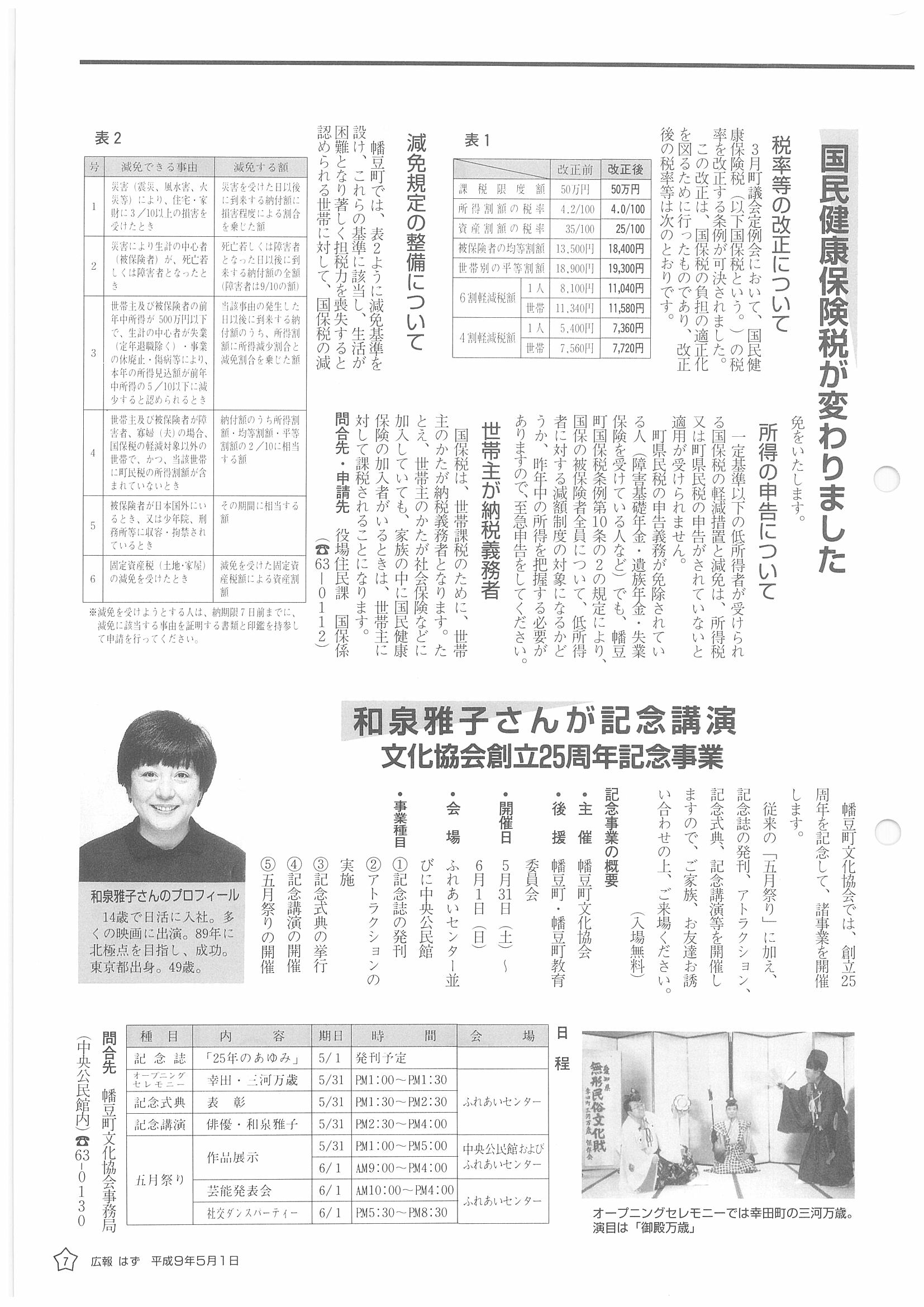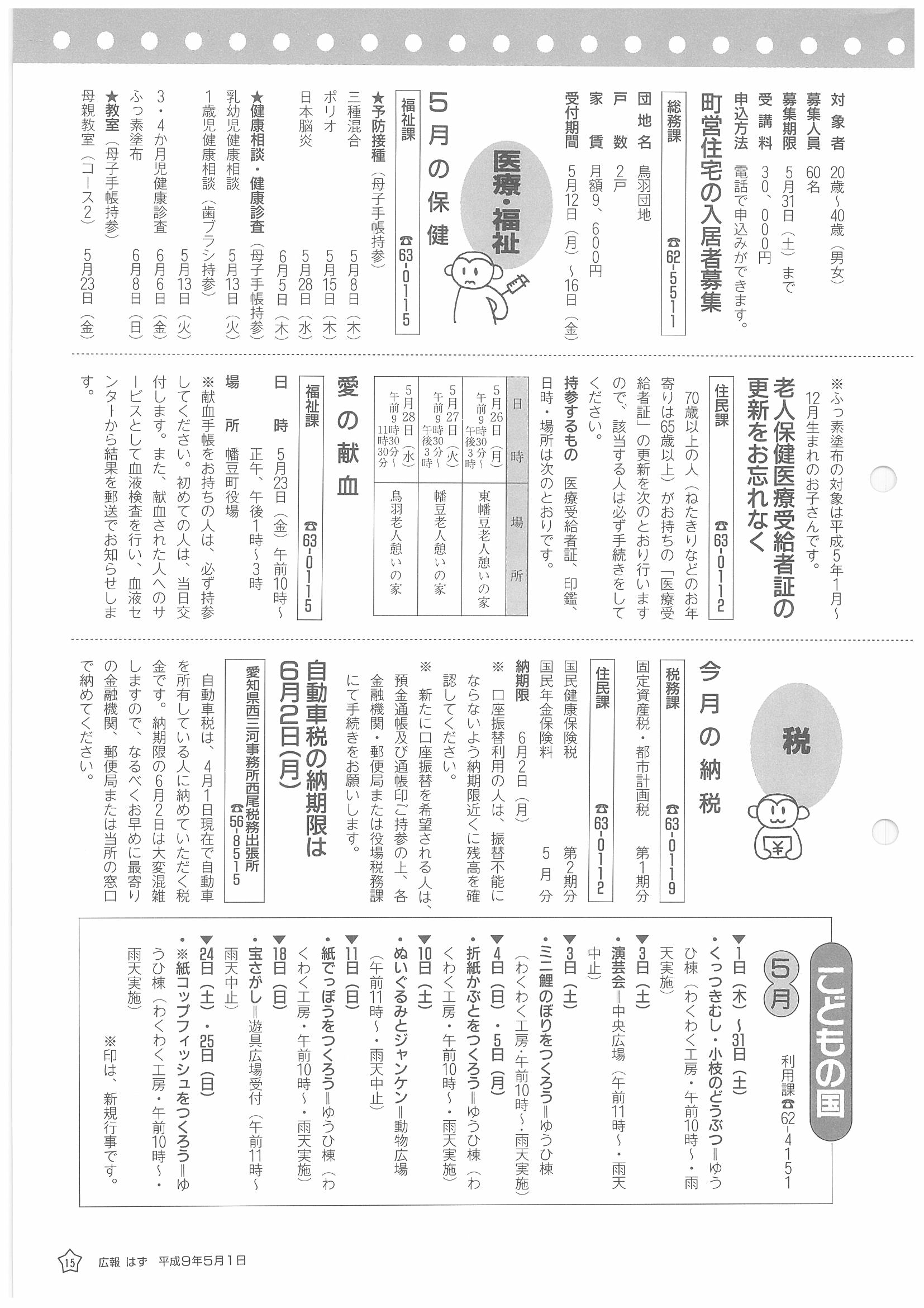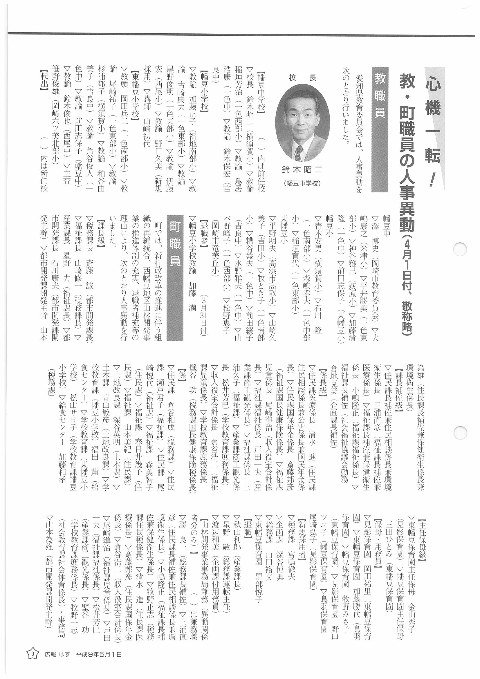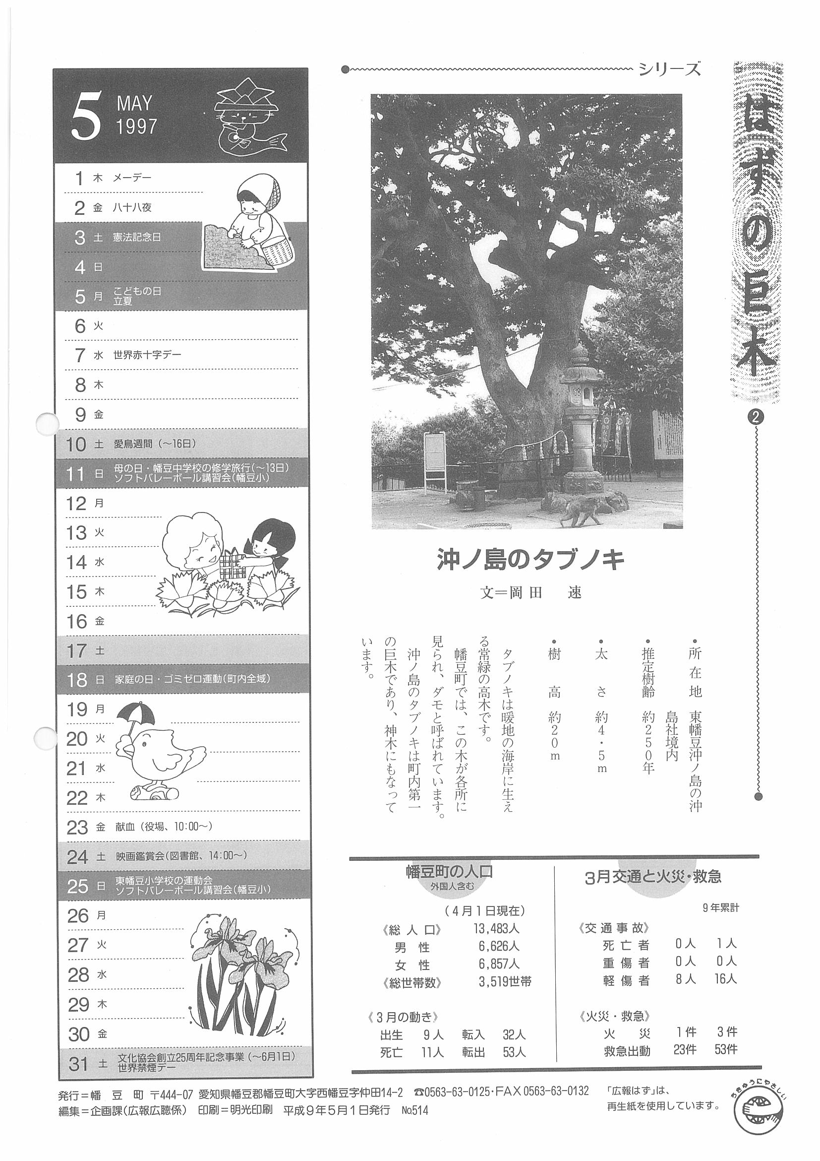 「広報はず」 1997年(平成9年) 5月号 目次