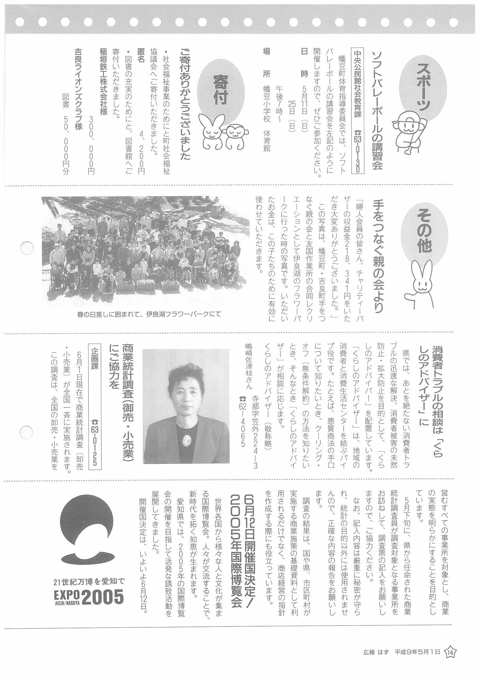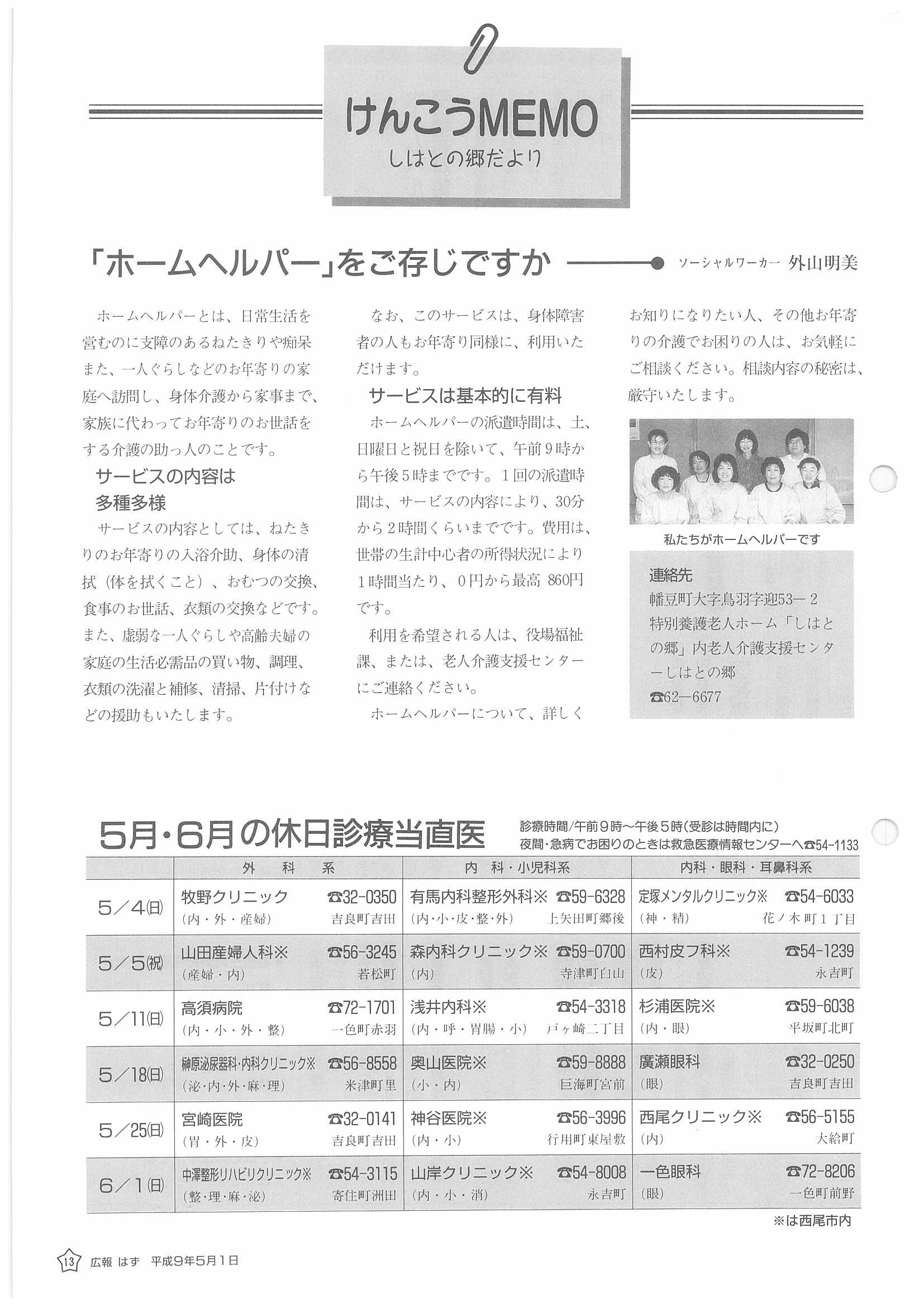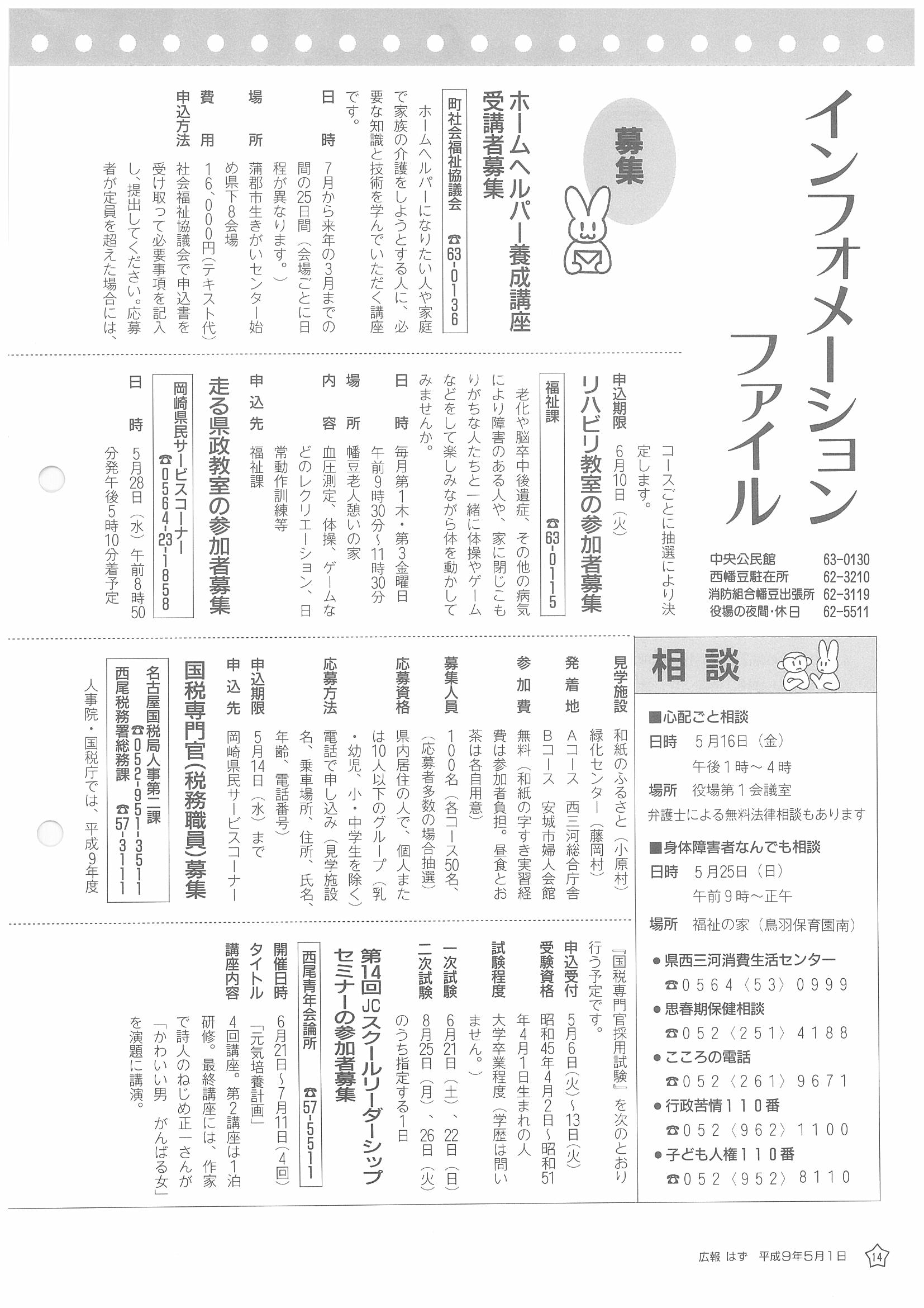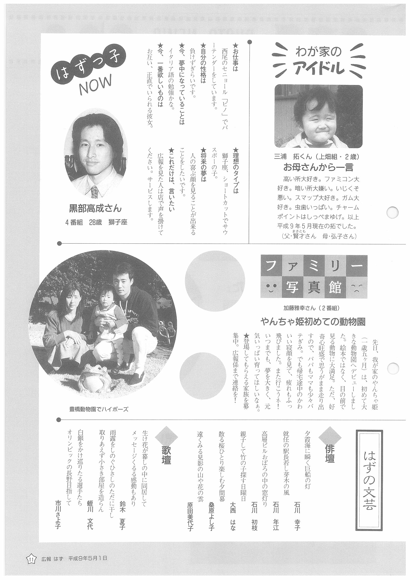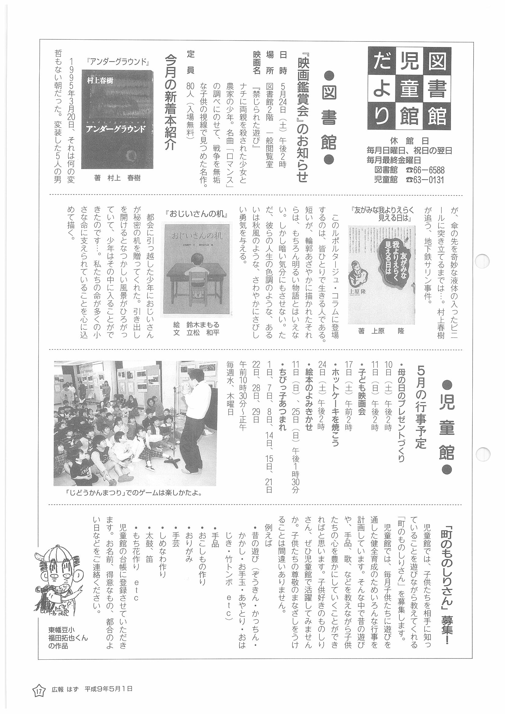 「広報はず」 1997年(平成9年) 5月号 目次