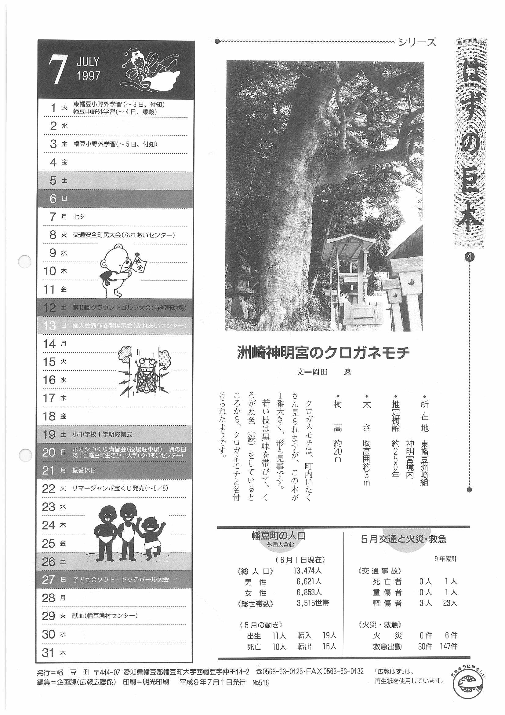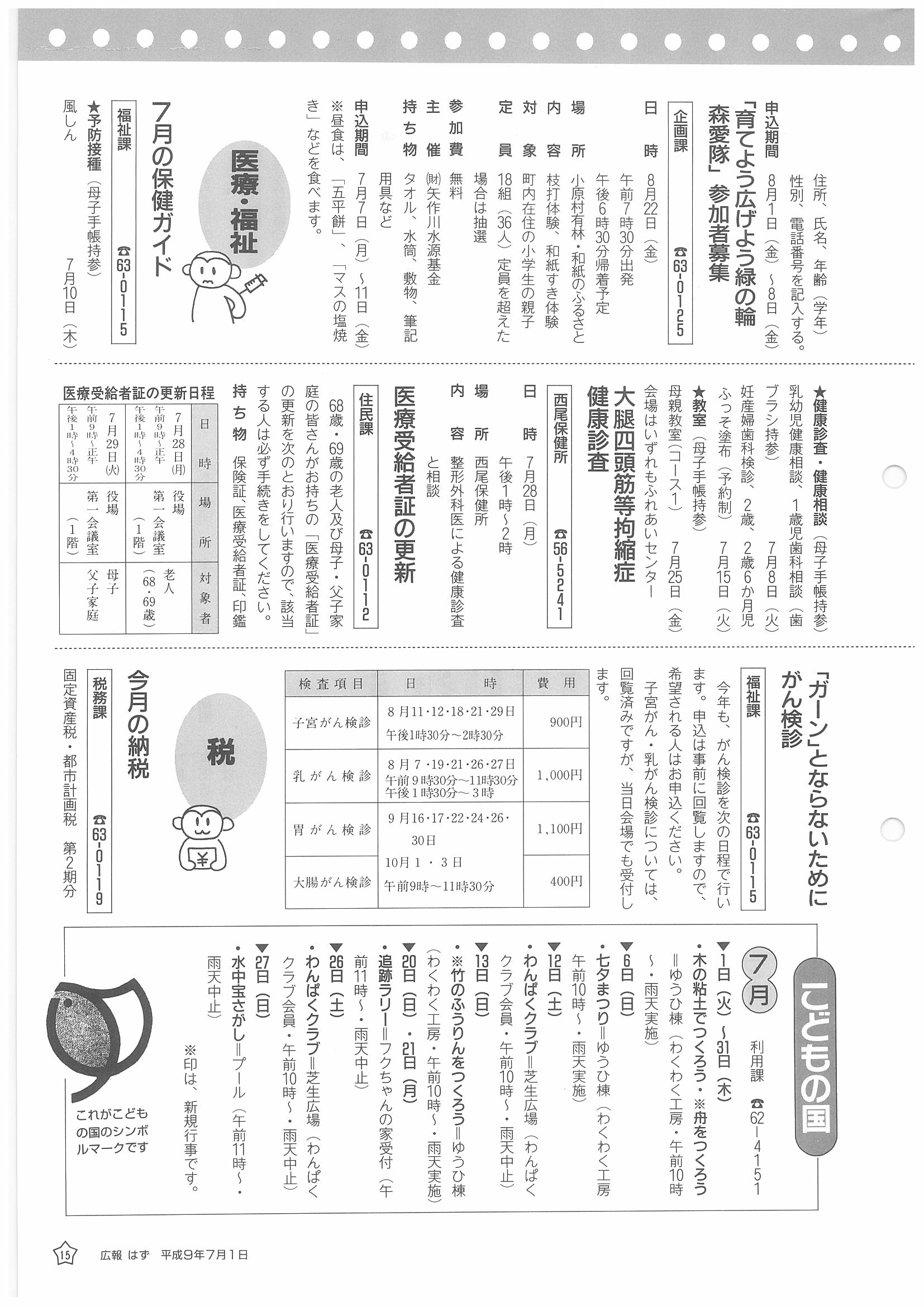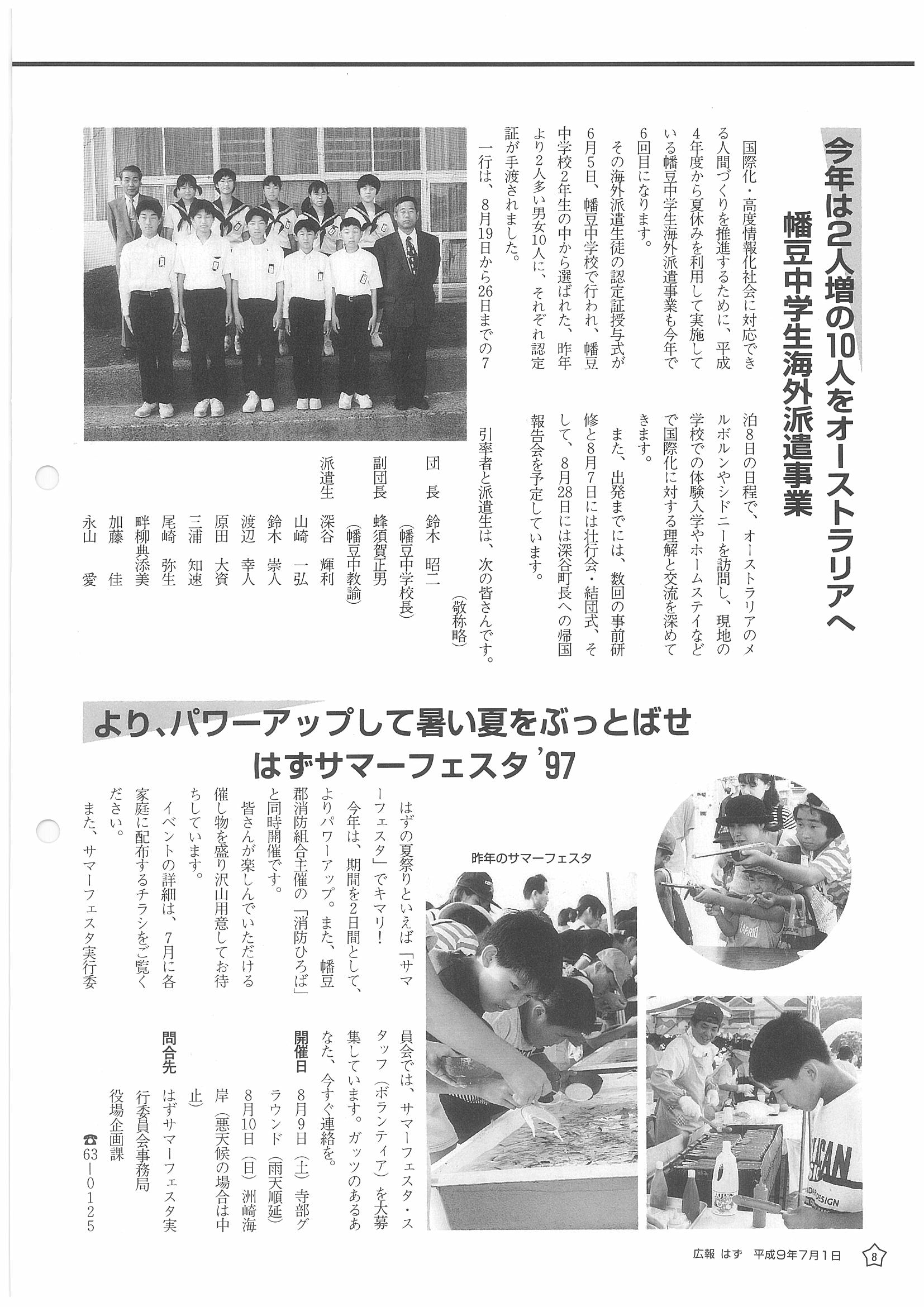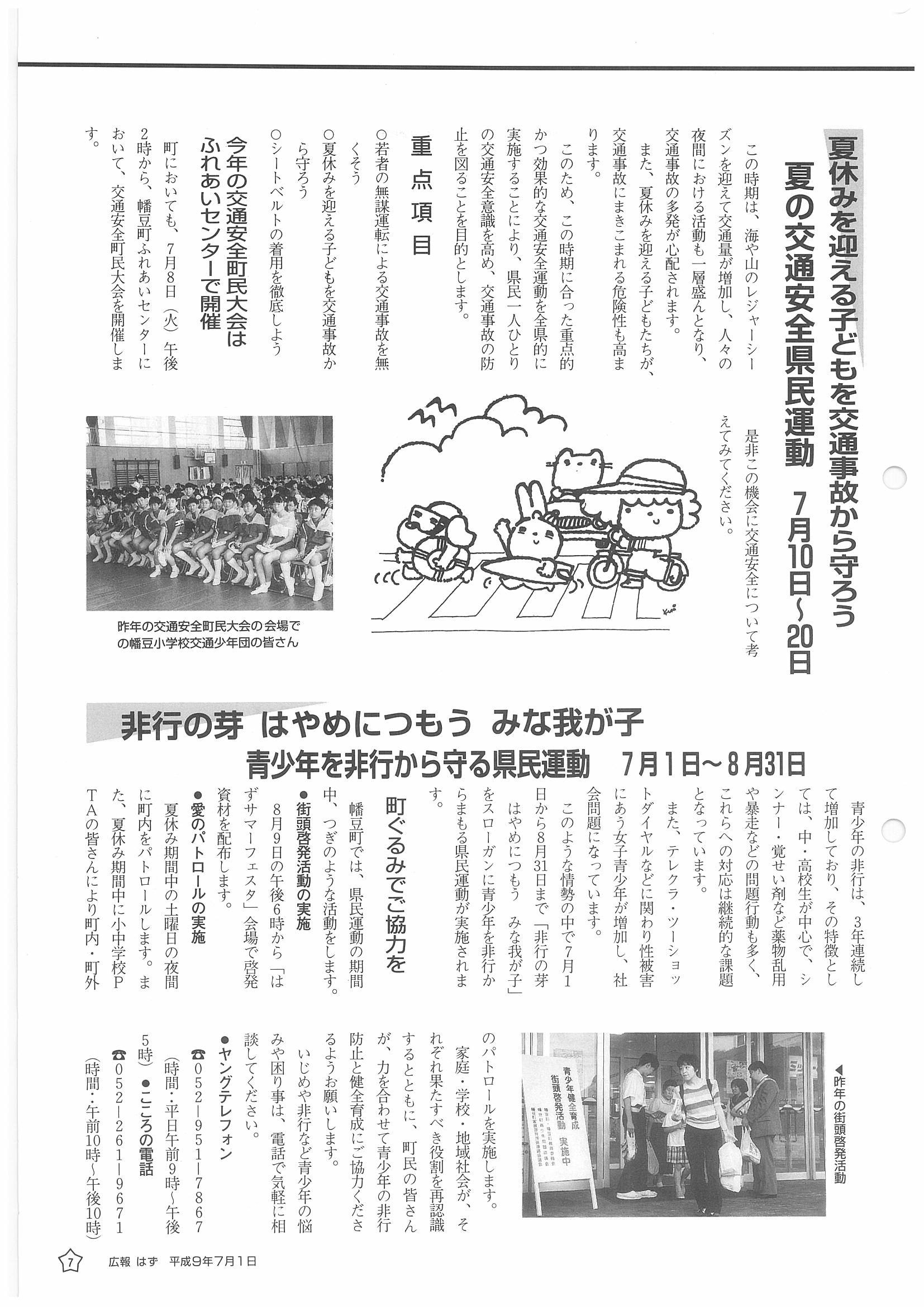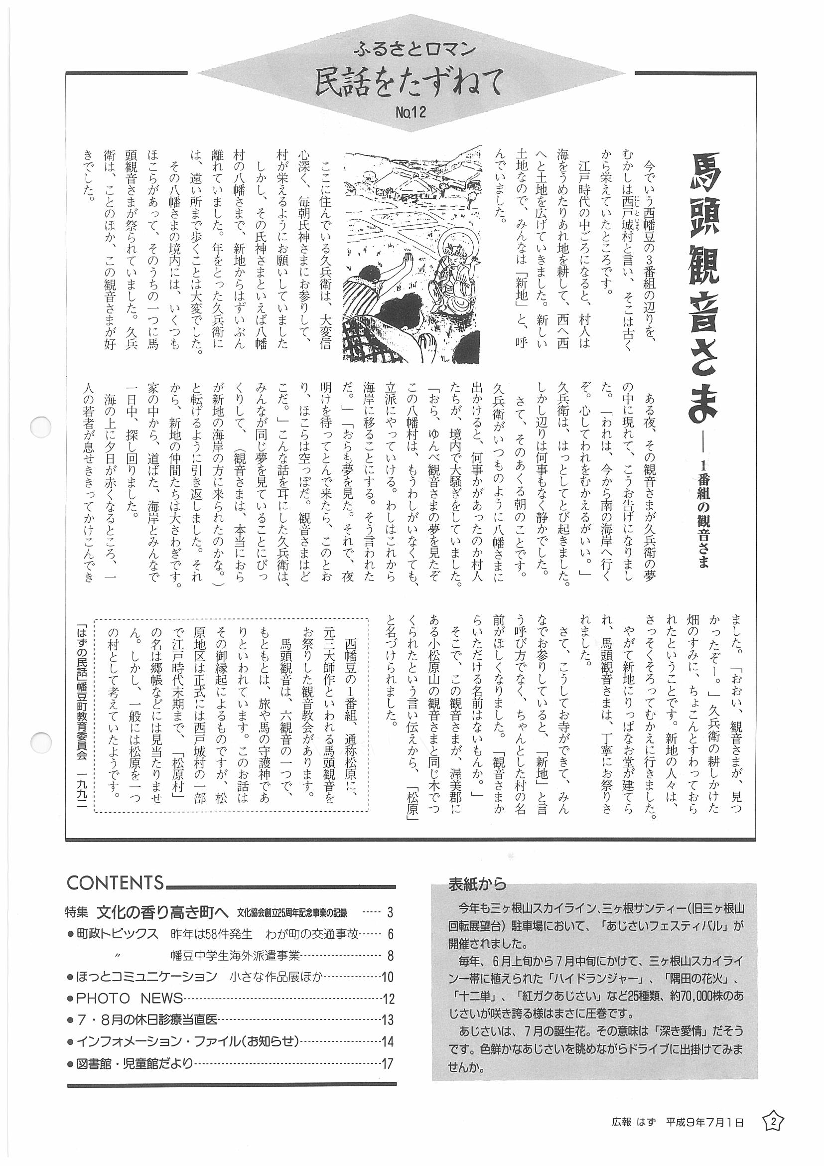 「広報はず」 1997年(平成9年) 7月号 目次