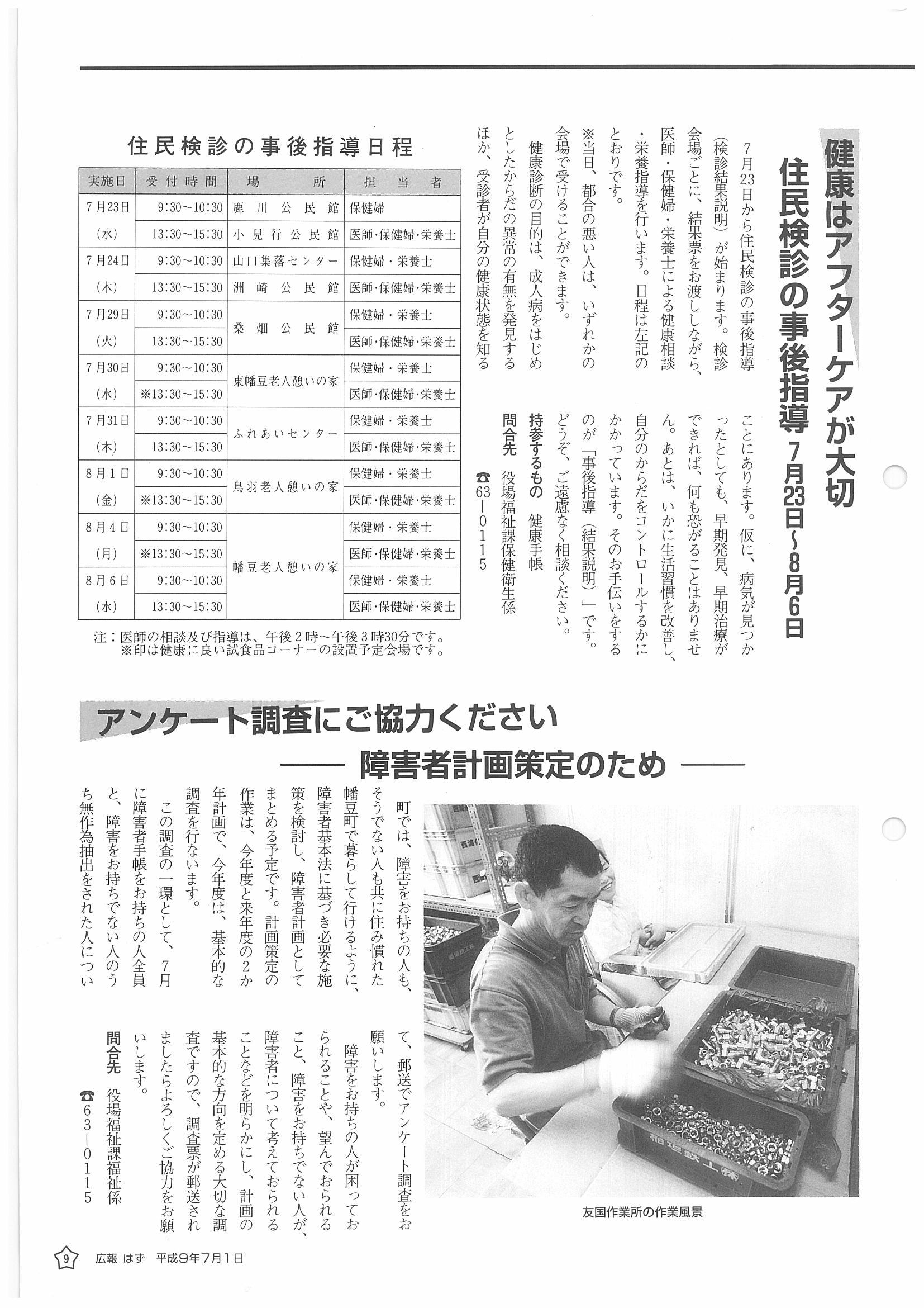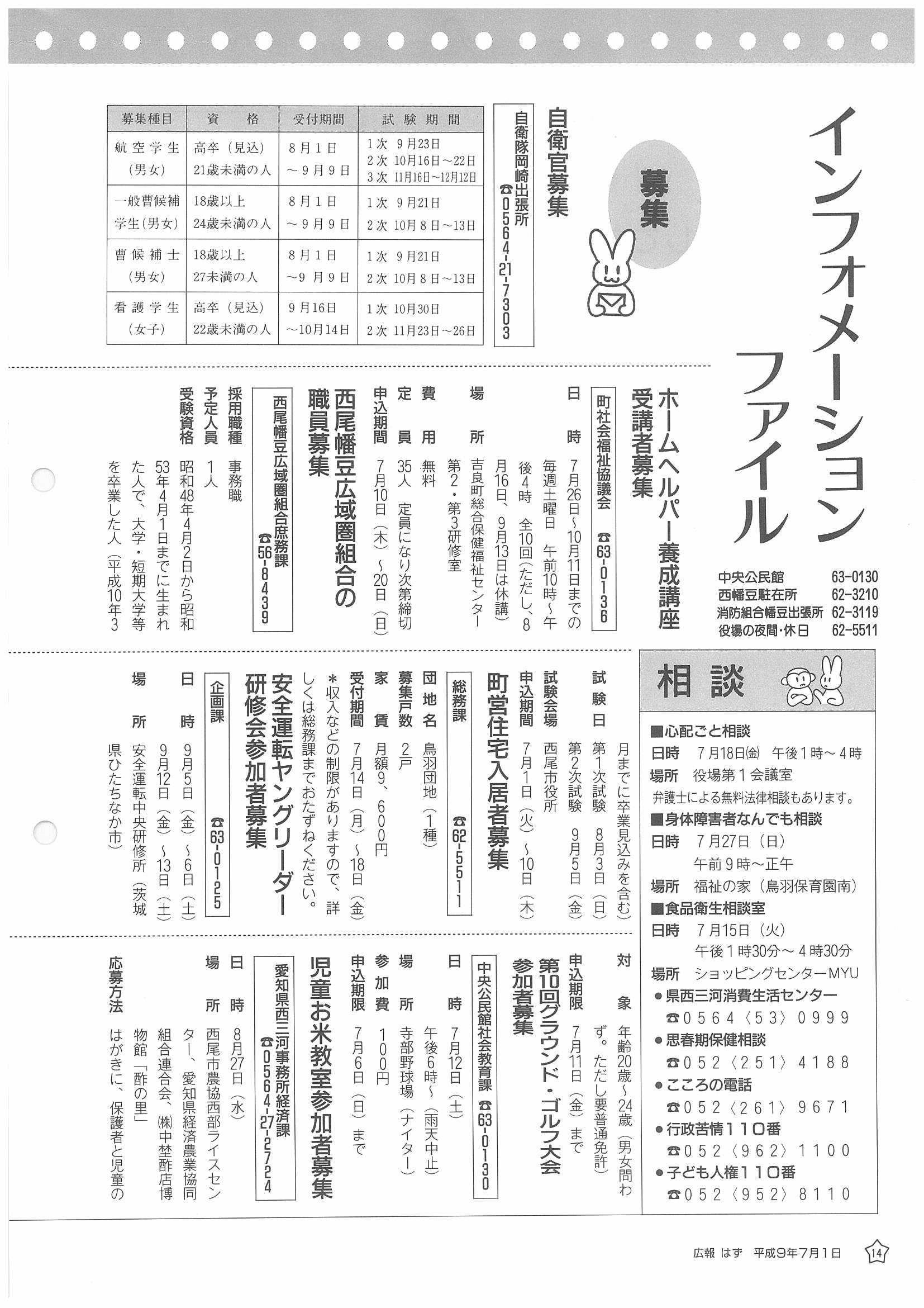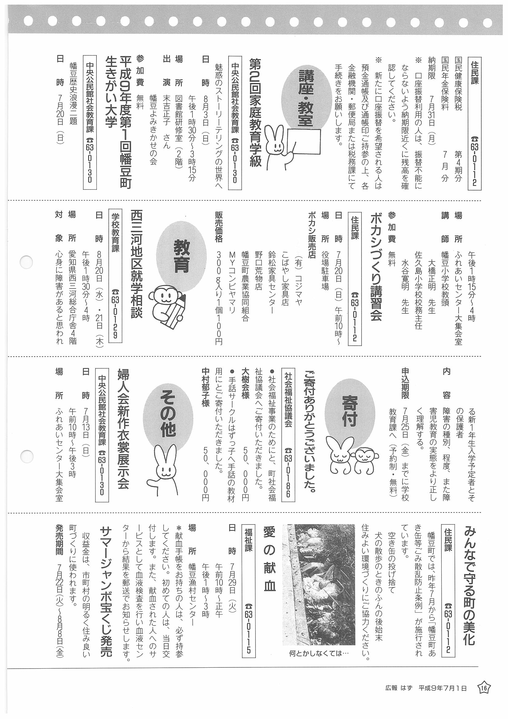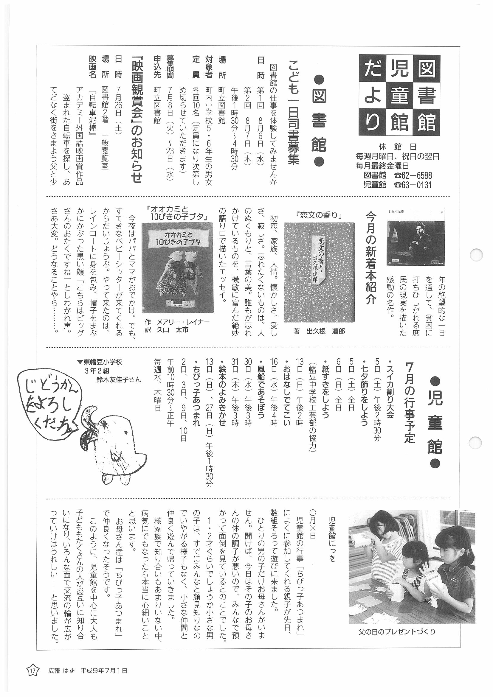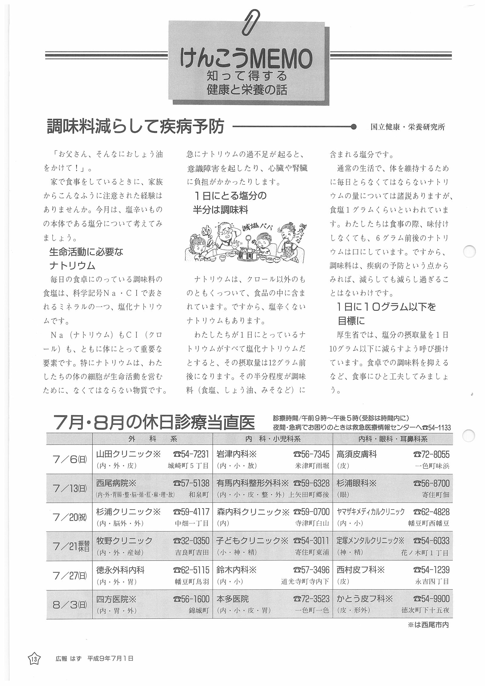 「広報はず」 1997年(平成9年) 7月号 目次