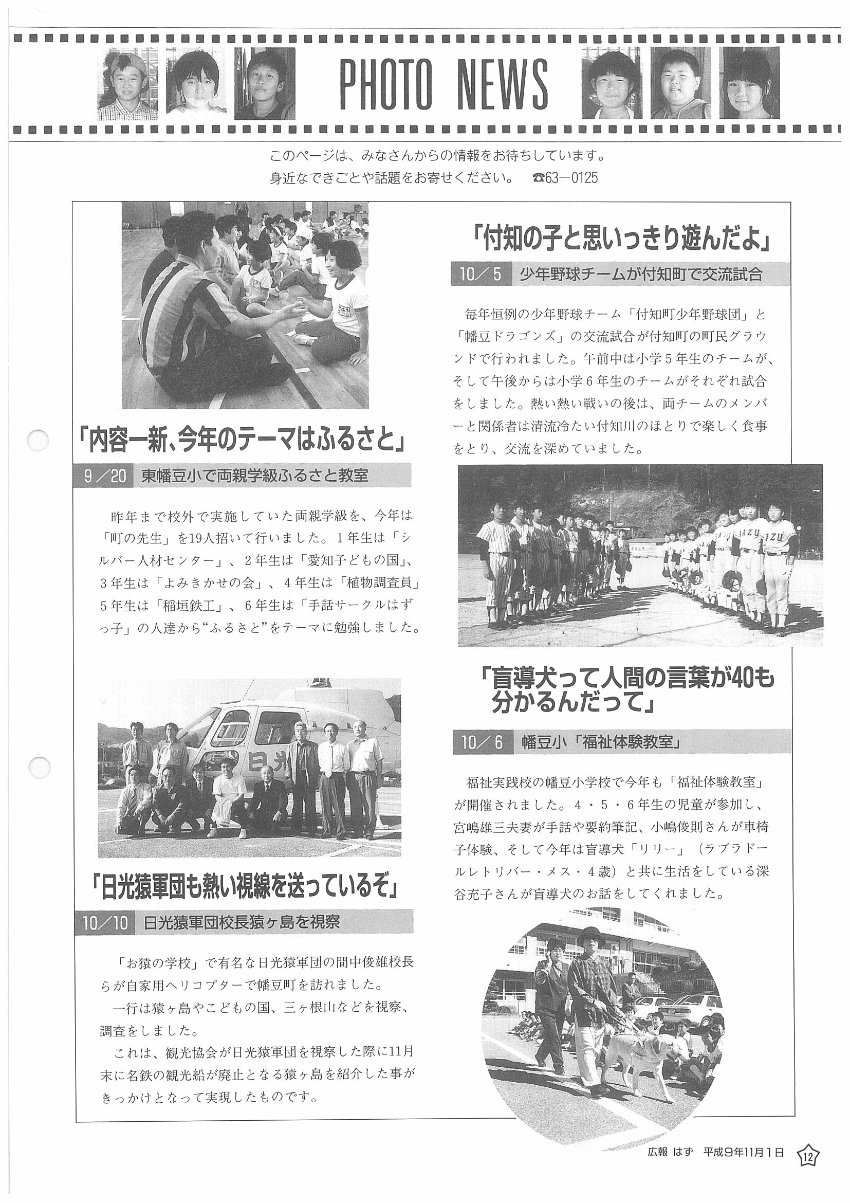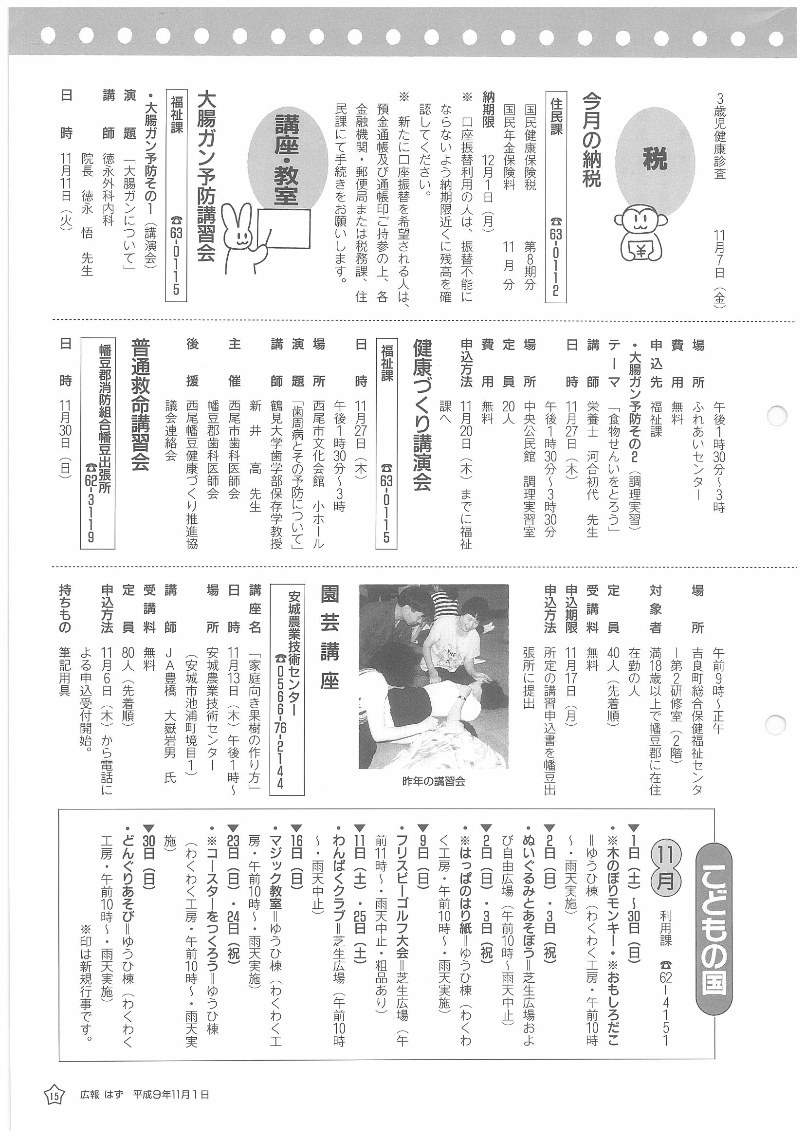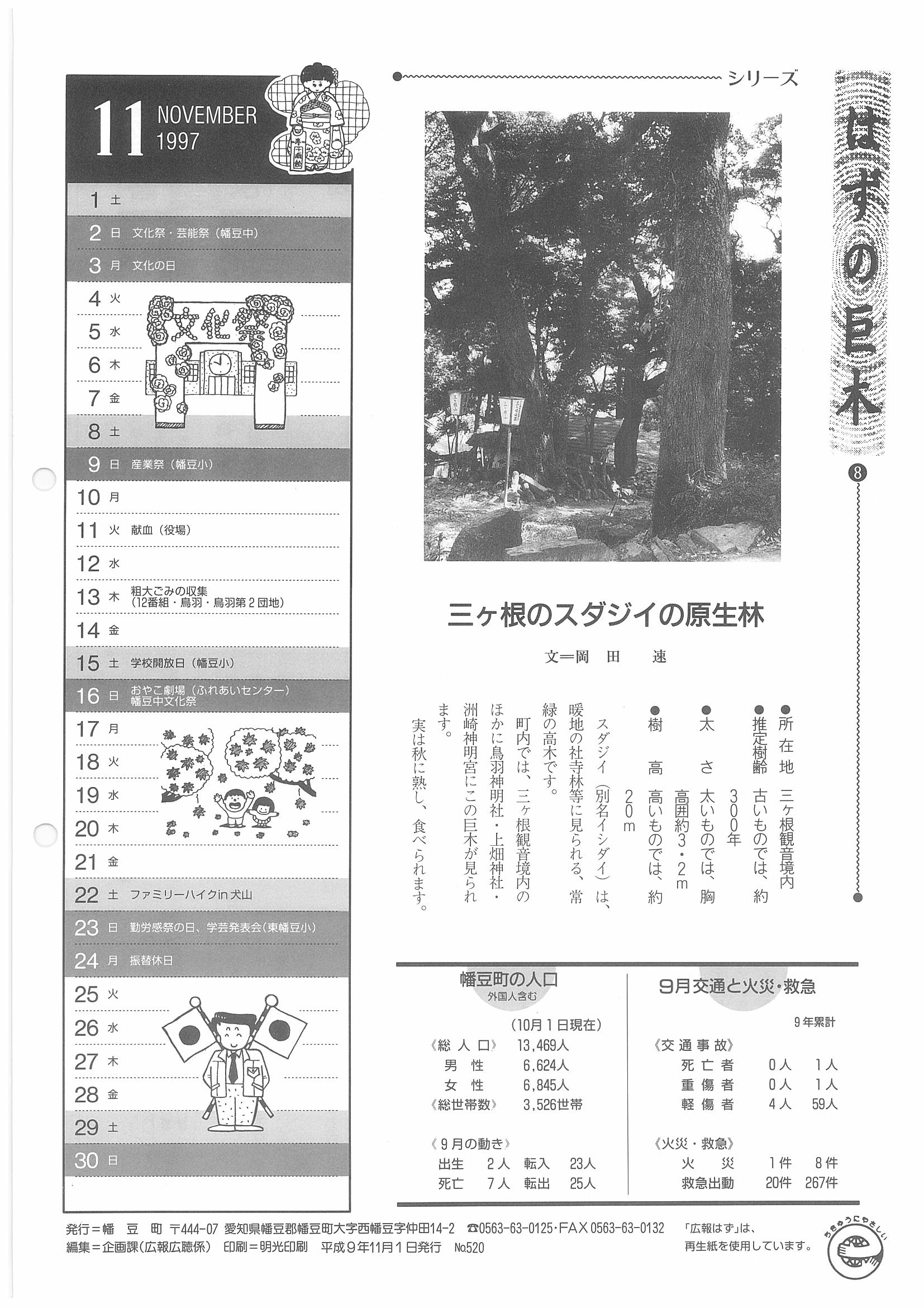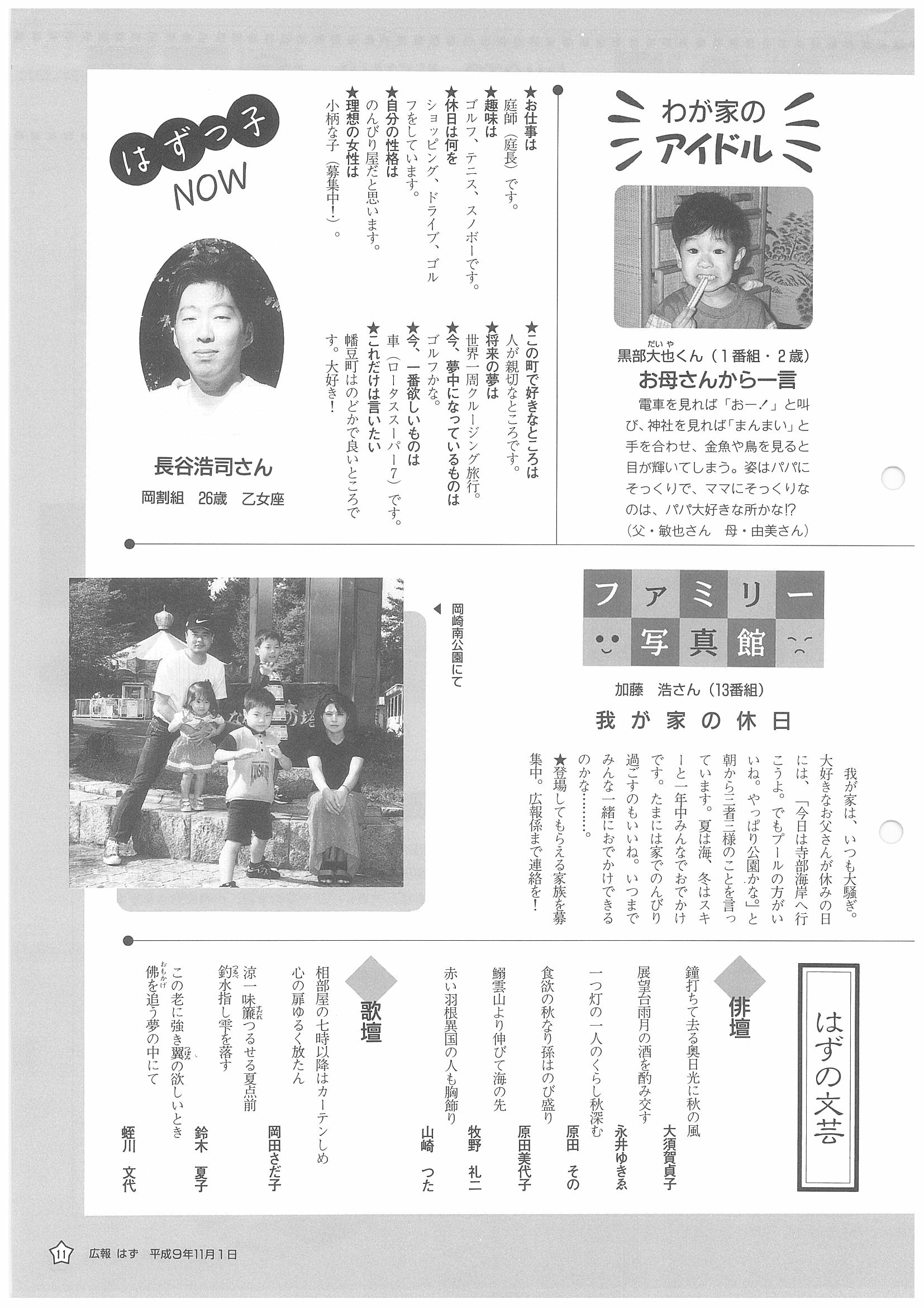 「広報はず」 1997年(平成9年) 11月号 目次