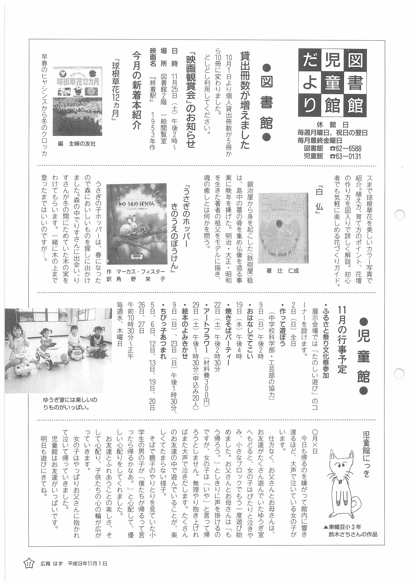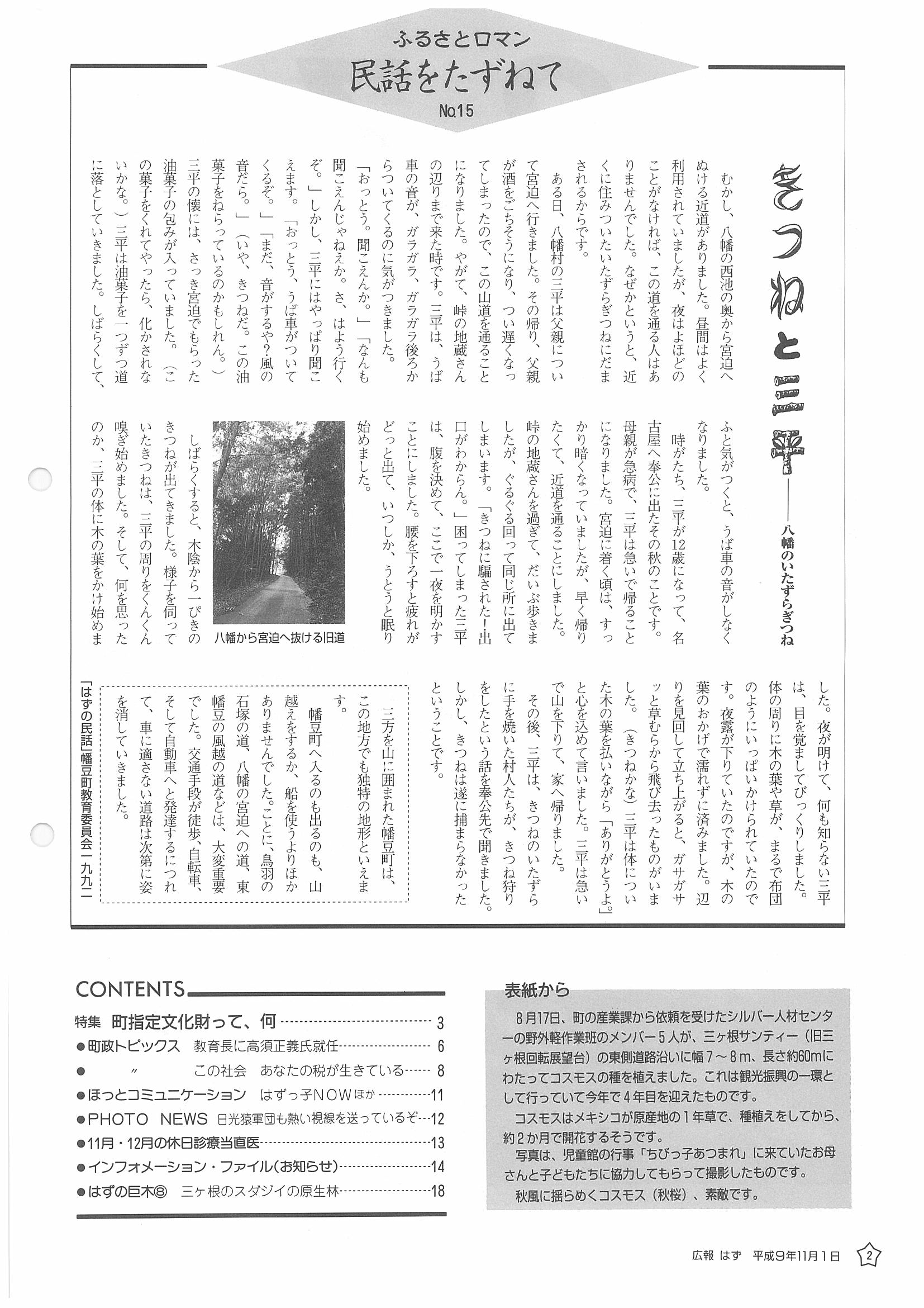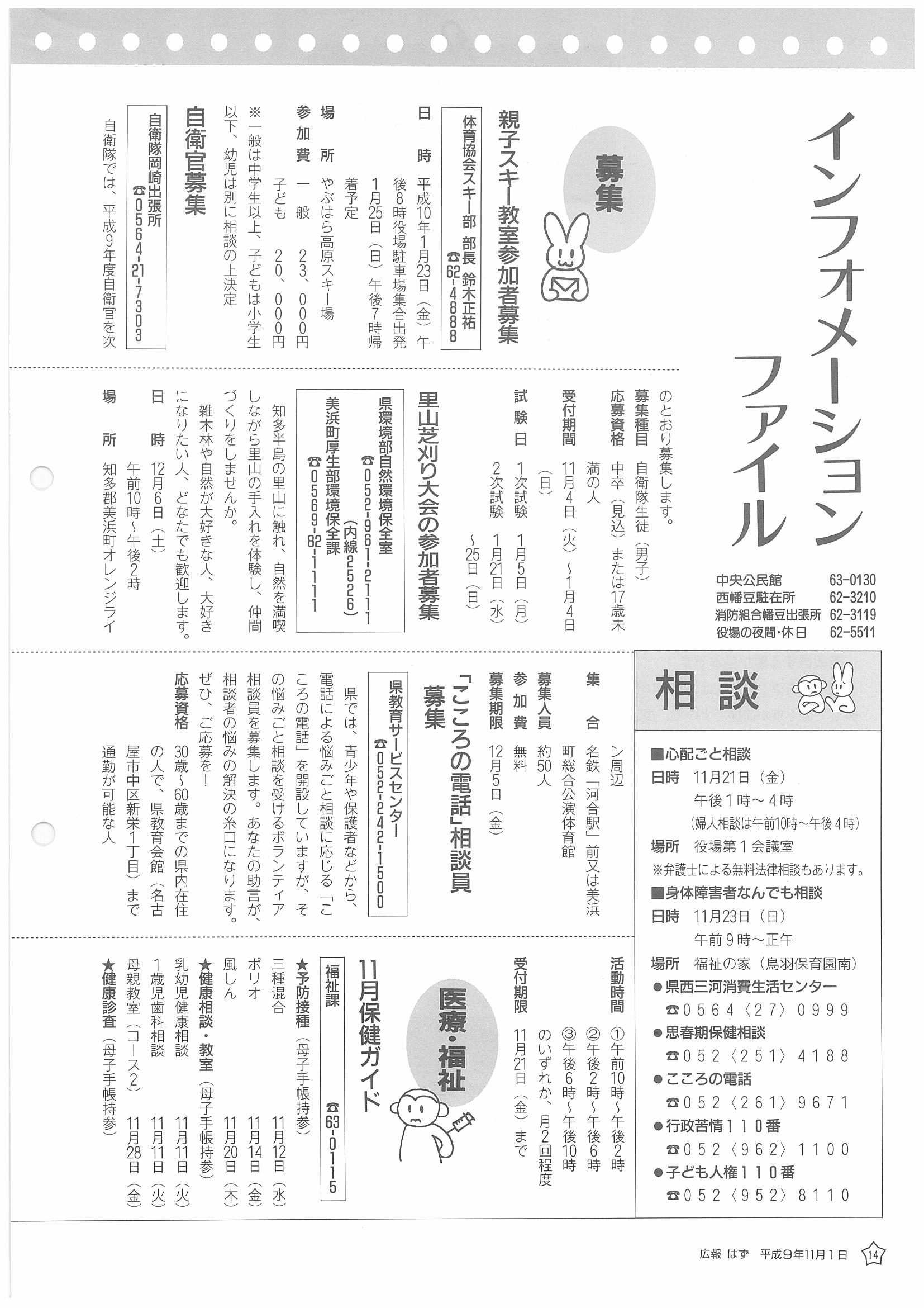「広報はず」 1997年(平成9年) 11月号 目次