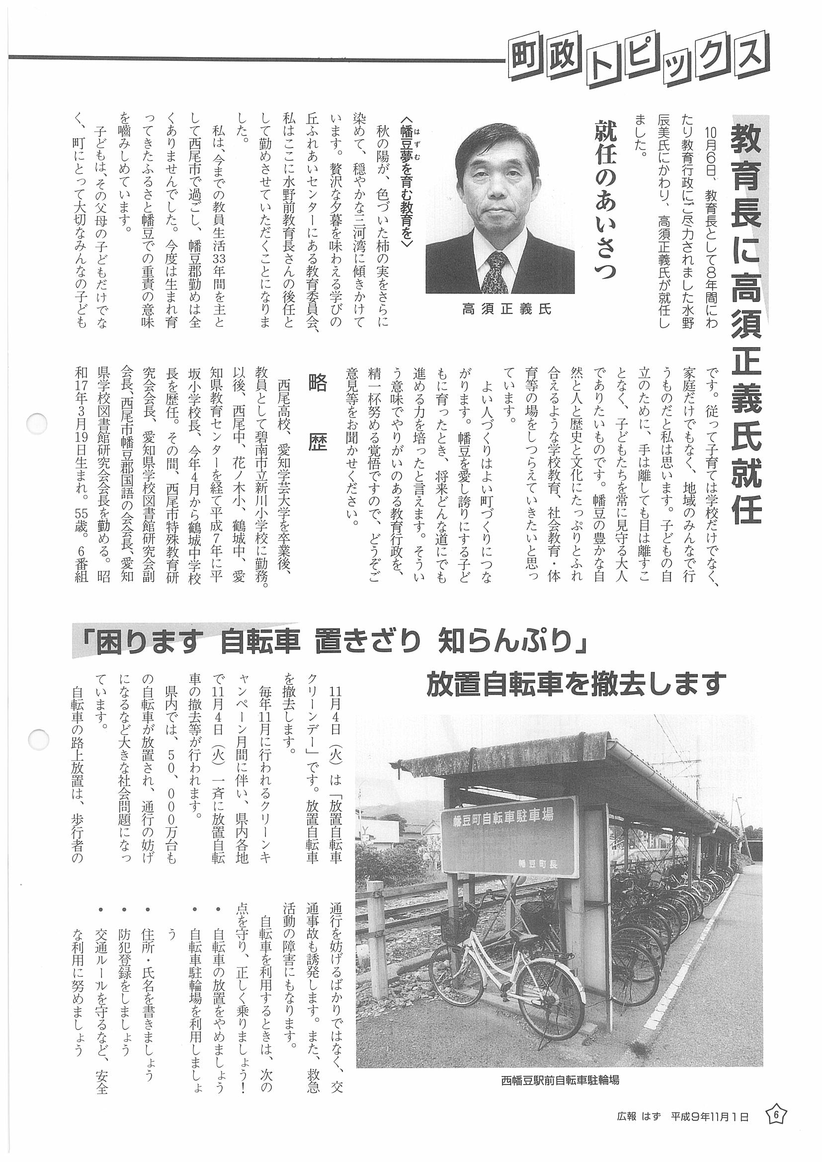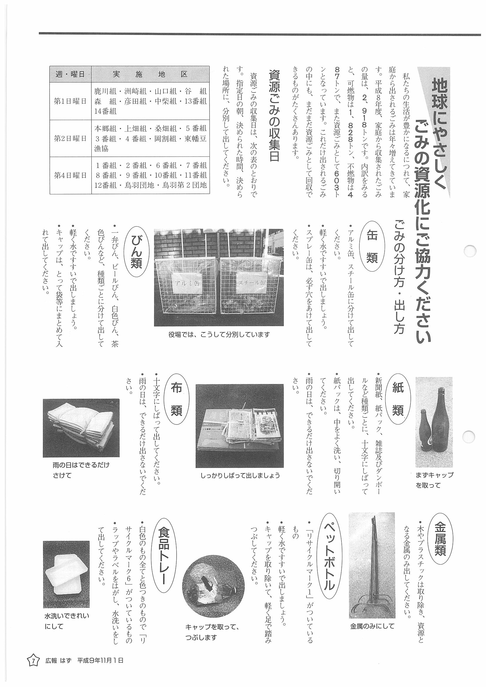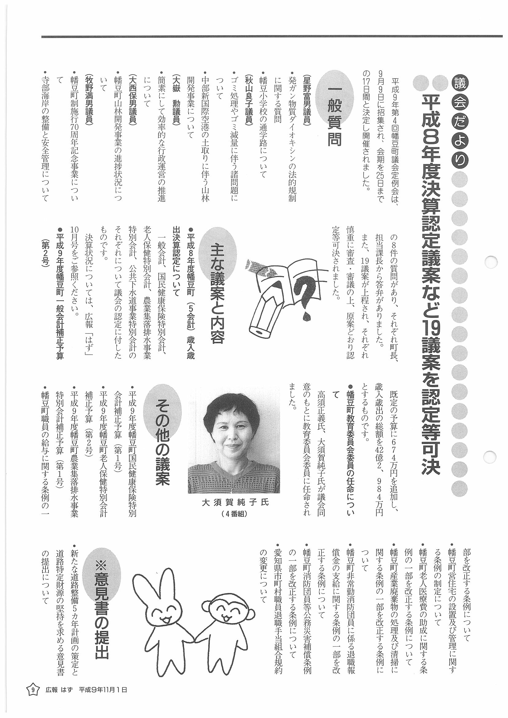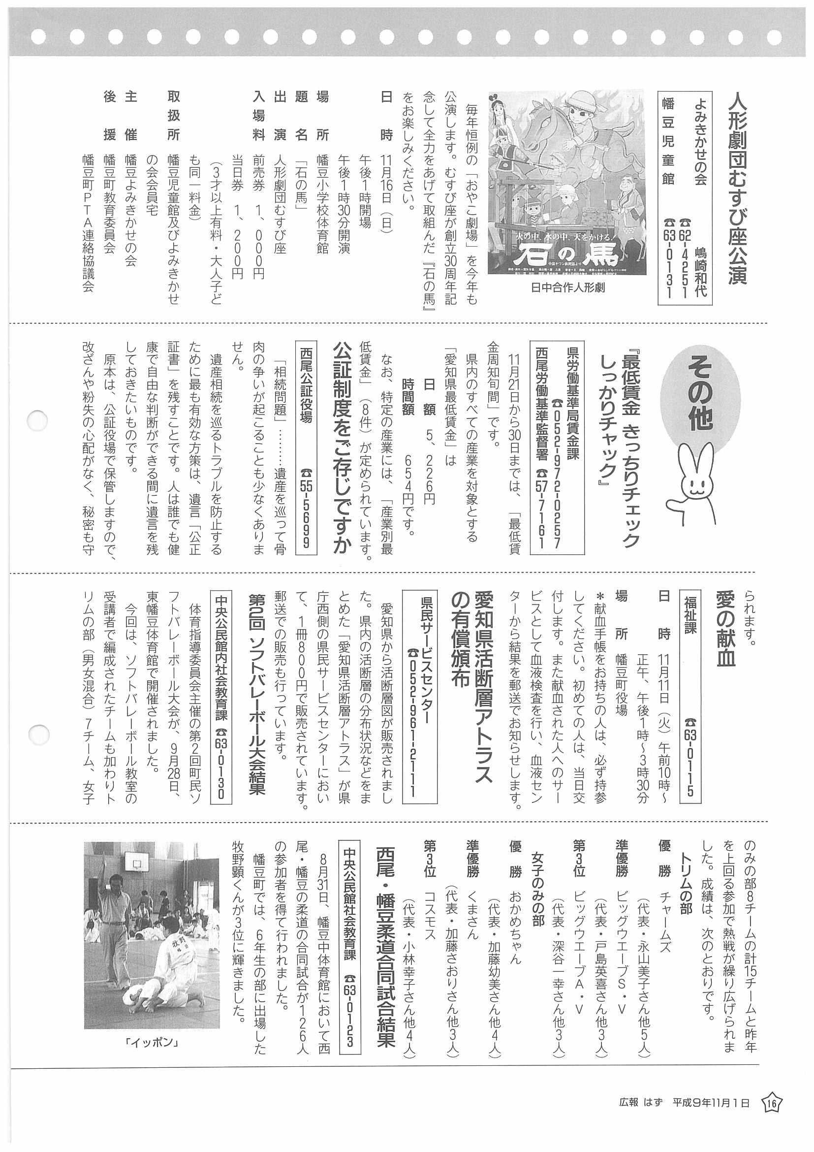 「広報はず」 1997年(平成9年) 11月号 目次