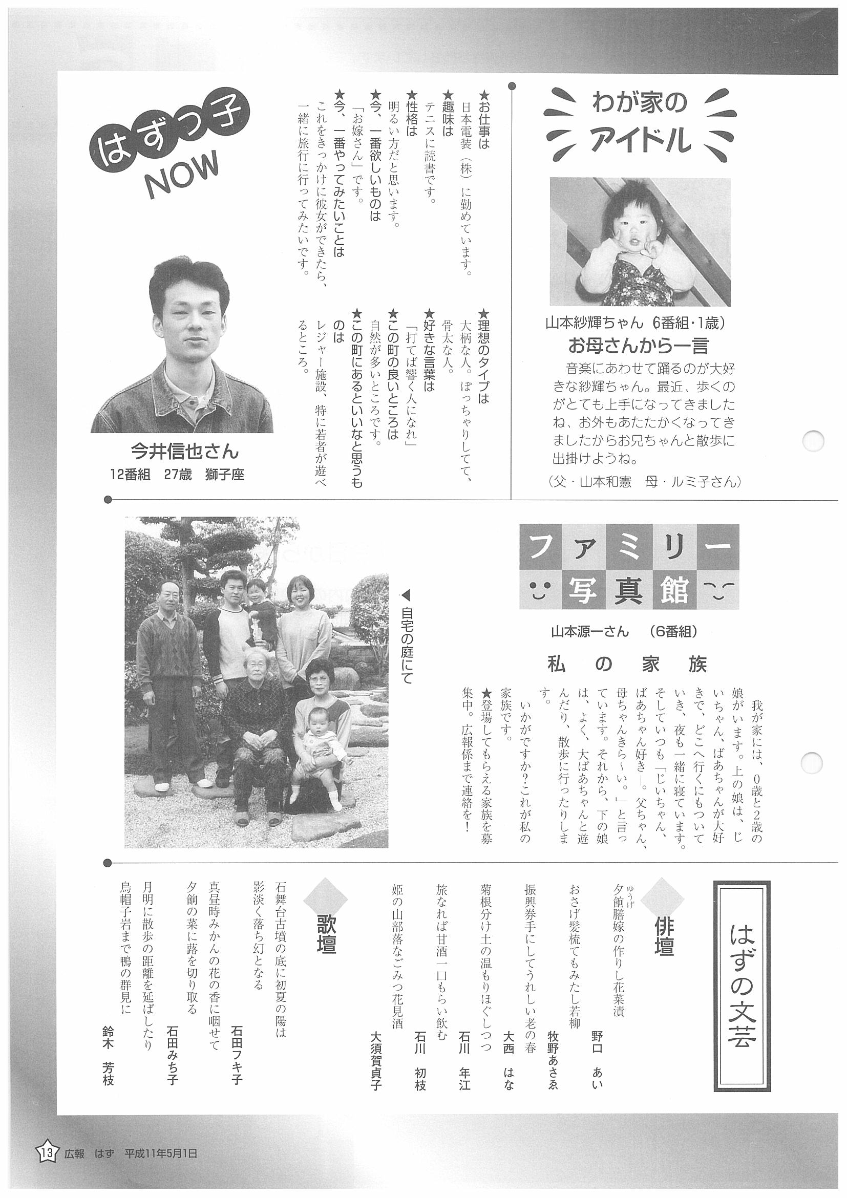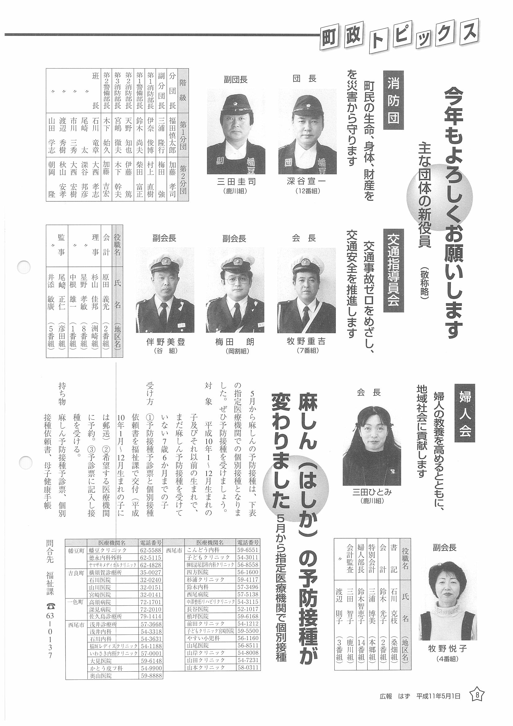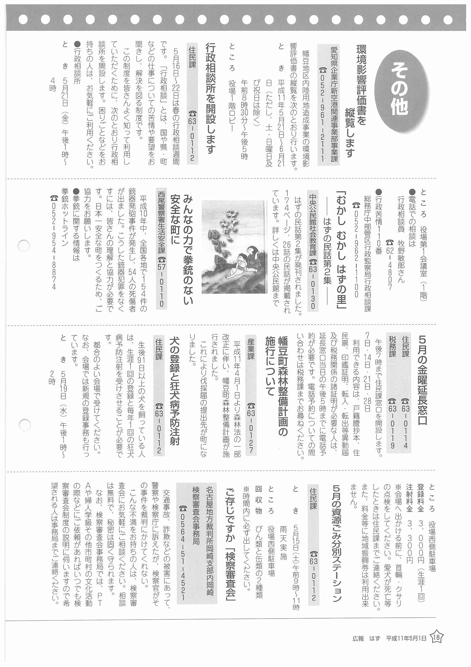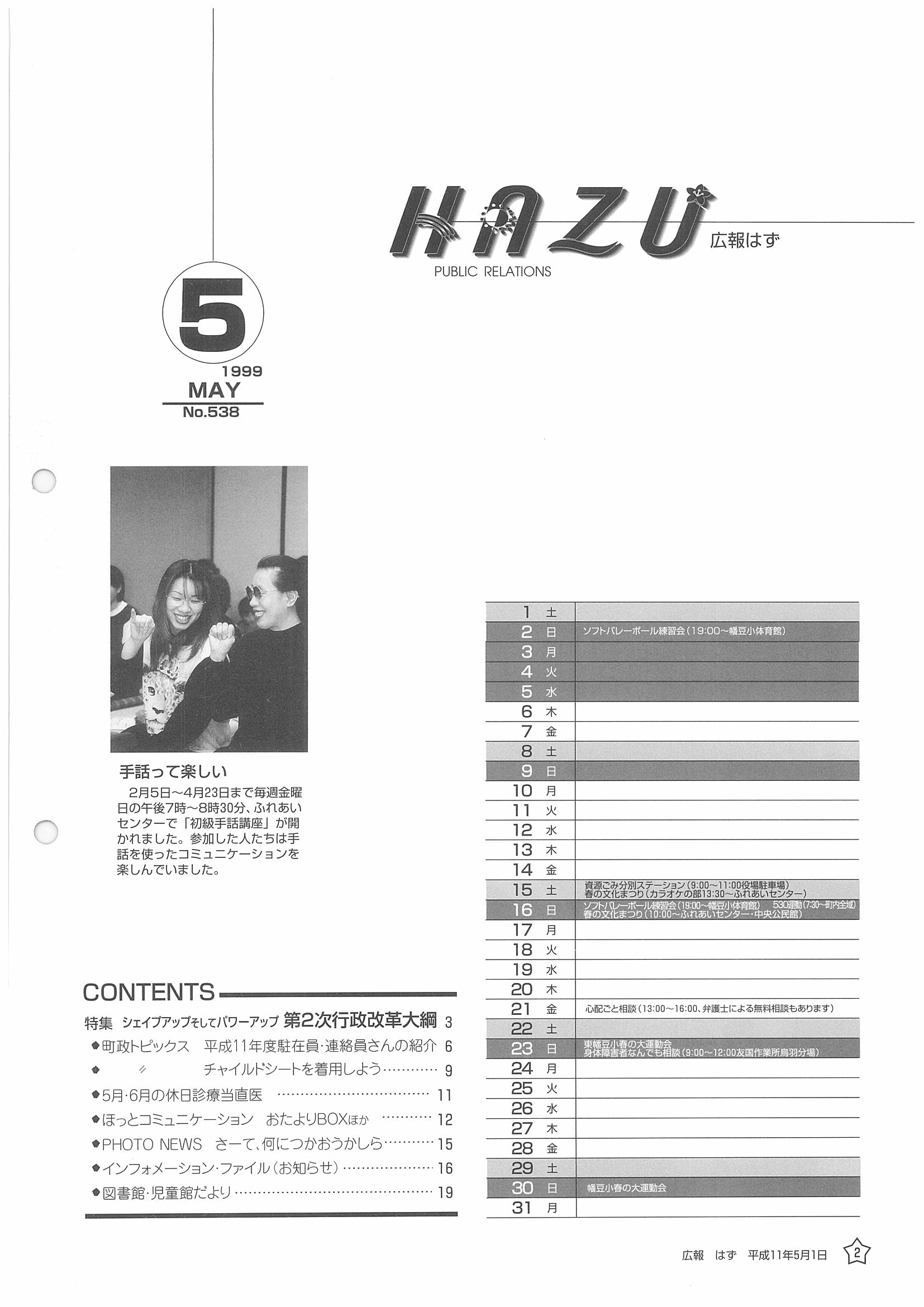 「広報はず」 1999年(平成11年) 5月号 目次