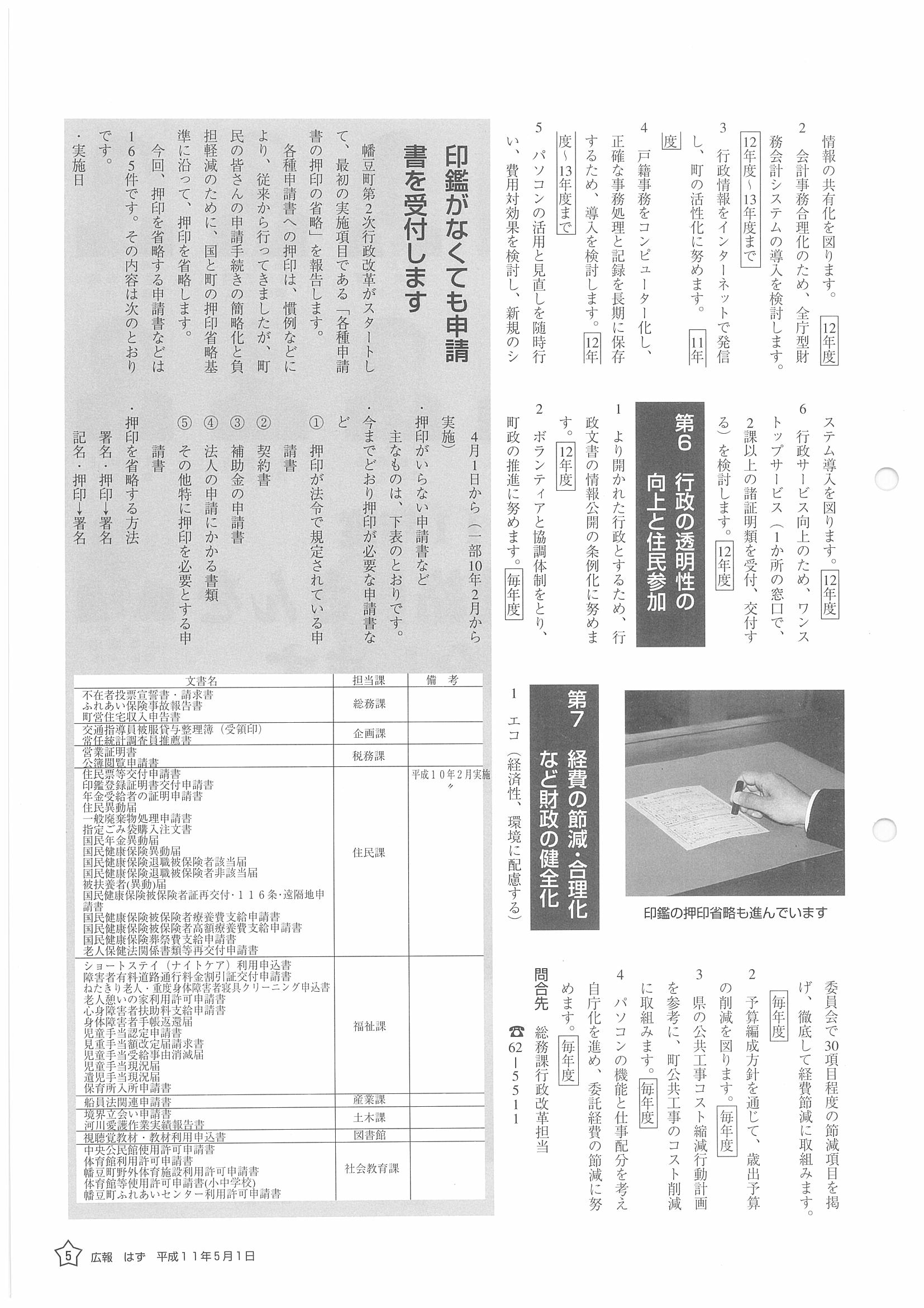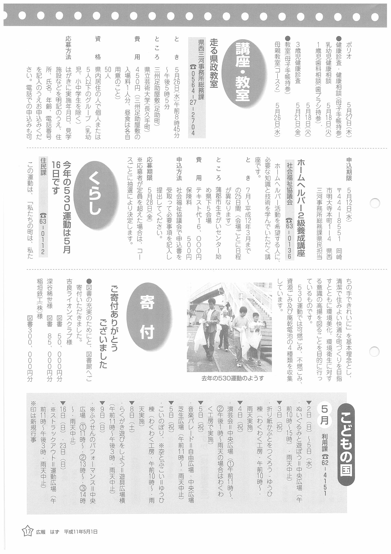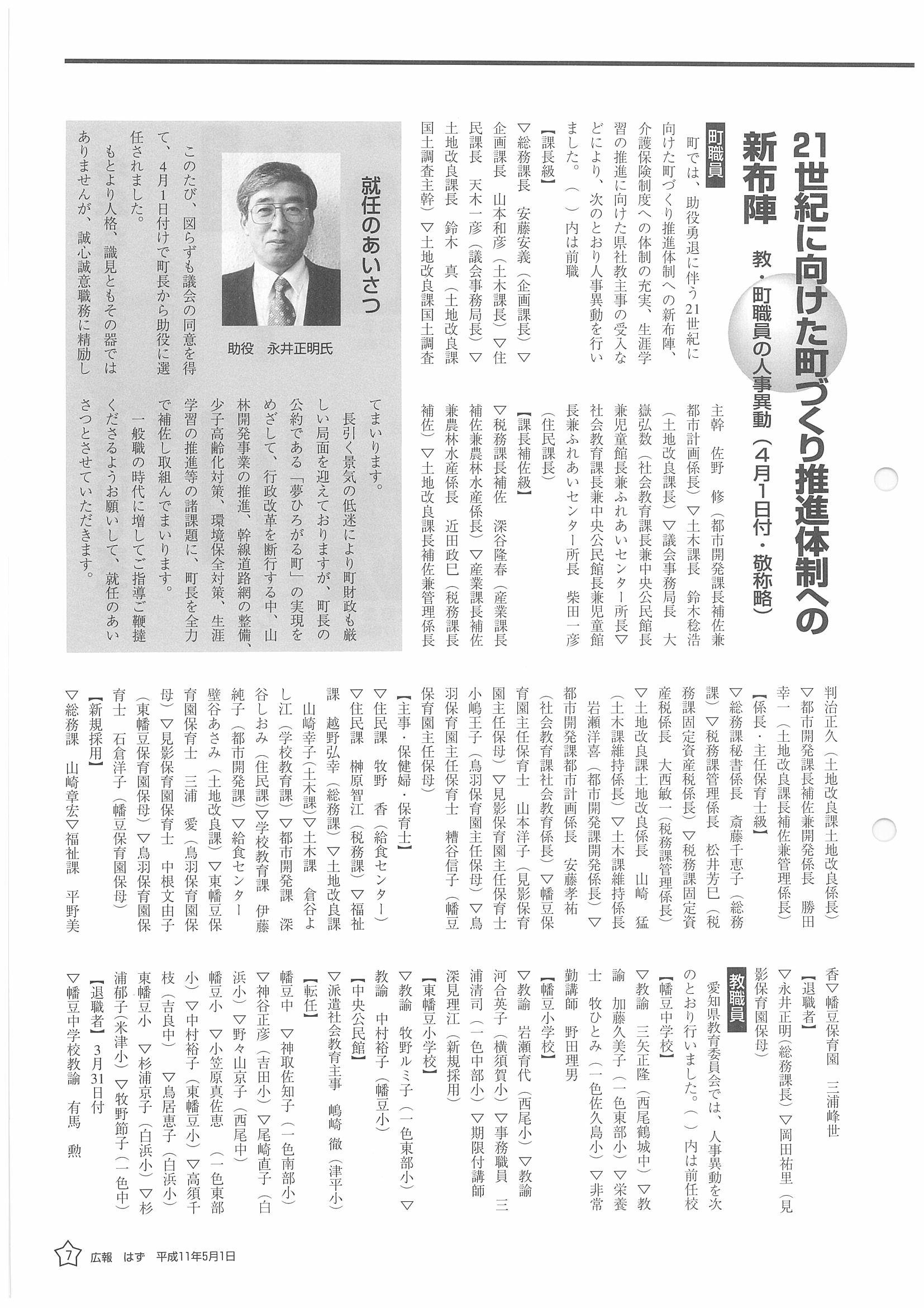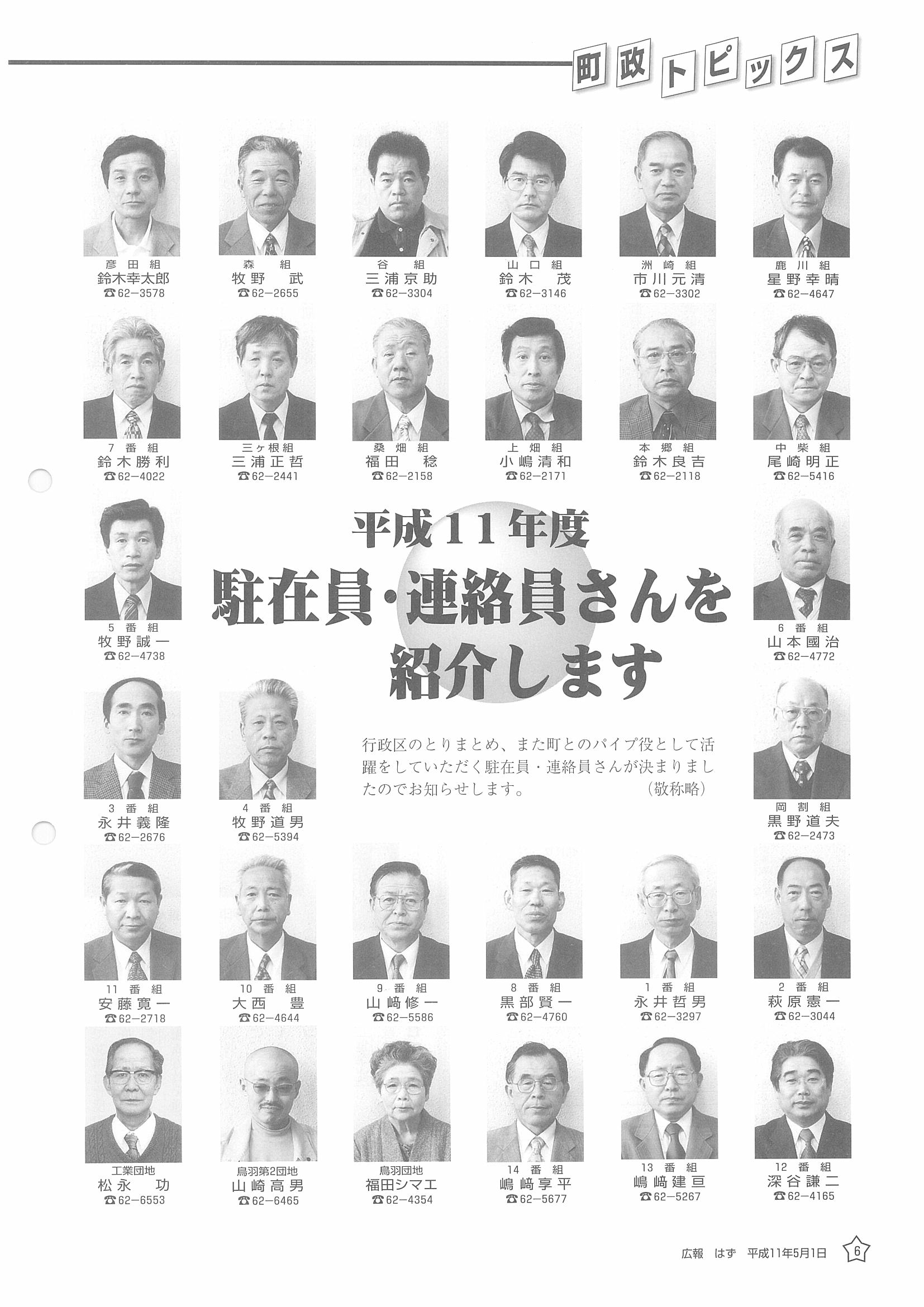 「広報はず」 1999年(平成11年) 5月号 目次