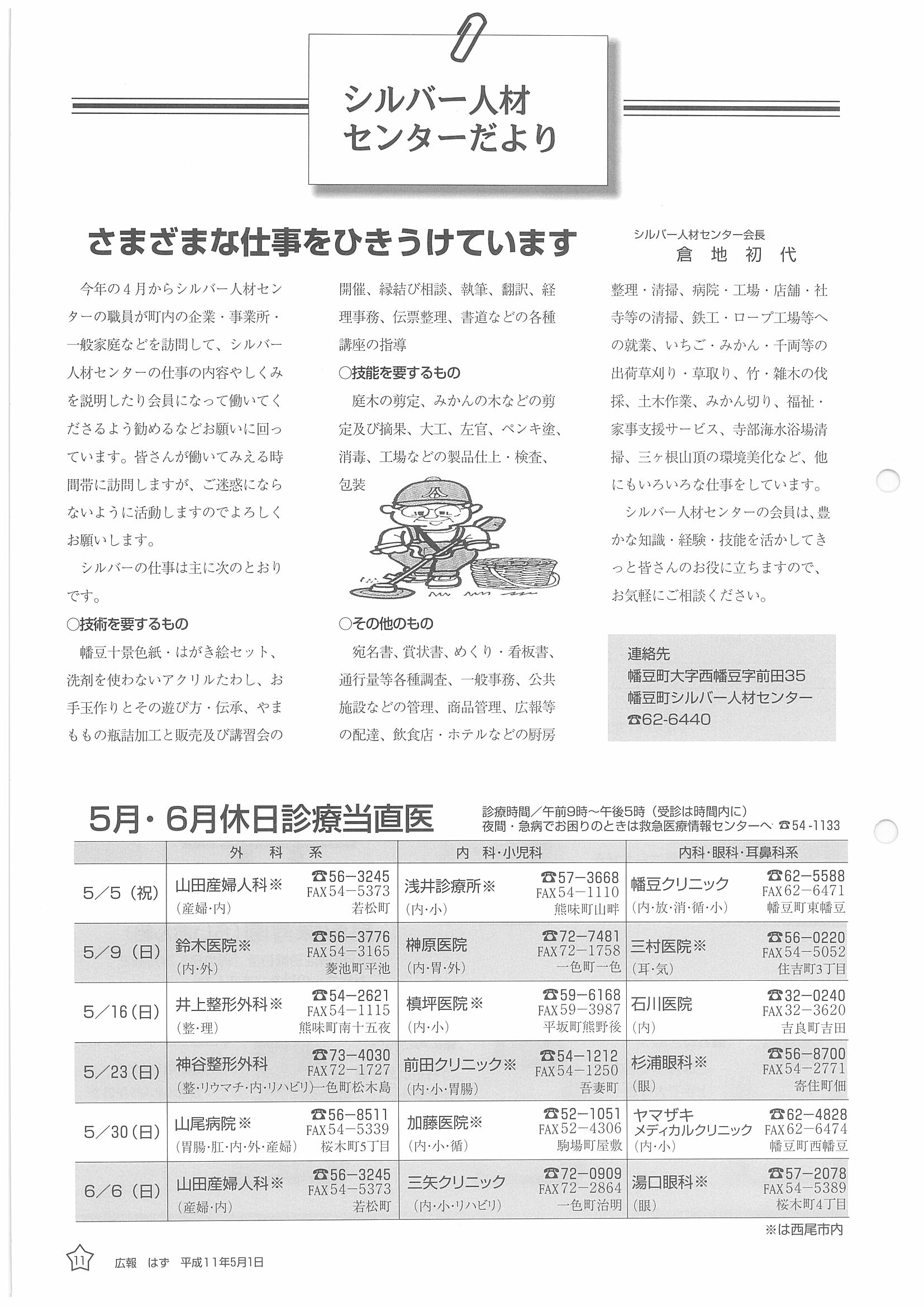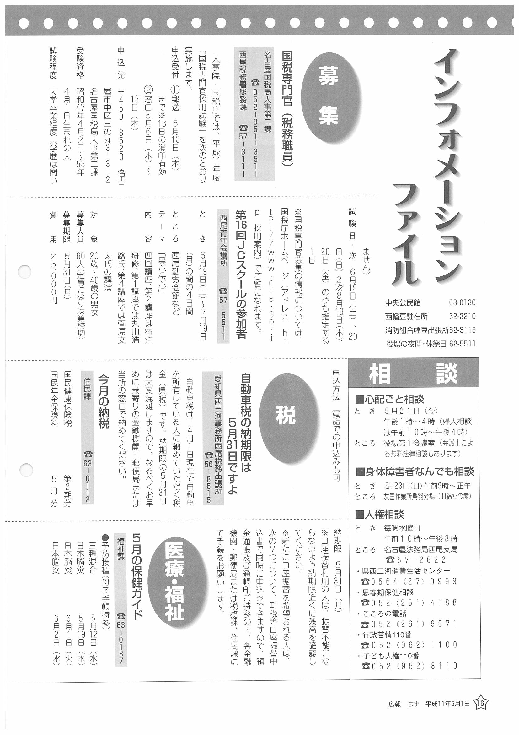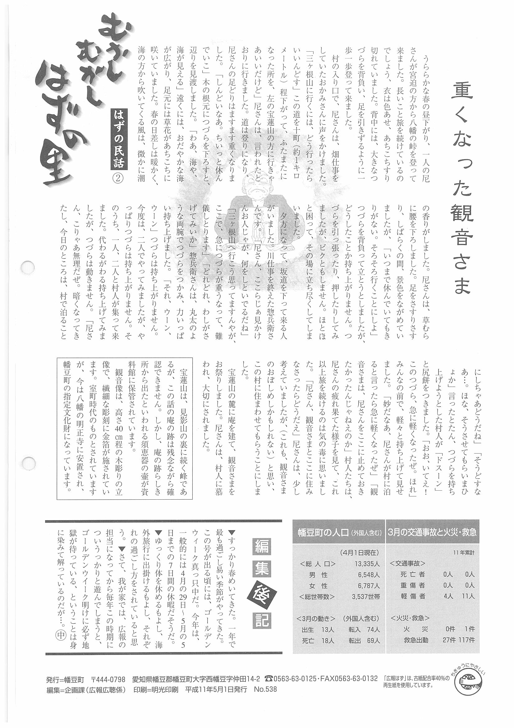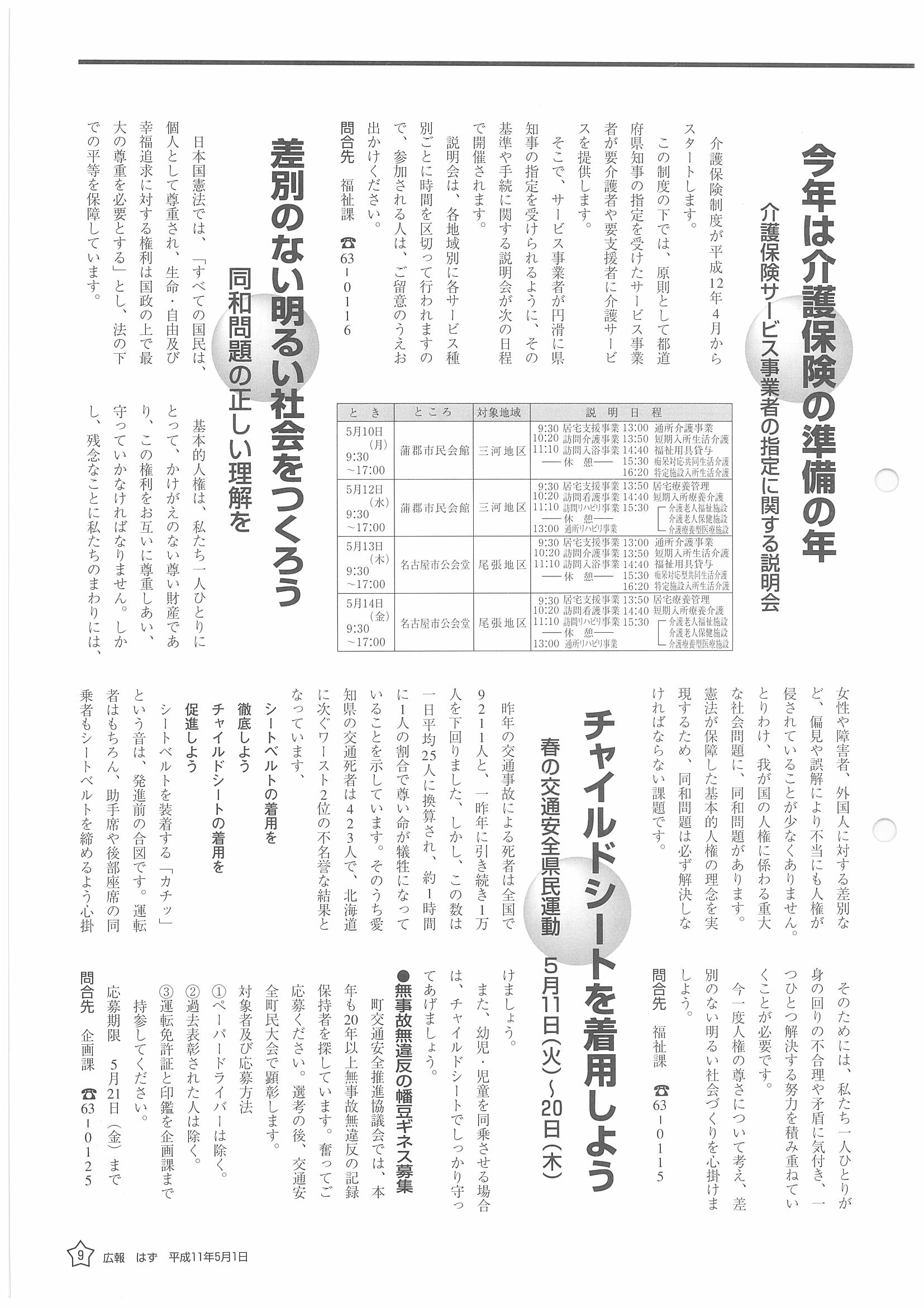 「広報はず」 1999年(平成11年) 5月号 目次