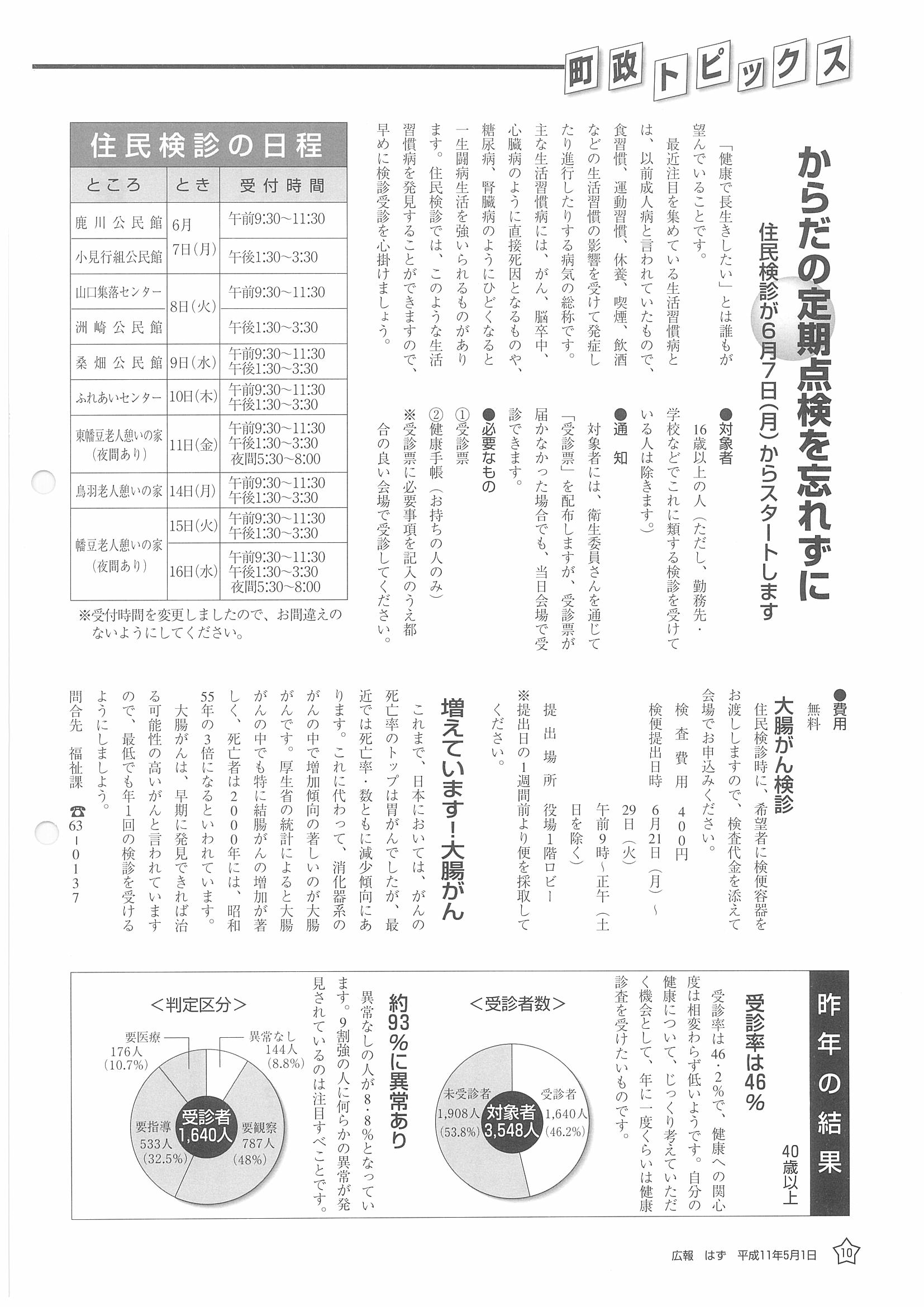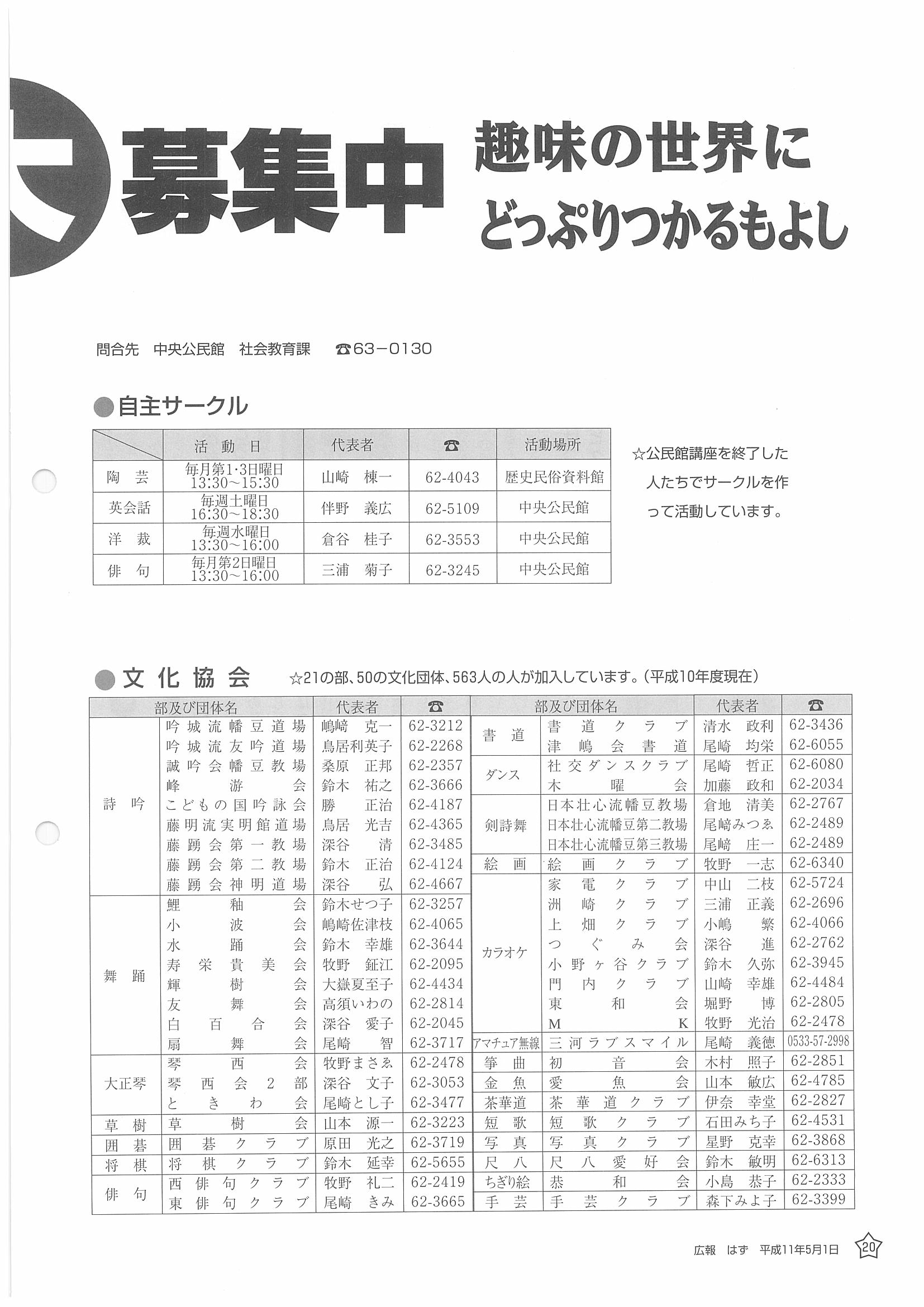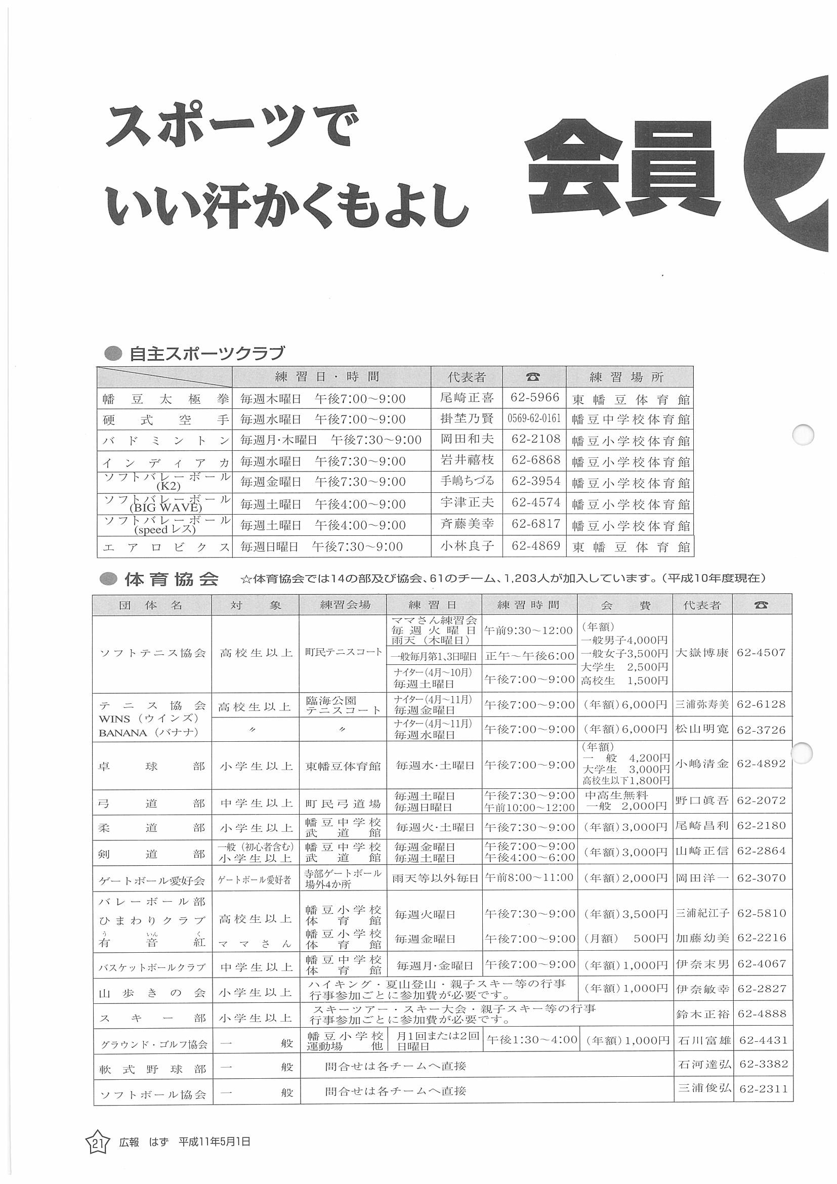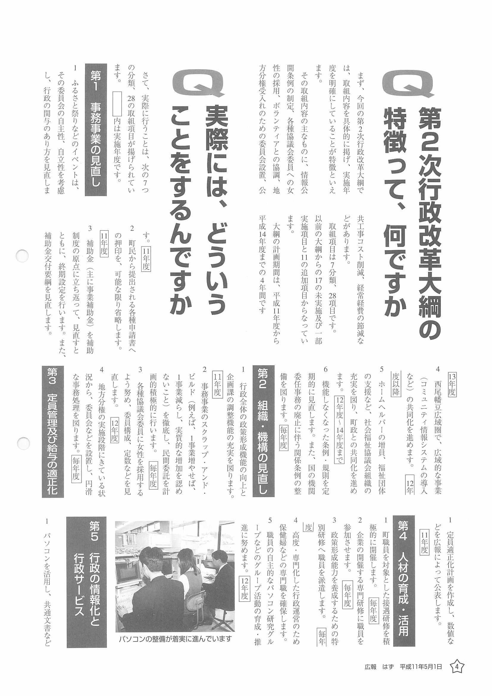 「広報はず」 1999年(平成11年) 5月号 目次