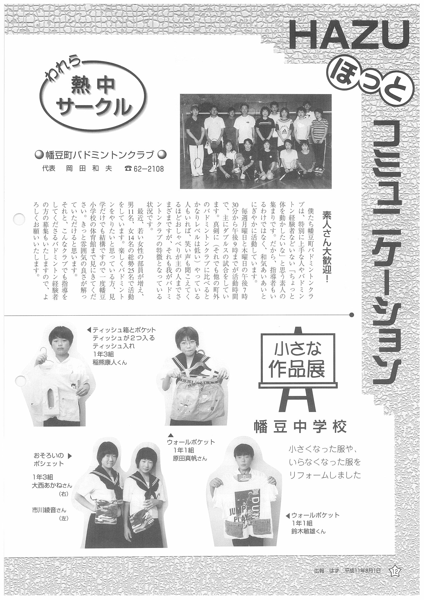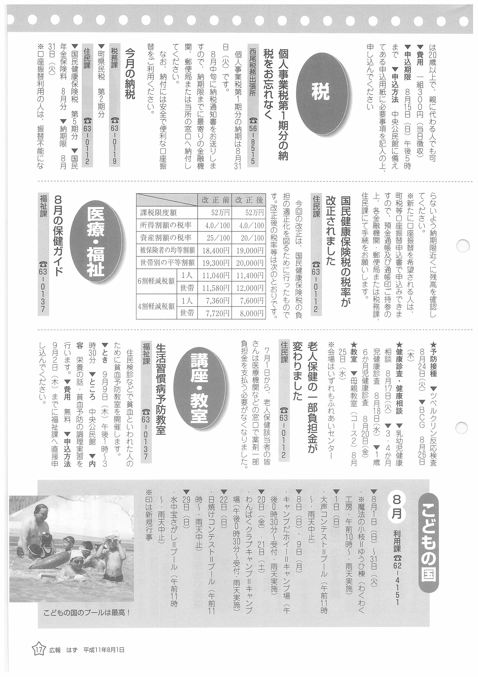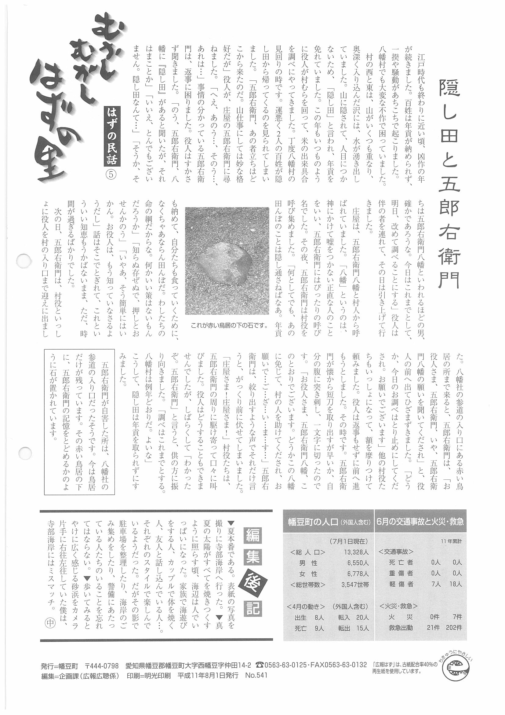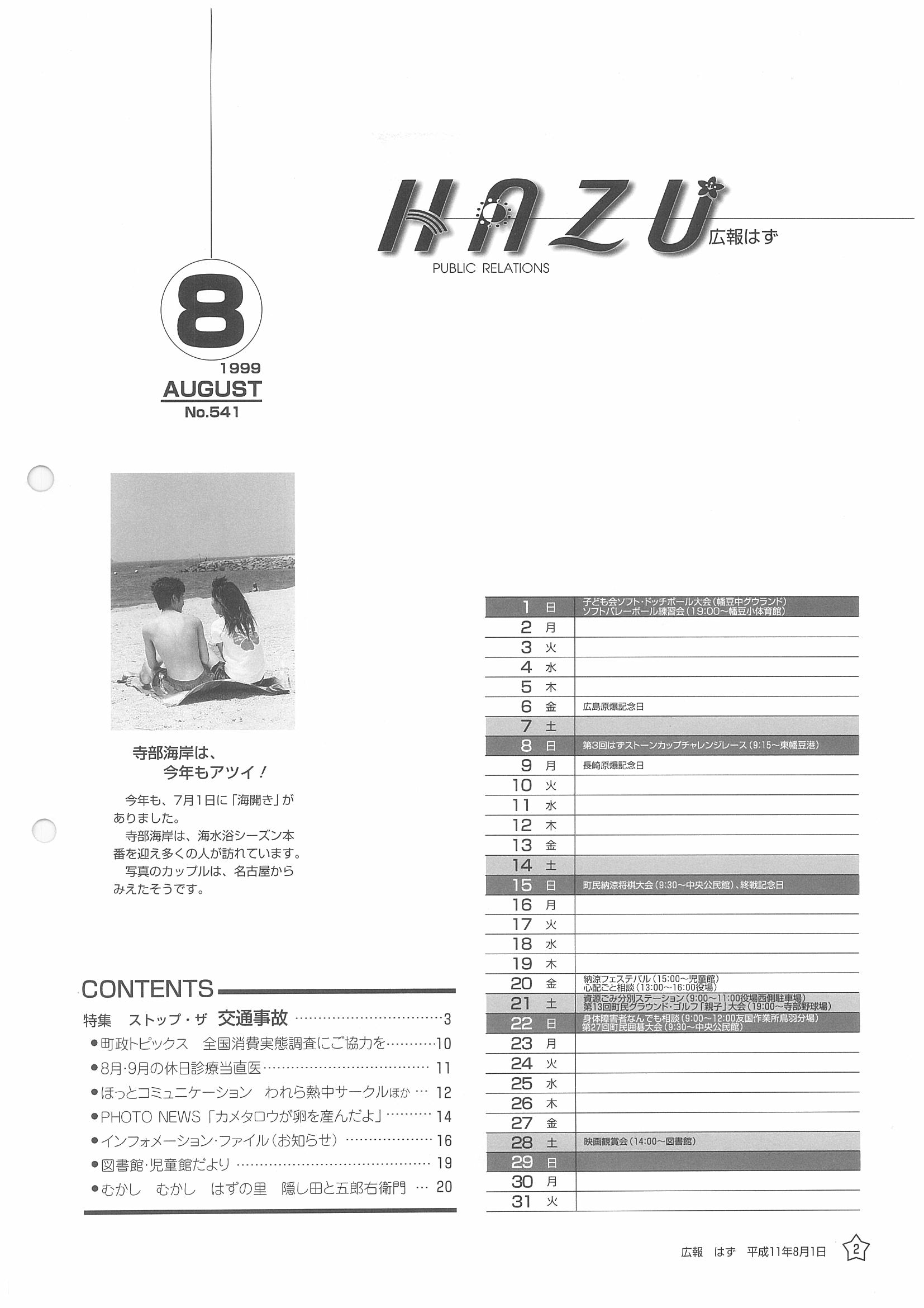 「広報はず」 1999年(平成11年) 8月号 目次