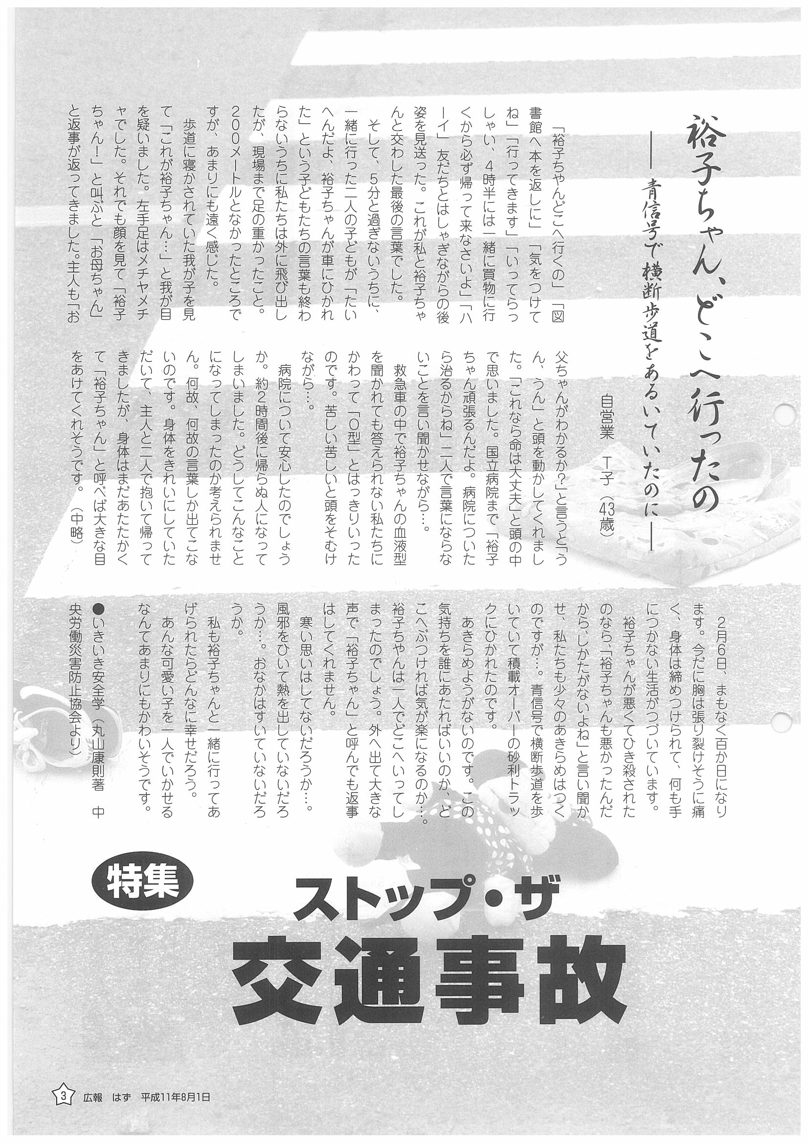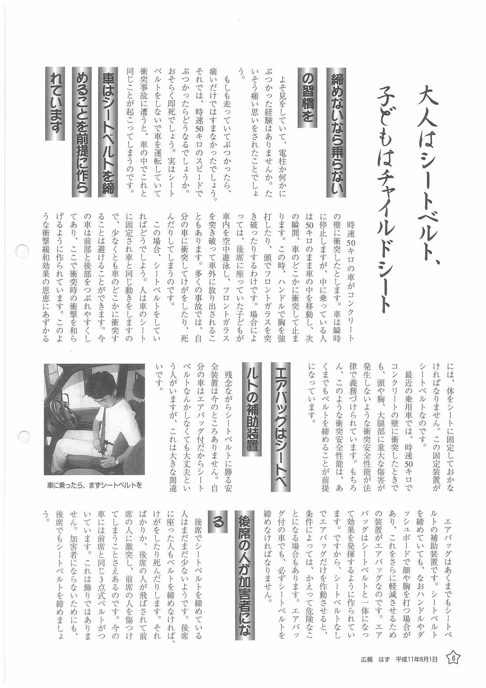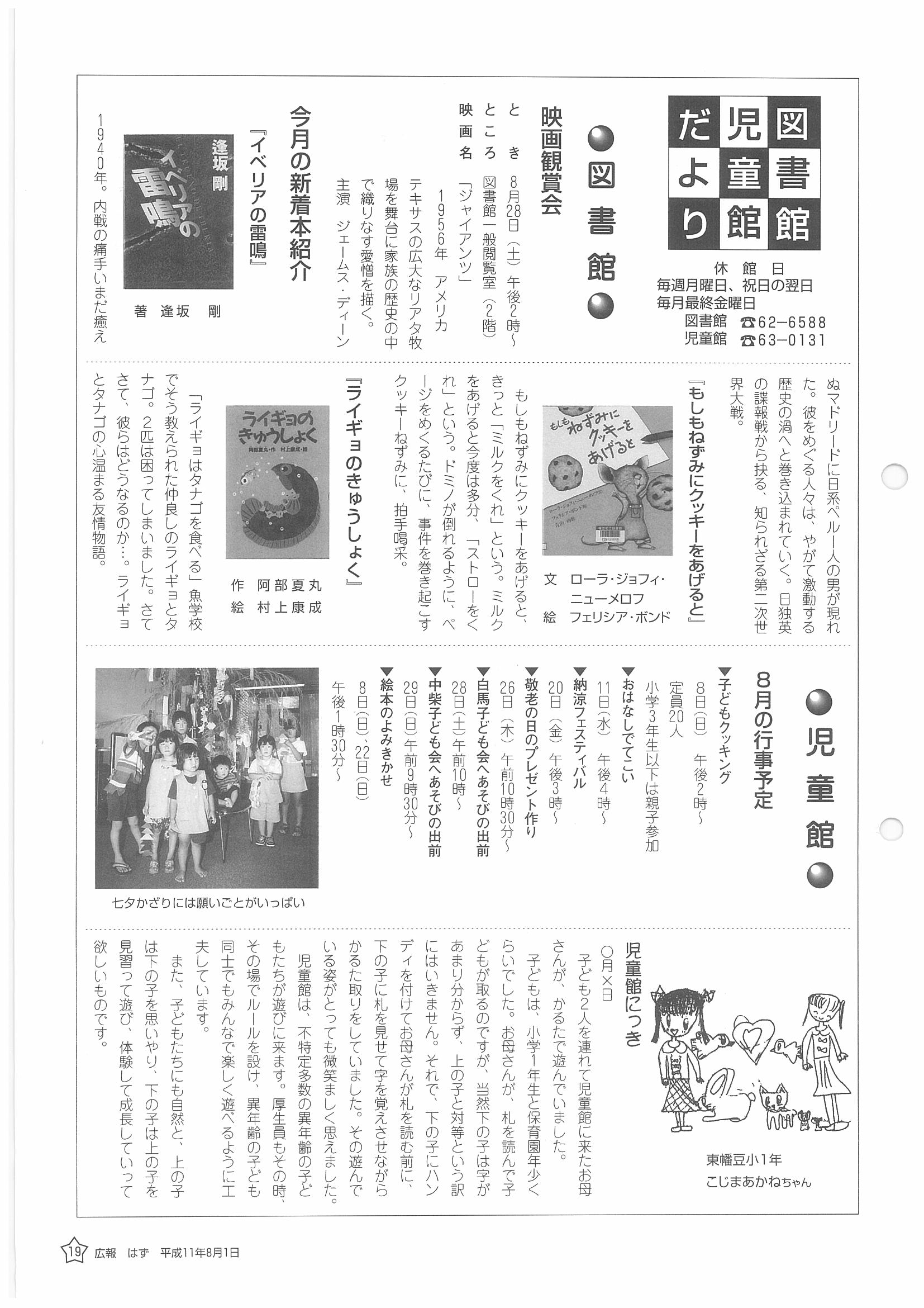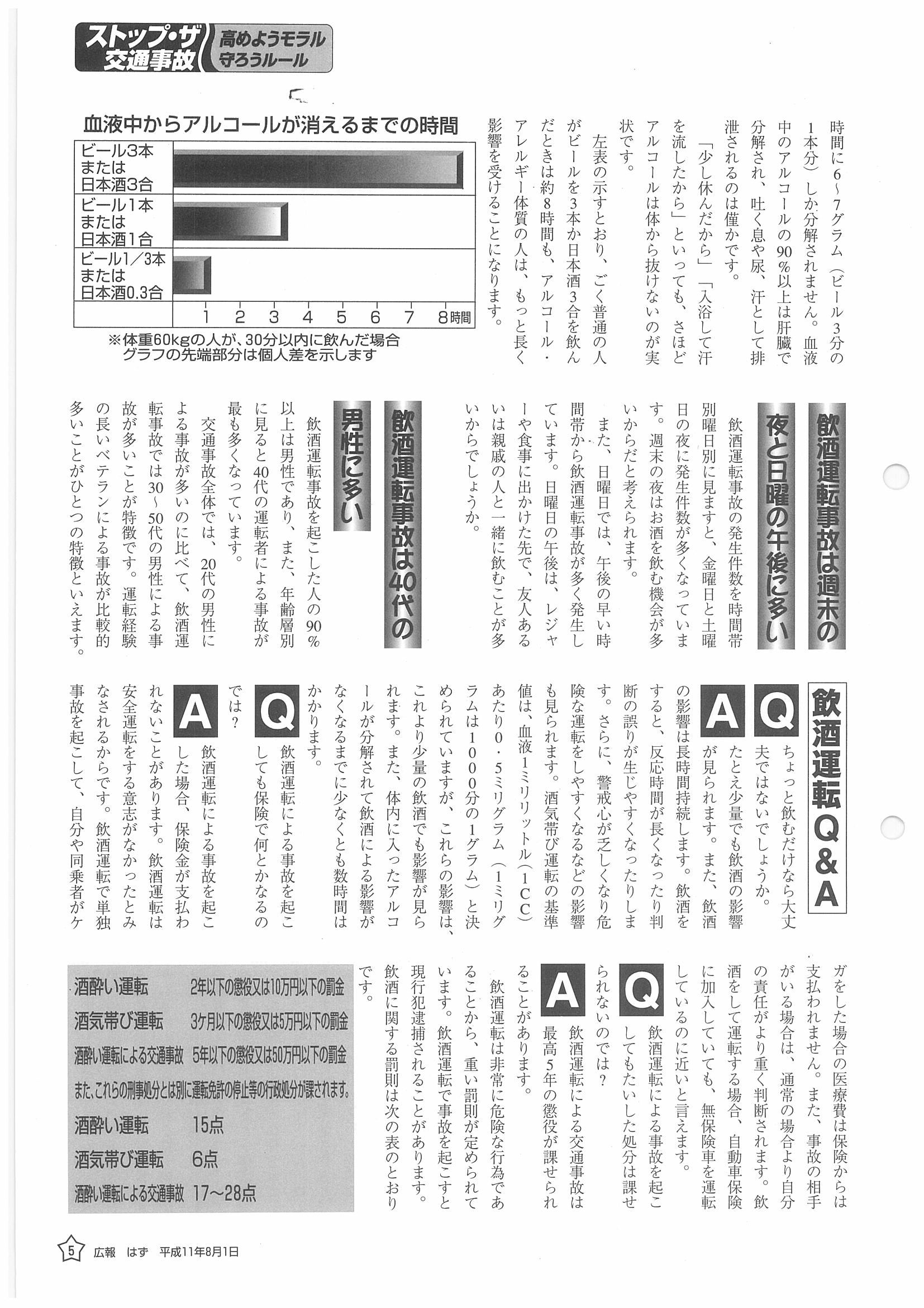 「広報はず」 1999年(平成11年) 8月号 目次