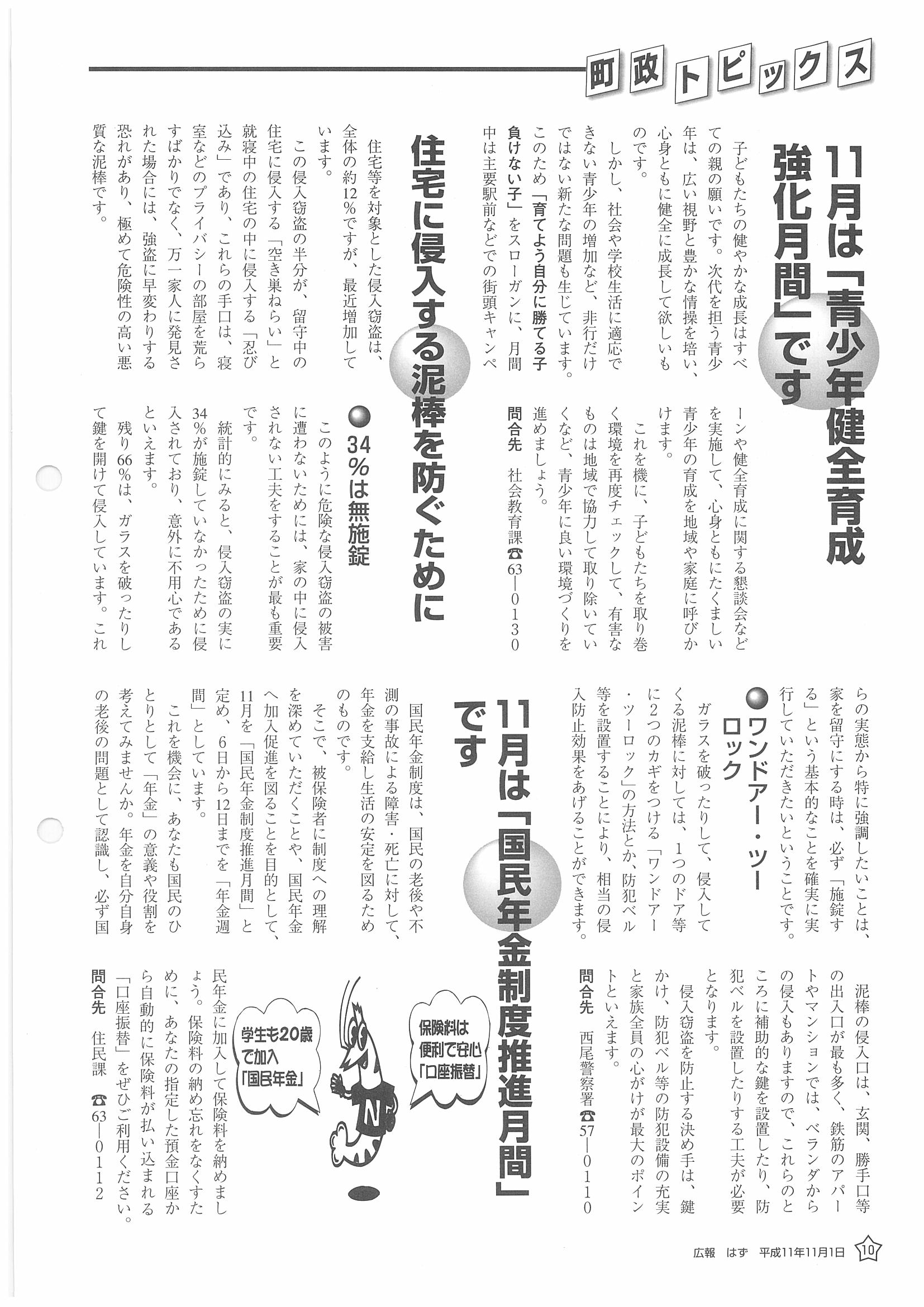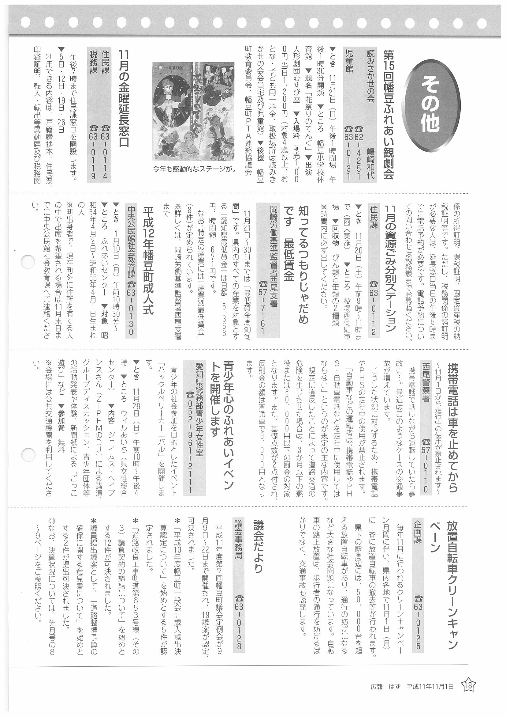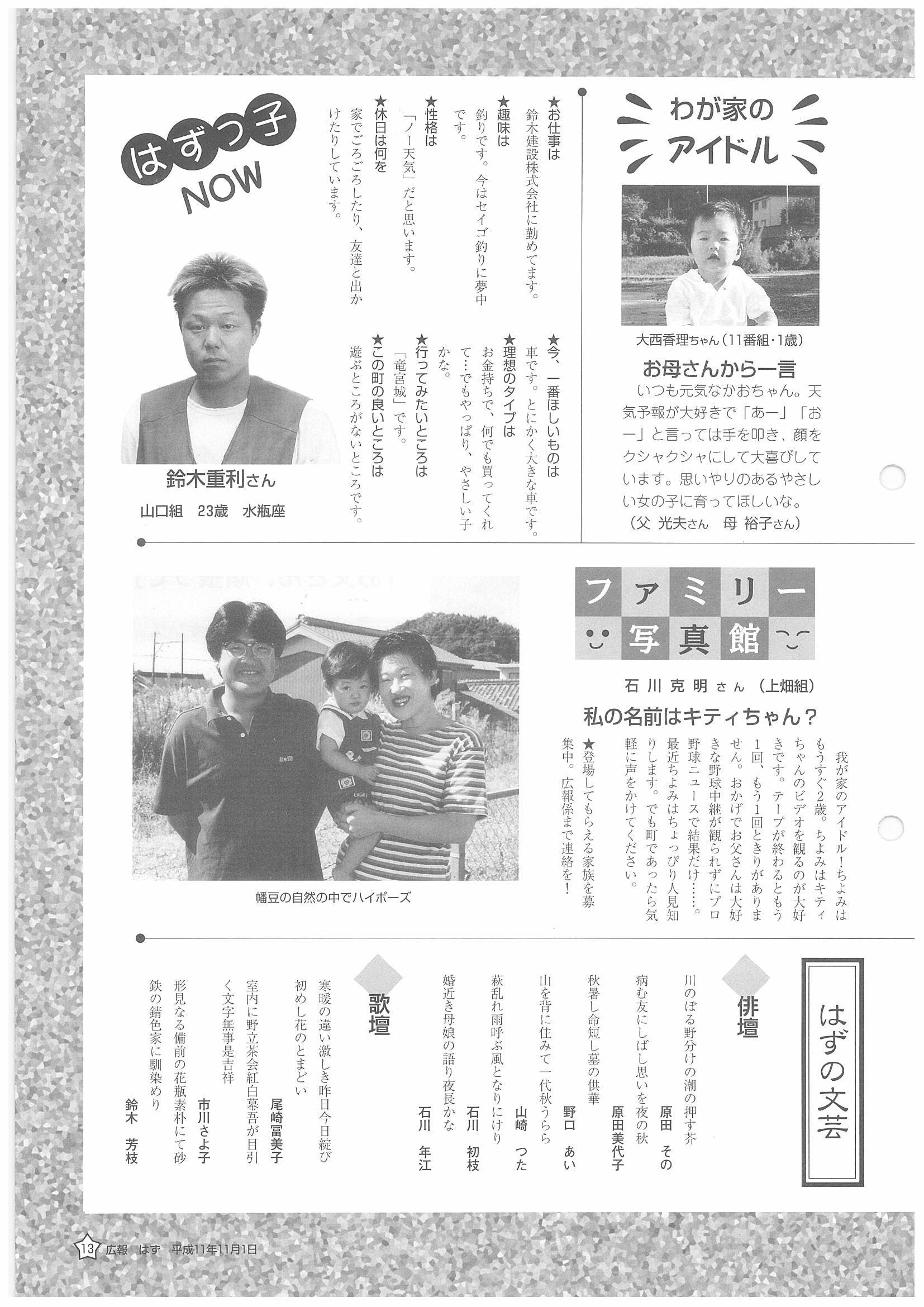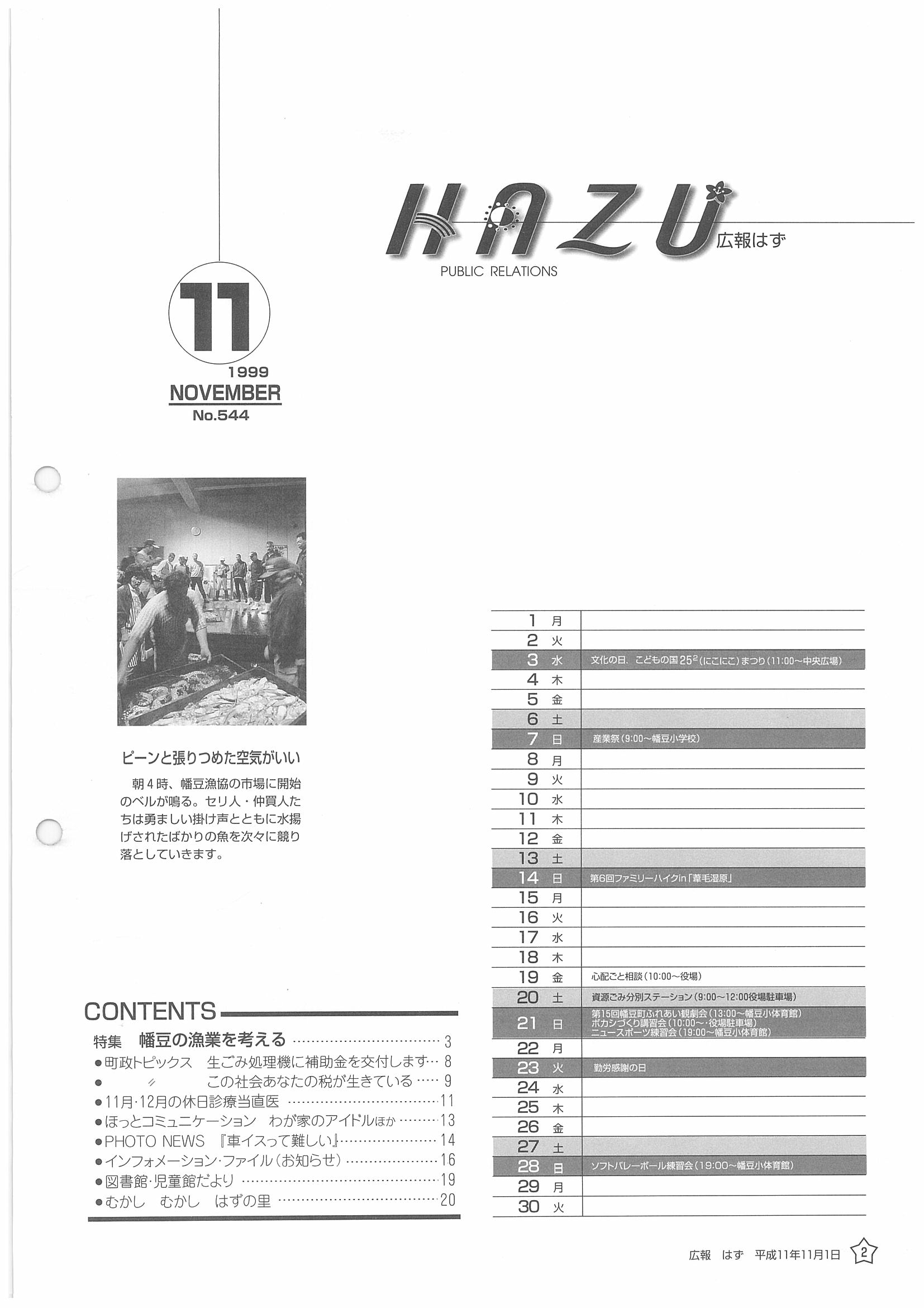 「広報はず」 1999年(平成11年) 11月号 目次