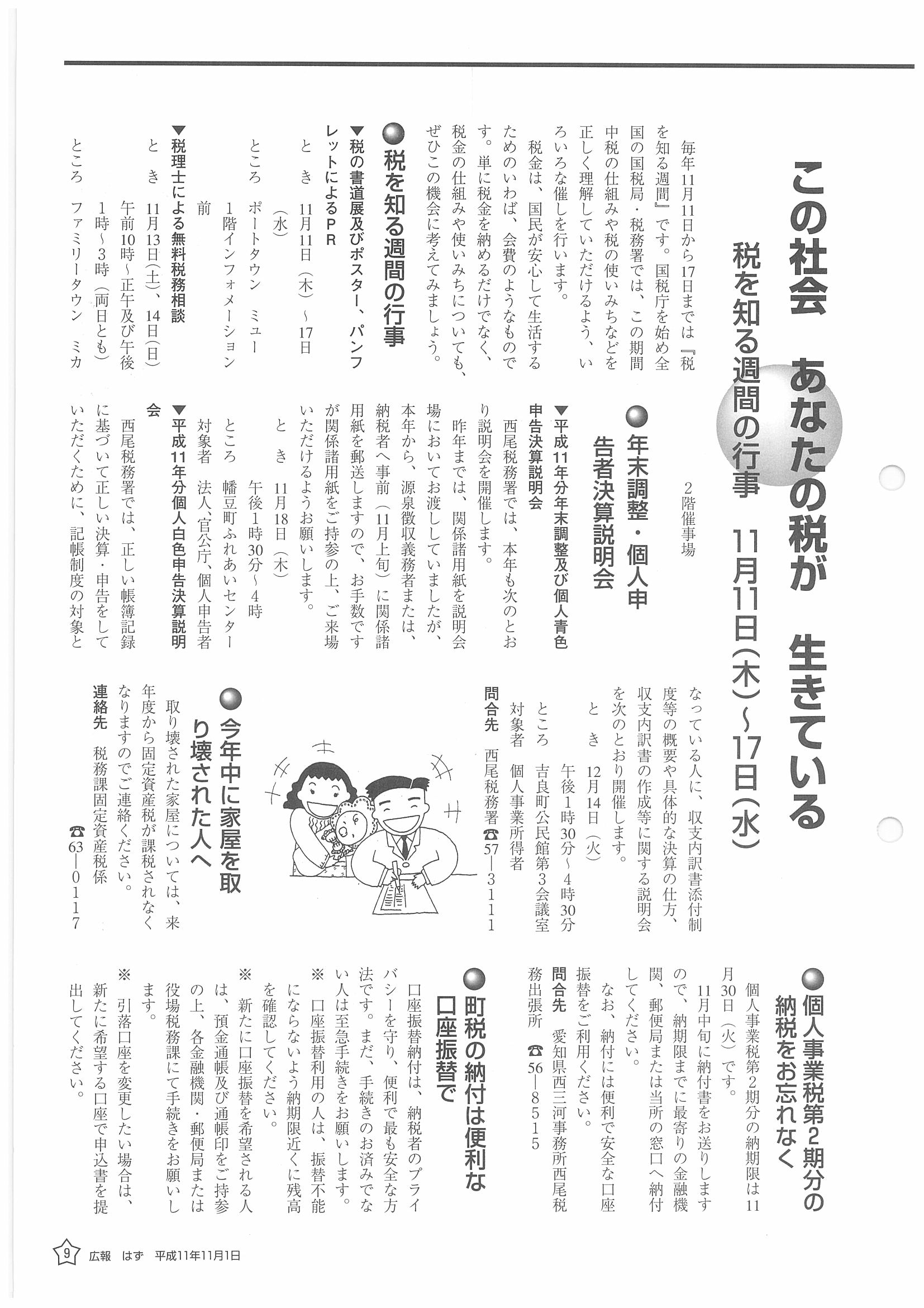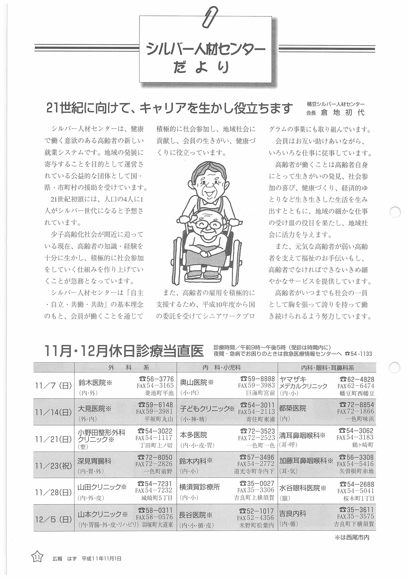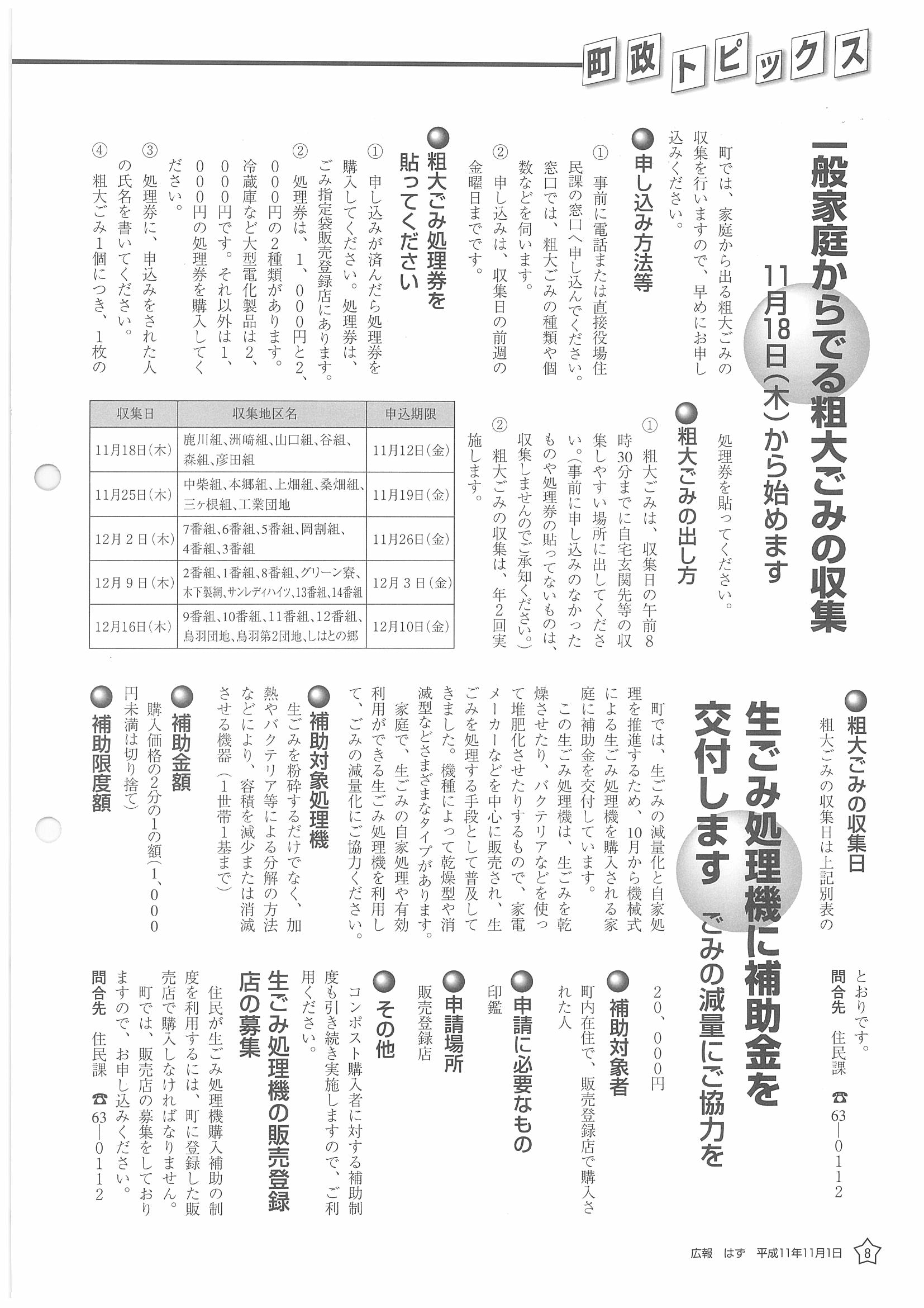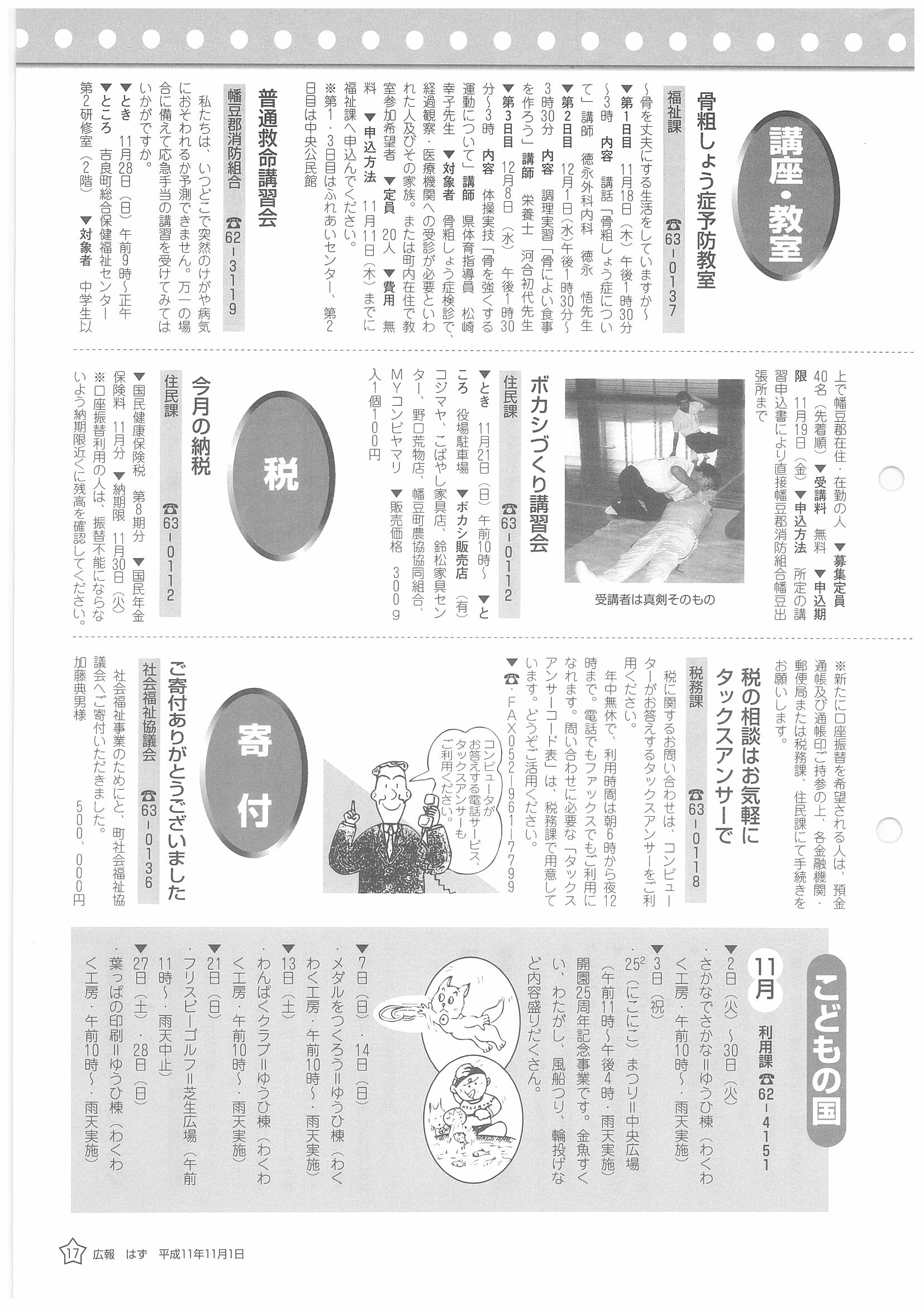 「広報はず」 1999年(平成11年) 11月号 目次