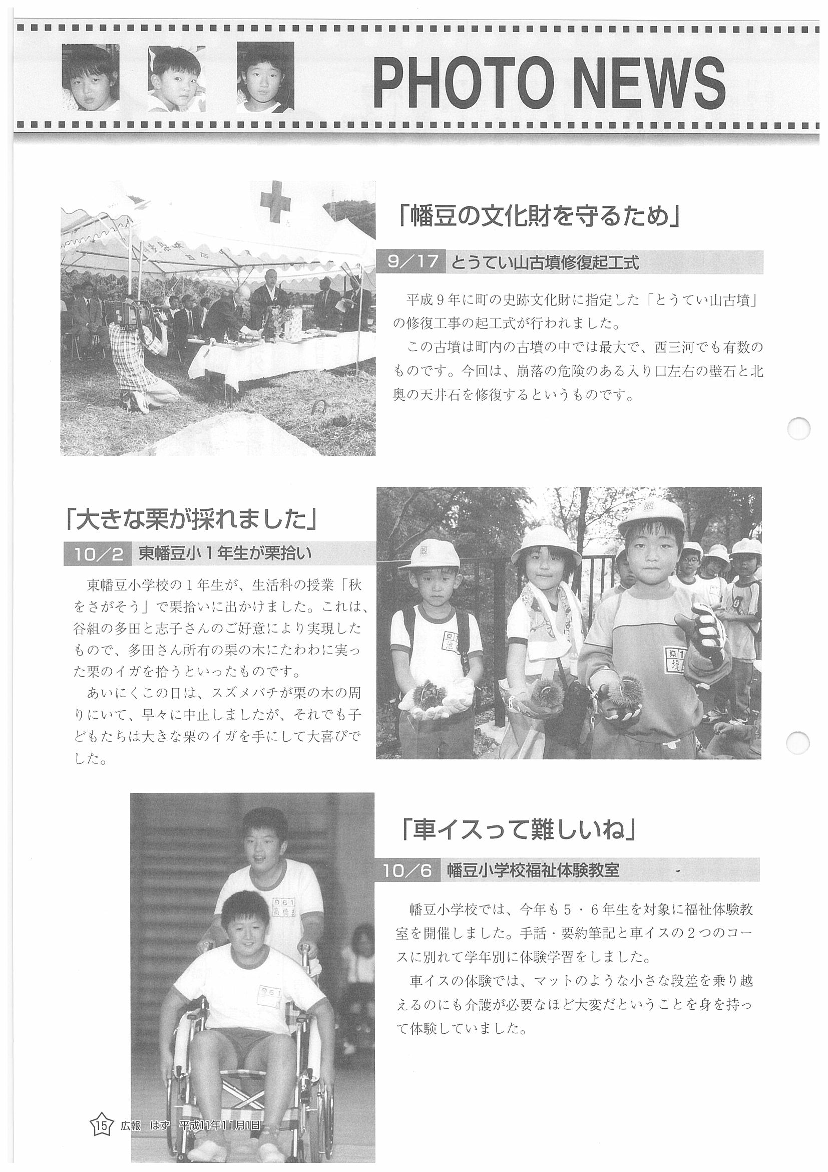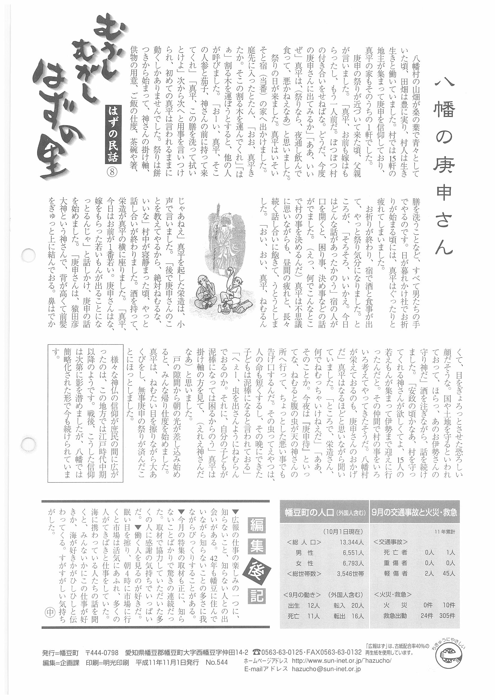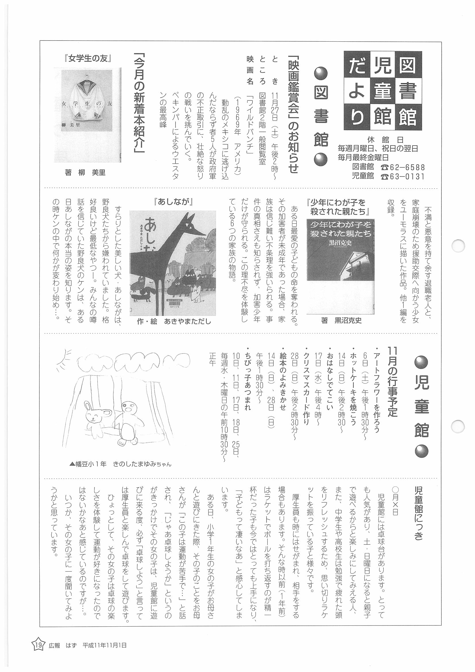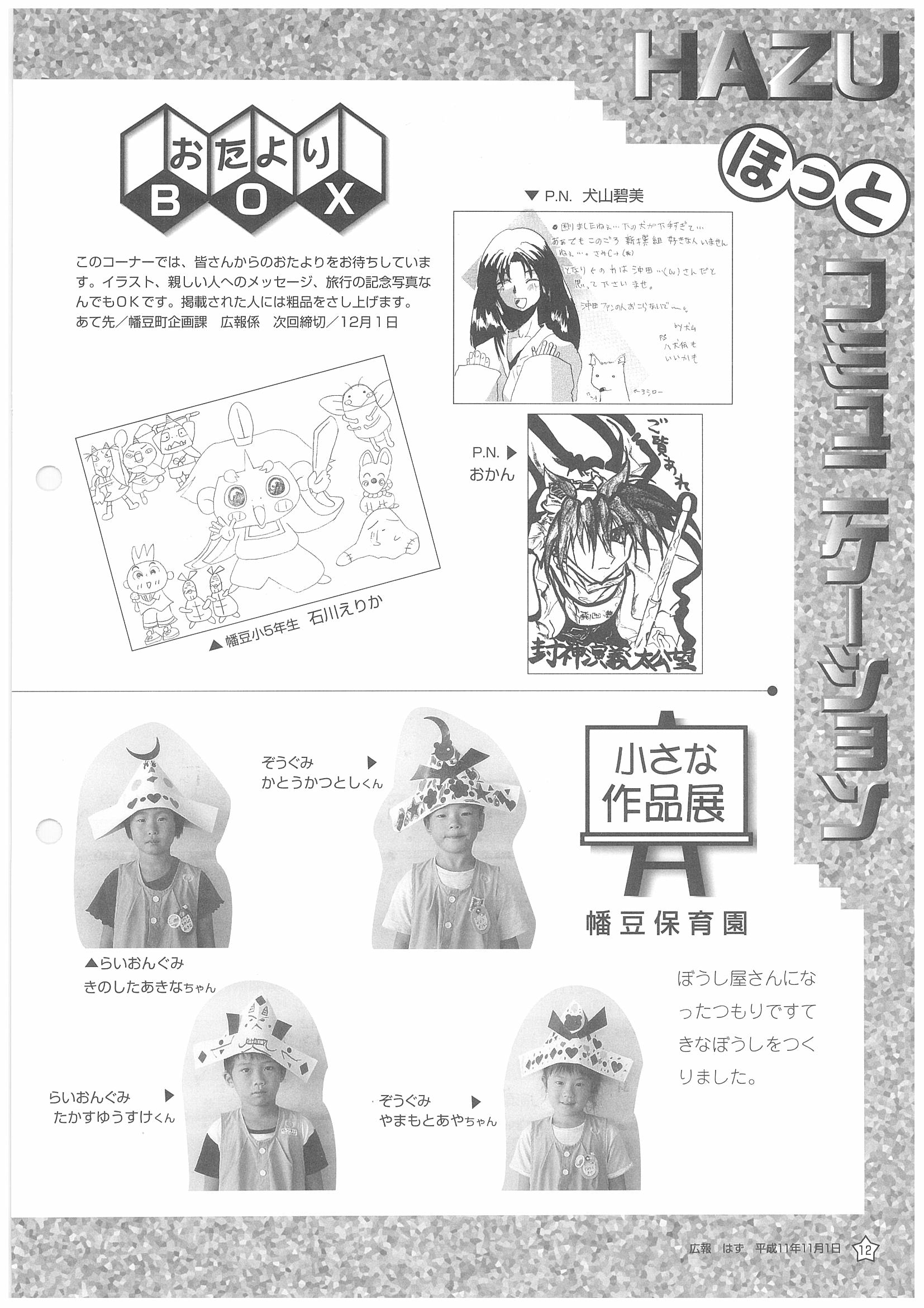 「広報はず」 1999年(平成11年) 11月号 目次