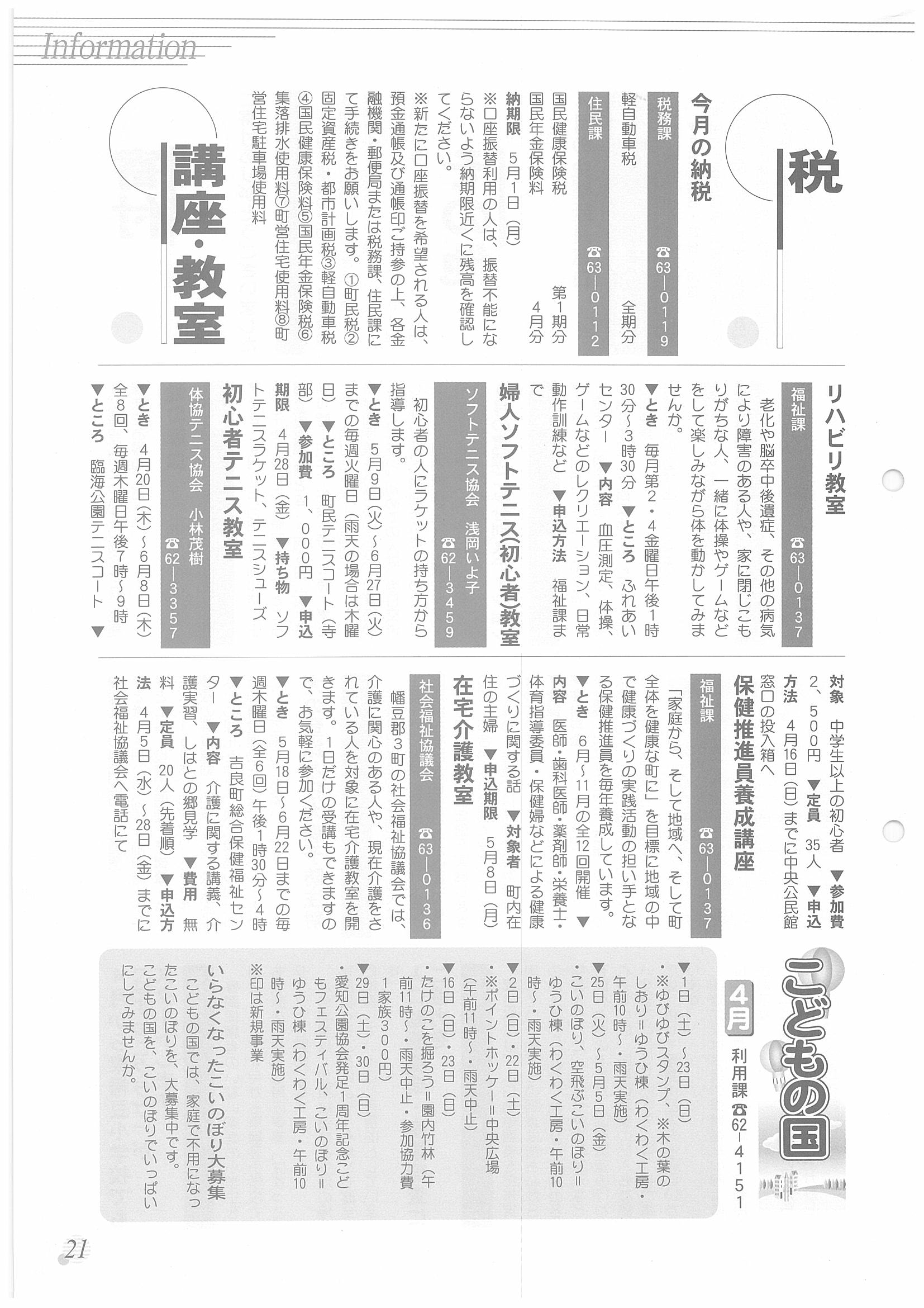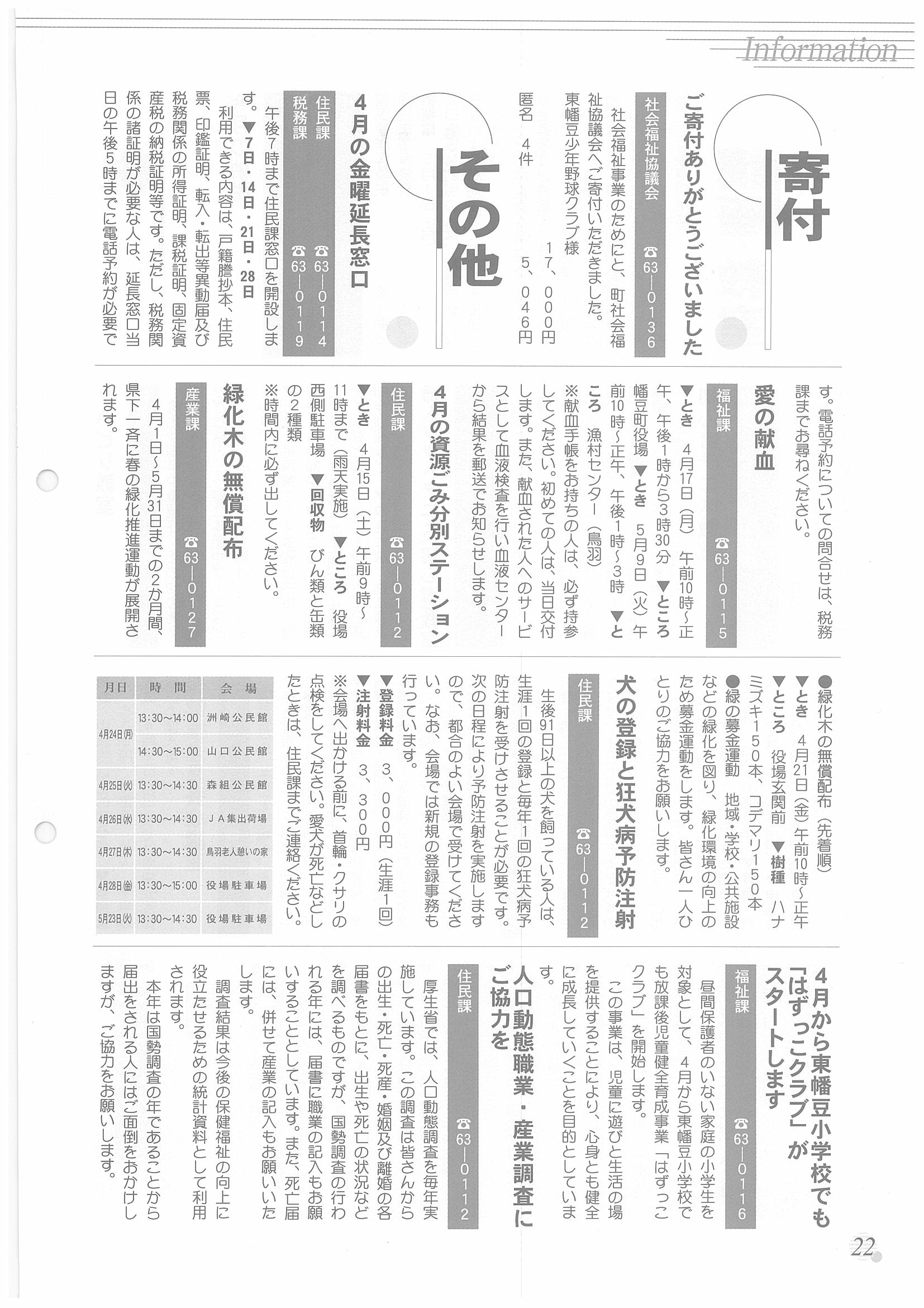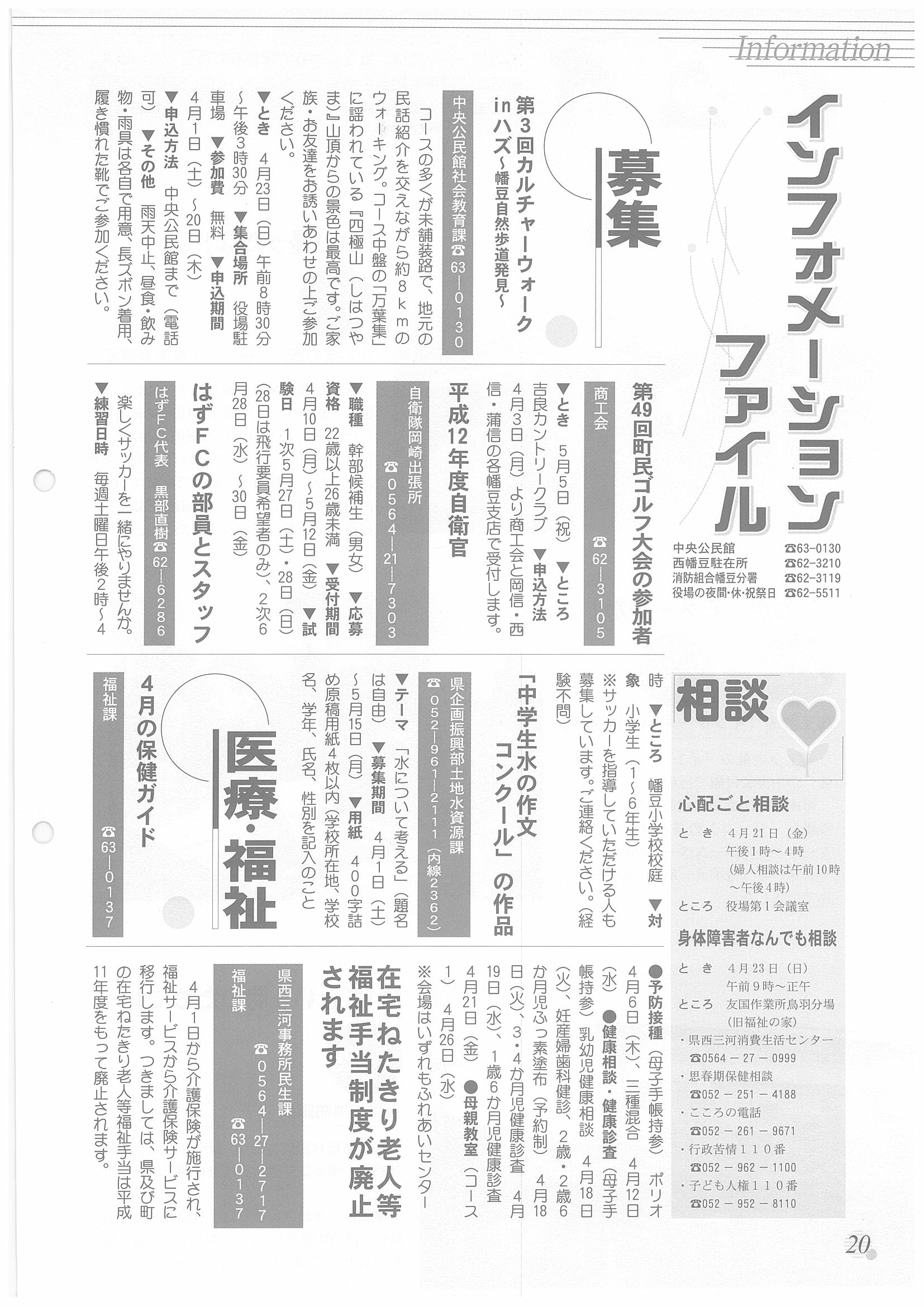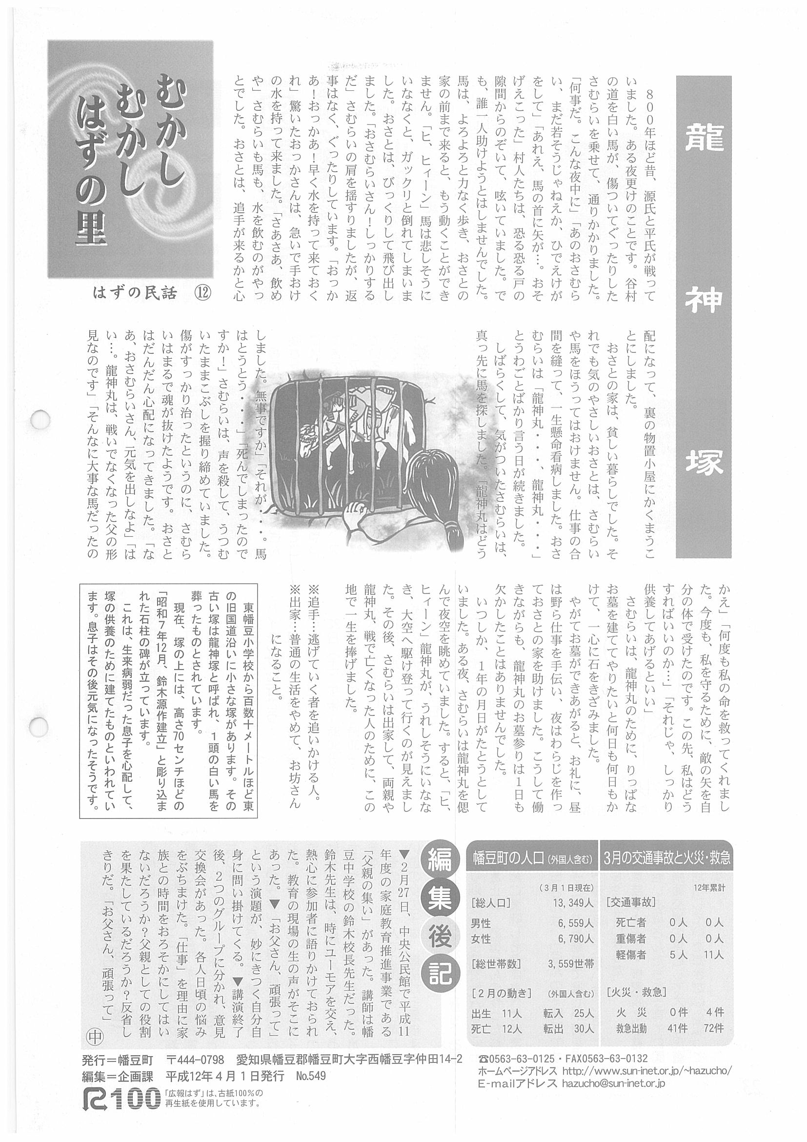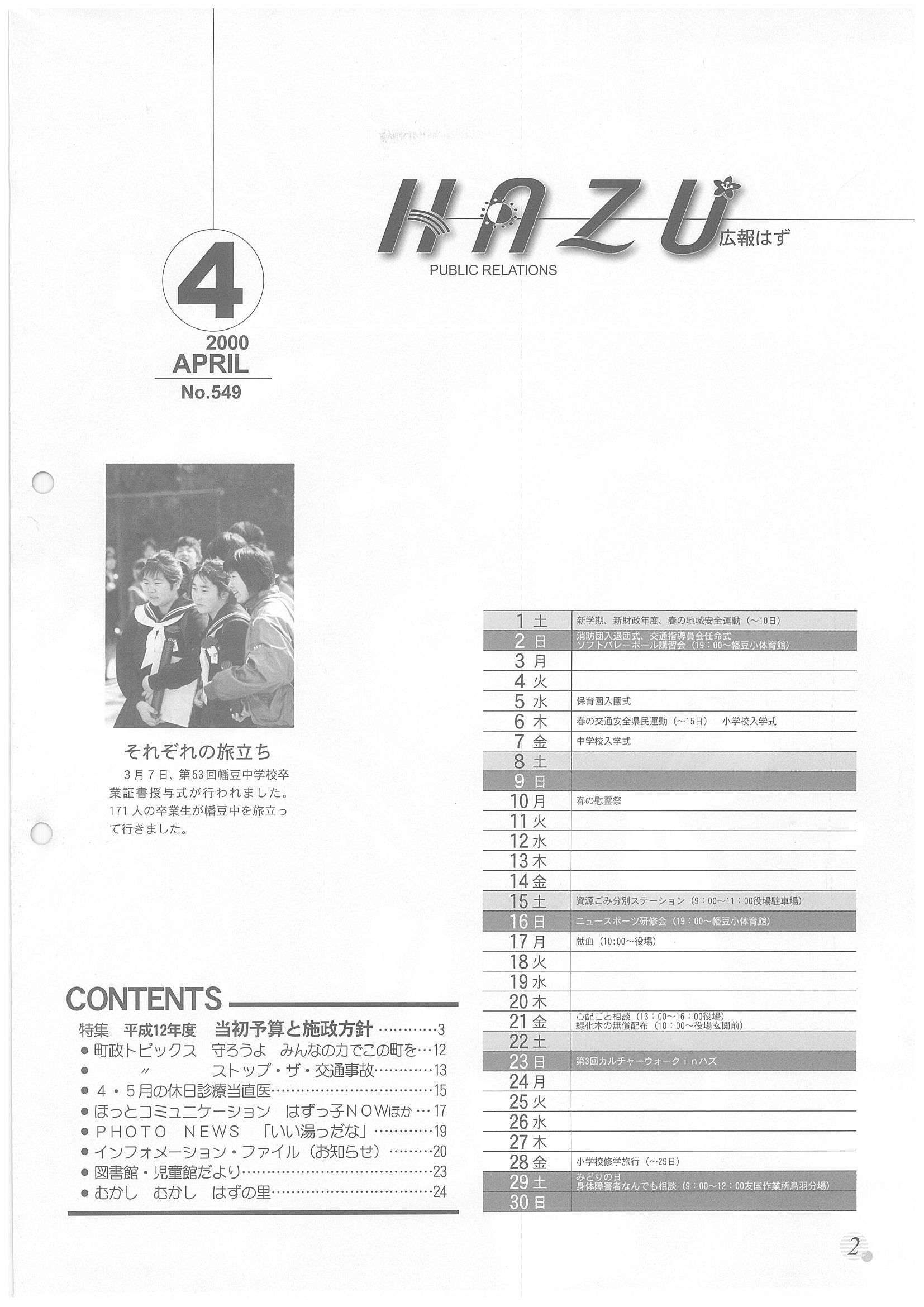 「広報はず」 2000年(平成12年) 4月号 目次