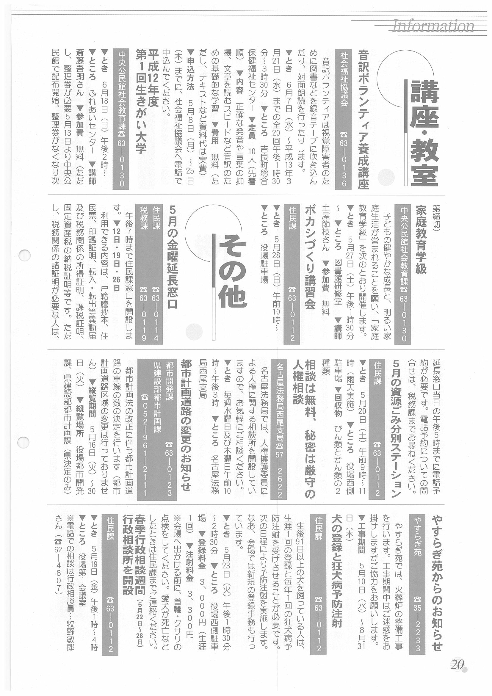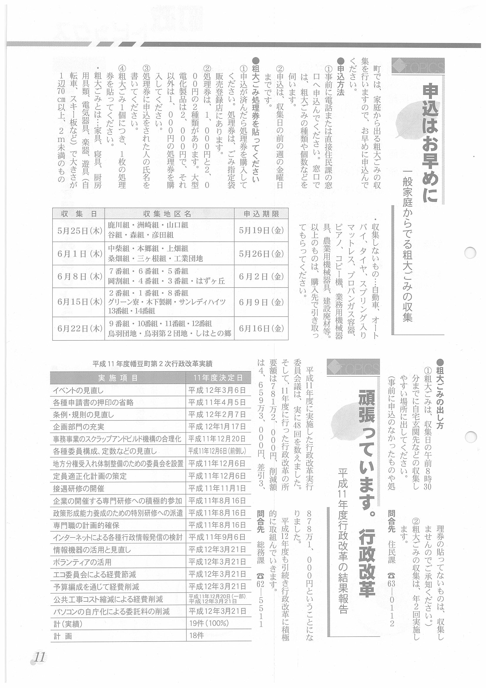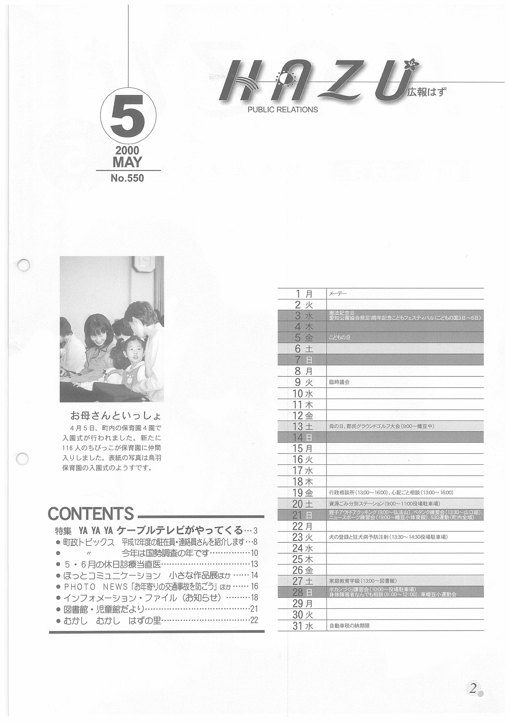 「広報はず」 2000年(平成12年) 5月号 目次