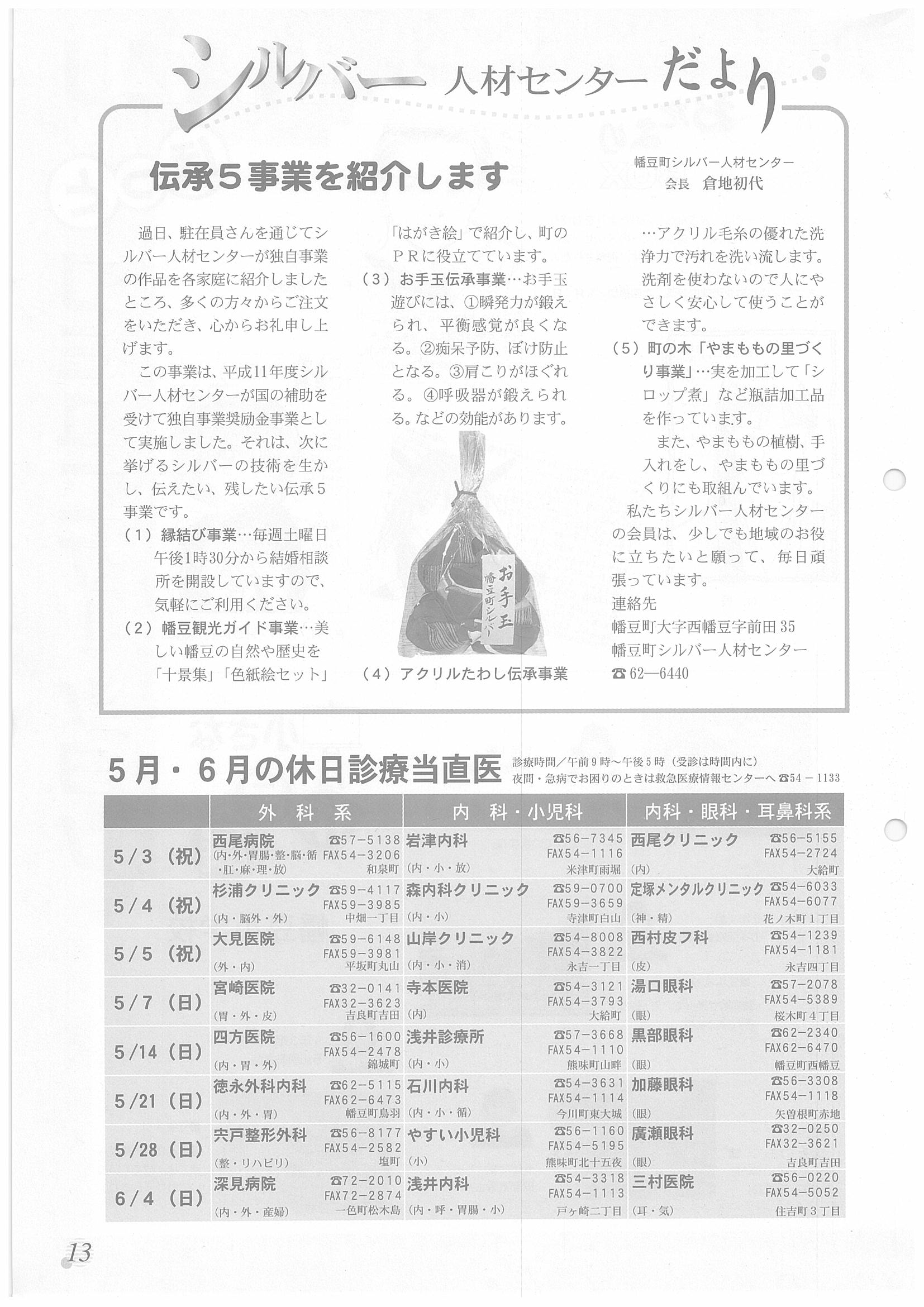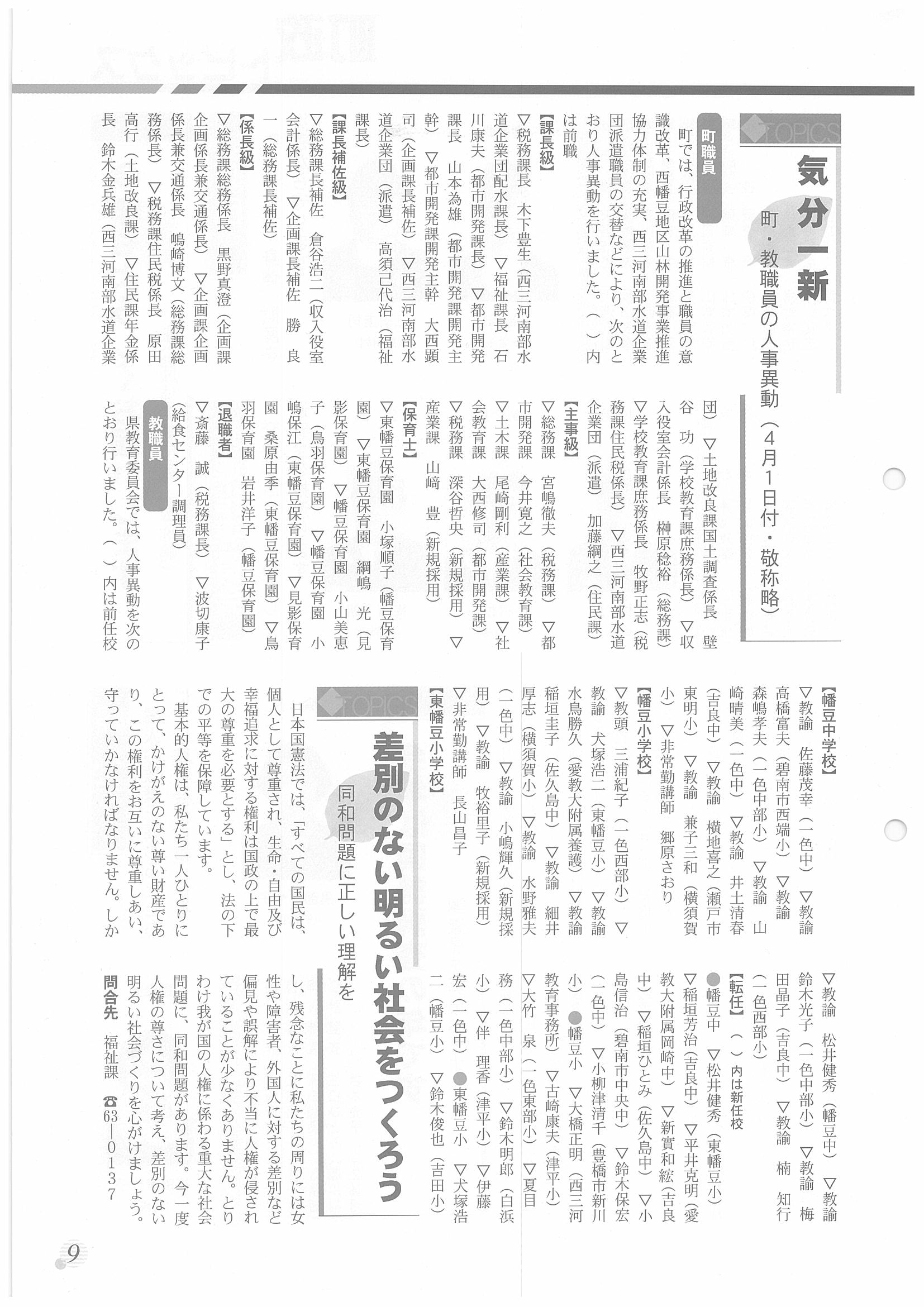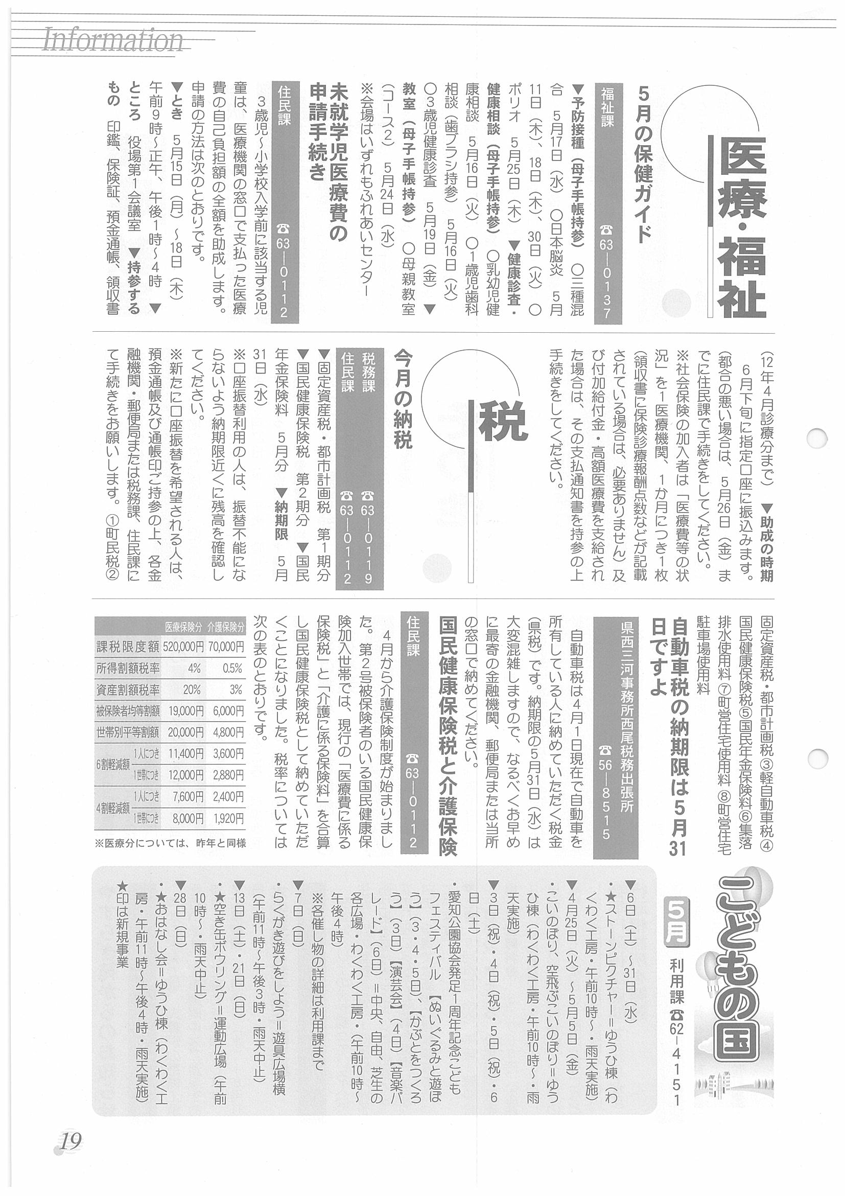 「広報はず」 2000年(平成12年) 5月号 目次