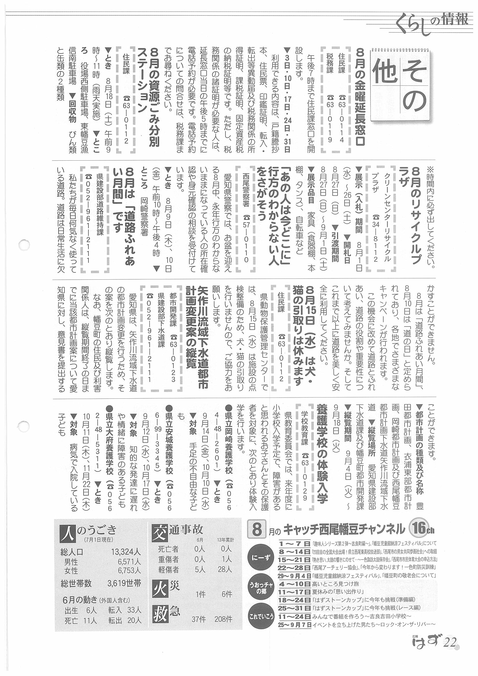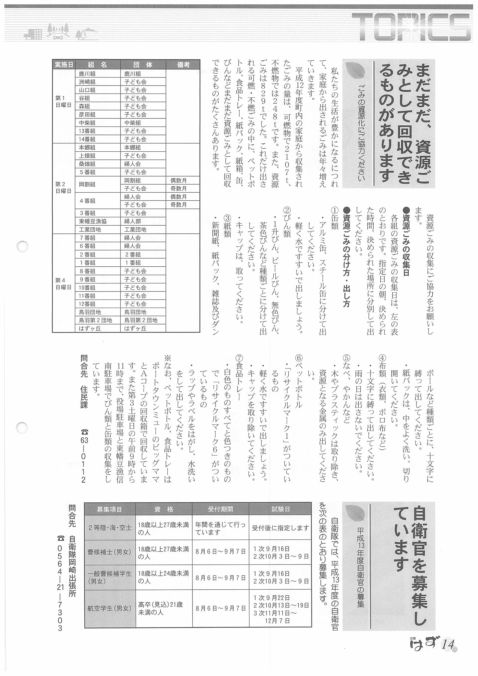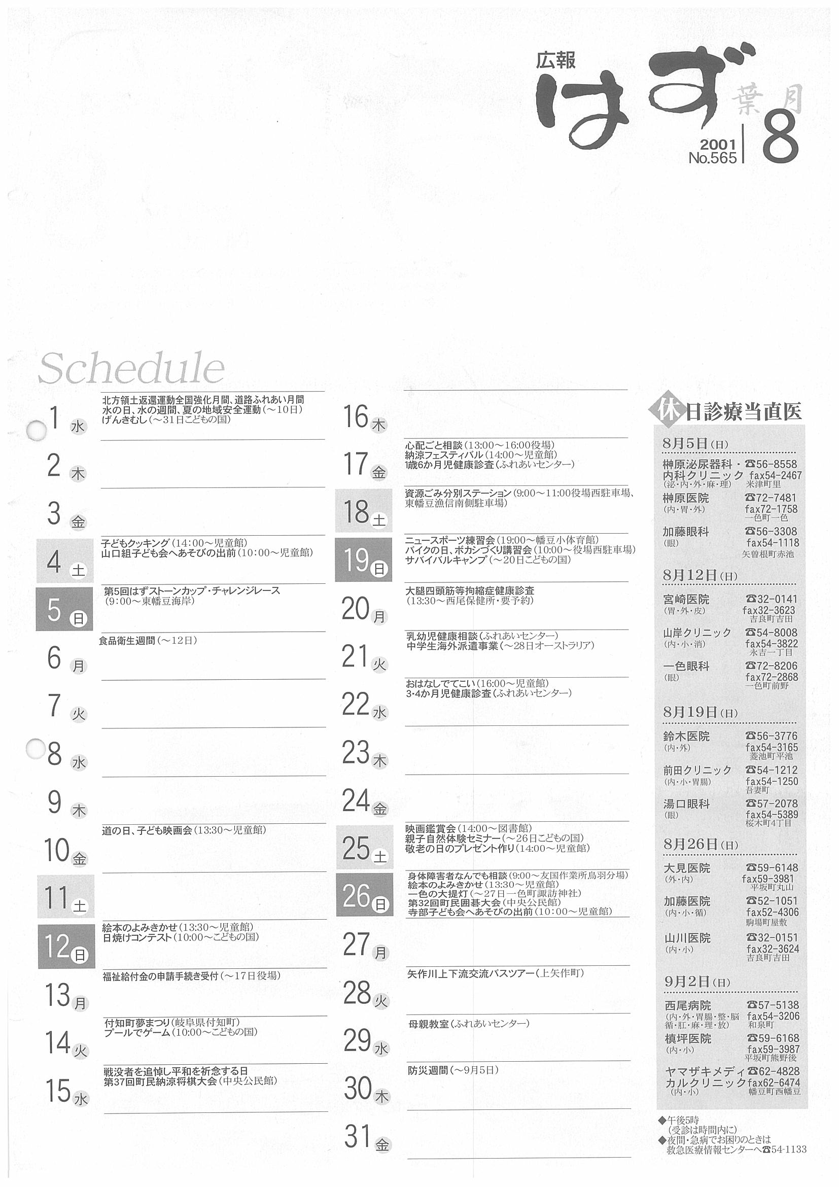 「広報はず」 2001年(平成13年) 8月号 目次