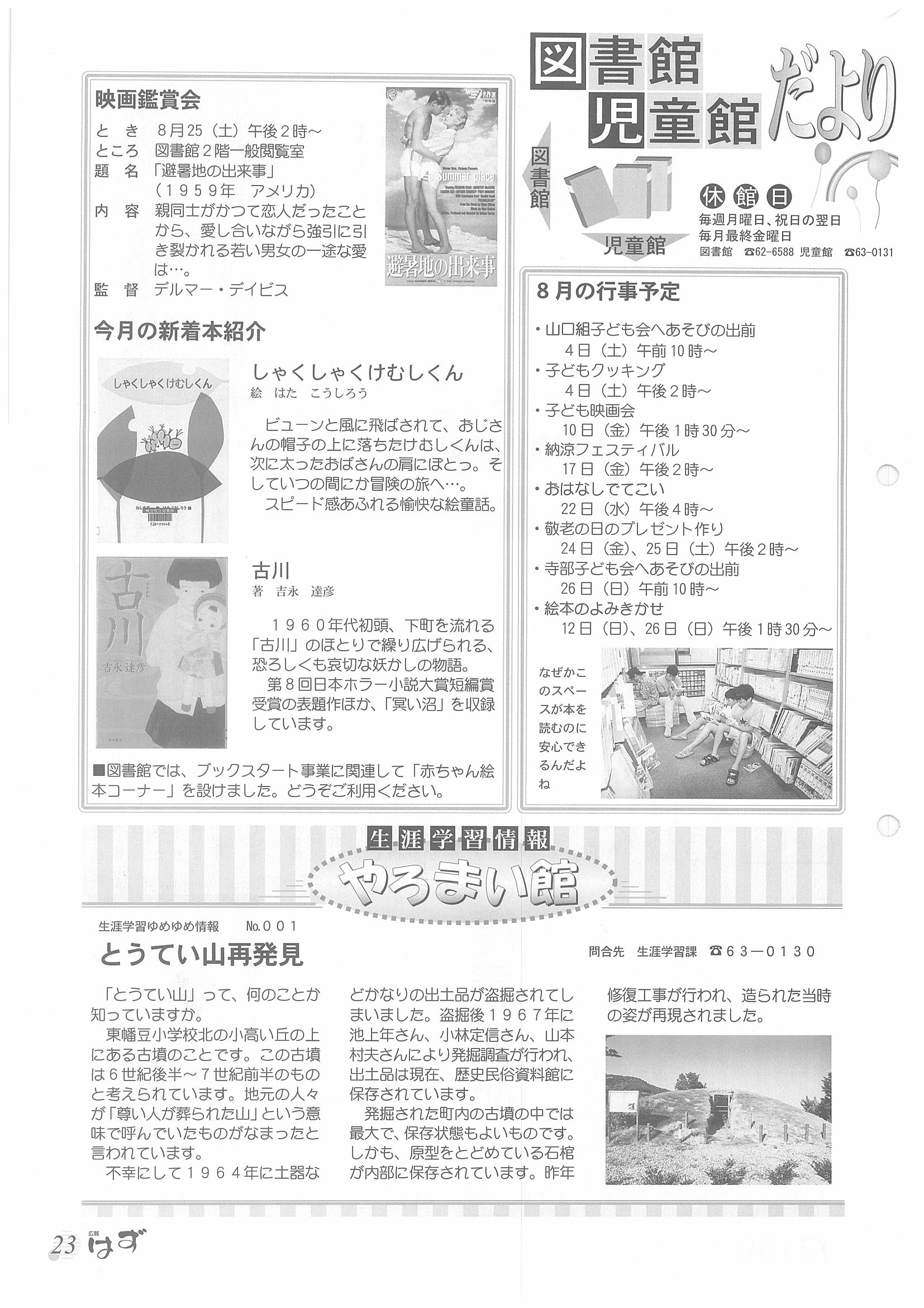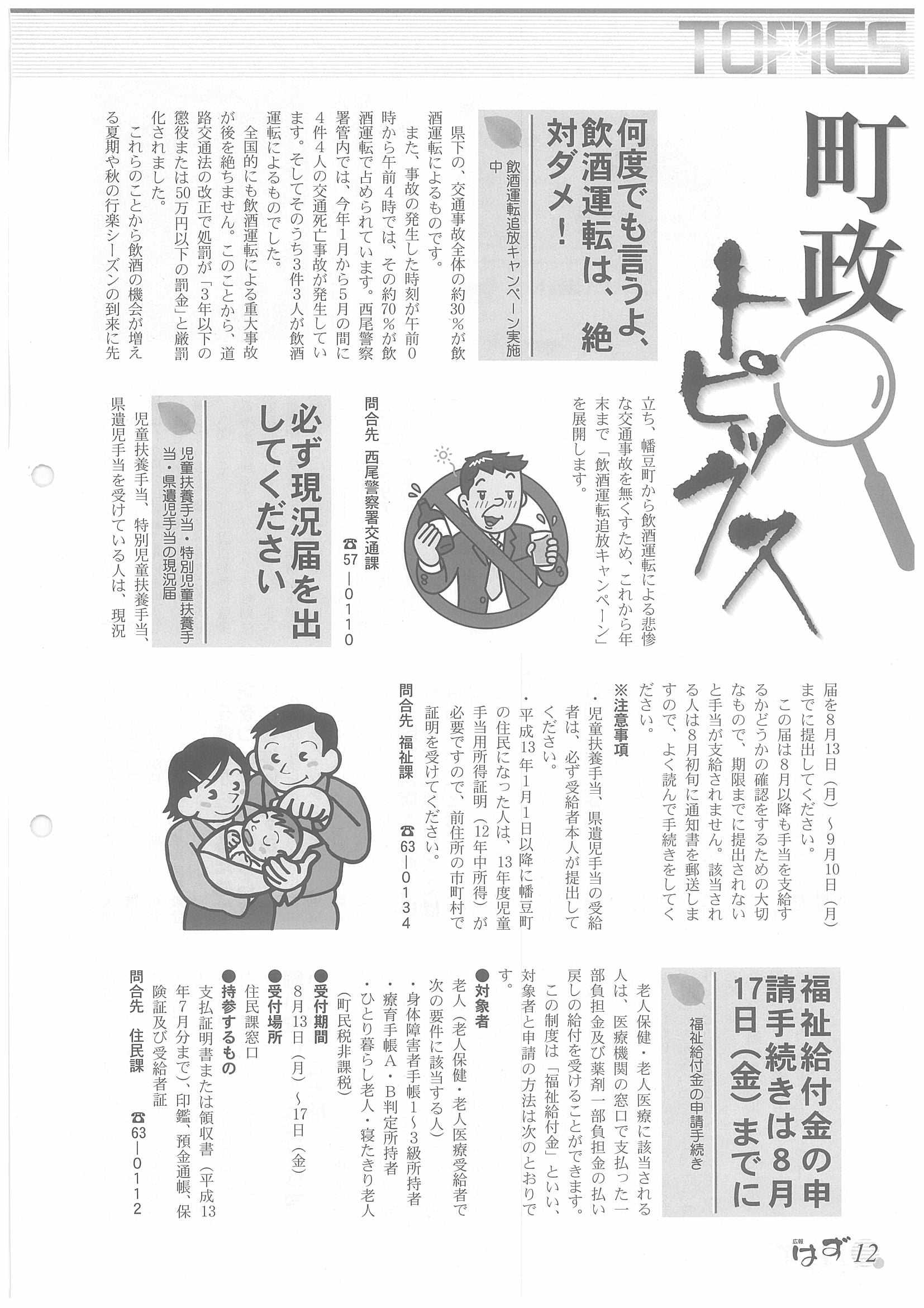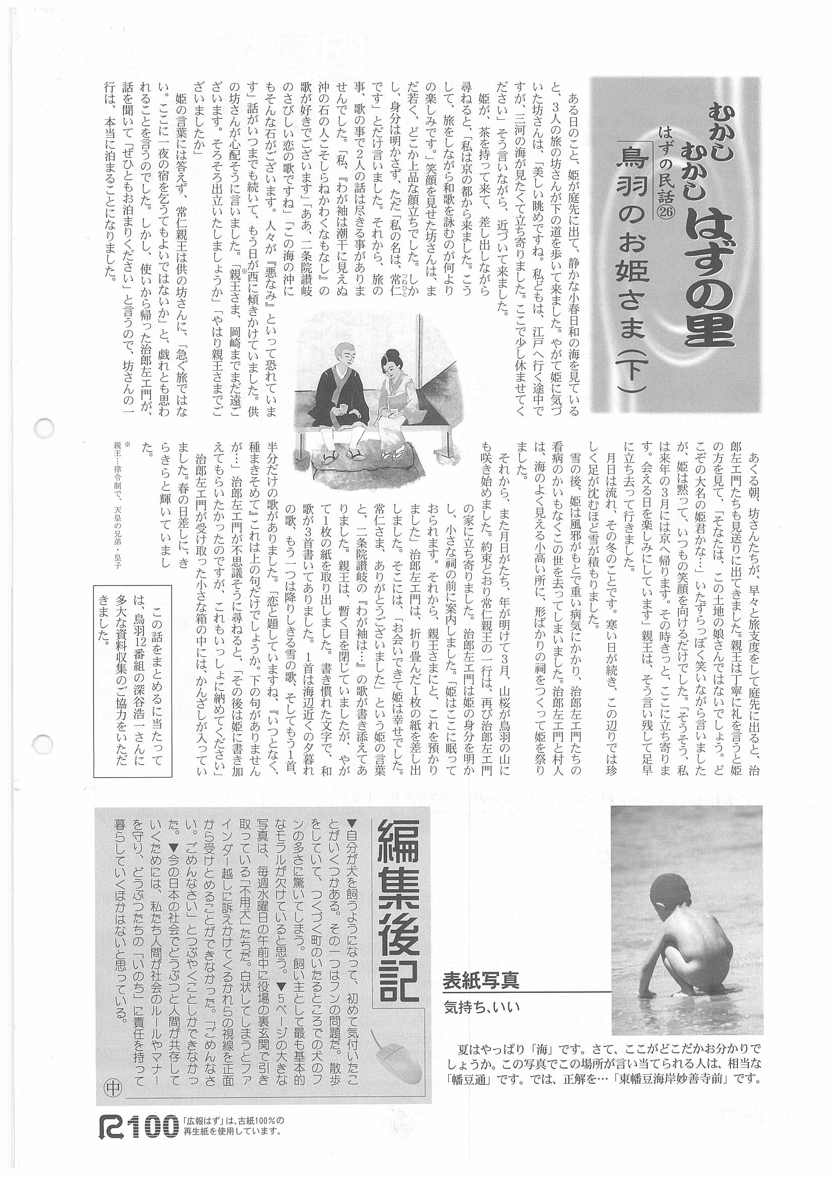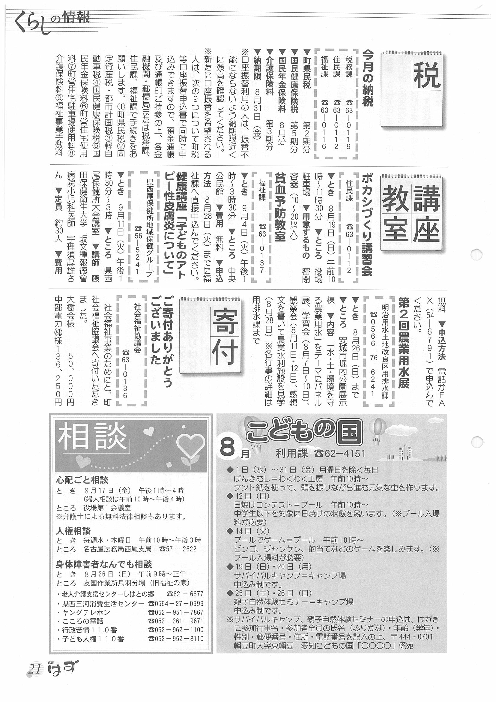 「広報はず」 2001年(平成13年) 8月号 目次