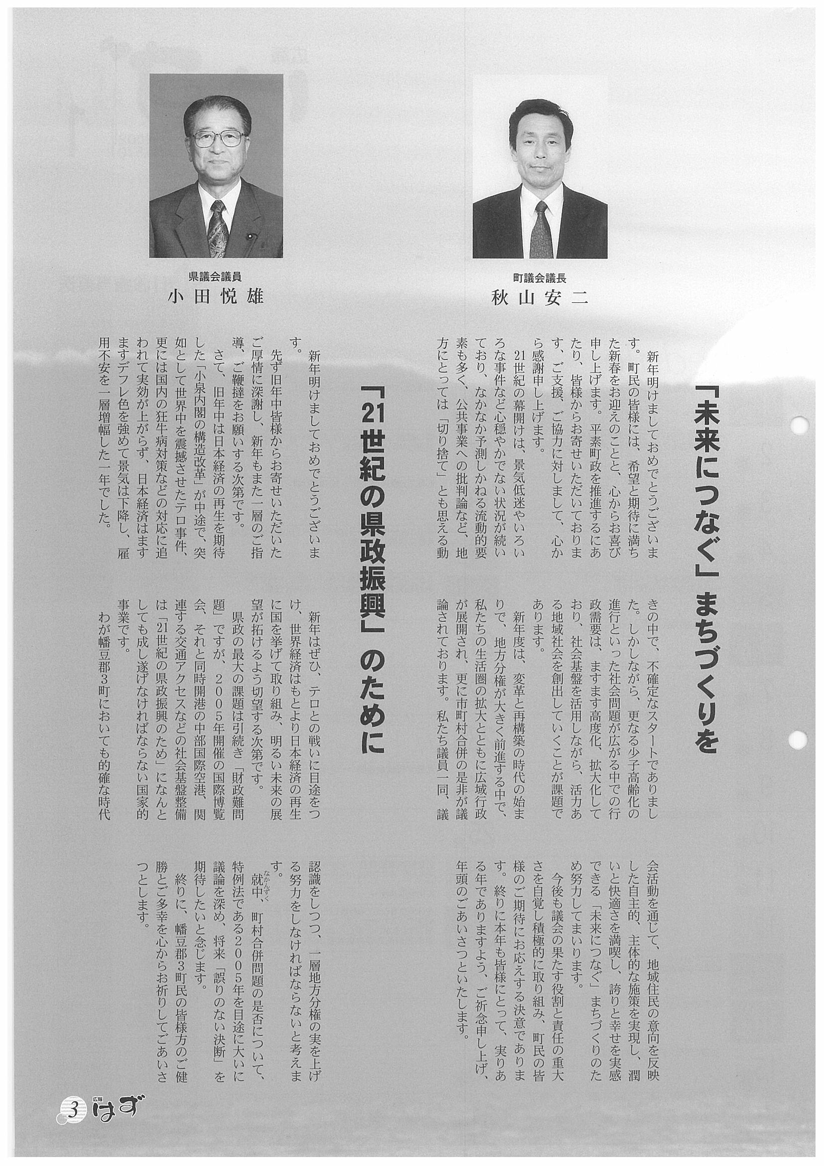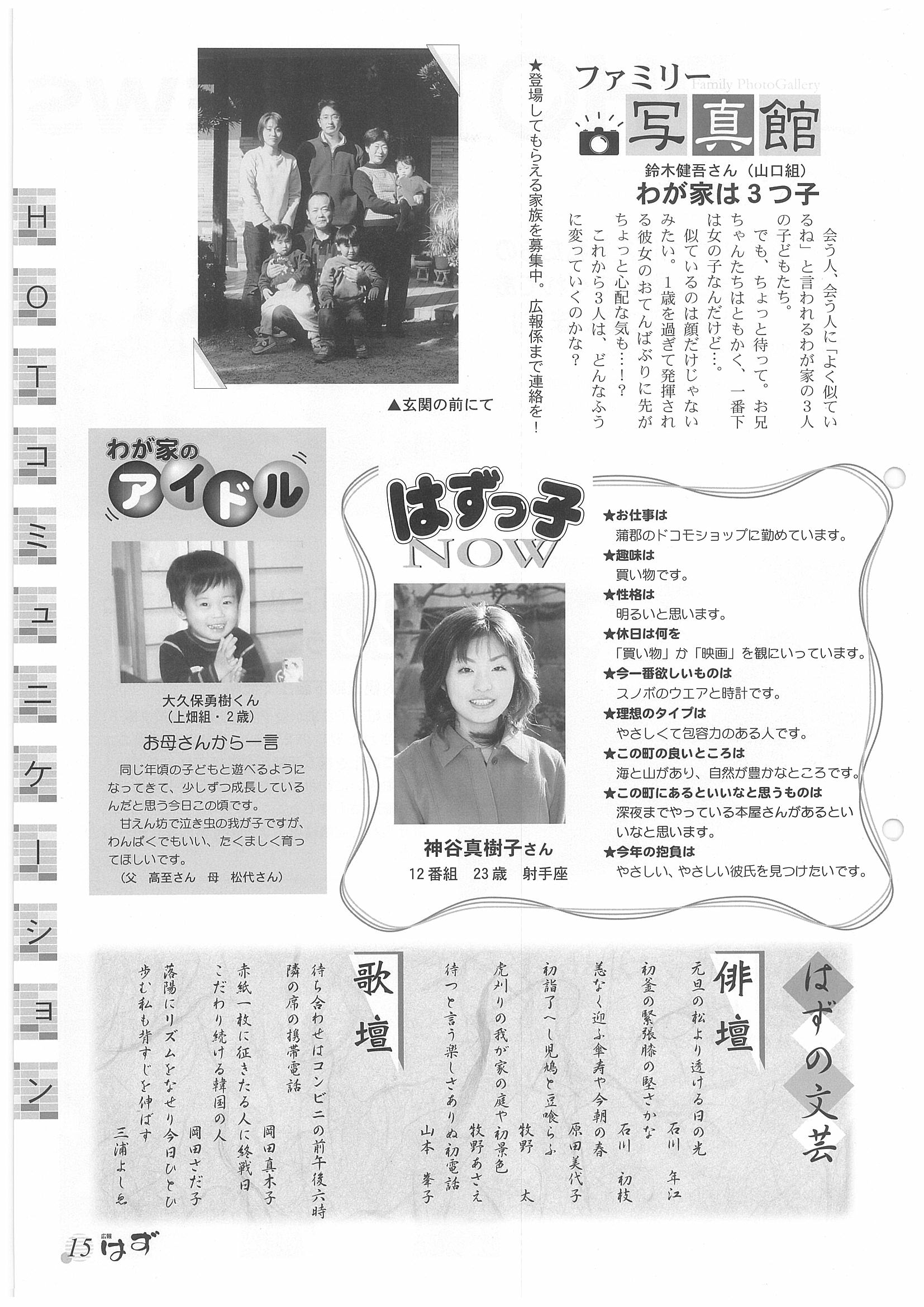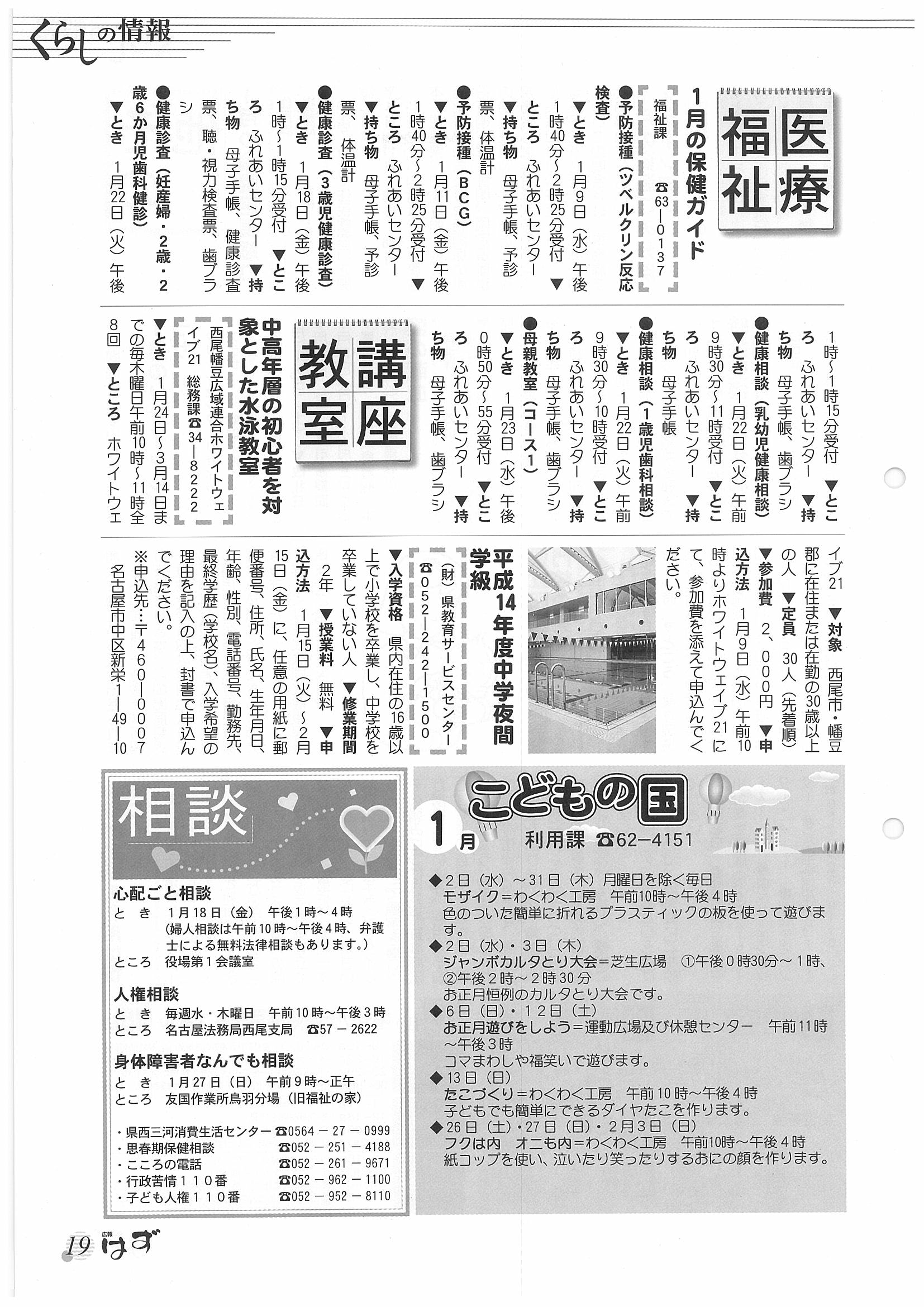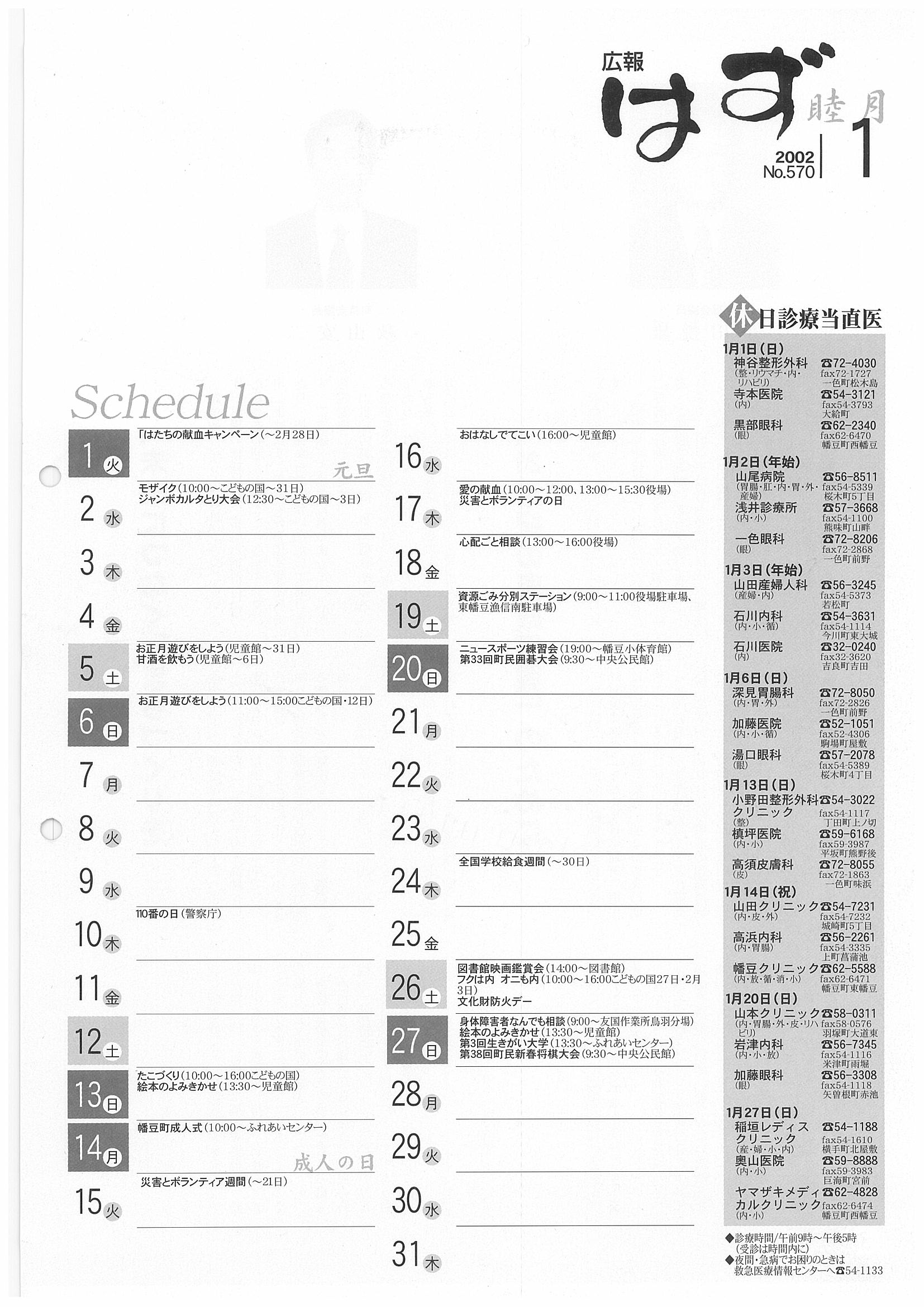 「広報はず」 2002年(平成14年) 1月号 目次