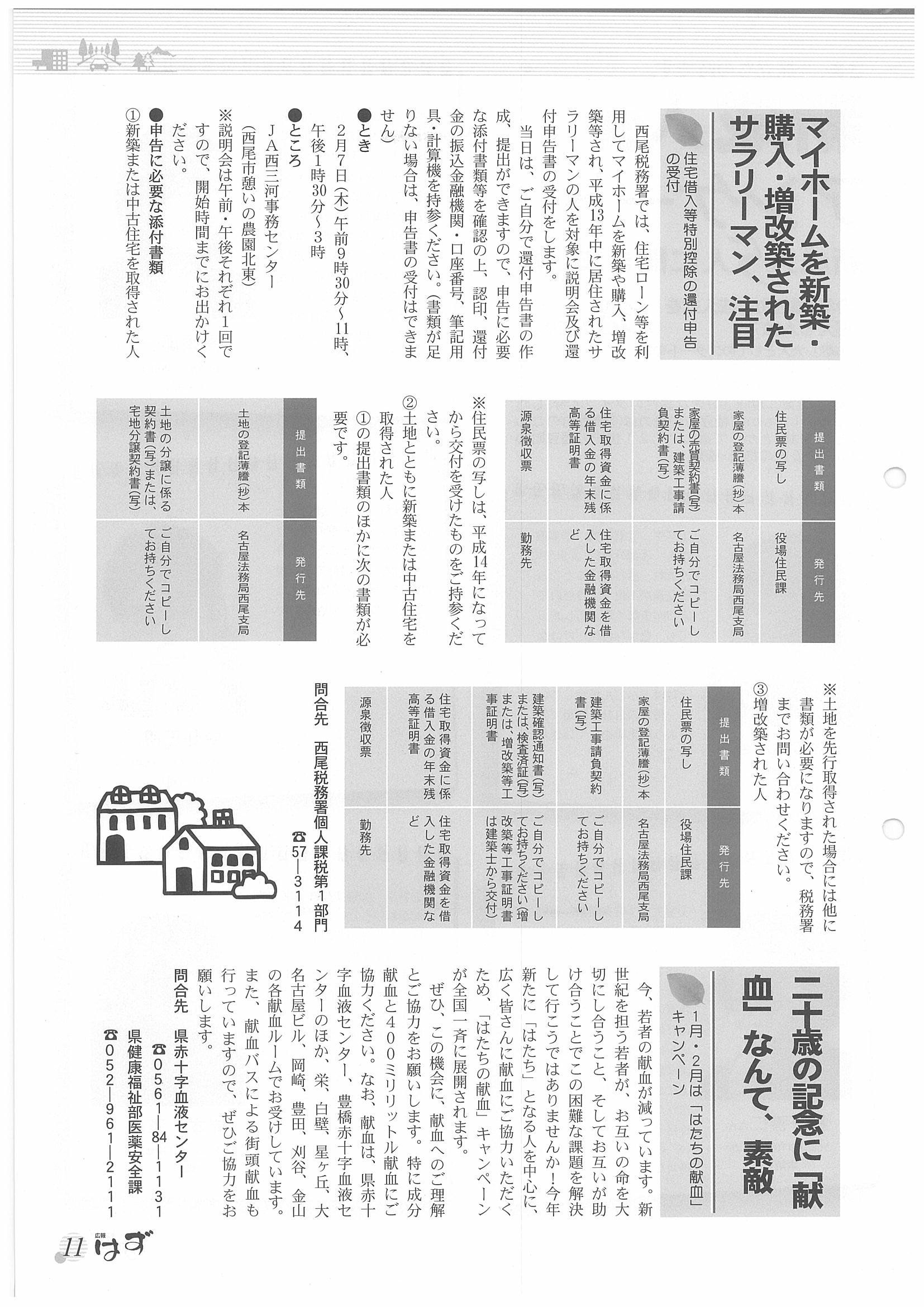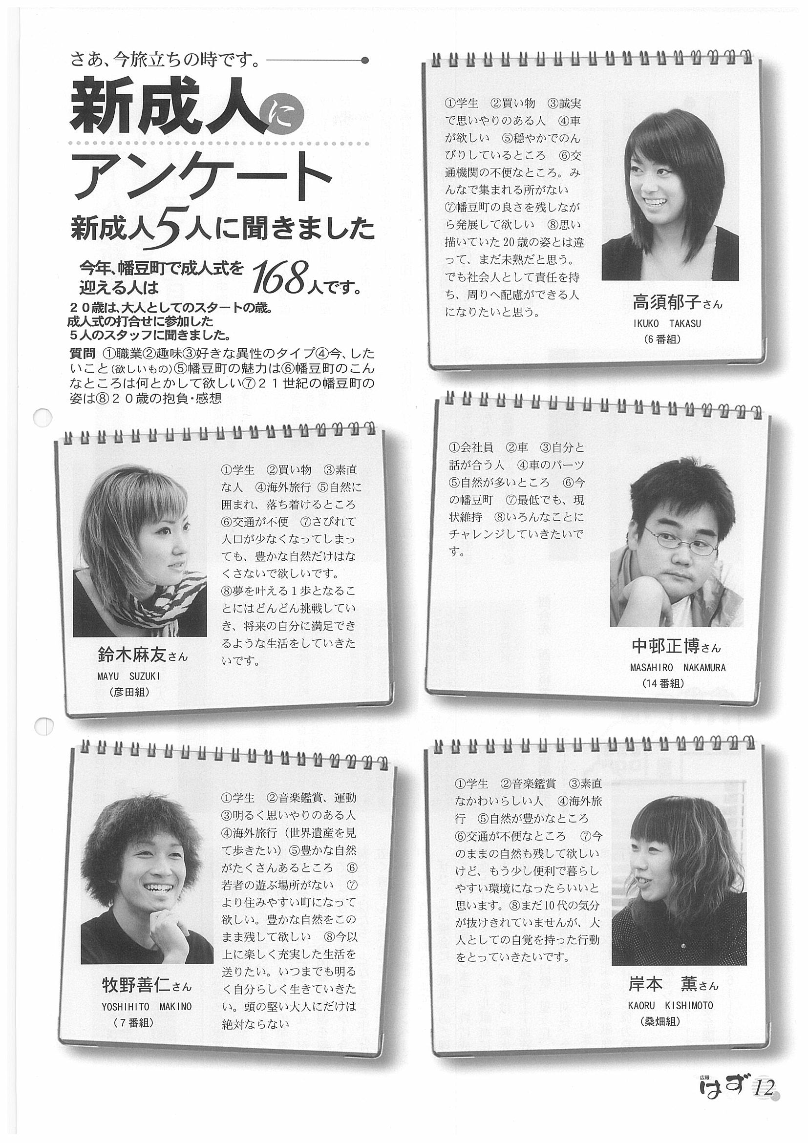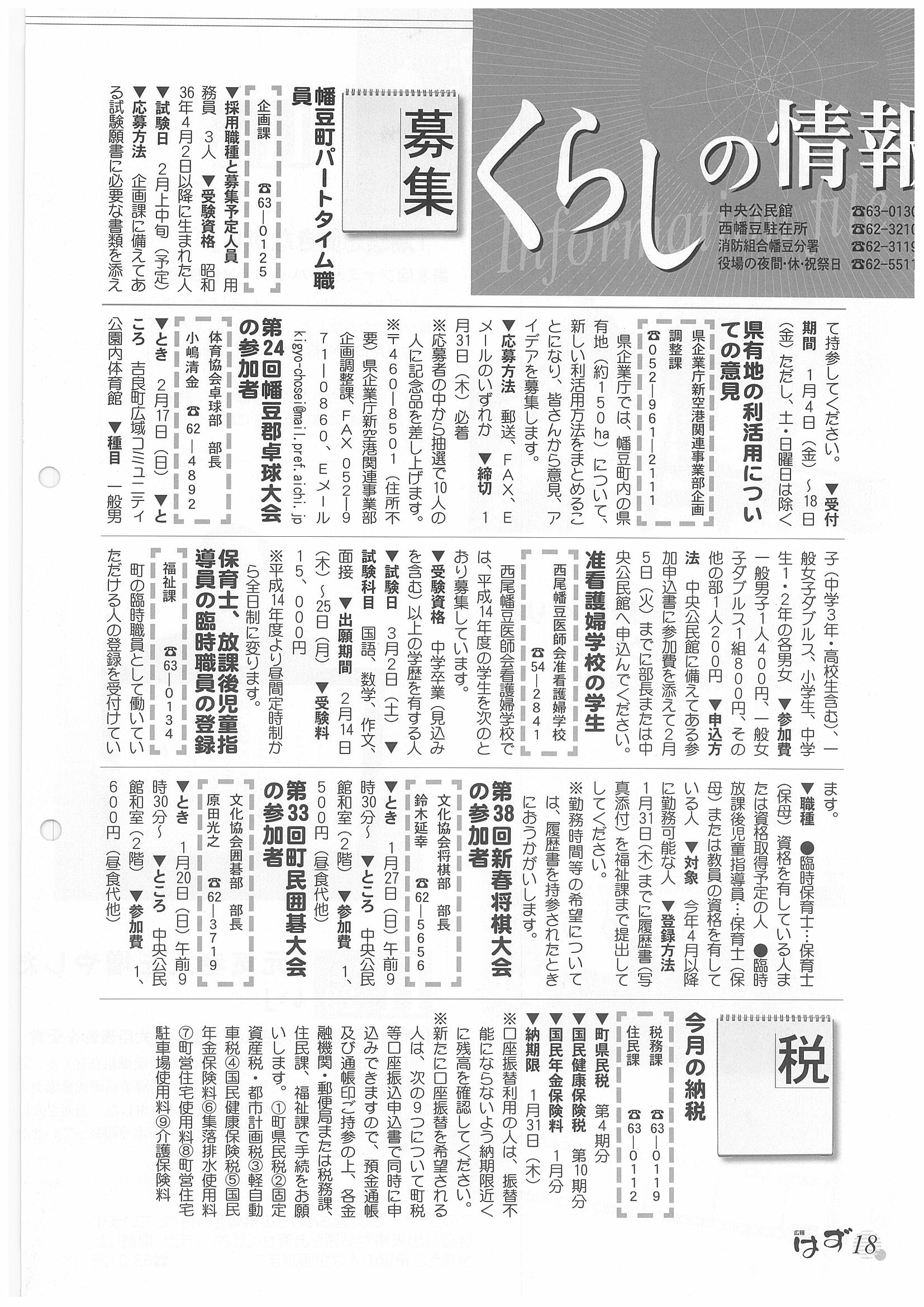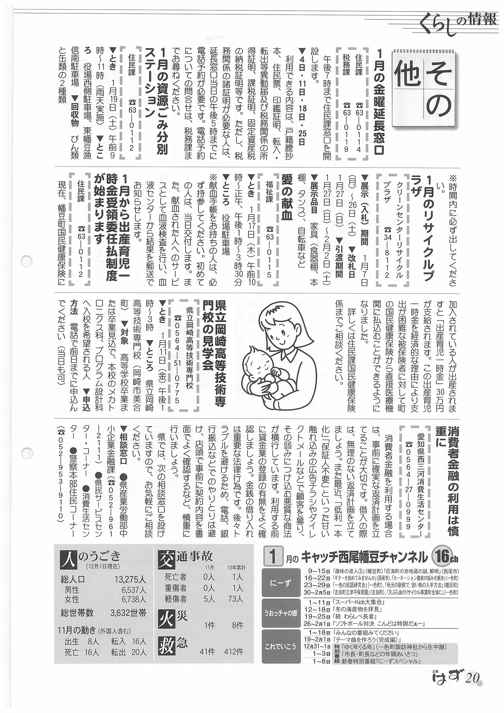 「広報はず」 2002年(平成14年) 1月号 目次