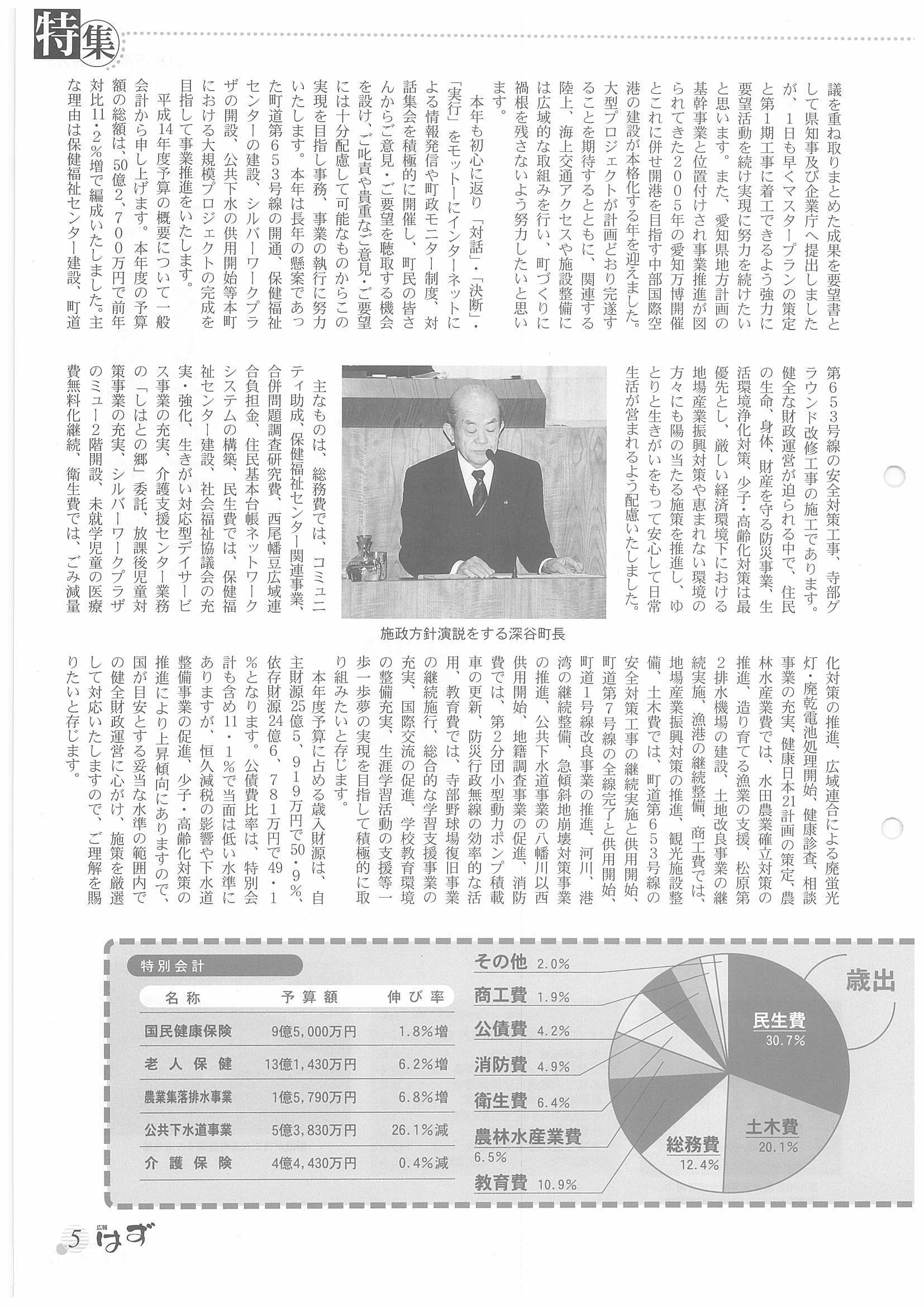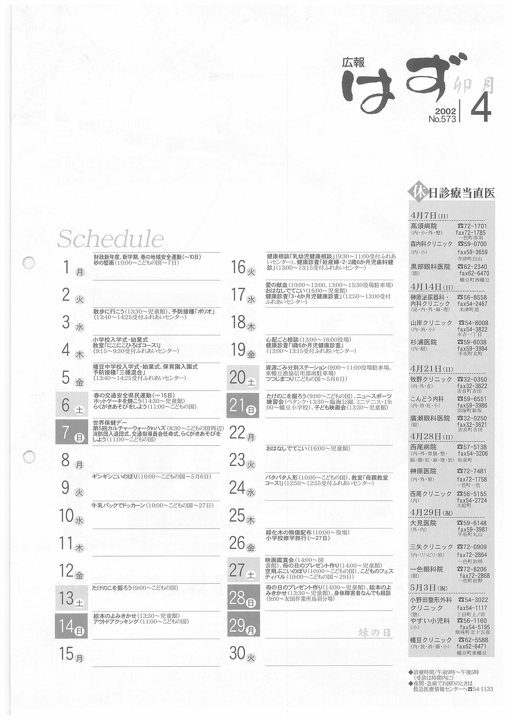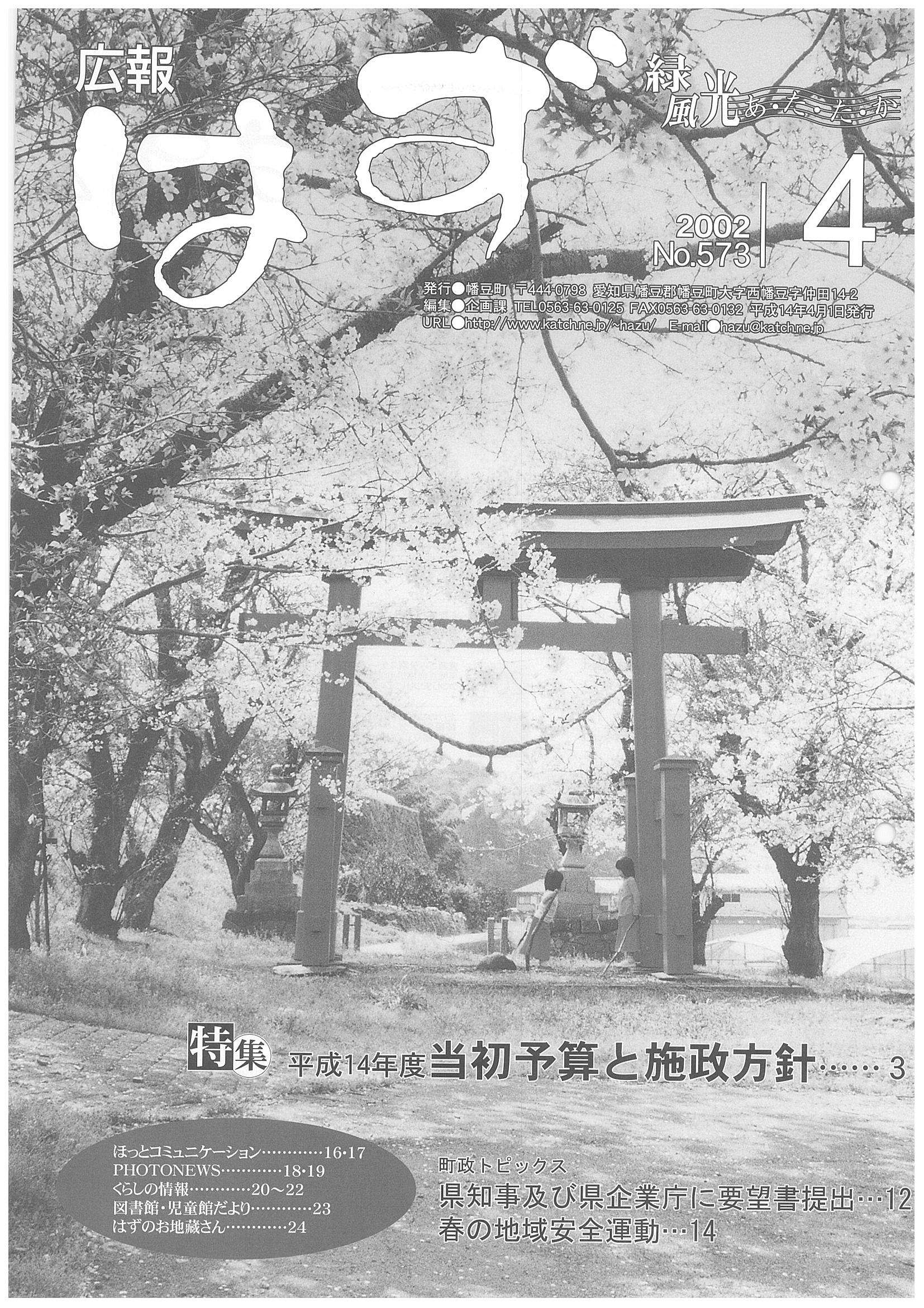「広報はず」 2002年(平成14年) 4月号 目次