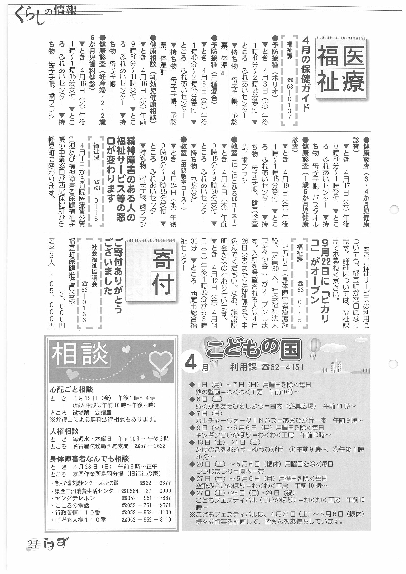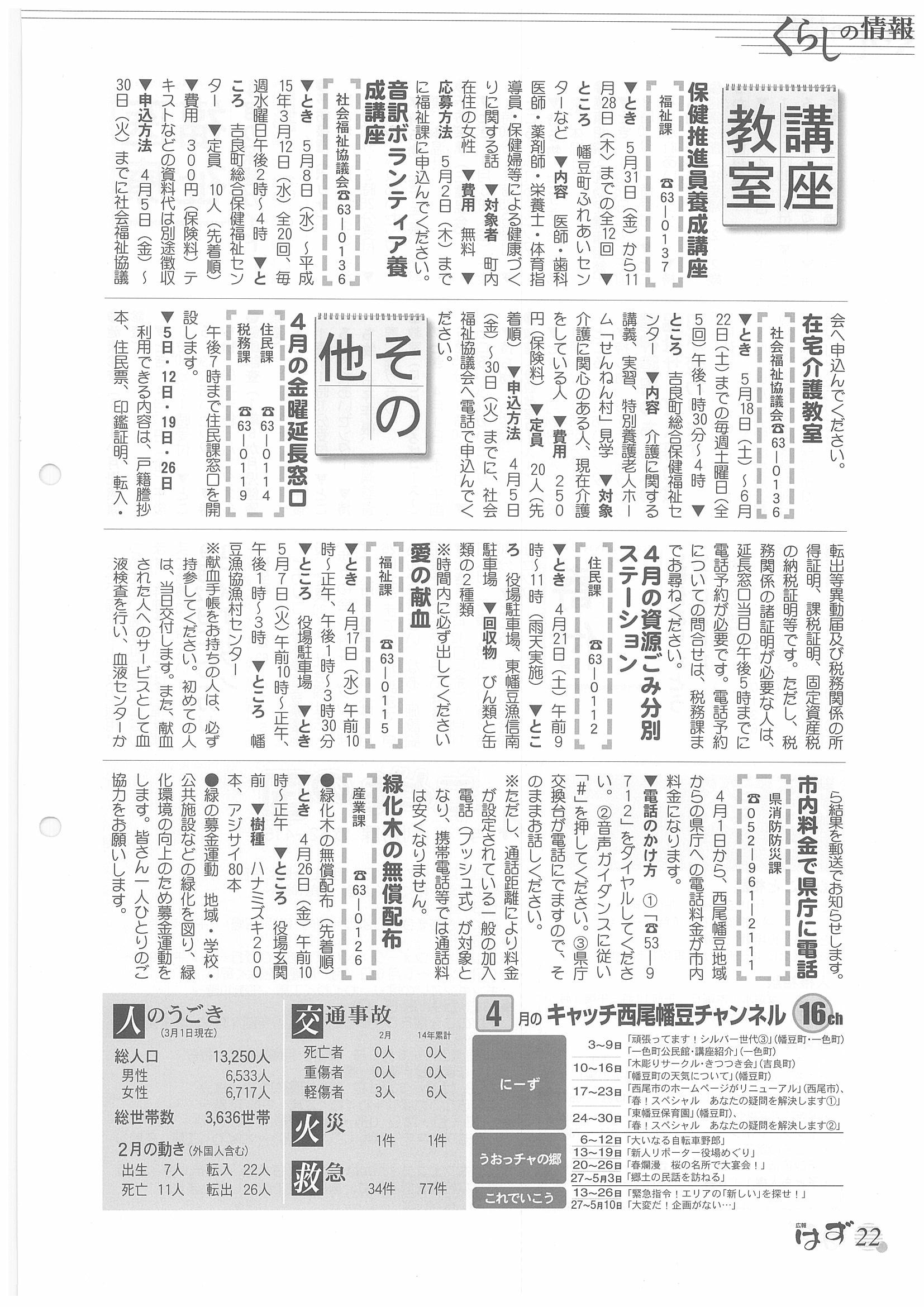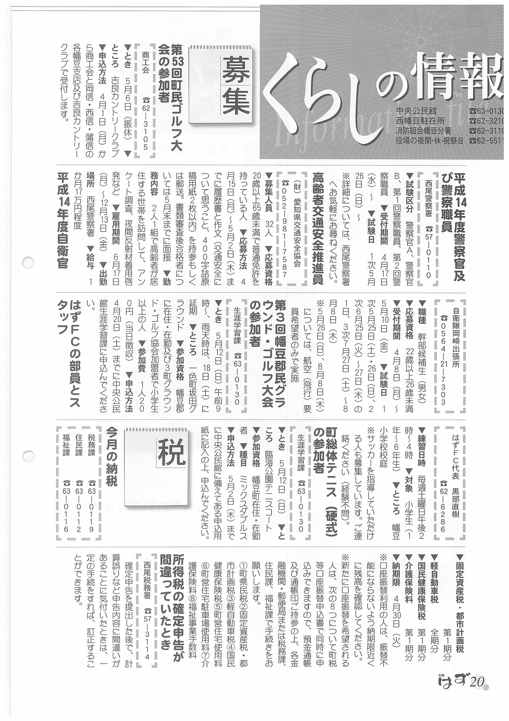 「広報はず」 2002年(平成14年) 4月号 目次